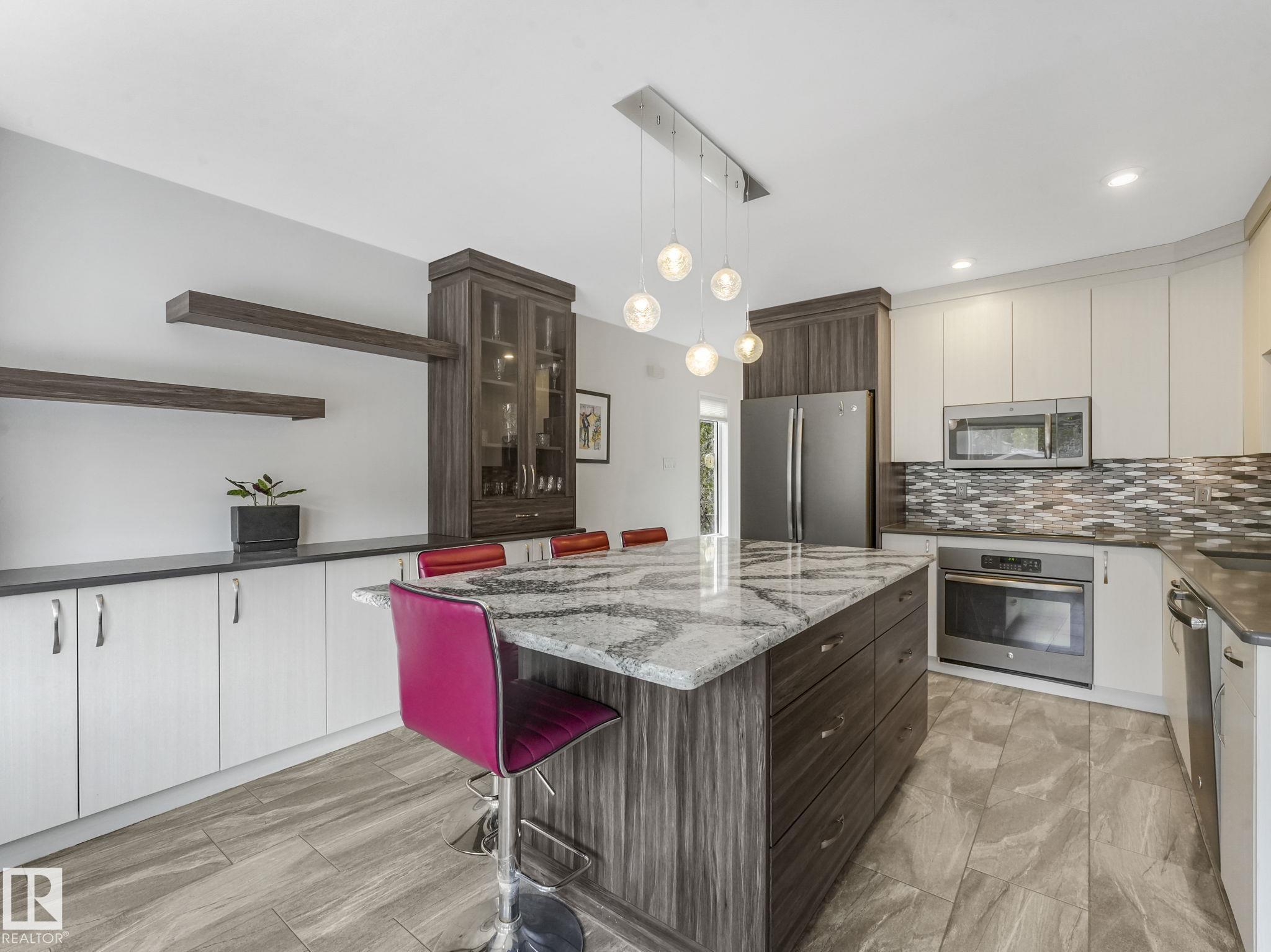 Spacious, comfortable & updated & over 1600 ft2 1.5 Story located in very desirable Allendale location! From front entry step on to original hardwood & in to spacious living rm with lge N facing window. Main floor features 2 bdrms, both with hardwood floors and mirrored closet doors. Updated 4 pce main Bath! Kitchen addition & full renovation in 2017! Custom cabinets by Metric Millwork, Cambria stone countertops, modern tile backsplash, large island, vinyl tyle flooring & built in oven and stove, dishwasher & microwave. Dinette overlooking sunny south back yard! Oversized master bdrm, walk in closet, family rm & 3 pce bath on upper level with lovely angled ceilings adding to character & charm. Bsmt is developed with large Rec Rm with newer flooring in 2023, storage, laundry rm with sink and crawl space under addition. HW tank 4 yrs old. Yard is sunny south facing, fully fenced and houses an oversized heated dble garage with loft area. Perfectly located on a south backing 46 X 130 lot! Move in and enjoy!!