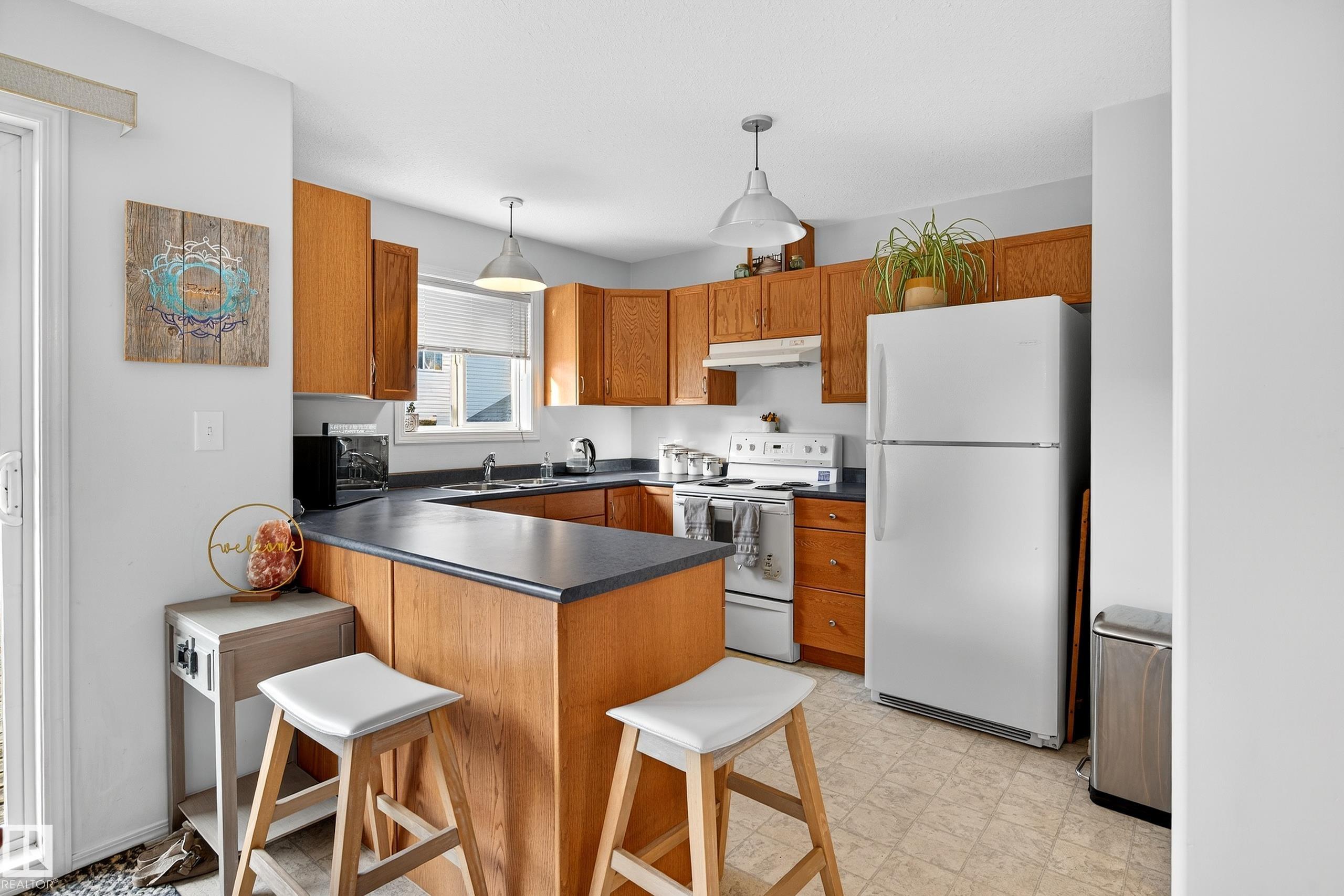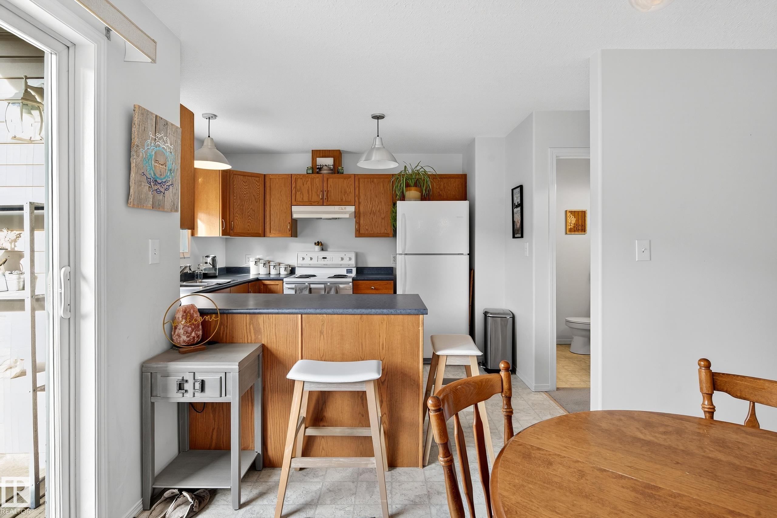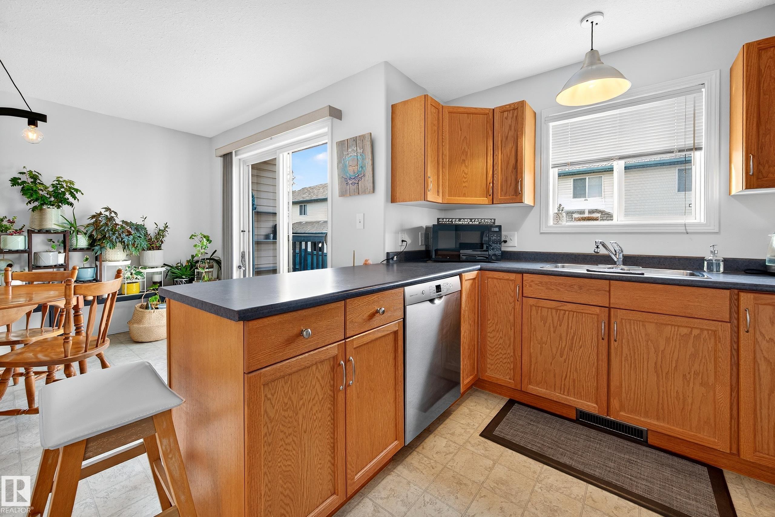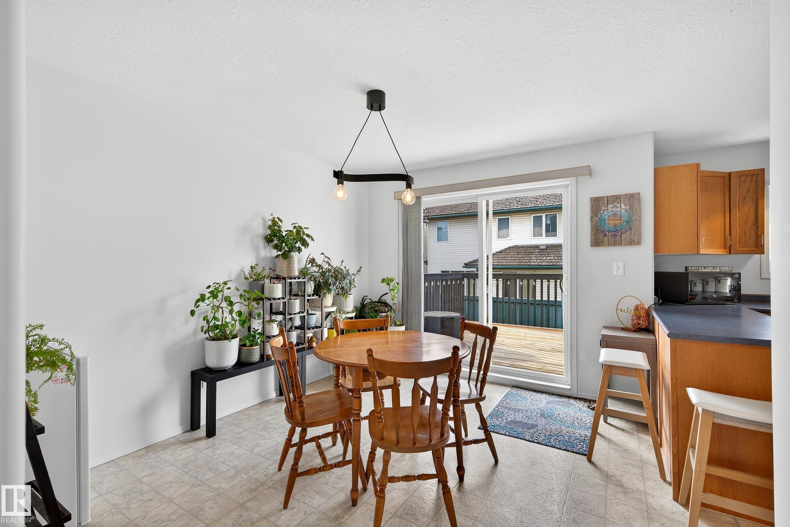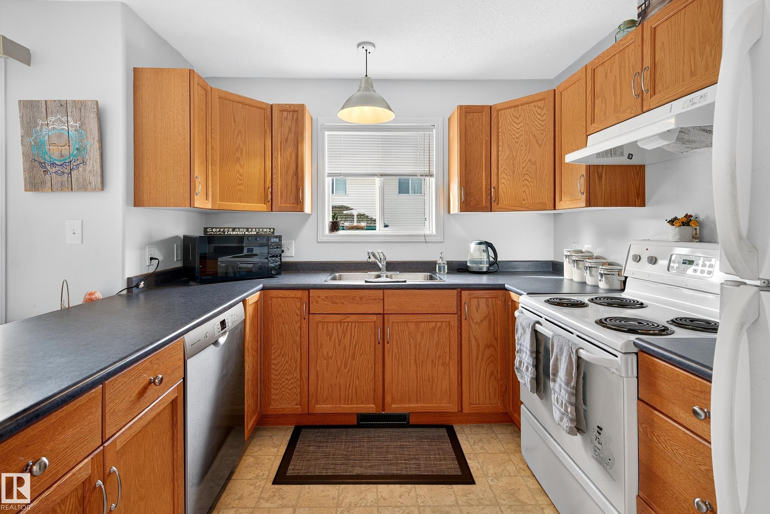 Welcome to this bright and inviting 3-bedroom townhouse with a finished basement and single attached garage, located in cozy neighbourhood of Blackburne. The main floor offers a cozy living room with a gas fireplace, large windows that fill the space with natural light, and an open layout flowing into the dining area and kitchen. The kitchen features plenty of cabinetry, a functional U-shaped design, and a convenient breakfast bar. Upstairs, the spacious primary bedroom includes a private ensuite, complemented by two additional bedrooms and a full bathroom. A half bath on the main floor adds extra convenience. The finished basement provides a versatile space for recreation, home office, or gym. Enjoy the deck off the dining area, perfect for relaxing or entertaining. With comfortable living spaces and thoughtful updates, this home is move-in ready and offers great value for families, first-time buyers, or investors.