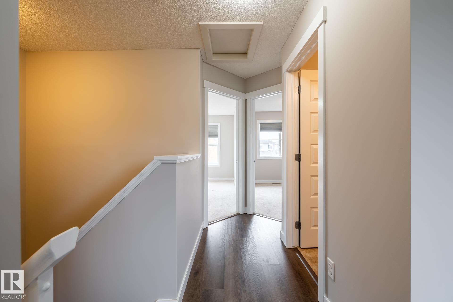 MOTIVATED SELLER. Welcome to the Creekwood community in Chappelle. This Rohit Mackenzie Model has over 2000 sf of living space. Built in 2011 features 3 bdrms up, 3.5 baths, fully fin basement, bonus & recreation rooms & REAR ATTACHED single garage. Stepping through the main entrance you are welcomed by warm chocolate hardwood. This Open Concept showcases Living room, Kitchen with S/S appliances, NEW in 2025 dishwasher, pendent island lighting, new paint main & upper levels, cabinet refacing & laminate flooring. Eating area with patio doors leads to private deck & 2 pc bath completes main level. Upstairs you will find a cozy bonus room, primary bedroom with 4 pc ensuite & walk-in closet, 2 additional generous sized bedrooms, 4 pc bath & laundry room. The fully finished basement offers a recreation/flex room with dry bar & quartz countertop, office & 4 pc bath. Located near parks, trails, schools, shopping, golf, Anthony Henday & so much more. A great place to call home!!