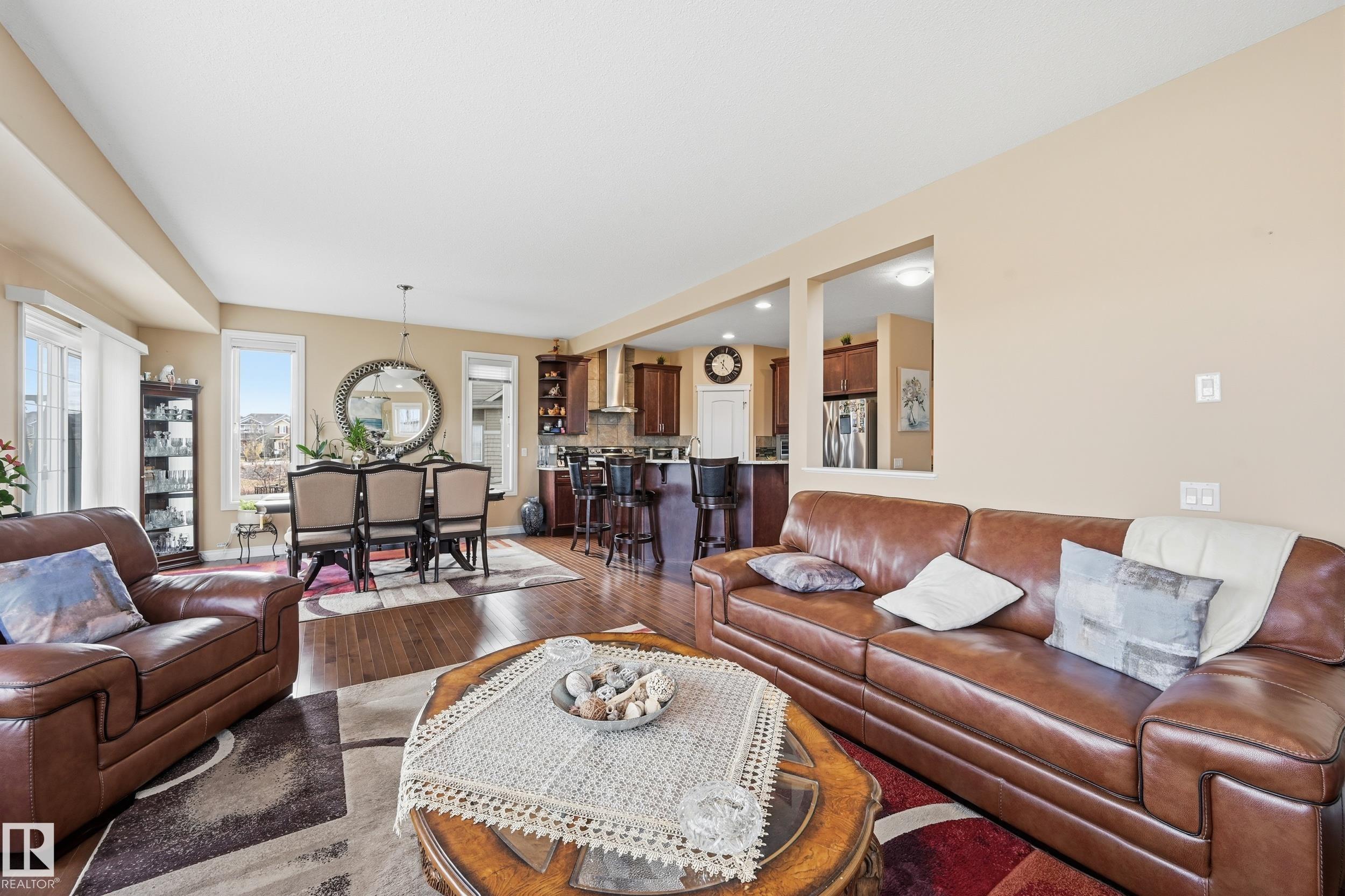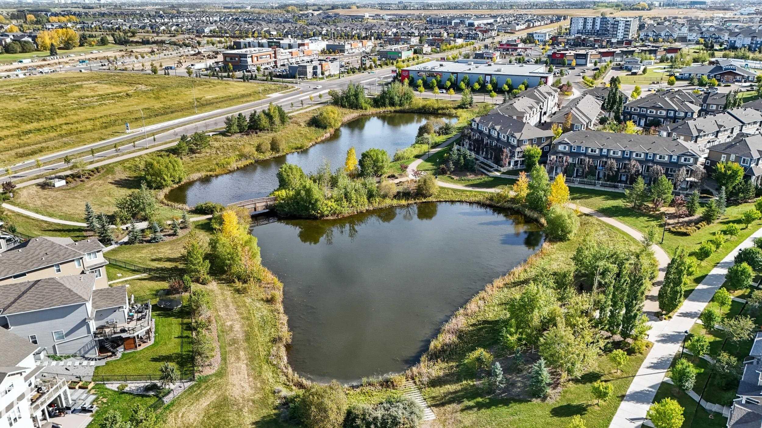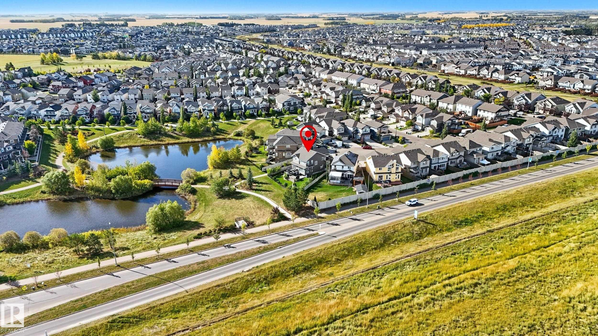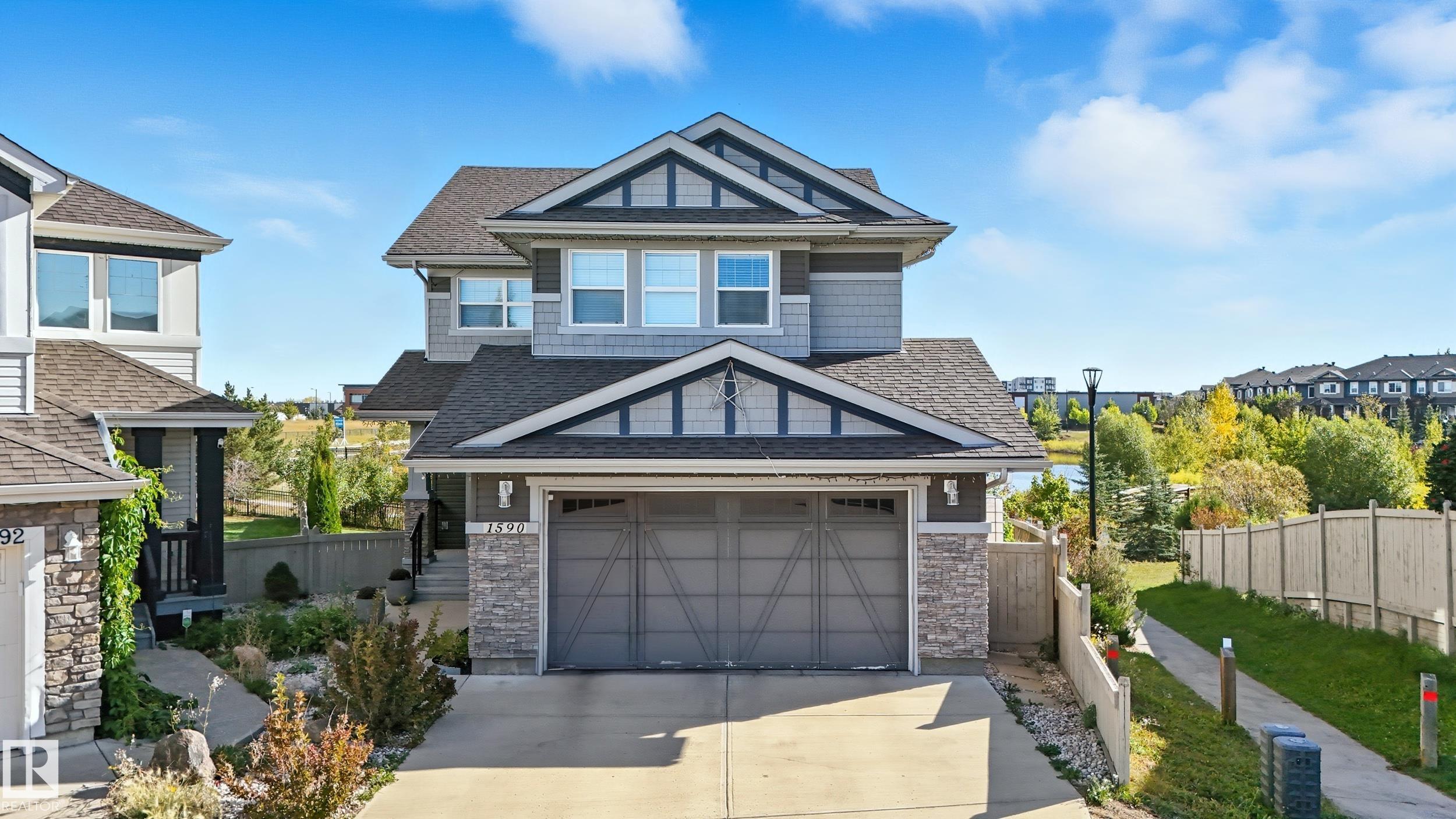 Welcome to this stunning custom-built property offering over 2,700 sqft of beautifully finished living space on a wide lot. From the moment you step inside, the spacious foyer sets the tone for this warm and inviting home. The open-concept main floor seamlessly connects the living room, dining area, and kitchen--flooded with natural light and framed by expansive lake views through thoughtfully added windows. Upstairs, a bright hallway leads to a large bonus room overlooking the pond, two spacious bedrooms, and a luxurious primary suite with a walk-in closet and a serene ensuite. The fully finished basement offers a generous rec room with a wet bar, full bath, and additional bedroom. Outside, enjoy your massive two-tiered deck--perfect for BBQs, gatherings, or simply relaxing with lakeside views. The landscaped yard features irrigation, a retaining wall, and direct access to walking trails. An oversized garage and access to Chapelle's recreation center complete this perfect package.