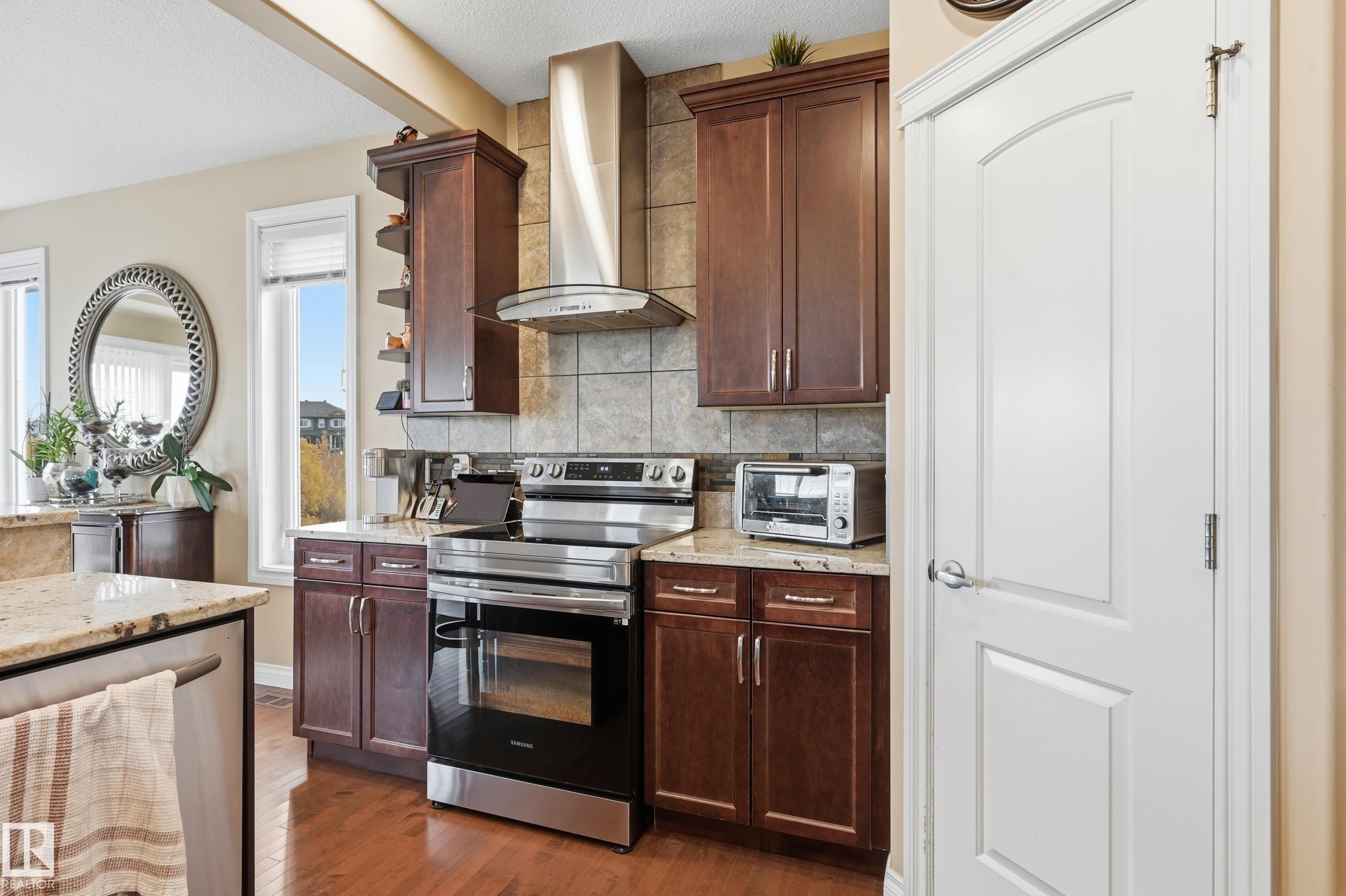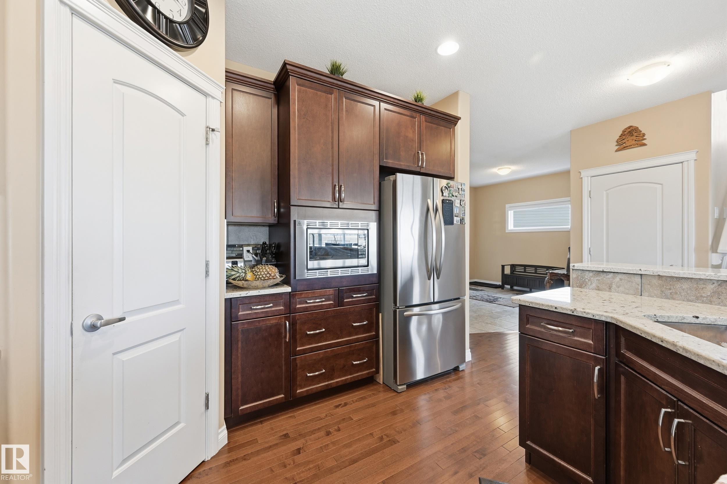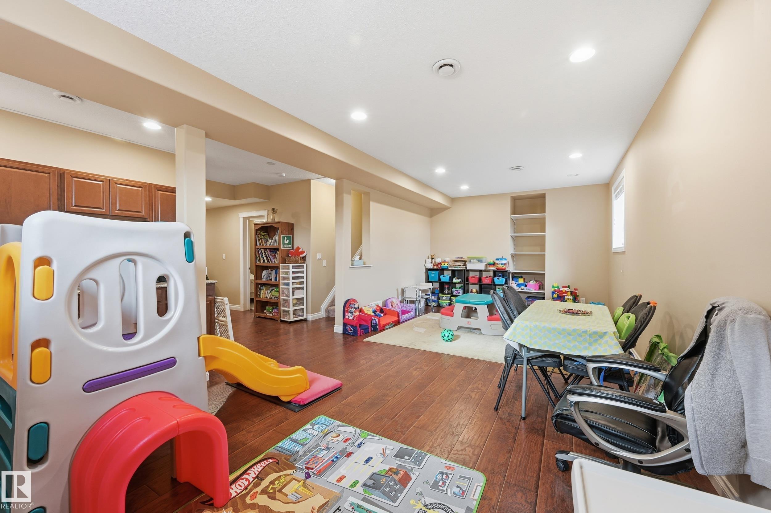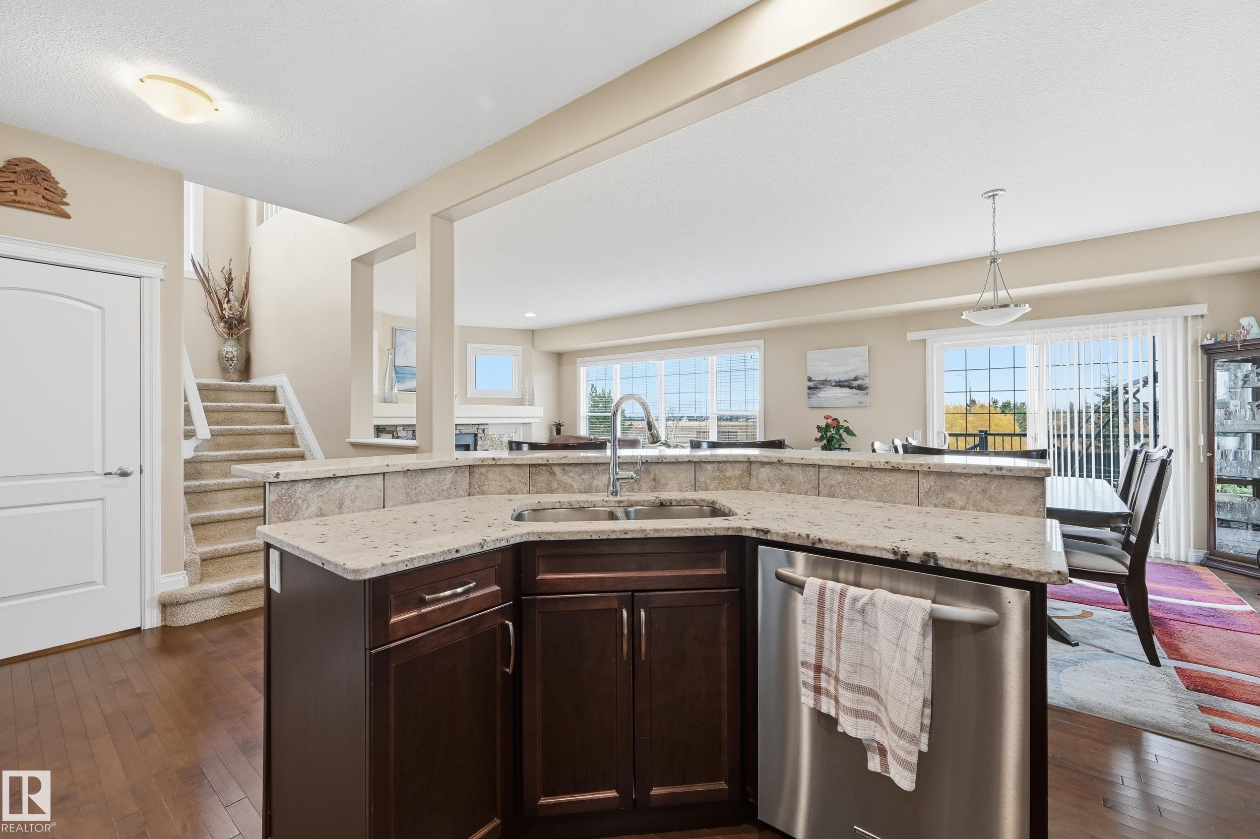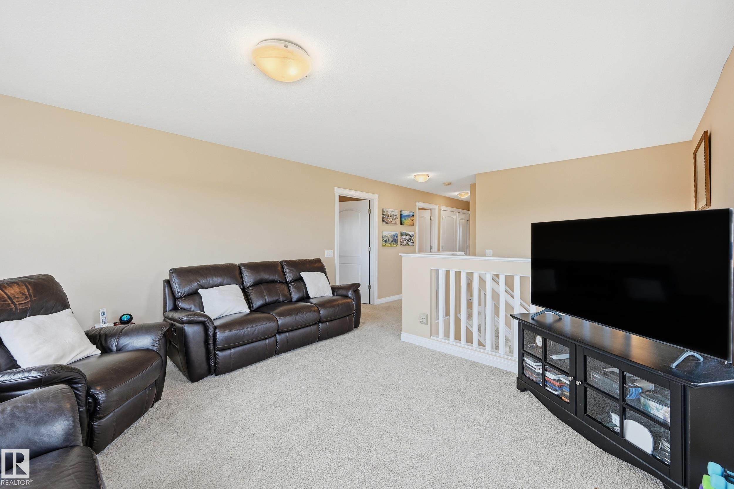 Welcome to this stunning custom-built property offering over 2,700 sqft of beautifully finished living space on a wide lot. From the moment you step inside, the spacious foyer sets the tone for this warm and inviting home. The open-concept main floor seamlessly connects the living room, dining area, and kitchen--flooded with natural light and framed by expansive lake views through thoughtfully added windows. Upstairs, a bright hallway leads to a large bonus room overlooking the pond, two spacious bedrooms, and a luxurious primary suite with a walk-in closet and a serene ensuite. The fully finished basement offers a generous rec room with a wet bar, full bath, and additional bedroom. Outside, enjoy your massive two-tiered deck--perfect for BBQs, gatherings, or simply relaxing with lakeside views. The landscaped yard features irrigation, a retaining wall, and direct access to walking trails. An oversized garage and access to Chapelle's recreation center complete this perfect package.