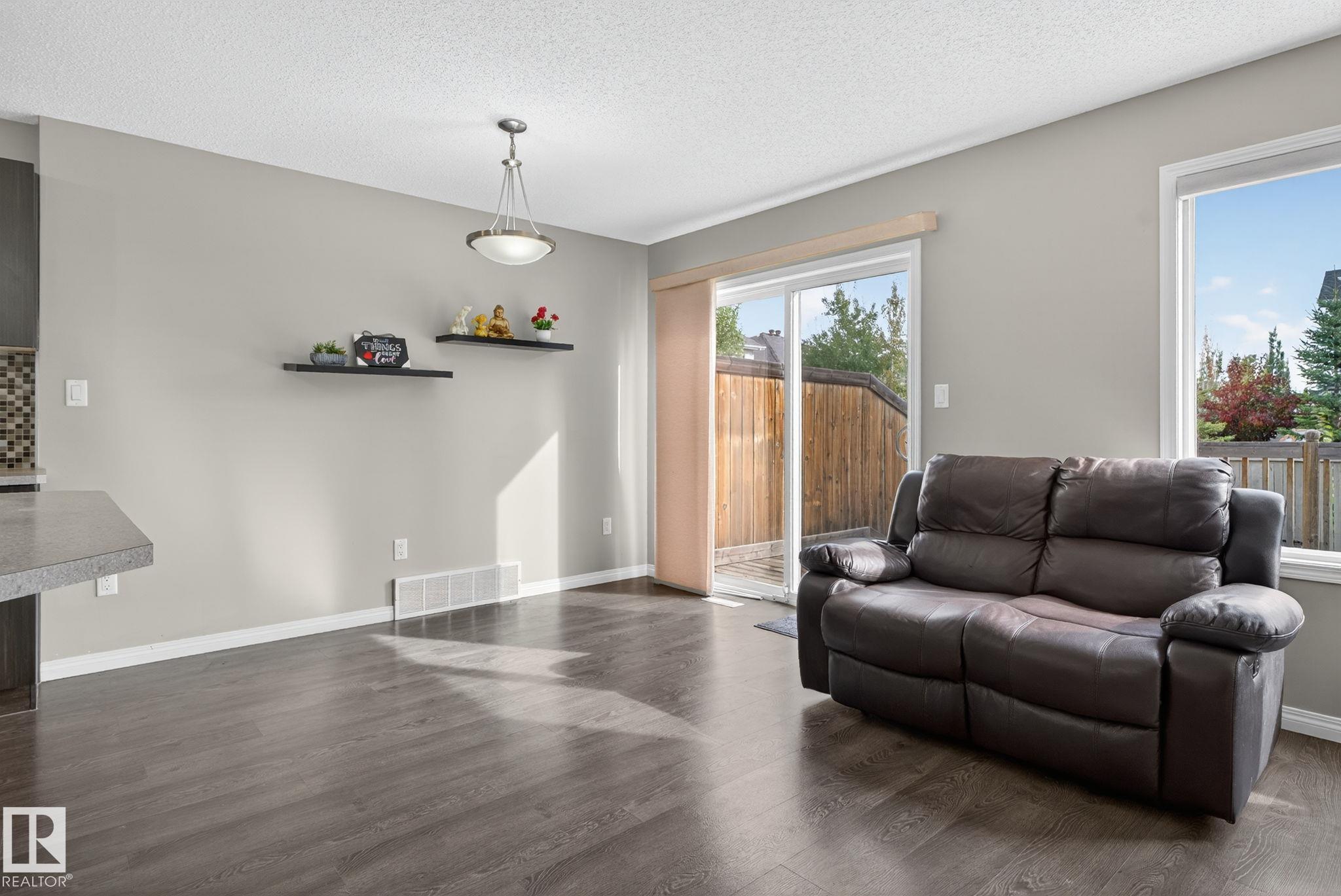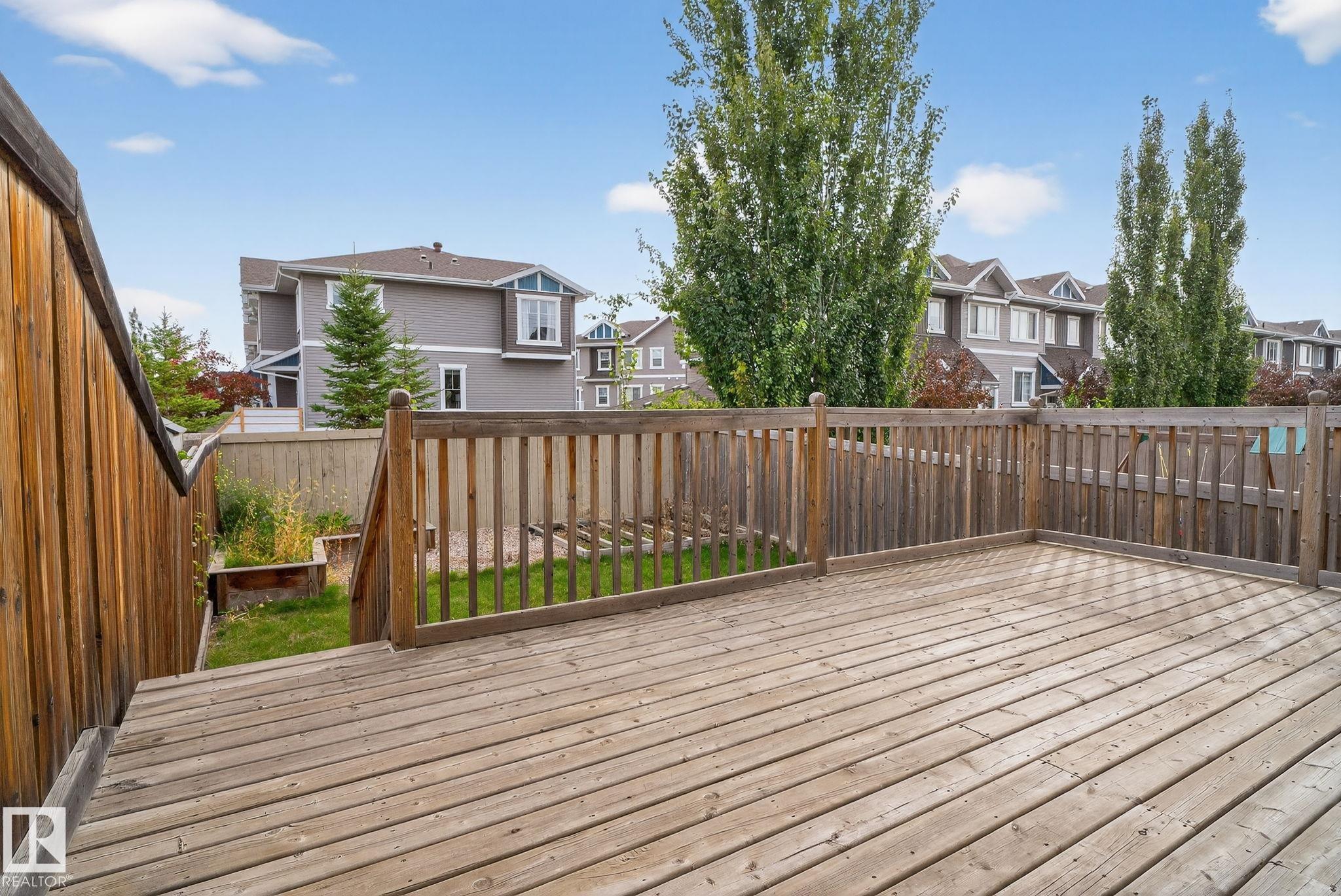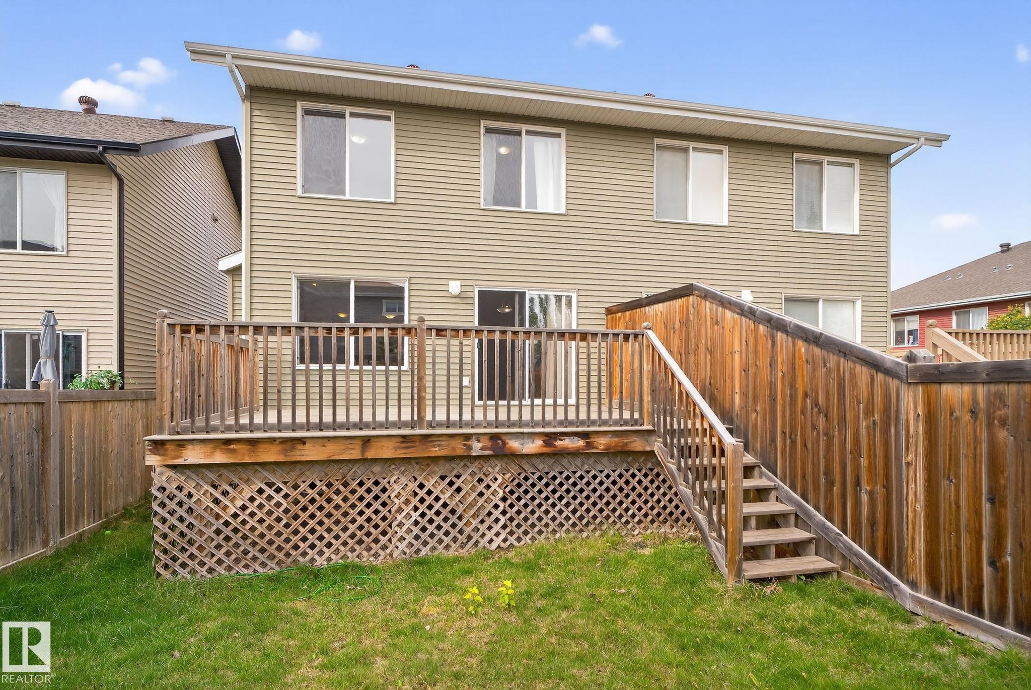 Welcome to Chappelle Gardens, one of Edmonton's most sought-after communities--offering parks, ponds, skating rinks, walking trails and golf course nearby. This half-duplex is one of the largest in square footage that features an open-concept floor plan perfect for entertaining, w/ a stunning kitchen that includes ceiling-height cabinets, a huge island, stainless steel appliances, a large corner pantry, & spacious dining & living areas. Enjoy the cozy fireplace and large windows overlooking a massive deck. The master bedroom is on its own level with a walk-in closet, & 4 piece ensuite. Upstairs offers a huge bonus room, laundry, 1 4 piece bath, 2 more bedrooms--one with it's own walk-in closet. Basement is partially finished with a bedroom with framing and drywall completed. Complete with a single attached garage, this spacious home has so much to offer for a growing family.