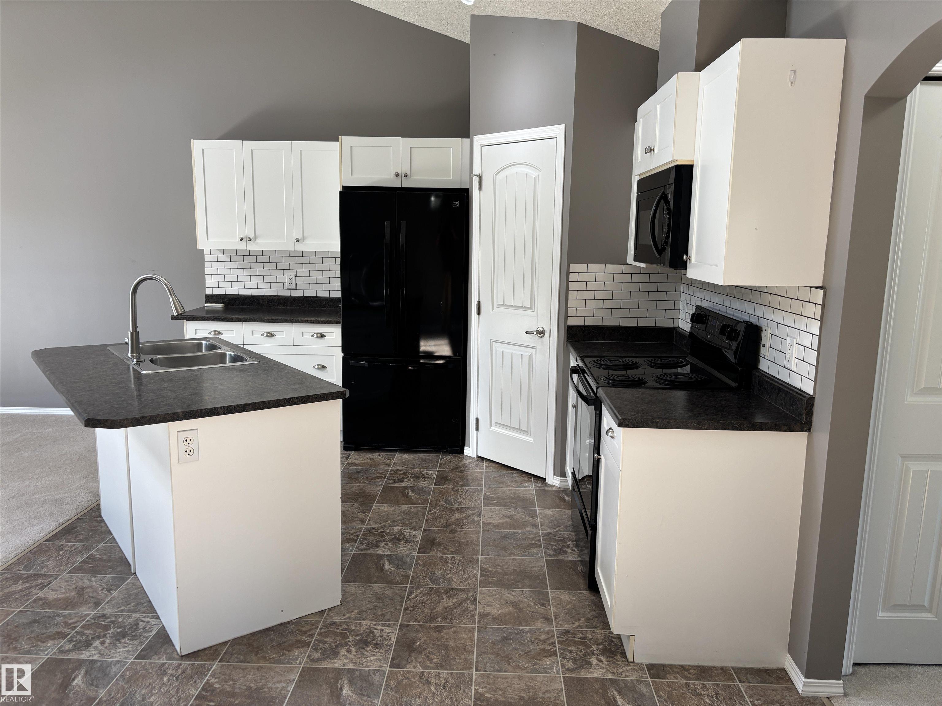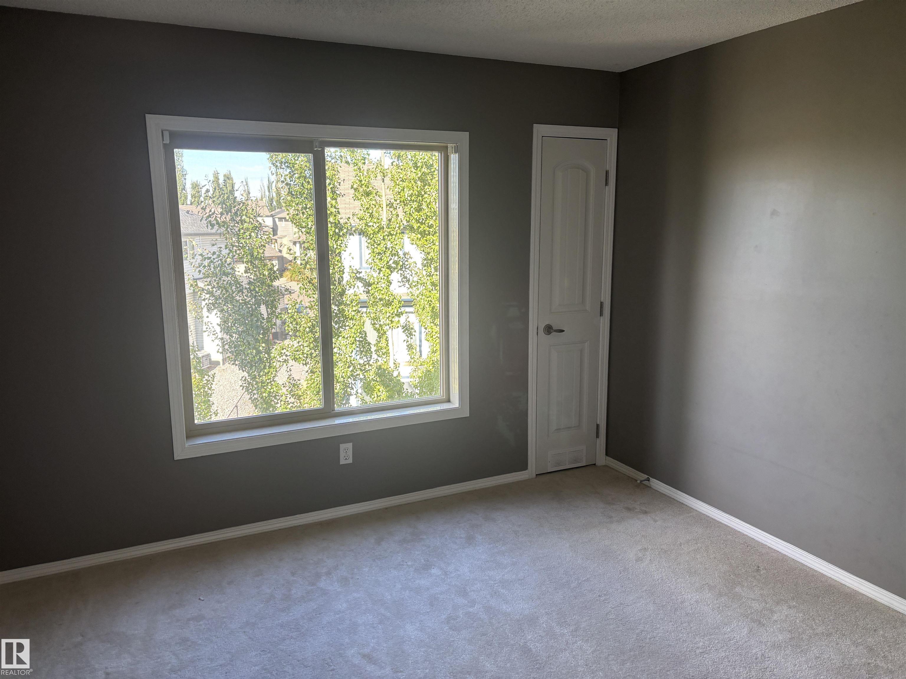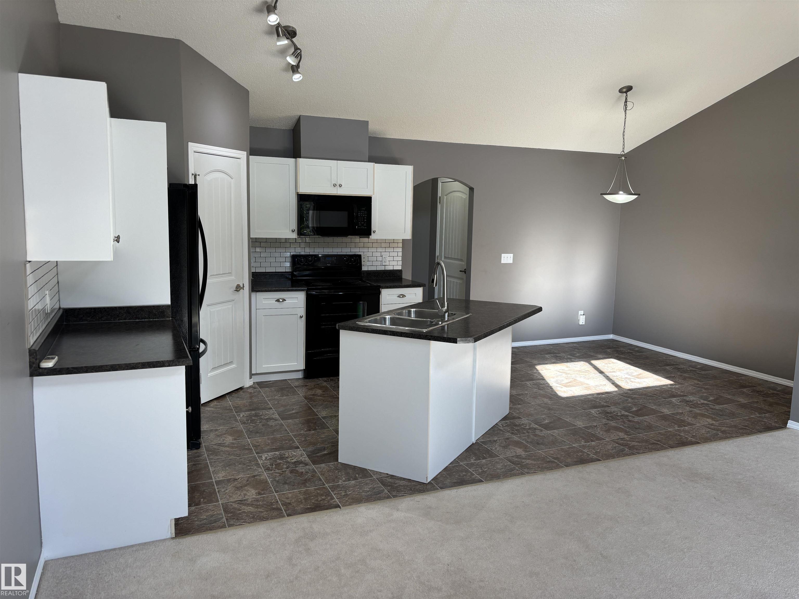 The beautiful SW community of CHARLESWORTH is where you will find this very well maintained TOP FLOOR carriage style home with two good-sized bedrooms and a full 4-piece bathroom. Walk up to the open concept layout, a large living room featuring VAULTED CEILINGS allowing natural light to flow right through the unit, and walks out onto the SOUTH facing deck . A dedicated spot for your kitchen table and chairs at the top of the stairs. The large kitchen features bright white cabinets with dark countertops, a timeless subway tile backsplash, black appliances, a sit-at-island, and a walk-in corner pantry. Additional features include a walk in laundry room with extra storage, a linen closet and even more storage above the staircase. Just south of the Anthony Henday, and walking distance to HARVEST POINTE shopping center that has all your daily amenities.