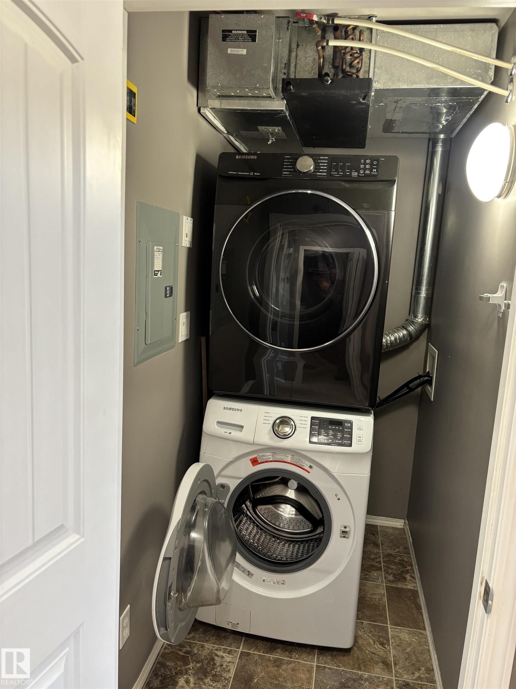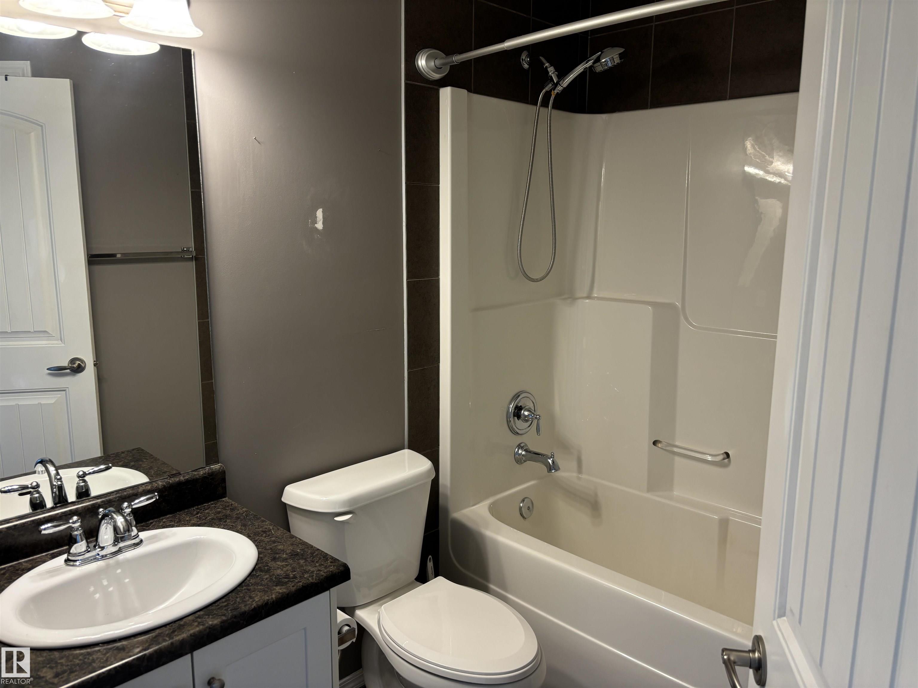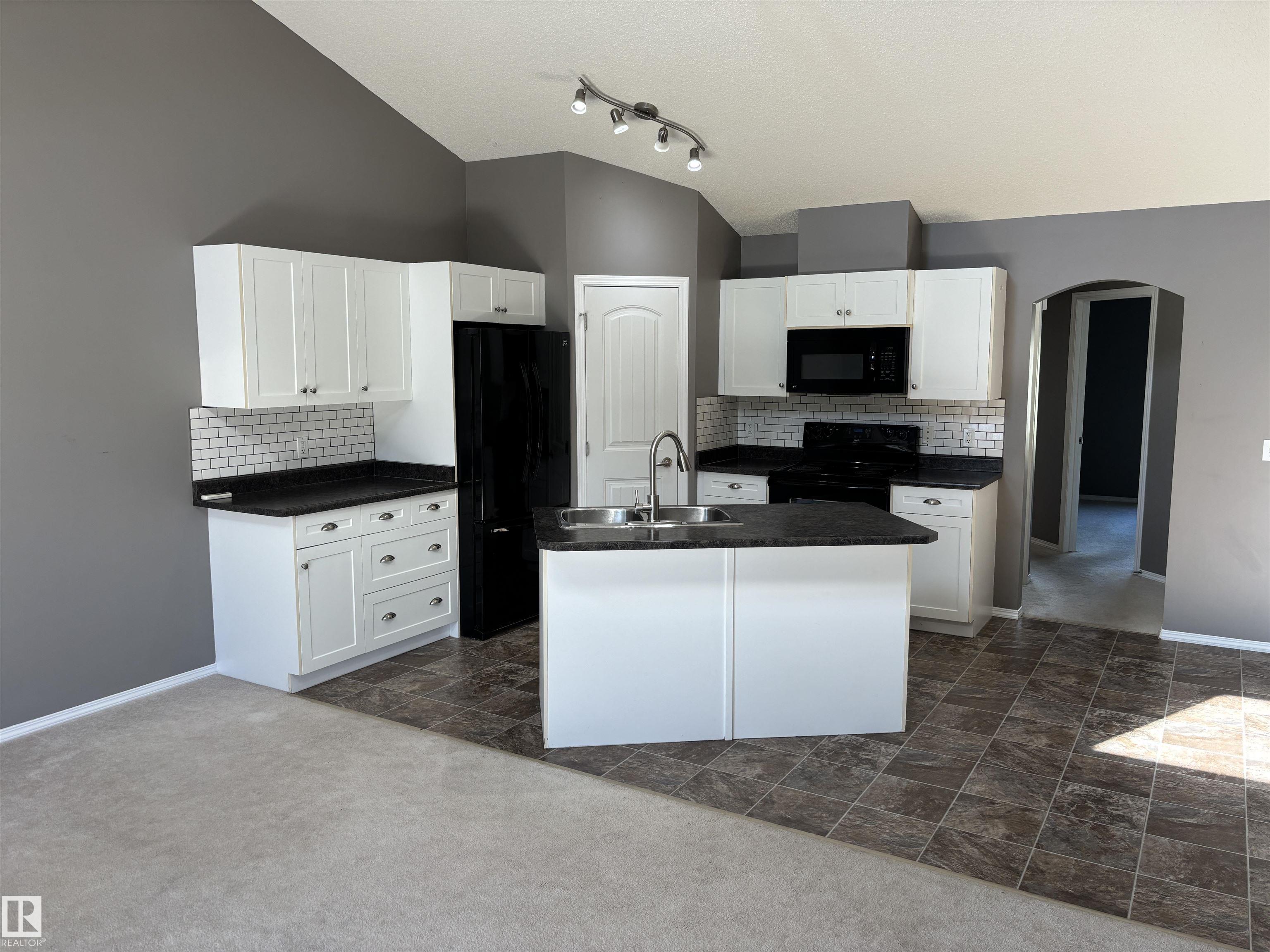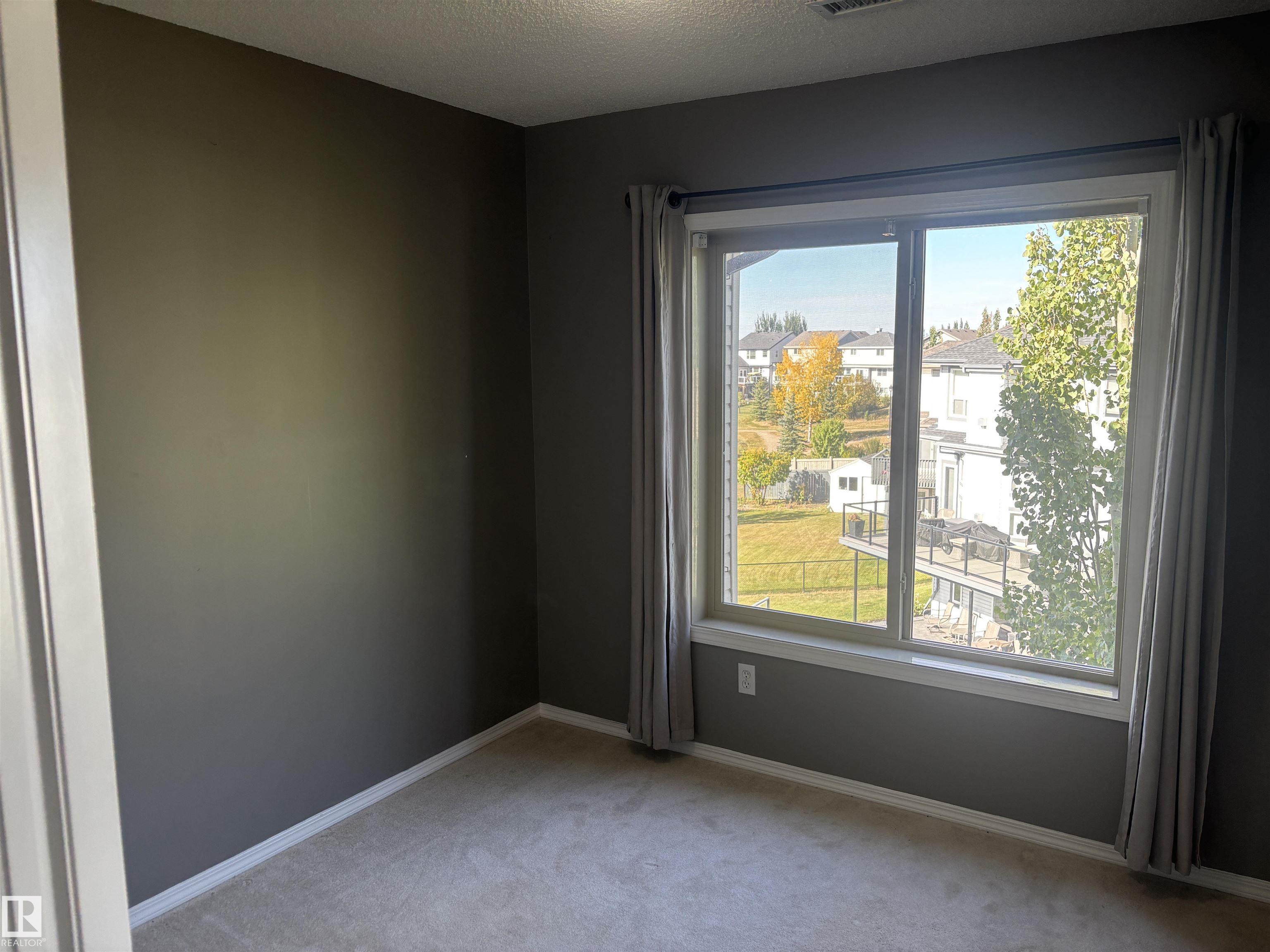 The beautiful SW community of CHARLESWORTH is where you will find this very well maintained TOP FLOOR carriage style home with two good-sized bedrooms and a full 4-piece bathroom. Walk up to the open concept layout, a large living room featuring VAULTED CEILINGS allowing natural light to flow right through the unit, and walks out onto the SOUTH facing deck . A dedicated spot for your kitchen table and chairs at the top of the stairs. The large kitchen features bright white cabinets with dark countertops, a timeless subway tile backsplash, black appliances, a sit-at-island, and a walk-in corner pantry. Additional features include a walk in laundry room with extra storage, a linen closet and even more storage above the staircase. Just south of the Anthony Henday, and walking distance to HARVEST POINTE shopping center that has all your daily amenities.