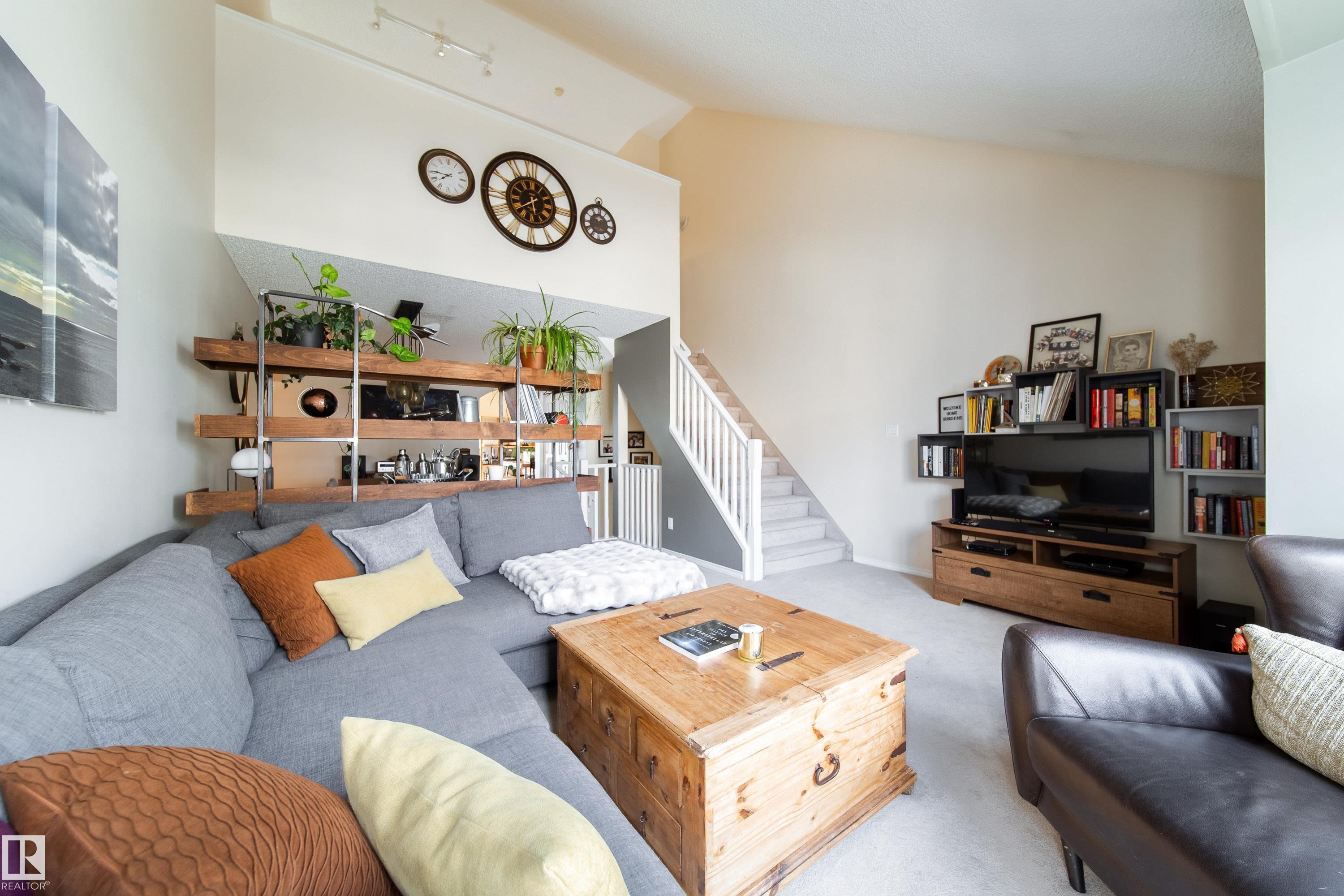 Rare opportunity to own a spacious 1,500 sq ft downtown townhouse with a unique loft design! Almost impossible to find something like this that checks all the boxes: fantastic location, large square footage, attached tandem garage, storage, balcony and bonus loft. Units like this rarely come up for sale. This stylish home features a bright and functional layout with a chic kitchen showcasing new vinyl plank flooring and plenty of character. Enjoy the comfort of air conditioning and the convenience of a tandem attached garage- enough for 2 vehicles or 1 plus loads of storage. The open living space leads to a private deck/balcony in the back--perfect for relaxing or entertaining. Main floor offers 2 large bedrooms, including an oversized primary with 3 piece ensuite. BONUS loft with potential for den or separate sitting area. In suite laundry. Situated just steps from vibrant downtown amenities, dining, shopping, and transit, this is urban living at its best with space, style, and rarity all in one!