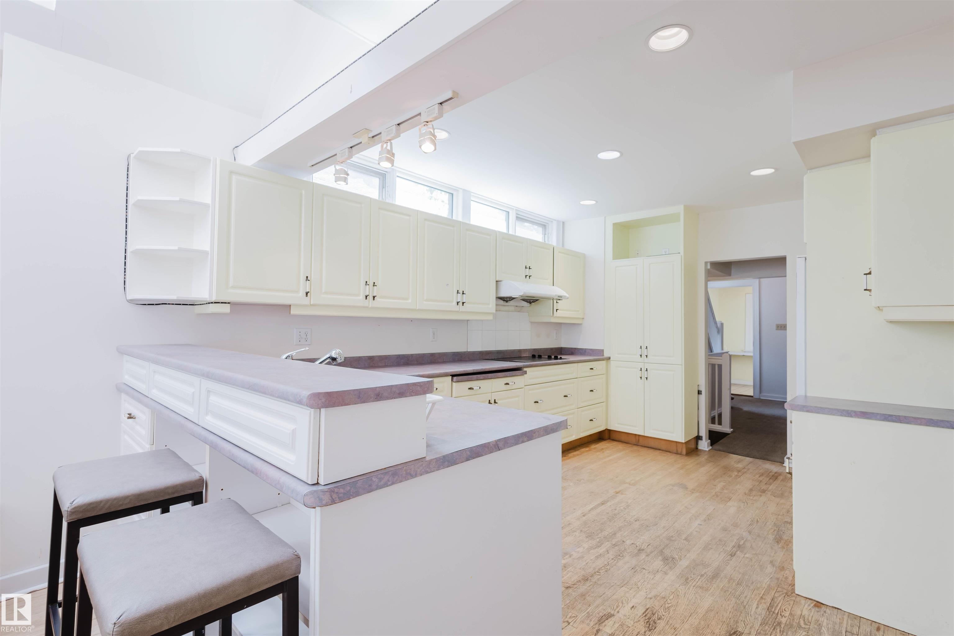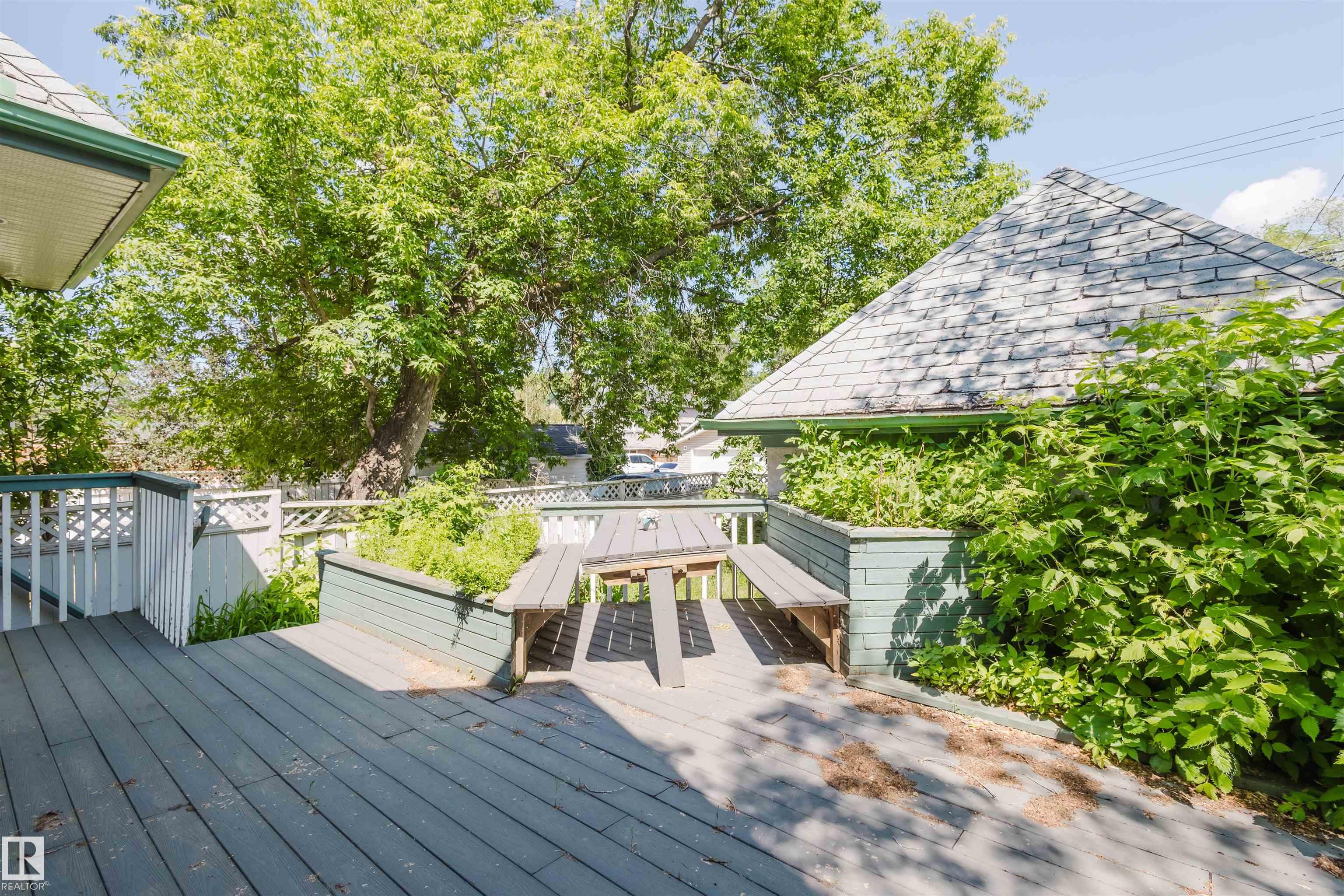 Location! Location! Location! Stunning updated 1900+ sqft GARNEAU home offers you 5 bdrms and 3 bath. The modern good-size kitchen has abundant counter space & cabinetry. The living room has huge window that offers you plenty of natural light which features wood floor and a wood-burning fireplace. The original POCKET GLASS DOORS connects the living room with a formal dining room. The adjacent family room has 2 skylights, built-in shelves surrounding a gas fireplace. Upstairs features a spacious master bdrm and another 2 good size bdrms, newly renovated bath and a large storage room. Fully finished basement offers you another two bdrms, a bath and laundry. Private backyard offers you a no-maintenance deck with built-in picnic table and planters, a ramp for accessibility. This house just steps away from the River valley and also within walking distance to UofA hospital, UofA campus, downtown, Whyte Ave, shopping and restaurants. Such a convenient location which you don't want to miss!