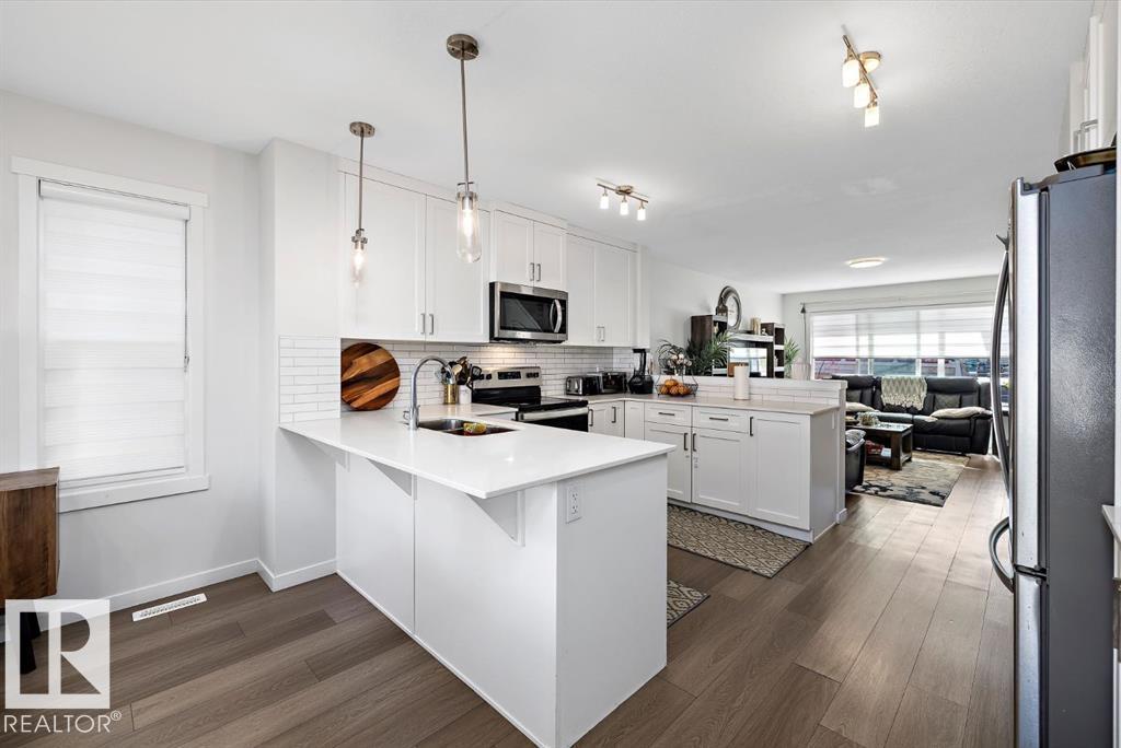 Step into modern living with this stunning 2022-built townhouse offering a total of 2,176 sq. ft. of finished space, a double detached garage, and the perfect balance of style, comfort, and convenience -- all for $468,888. Inside, you'll love the open-concept design featuring sleek quartz countertops, stainless steel appliances, and contemporary cabinetry that make the kitchen the heart of the home. With 3 spacious bedrooms and 4 bathrooms (including a main bedroom ensuite), there's plenty of room for a growing family or hosting guests. The fully finished basement adds extra living space -- ideal for a home office, rec room, or gym. Step outside to your private fenced backyard, perfect for summer barbecues, pets, or simply relaxing. Located in the highly sought-after community of Griesbach, you'll enjoy over 5 km of scenic walking trails, parks, and a nearby lake right at your doorstep. Shopping, dining, and schools are just minutes away -- everything you need is within reach.
