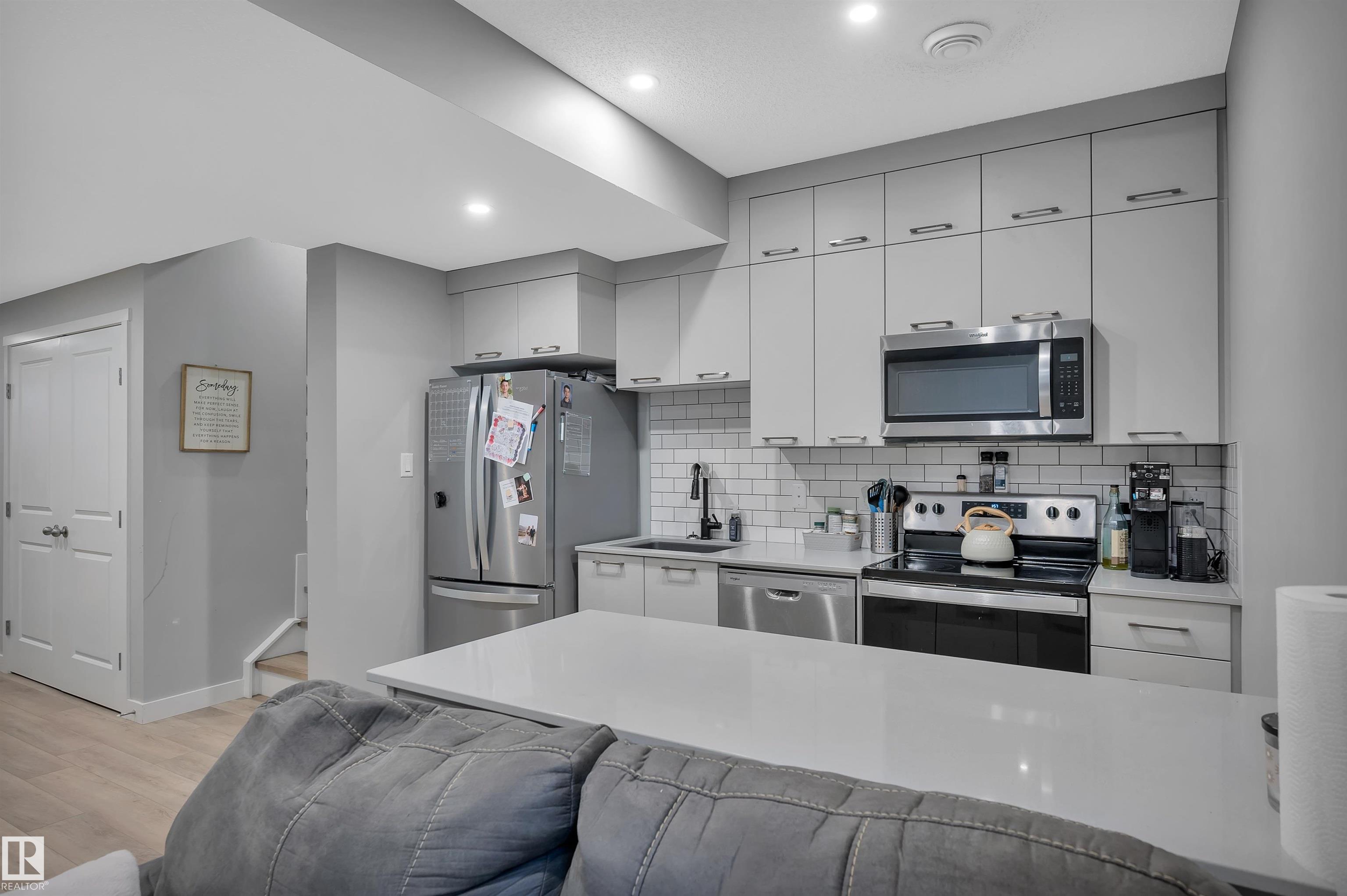 2023 built home in Griesbach offering 1,840.97 sq ft above grade with a practical layout and a legal 1-bed basement suite featuring second kitchen and separate laundry. A total of 4 bedrooms and 3.5 bathrooms, making this an ideal option for buyers seeking rental income or space for extended family. The main and upper levels feature luxury vinyl plank flooring throughout (no carpet) and quartz countertops. The upper floor includes a large bonus room, providing flexible living space, along with a primary bedroom with walk-in closet and ensuite and additional well-sized bedrooms. The basement suite is fully permitted and thoughtfully integrated into the home. Outside, enjoy a deck, fully landscaped and fenced yard, and a double detached garage. Located in the established and highly sought-after community of Griesbach, close to parks, schools, walking trails, and amenities. A well-rounded, modern home with long-term flexibility and value.