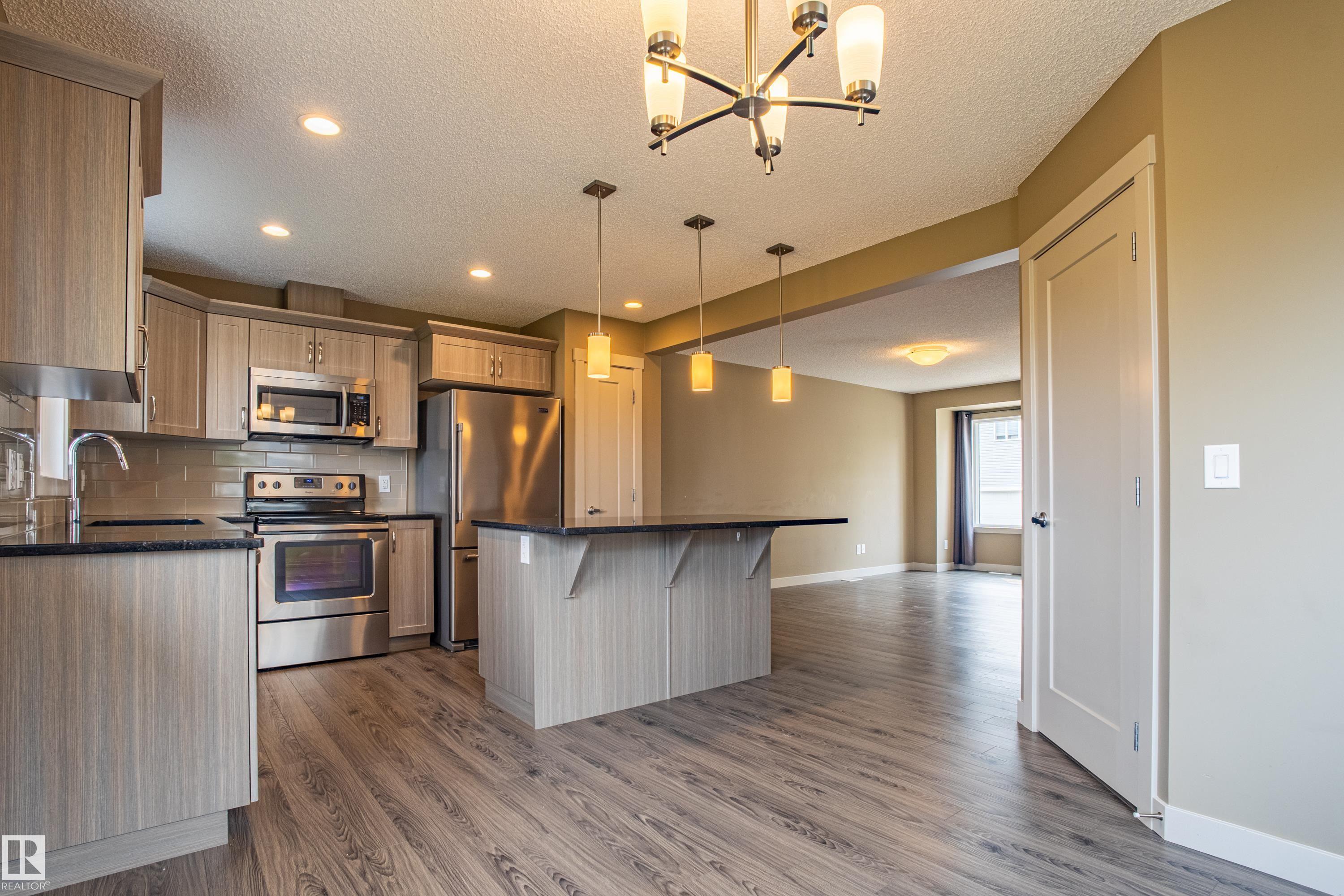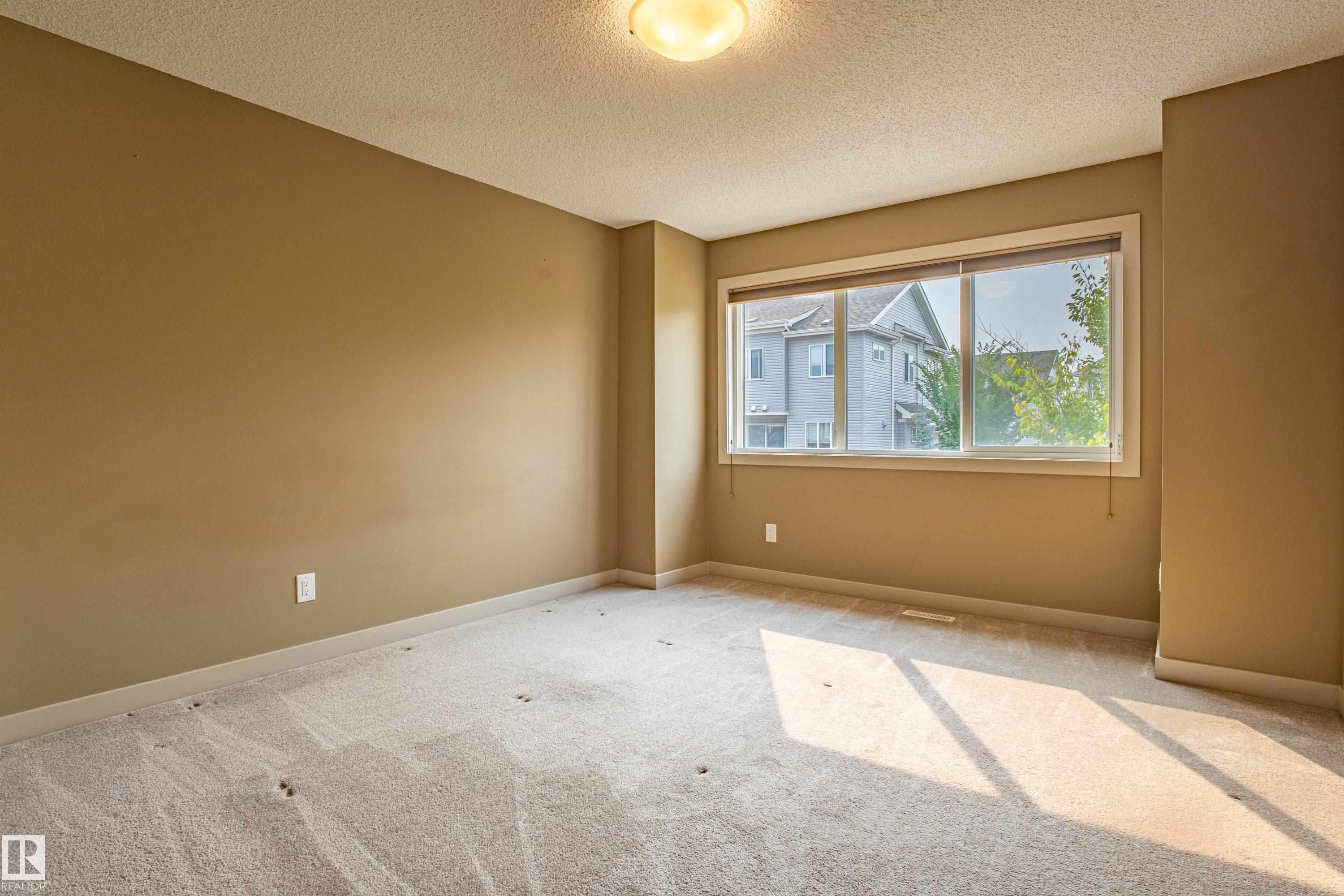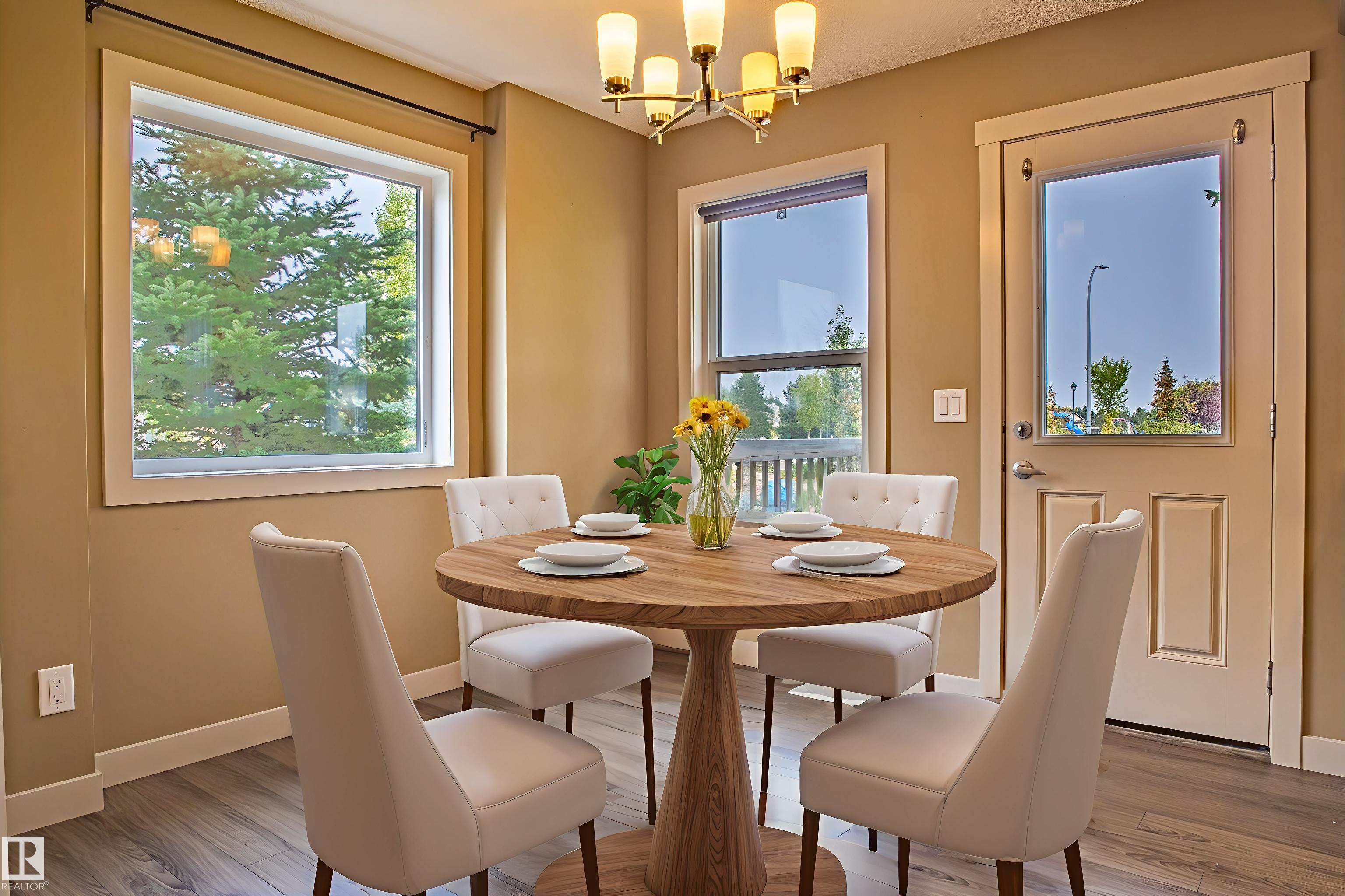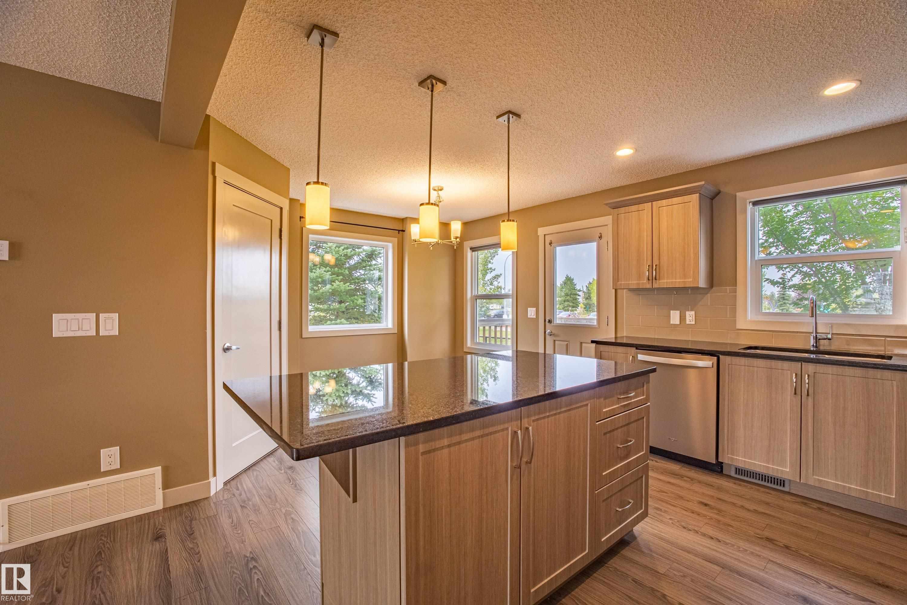 Welcome to Haddow Landing! This air-conditioned, bright south-facing 3-bedroom townhouse includes ***two titled parking stalls right in front of your door*** The two-storey layout is filled with natural light and features an unfinished basement ready for your customization. The main floor offers premium vinyl plank flooring, stainless steel appliances, ^black granite countertops^, and a half bath. Upstairs you'll find 3 bedrooms and a full bath, with the primary boasting a large walk-in closet. The unit is quietly tucked into the interior of the complex, away from traffic noise. Out back, enjoy a private deck with natural gas BBQ hookup overlooking Haddow Community Park with the Ridge Community Center, playground, hockey rink, and sports fields just a short walk away. Fantastic location only one minute to Terwillegar Drive, close to The Currents at Windermere, and transit is right outside the complex. This home is ready for you!