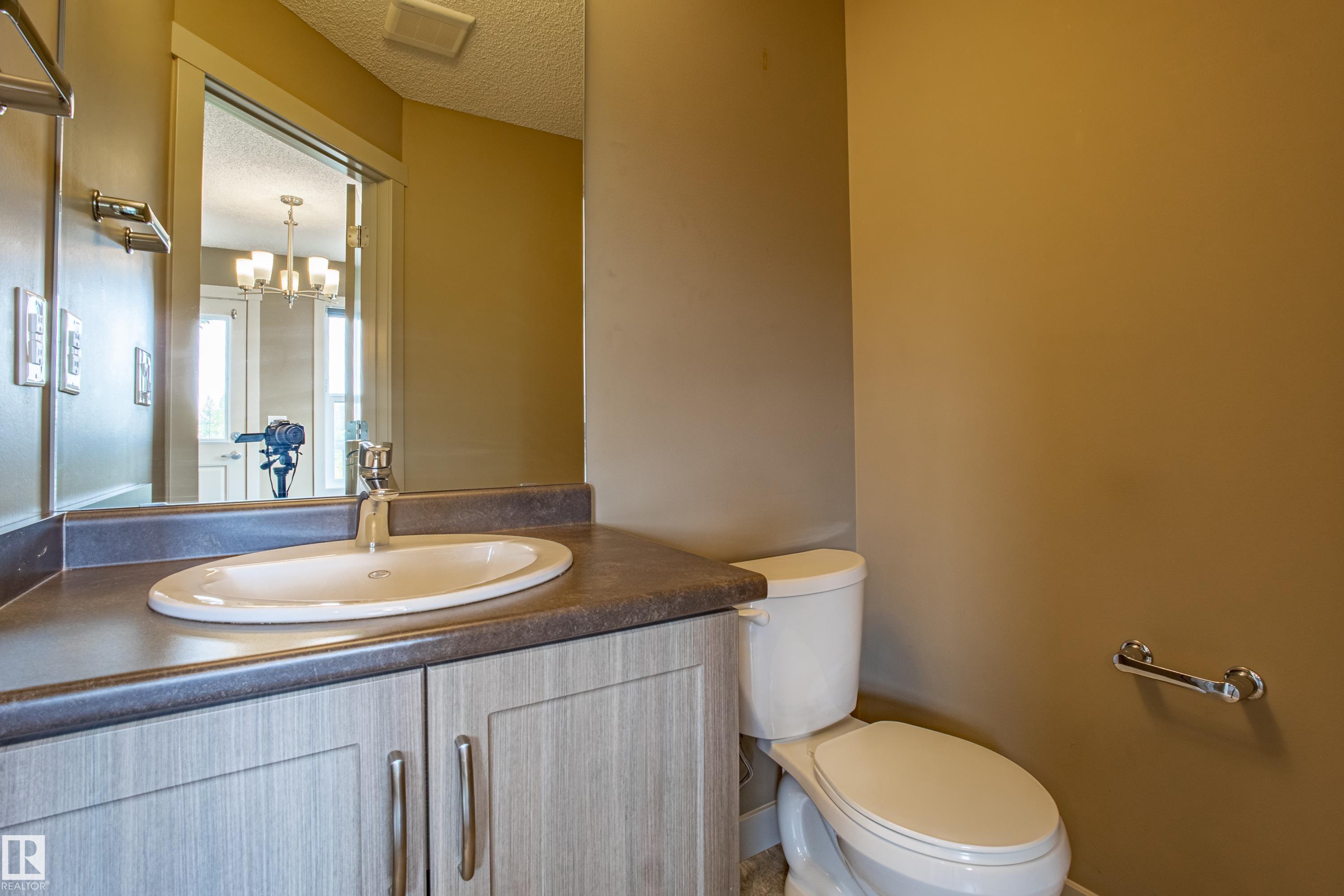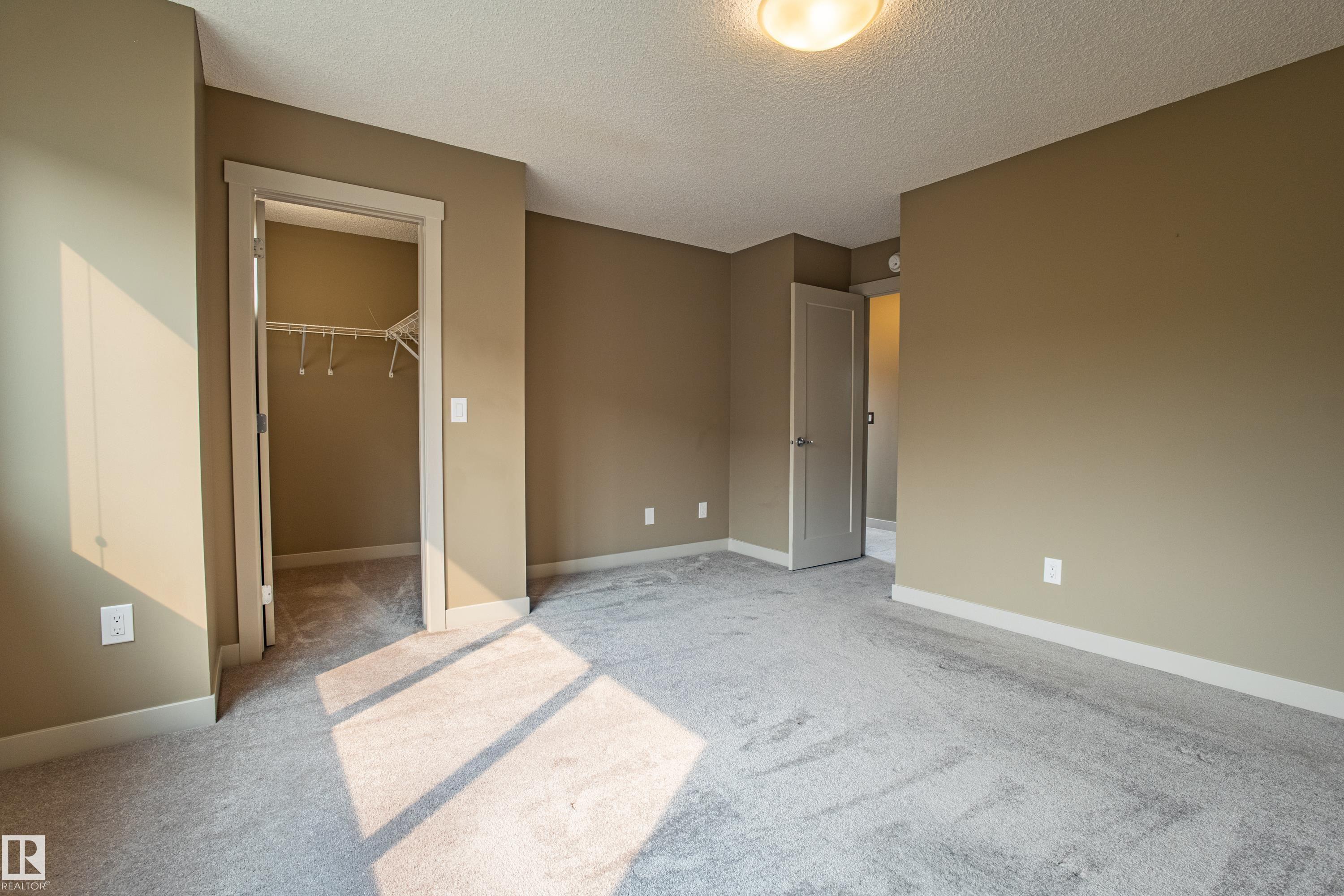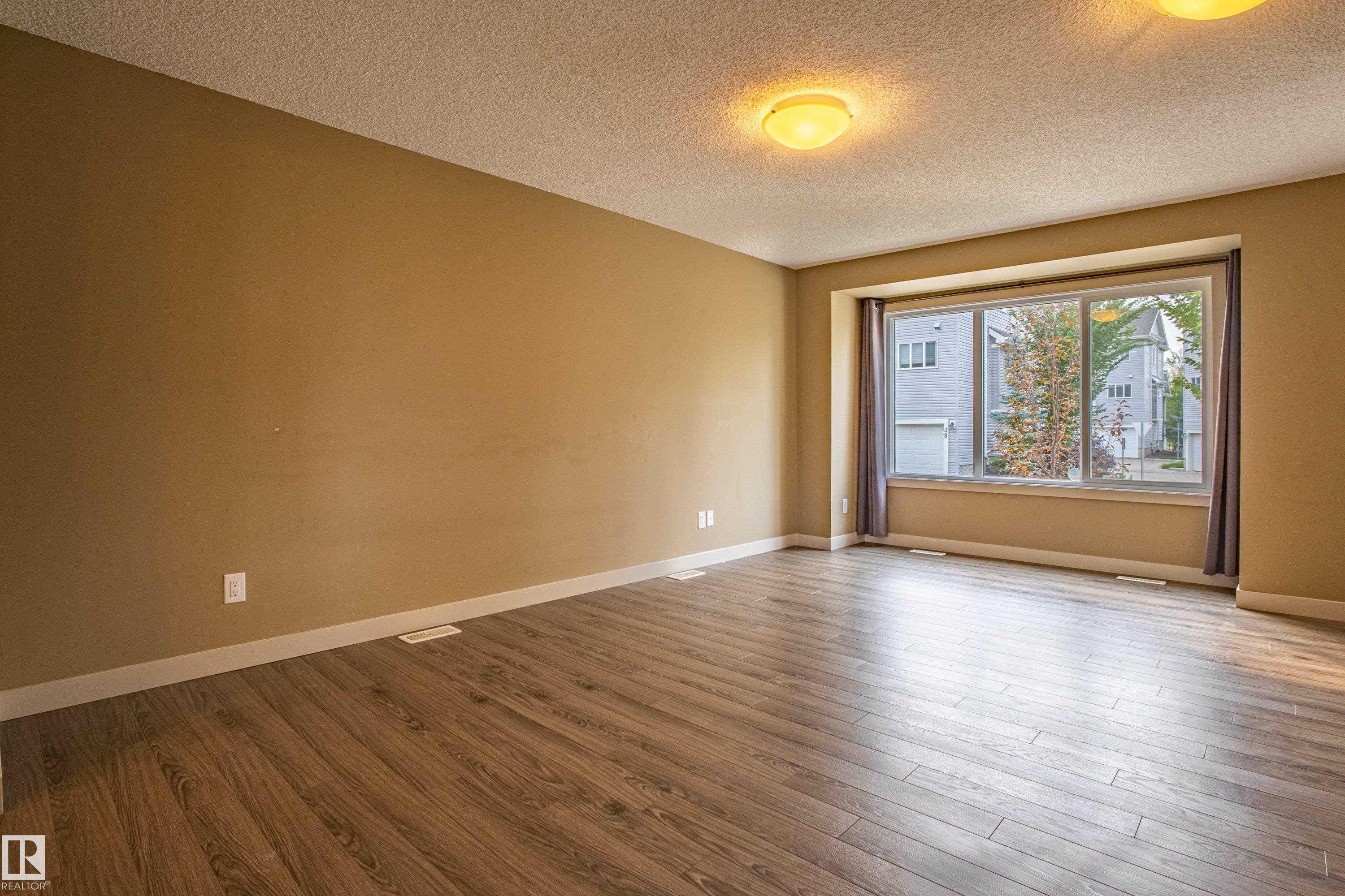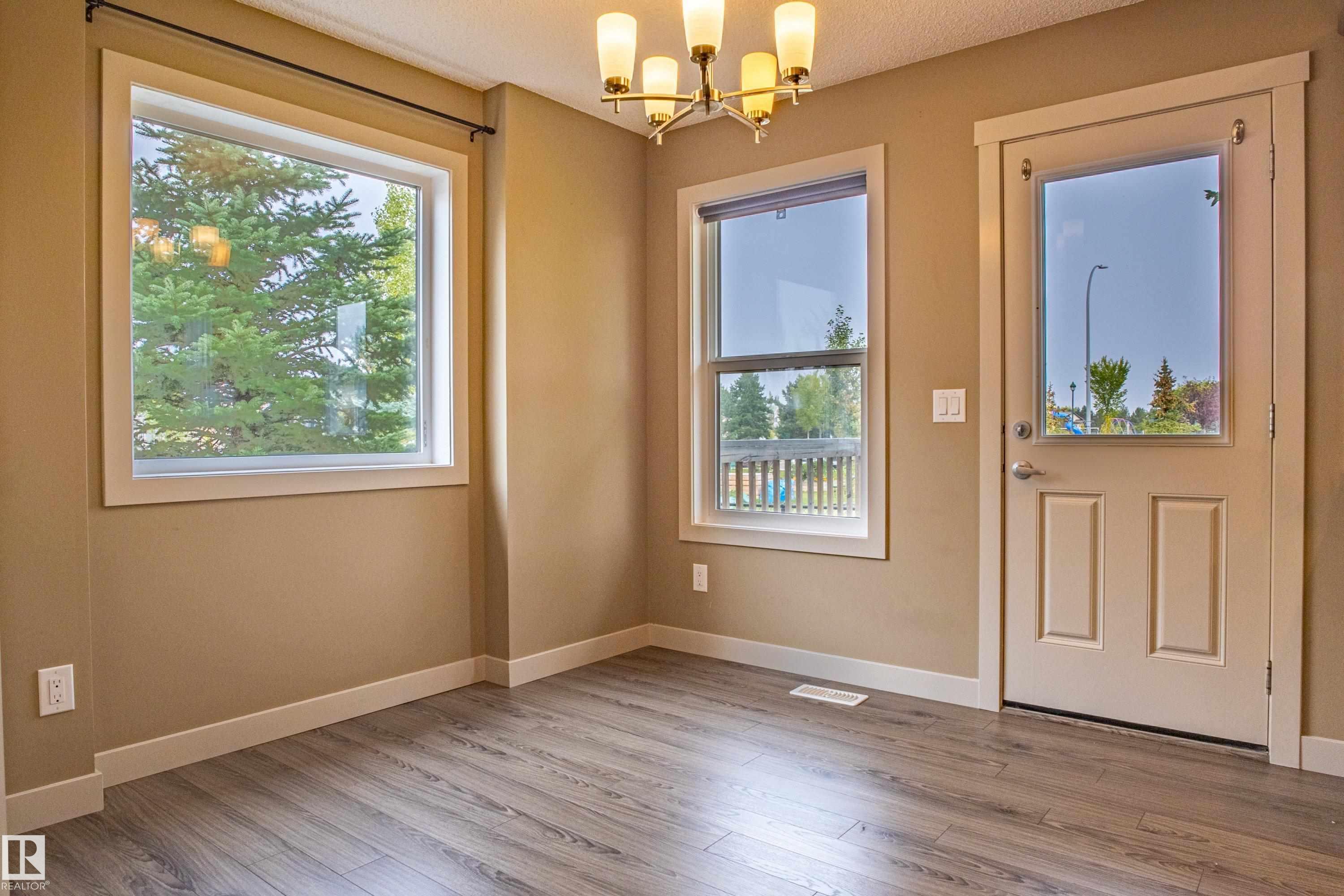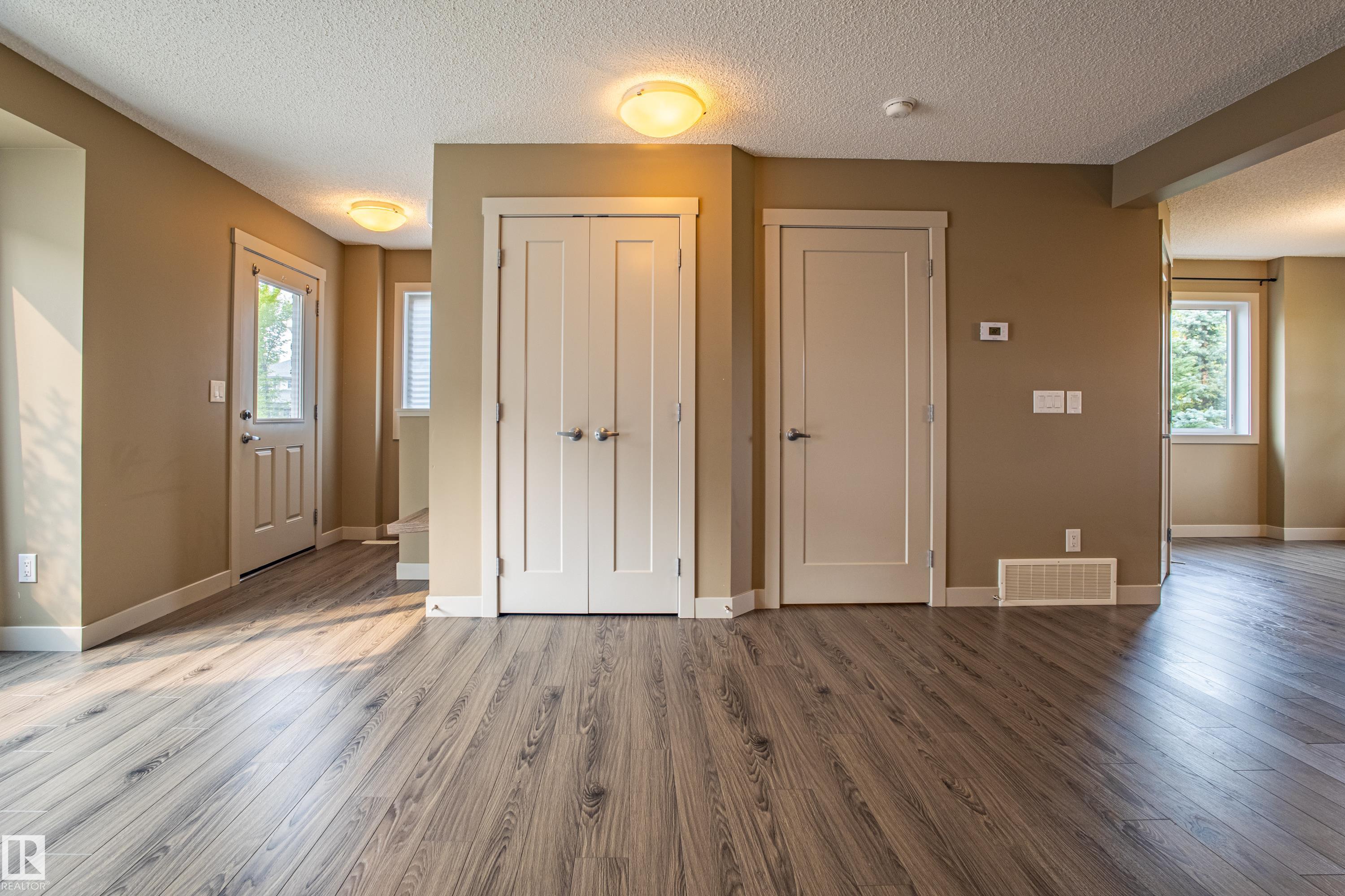 Welcome to Haddow Landing! This air-conditioned, bright south-facing 3-bedroom townhouse includes ***two titled parking stalls right in front of your door*** The two-storey layout is filled with natural light and features an unfinished basement ready for your customization. The main floor offers premium vinyl plank flooring, stainless steel appliances, ^black granite countertops^, and a half bath. Upstairs you'll find 3 bedrooms and a full bath, with the primary boasting a large walk-in closet. The unit is quietly tucked into the interior of the complex, away from traffic noise. Out back, enjoy a private deck with natural gas BBQ hookup overlooking Haddow Community Park with the Ridge Community Center, playground, hockey rink, and sports fields just a short walk away. Fantastic location only one minute to Terwillegar Drive, close to The Currents at Windermere, and transit is right outside the complex. This home is ready for you!