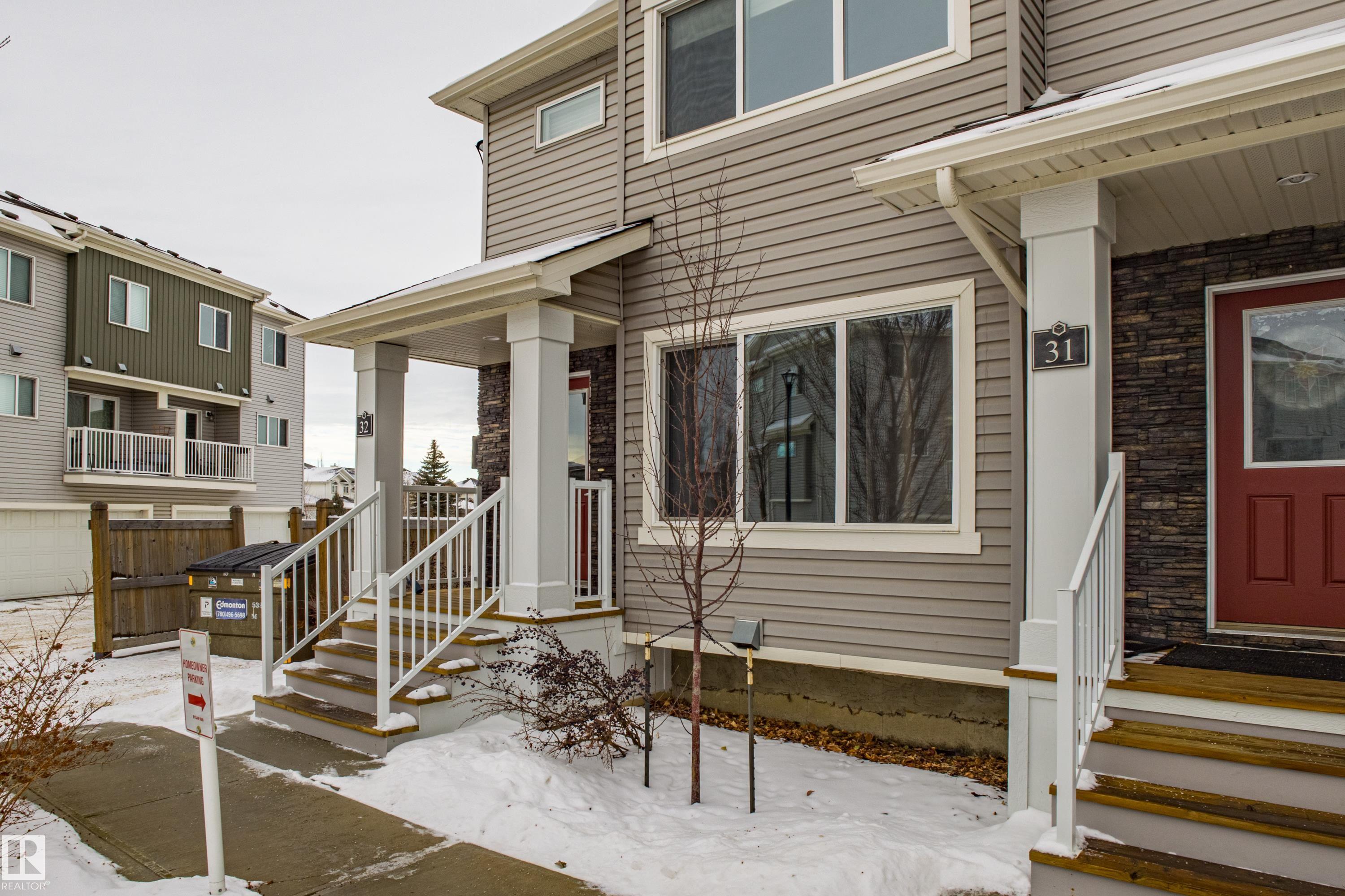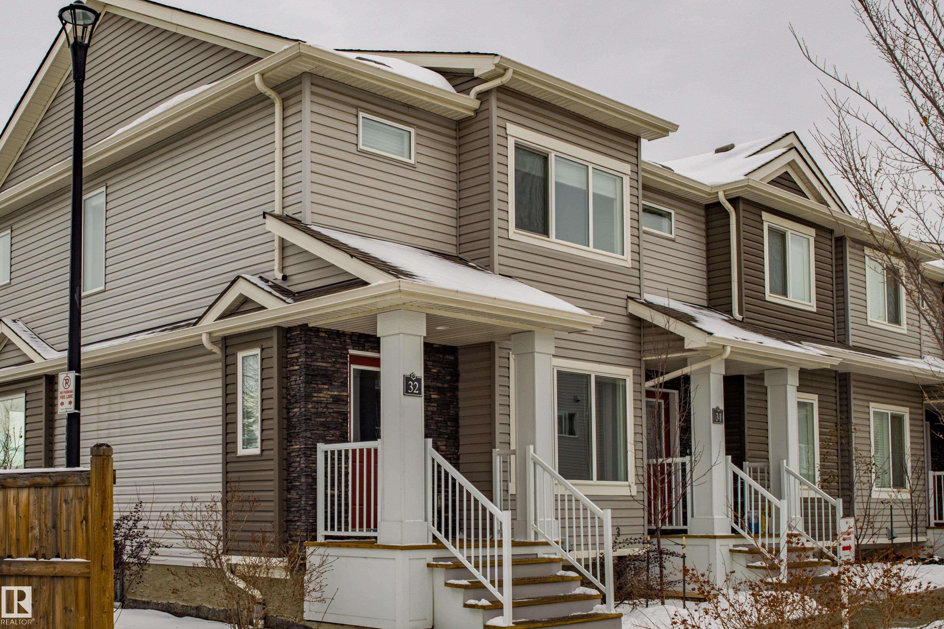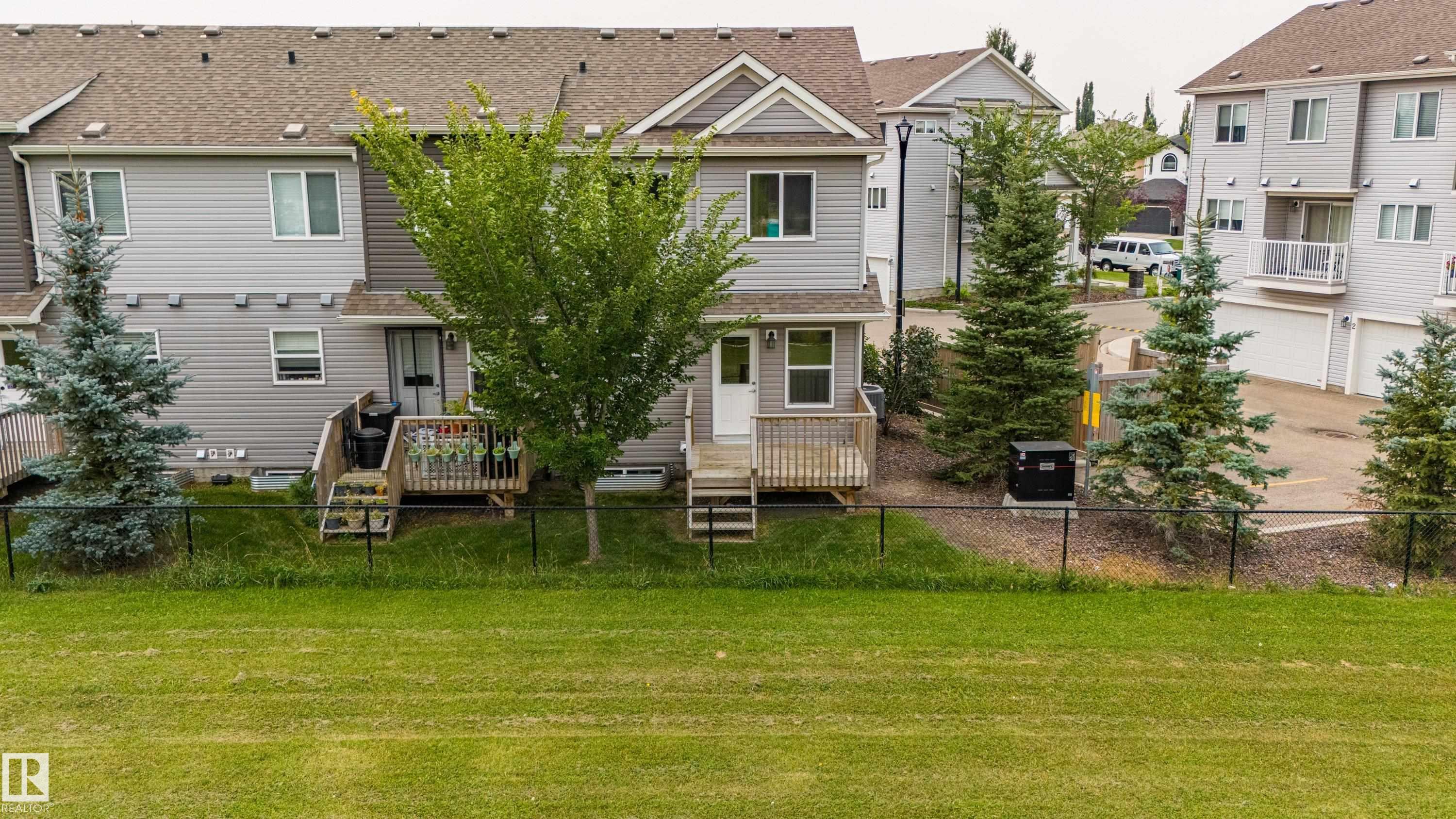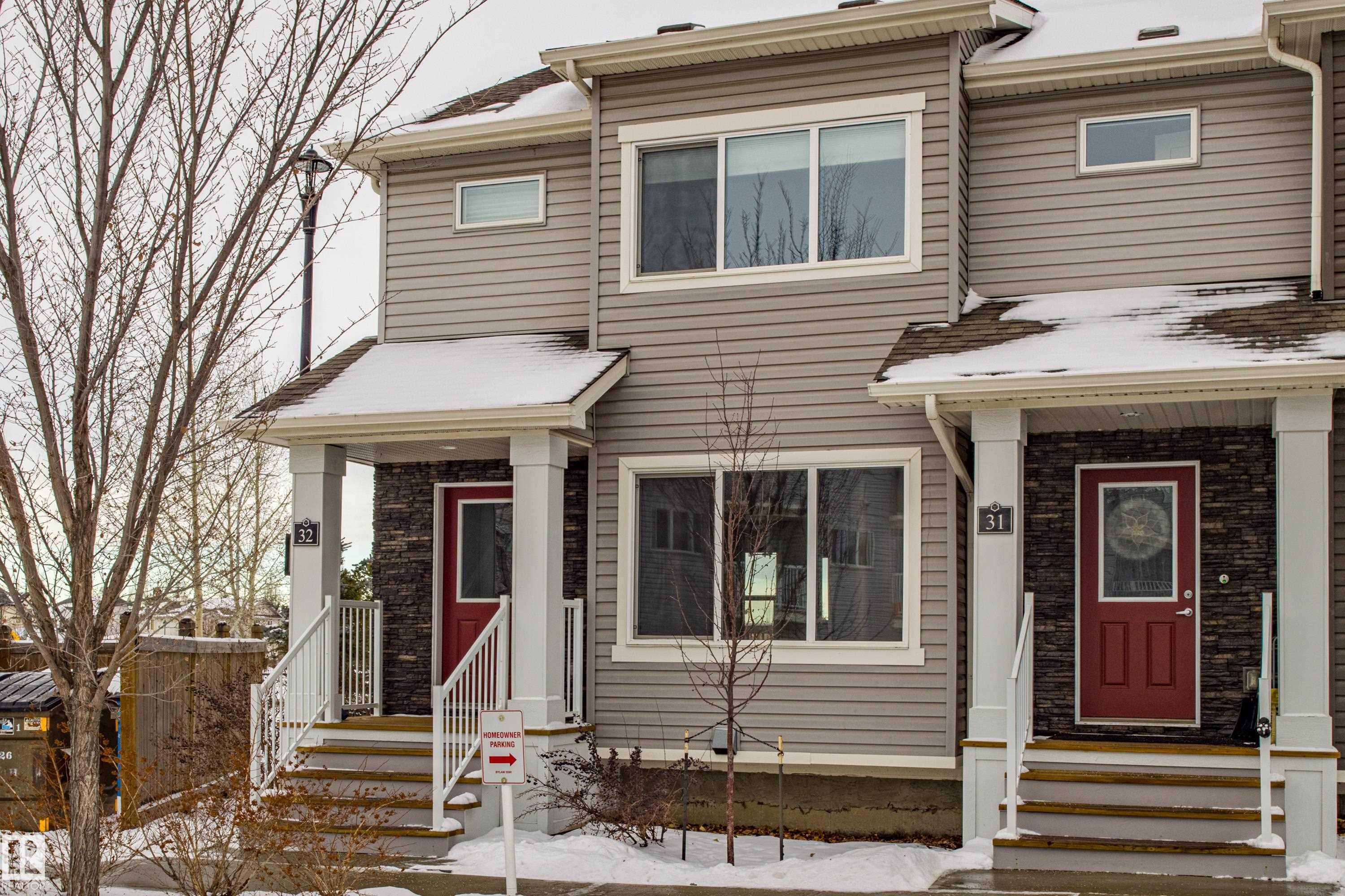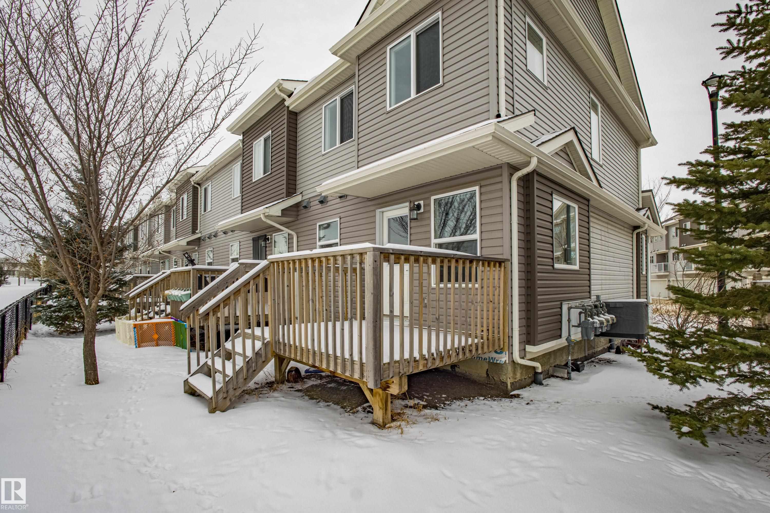 Welcome to Haddow Landing! This air-conditioned, bright south-facing 3-bedroom townhouse includes ***two titled parking stalls right in front of your door*** The two-storey layout is filled with natural light and features an unfinished basement ready for your customization. The main floor offers premium vinyl plank flooring, stainless steel appliances, ^black granite countertops^, and a half bath. Upstairs you'll find 3 bedrooms and a full bath, with the primary boasting a large walk-in closet. The unit is quietly tucked into the interior of the complex, away from traffic noise. Out back, enjoy a private deck with natural gas BBQ hookup overlooking Haddow Community Park with the Ridge Community Center, playground, hockey rink, and sports fields just a short walk away. Fantastic location only one minute to Terwillegar Drive, close to The Currents at Windermere, and transit is right outside the complex. This home is ready for you!