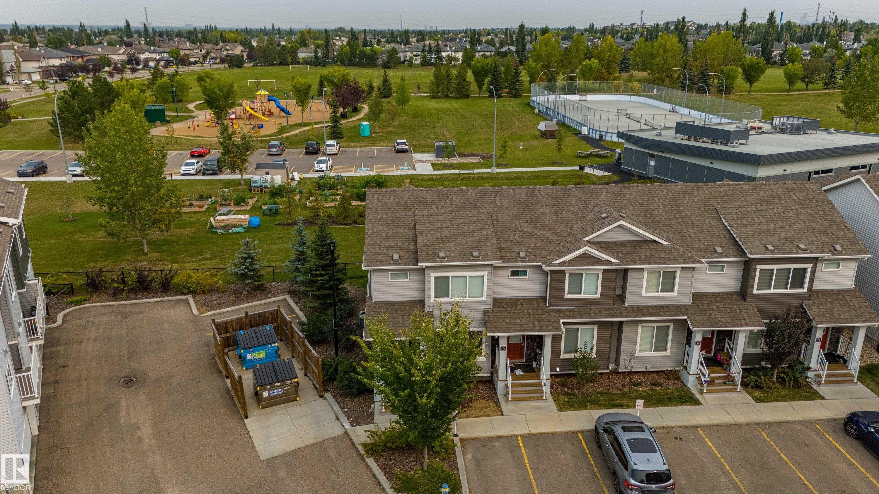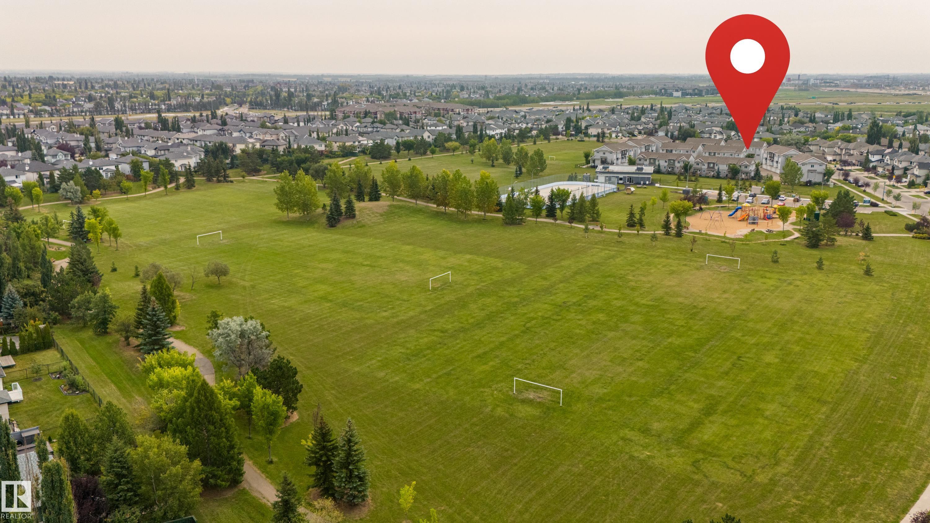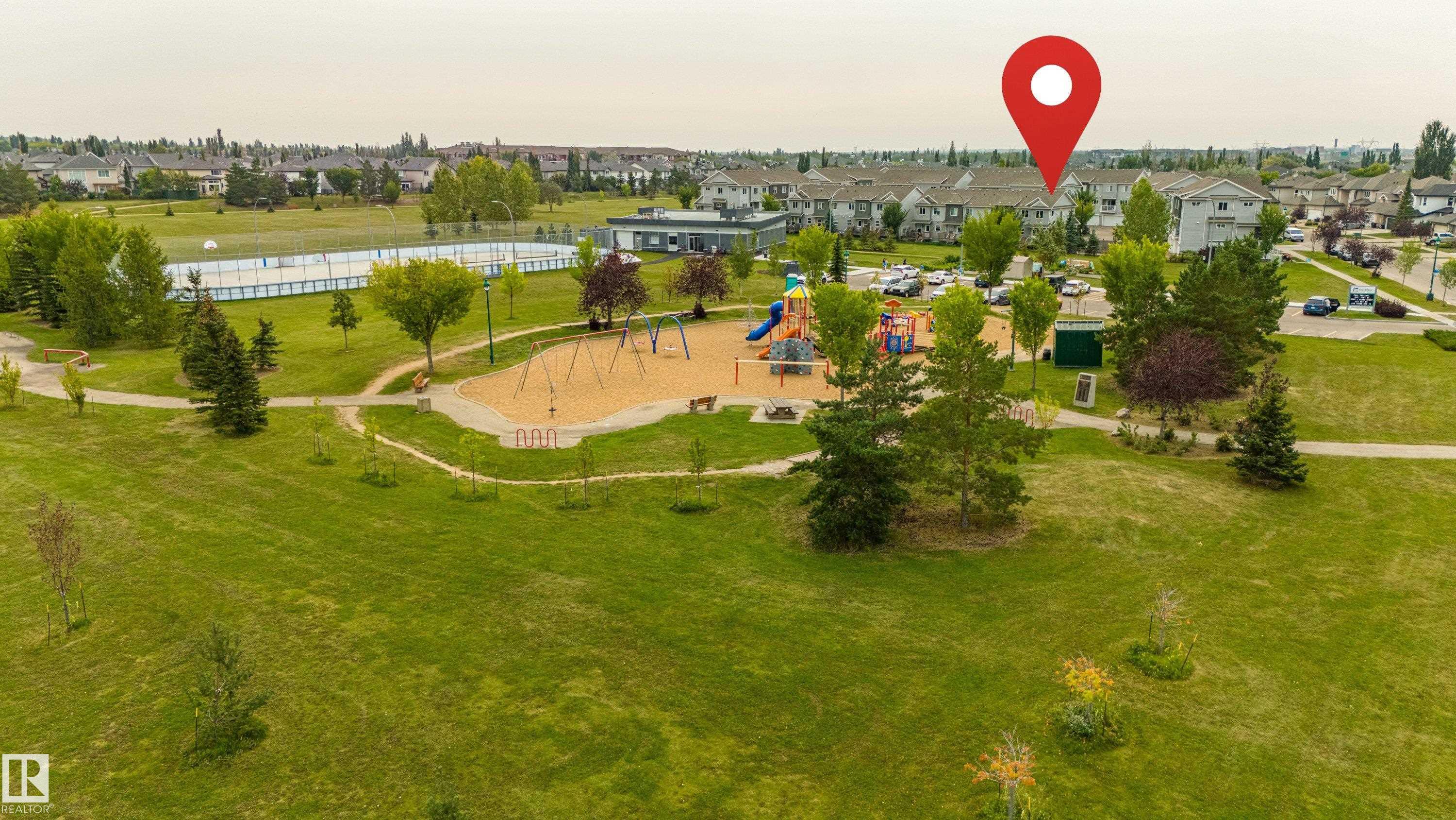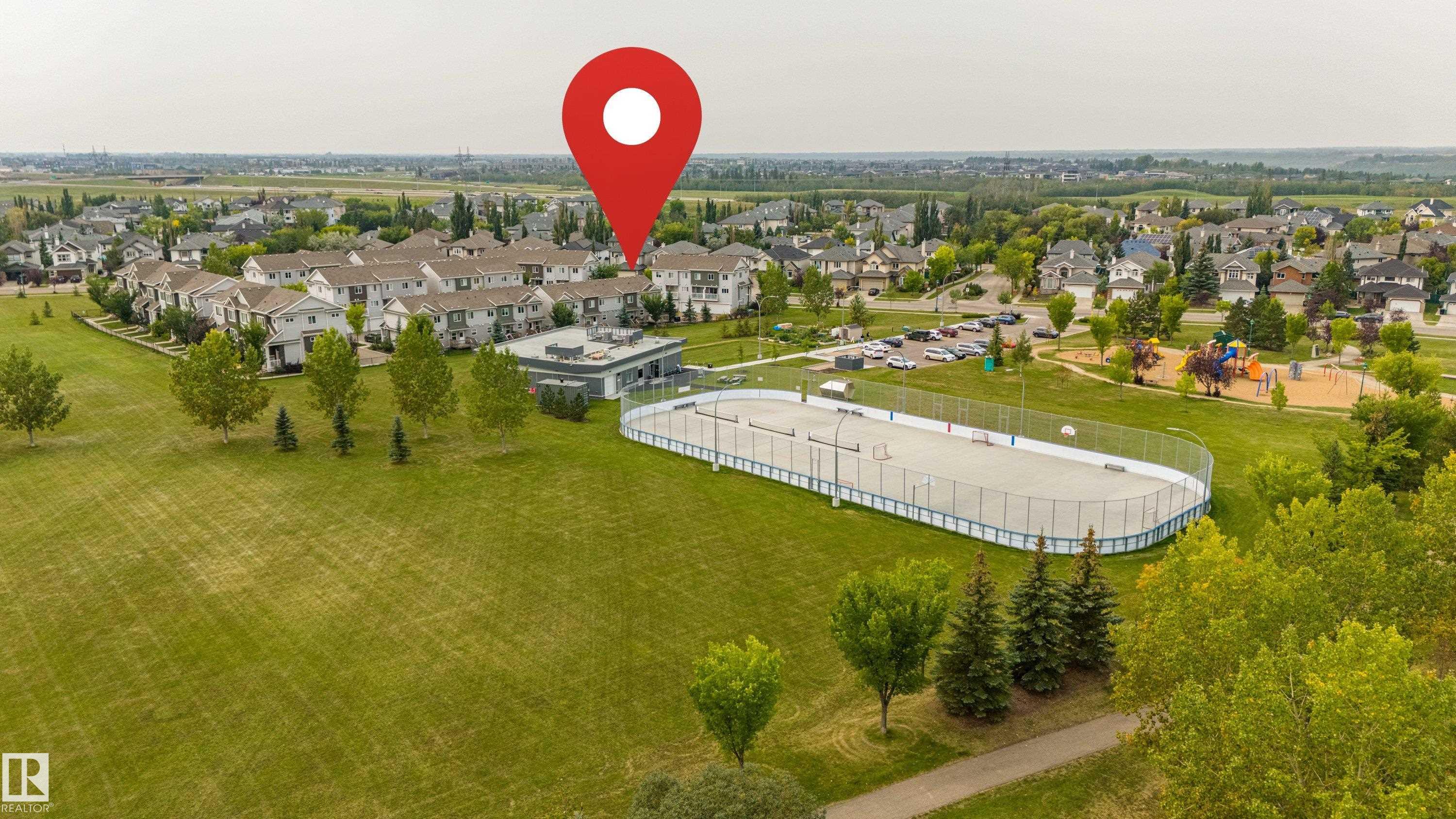 Welcome to Haddow Landing! This air-conditioned, bright south-facing 3-bedroom townhouse includes ***two titled parking stalls right in front of your door*** The two-storey layout is filled with natural light and features an unfinished basement ready for your customization. The main floor offers premium vinyl plank flooring, stainless steel appliances, ^black granite countertops^, and a half bath. Upstairs you'll find 3 bedrooms and a full bath, with the primary boasting a large walk-in closet. The unit is quietly tucked into the interior of the complex, away from traffic noise. Out back, enjoy a private deck with natural gas BBQ hookup overlooking Haddow Community Park with the Ridge Community Center, playground, hockey rink, and sports fields just a short walk away. Fantastic location only one minute to Terwillegar Drive, close to The Currents at Windermere, and transit is right outside the complex. This home is ready for you!