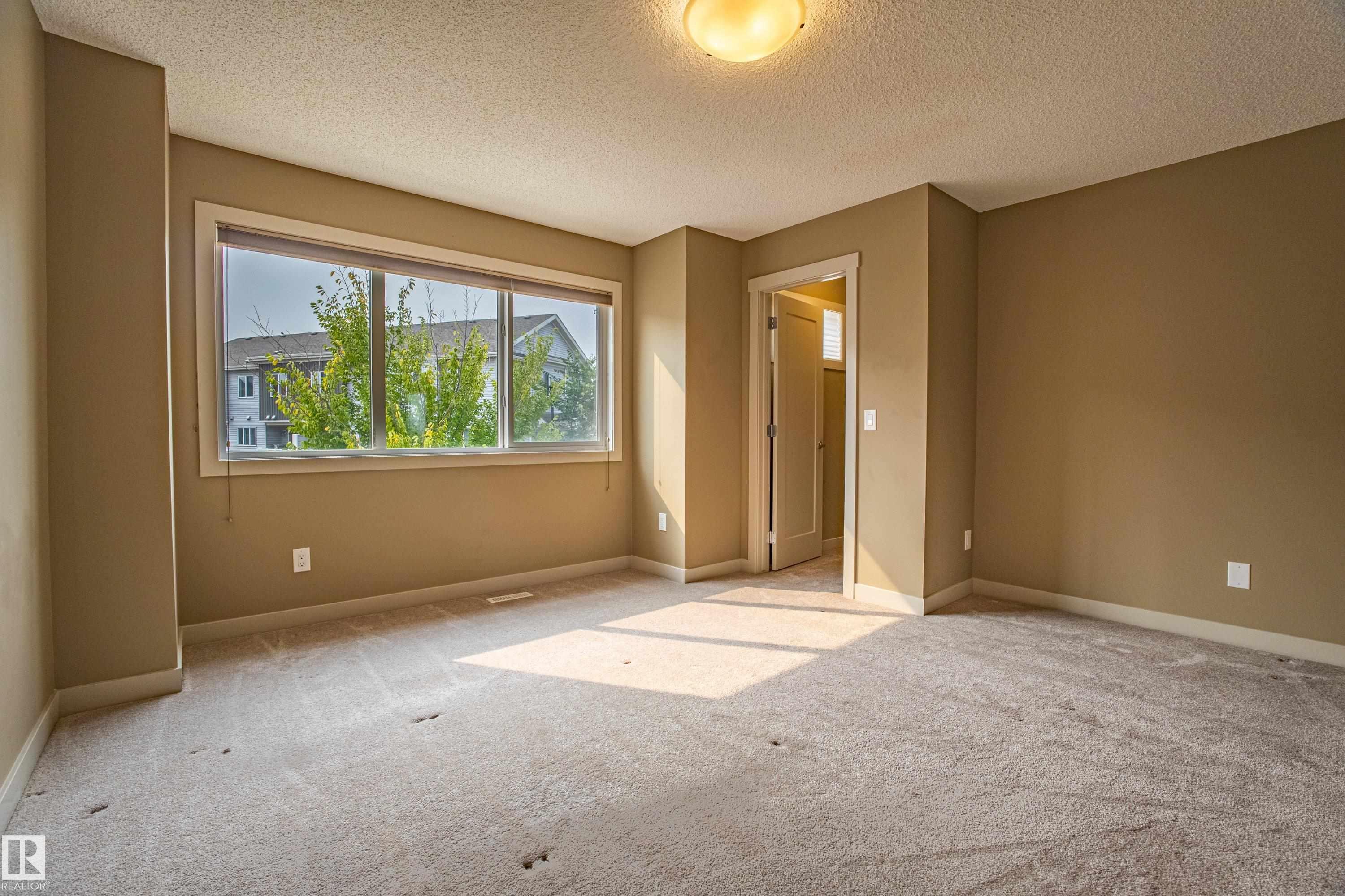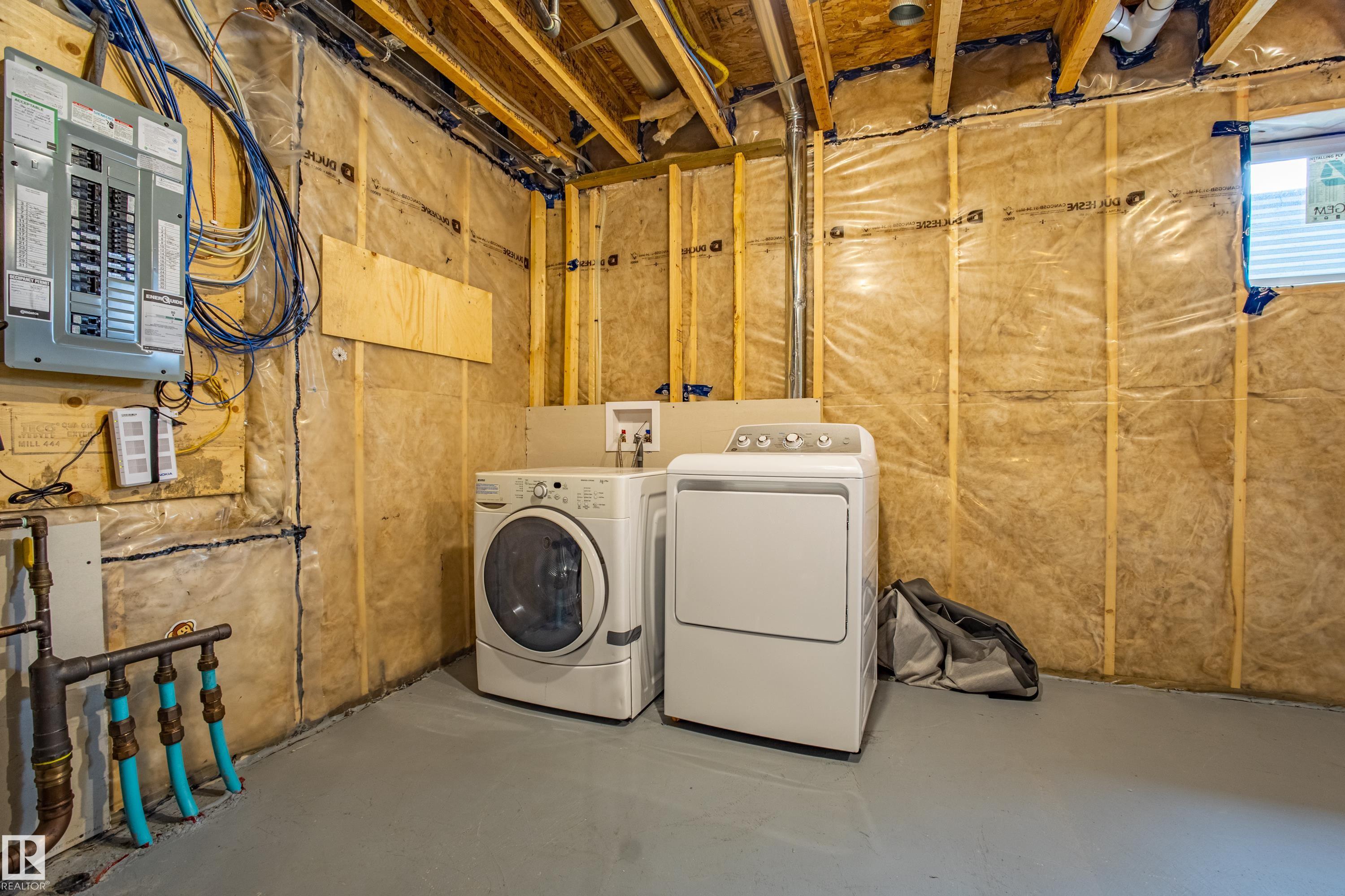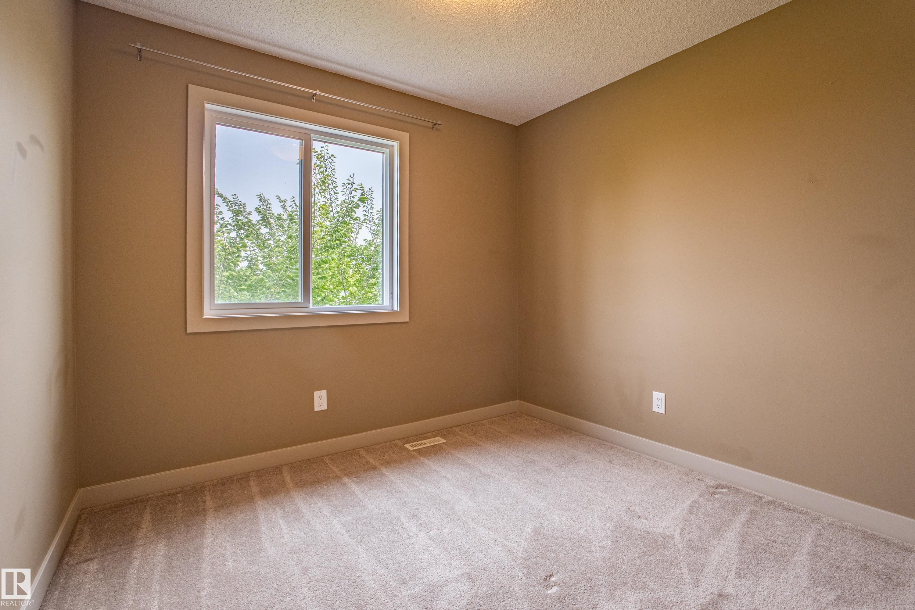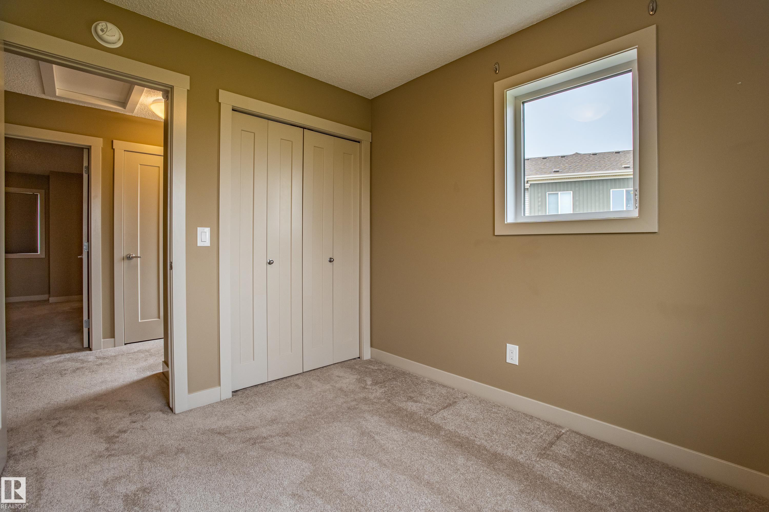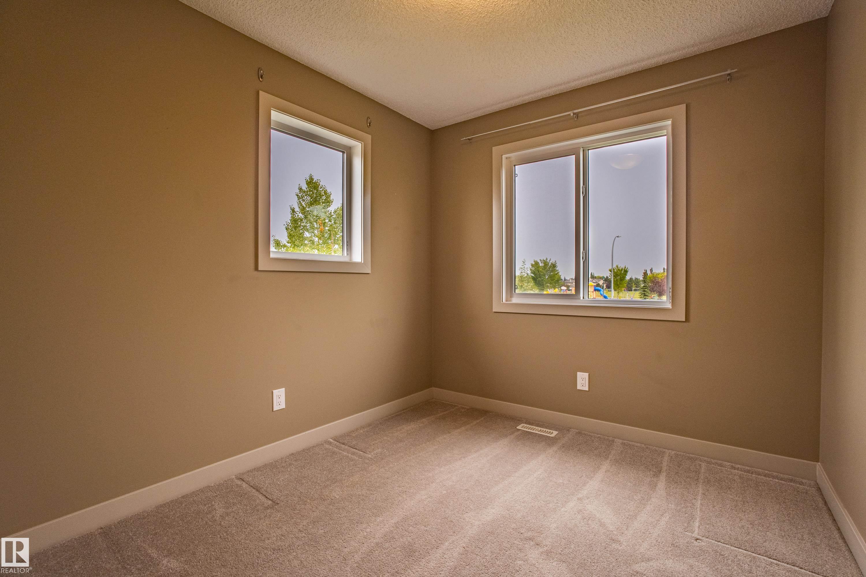 Welcome to Haddow Landing! This air-conditioned, bright south-facing 3-bedroom townhouse includes ***two titled parking stalls right in front of your door*** The two-storey layout is filled with natural light and features an unfinished basement ready for your customization. The main floor offers premium vinyl plank flooring, stainless steel appliances, ^black granite countertops^, and a half bath. Upstairs you'll find 3 bedrooms and a full bath, with the primary boasting a large walk-in closet. The unit is quietly tucked into the interior of the complex, away from traffic noise. Out back, enjoy a private deck with natural gas BBQ hookup overlooking Haddow Community Park with the Ridge Community Center, playground, hockey rink, and sports fields just a short walk away. Fantastic location only one minute to Terwillegar Drive, close to The Currents at Windermere, and transit is right outside the complex. This home is ready for you!