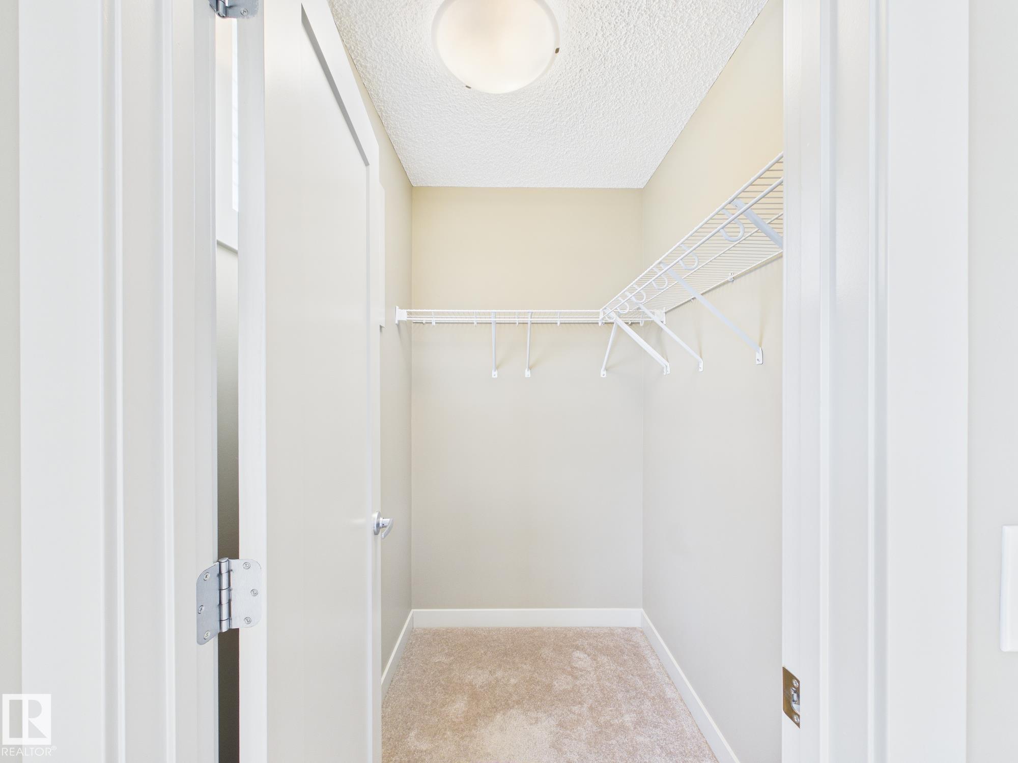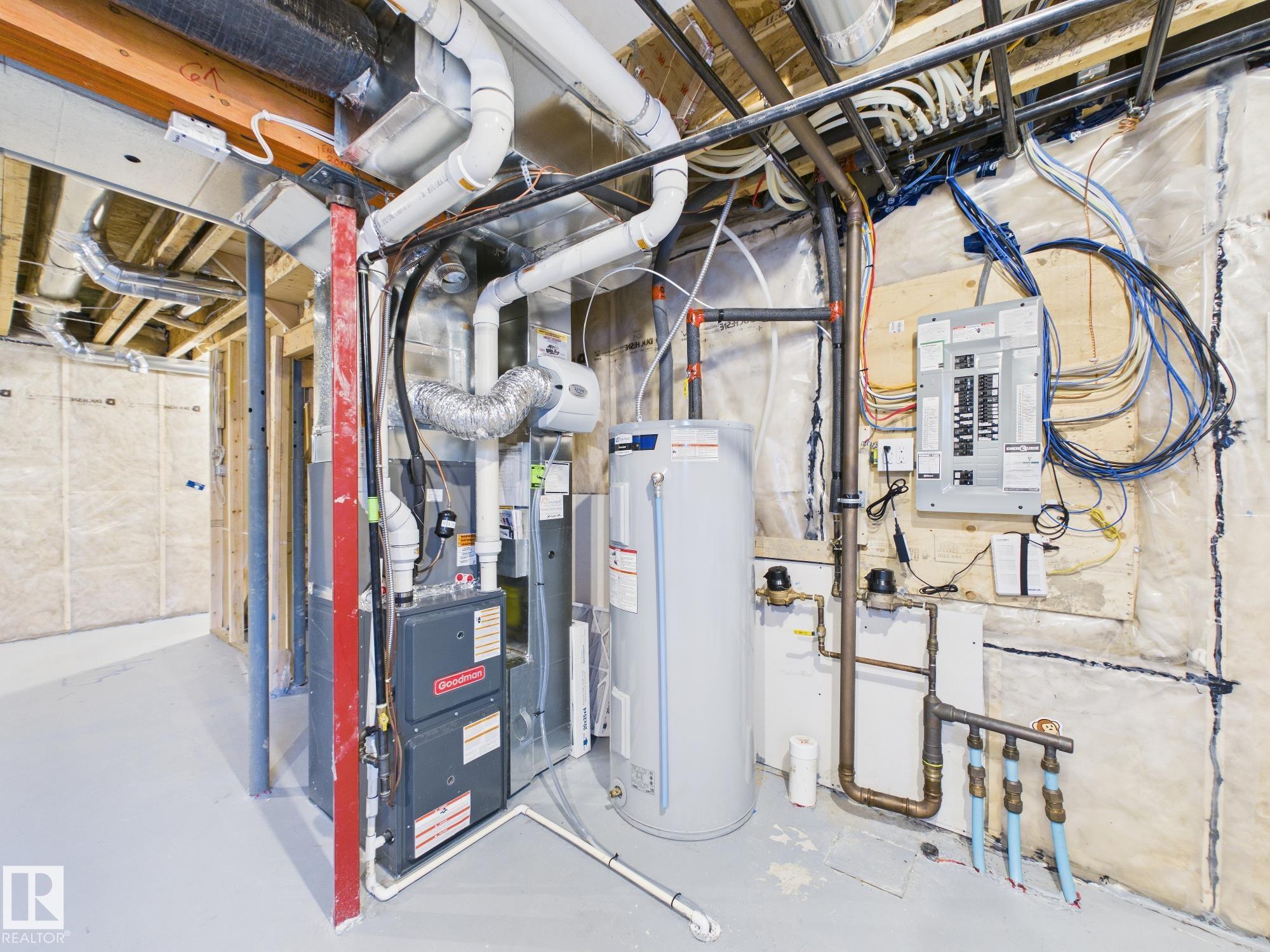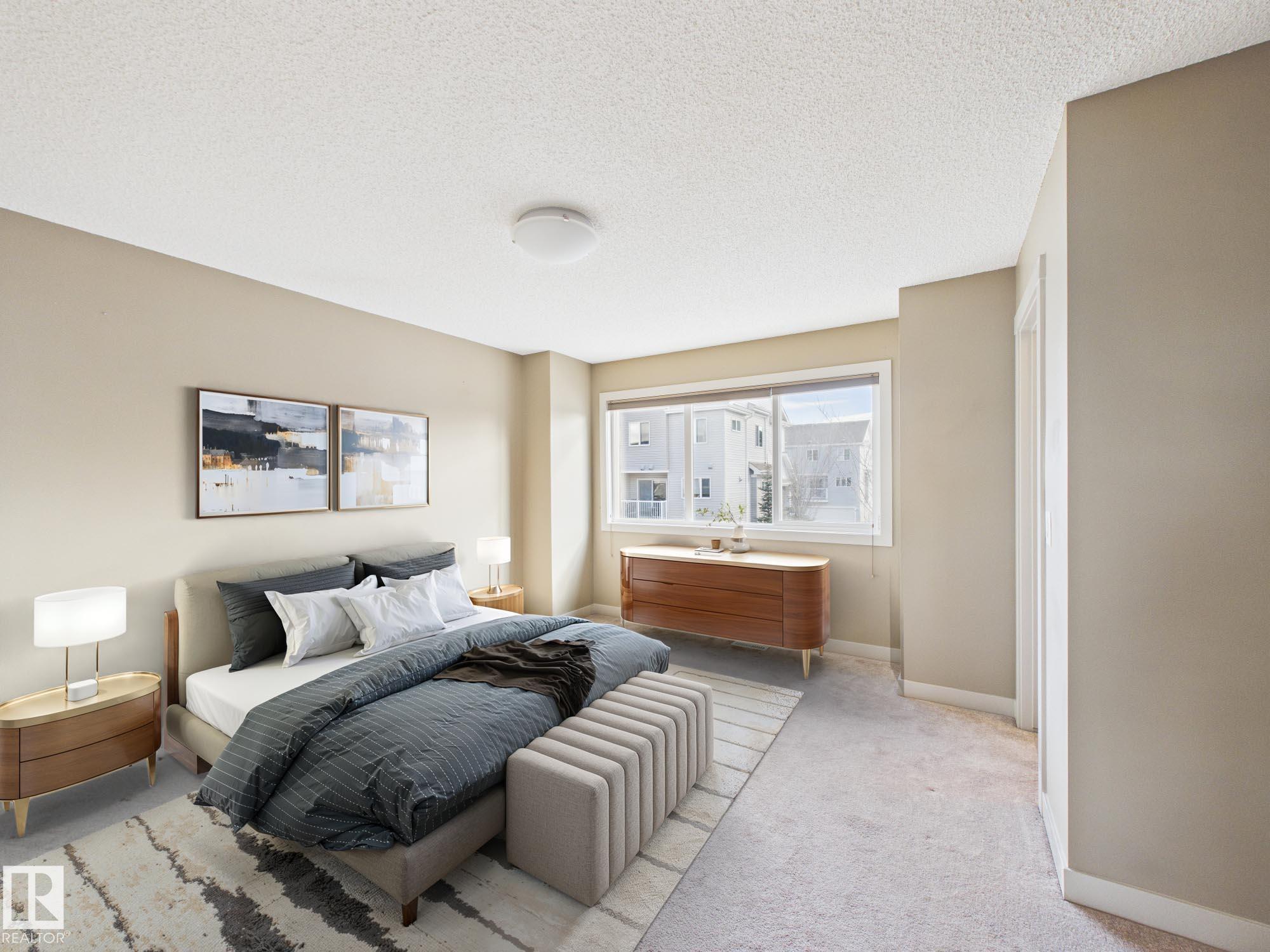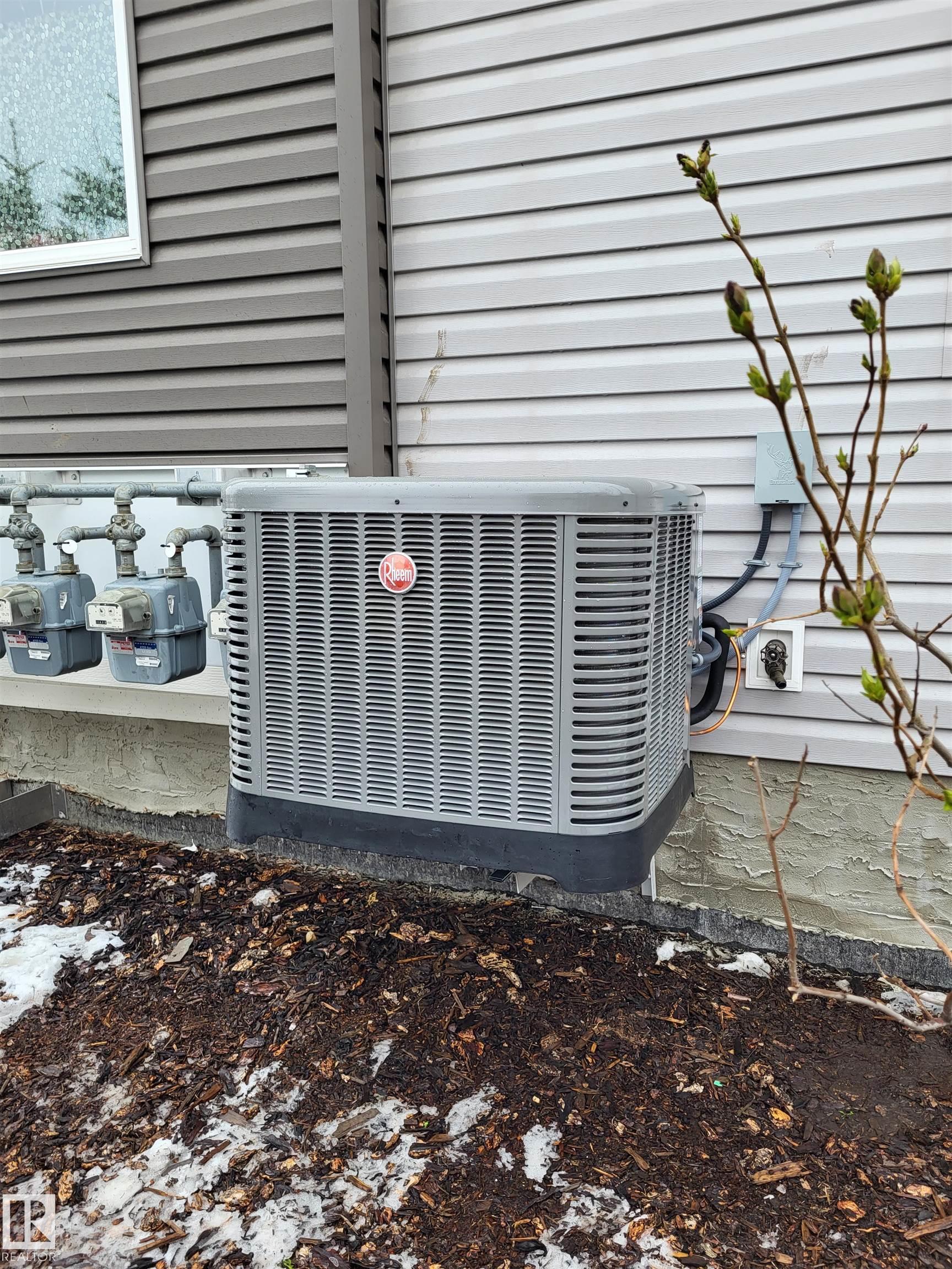 Welcome to Haddow Landing! This beautifully maintained, air-conditioned, south-facing 3-bedroom townhouse offers comfort, style, and family-friendly living, complete with two titled parking stalls right at your front door. Bright 2-storey layout features vinyl plank flooring, stainless steel appliances, and black granite countertops, and the main floor includes a convenient half bath. The Upstairs offers 3 bedrooms and a full bath, including a spacious primary with a walk-in closet. The unfinished basement provides excellent potential for future development. Tucked inside the complex for added privacy, enjoy a quiet setting with a private deck and natural gas BBQ hookup overlooking Haddow Community Park. Just steps away, The Ridge Community Centre offers ice rinks, basketball, pickleball, roller hockey, a community garden, and year-round events. Minutes to Terwillegar Drive, The Currents at Windermere, and transit right outside your door. (Some photos are Virtually Staged)