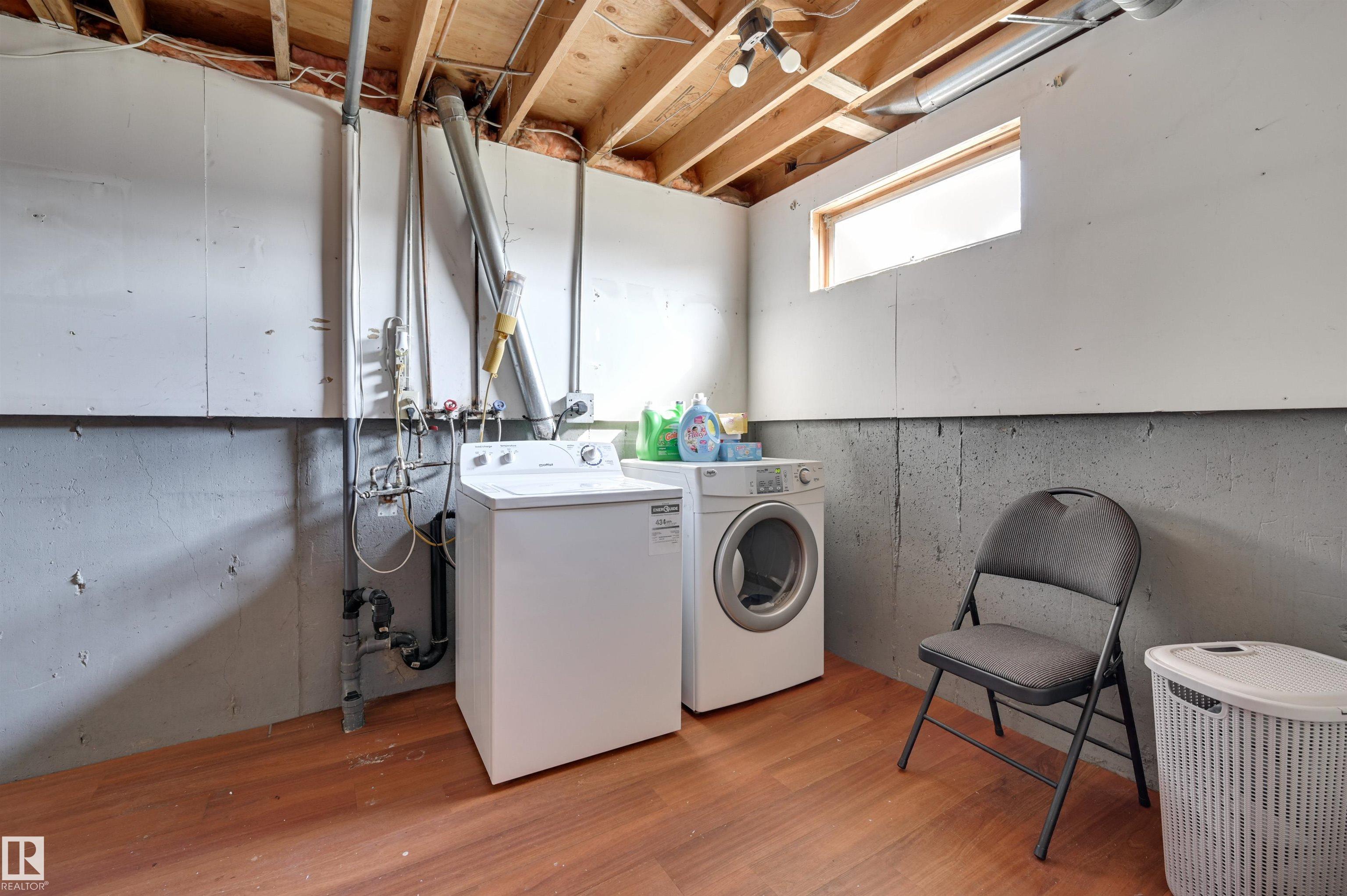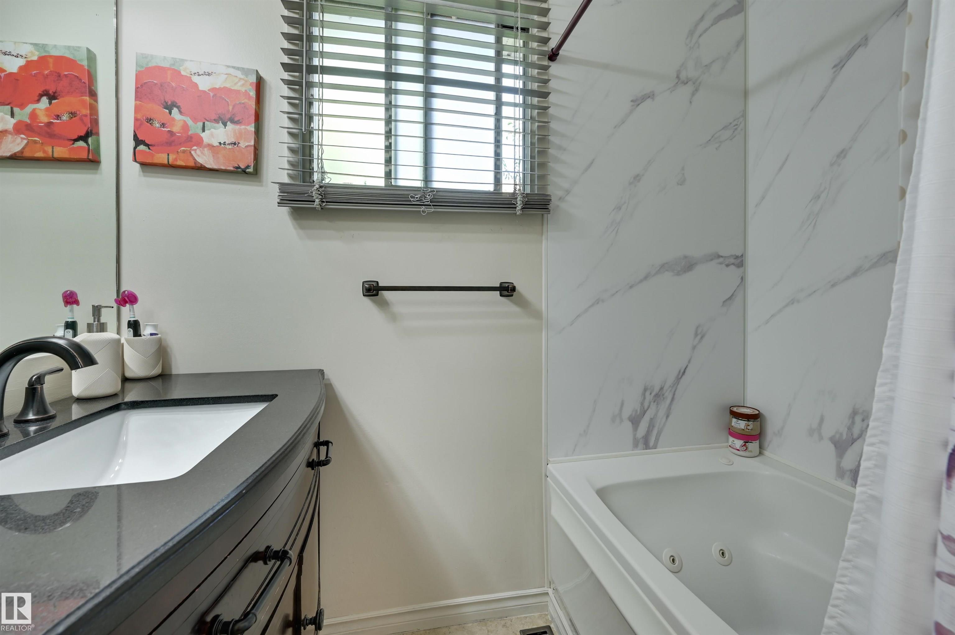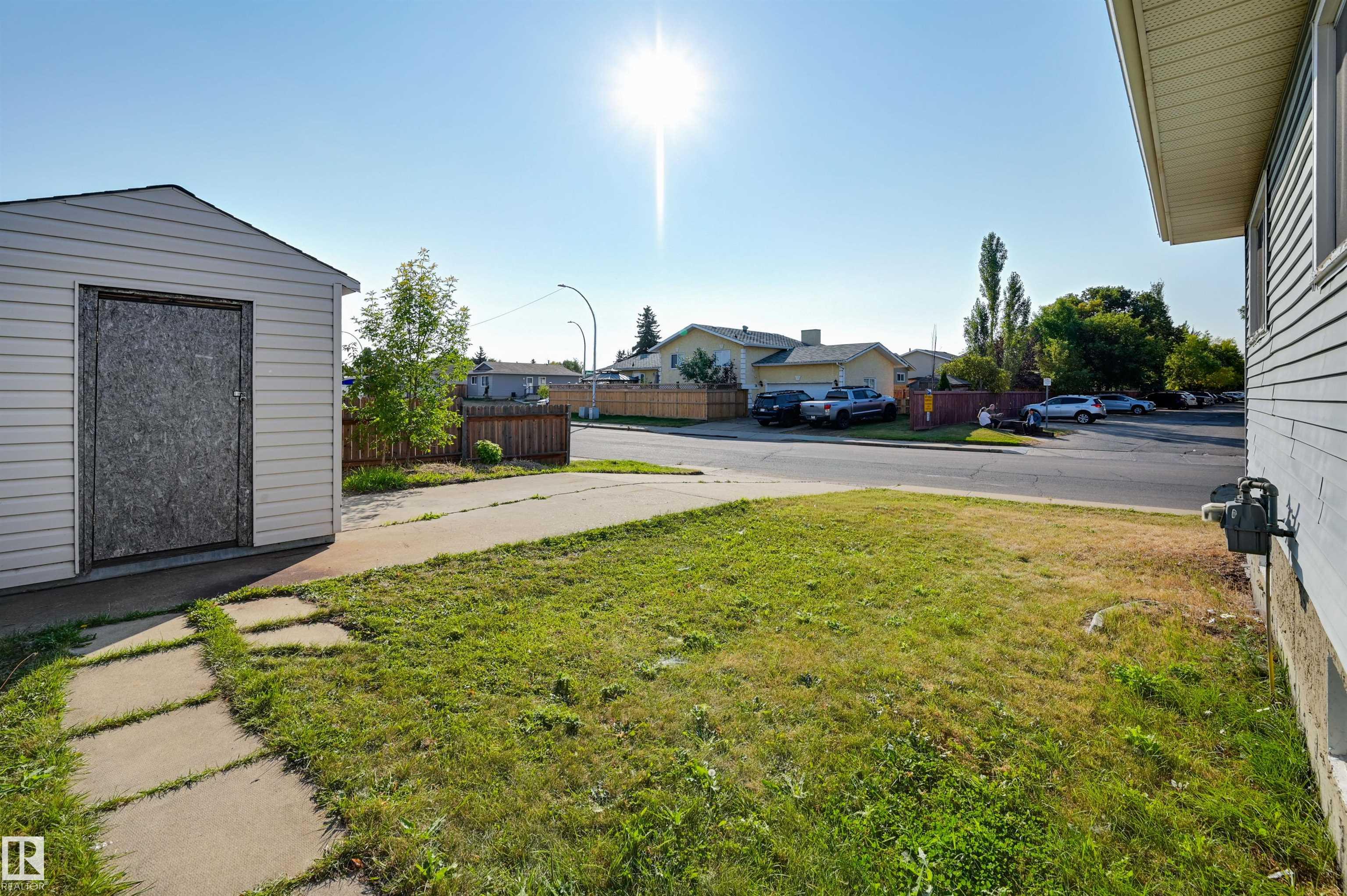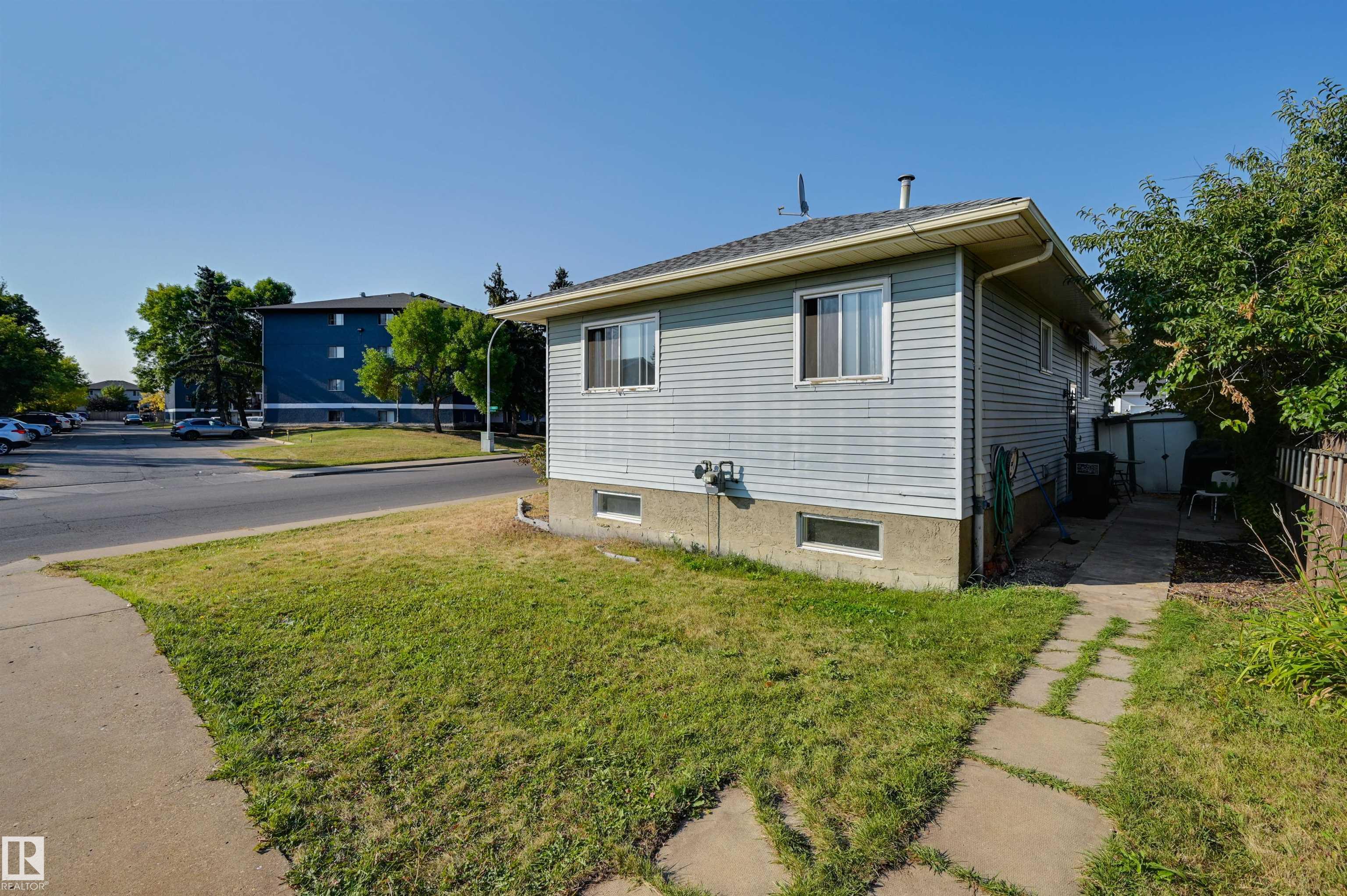 In a superb location sits this well-kept, freshly painted 3-bedroom bungalow with a partially finished basement. Step inside, you'll find a clean well-laid-out floor plan that the owners have maintained over the years. The main floor features a large sun-filled living room, a spacious, bright dining area, and a functional kitchen with newer cabinets and countertops. Down the hall is a remodeled bathroom with a jetted tub and spacious primary bedroom, along with two additional bedrooms. The basement has a rec room, houses the laundry room, a roughed-in bathroom and lots of storage. The large corner yard has plenty of room to entertain and play in, and with a little elbow grease, this yard will be a gem. Near all amenities, shopping, entertainment, professional services, minutes from the Henday, and other major routes. Perfect for first-time buyers, those wishing to downsize, and with a side entrance to the basement, an opportunity for investors. All around this home checks many boxes.