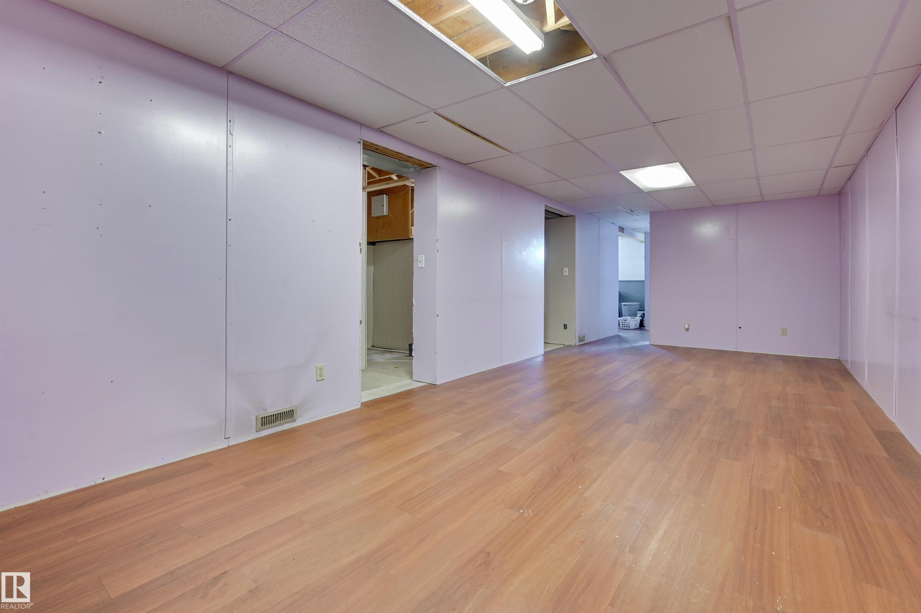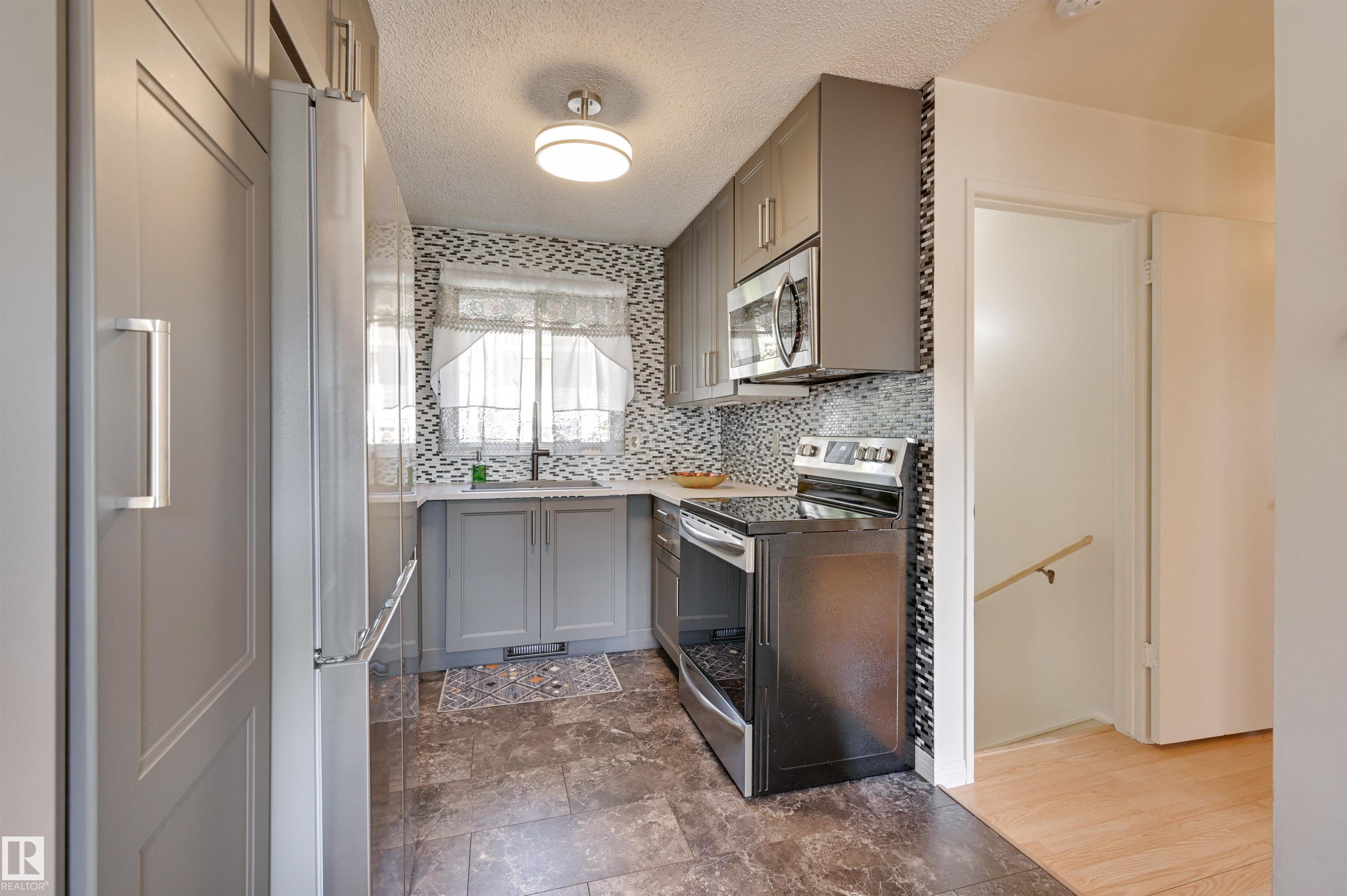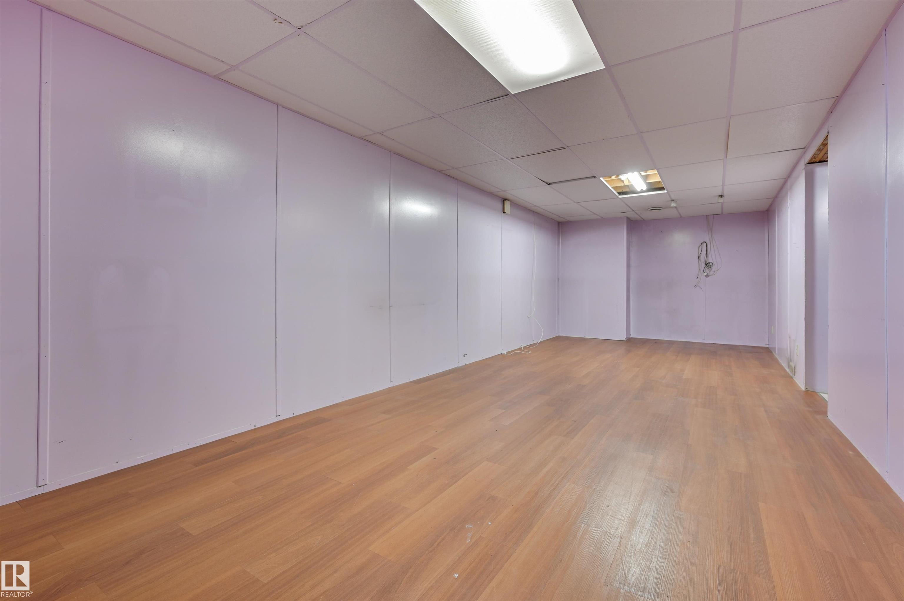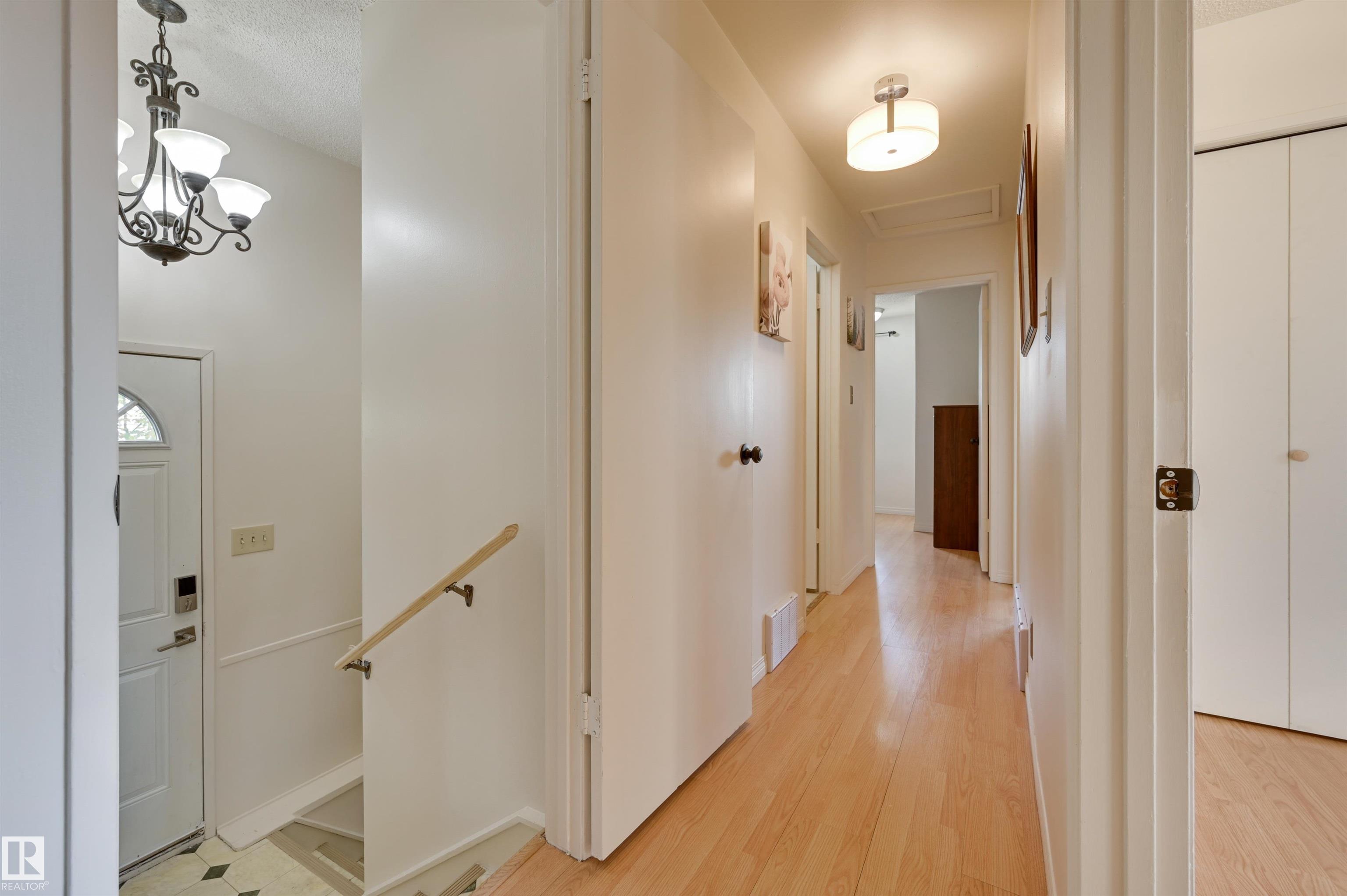 In a superb location sits this well-kept, freshly painted 3-bedroom bungalow with a partially finished basement. Step inside, you'll find a clean well-laid-out floor plan that the owners have maintained over the years. The main floor features a large sun-filled living room, a spacious, bright dining area, and a functional kitchen with newer cabinets and countertops. Down the hall is a remodeled bathroom with a jetted tub and spacious primary bedroom, along with two additional bedrooms. The basement has a rec room, houses the laundry room, a roughed-in bathroom and lots of storage. The large corner yard has plenty of room to entertain and play in, and with a little elbow grease, this yard will be a gem. Near all amenities, shopping, entertainment, professional services, minutes from the Henday, and other major routes. Perfect for first-time buyers, those wishing to downsize, and with a side entrance to the basement, an opportunity for investors. All around this home checks many boxes.