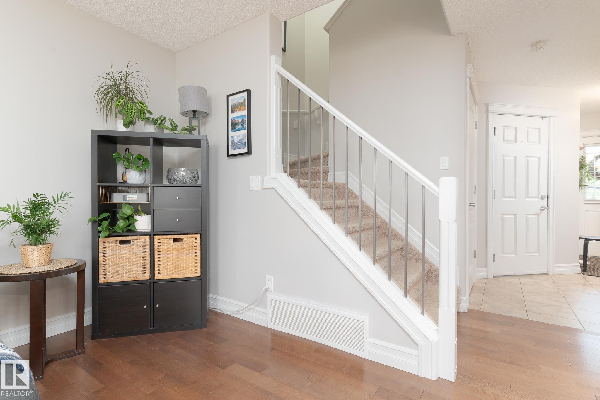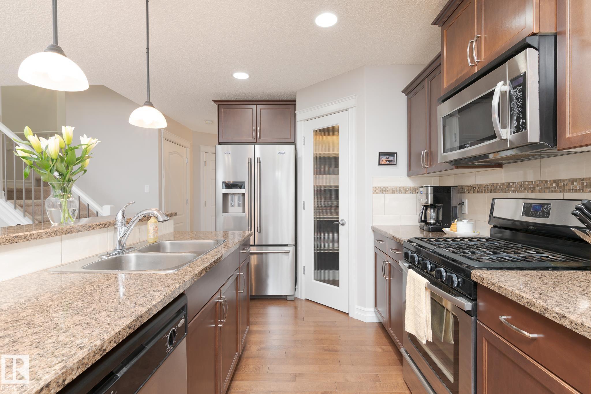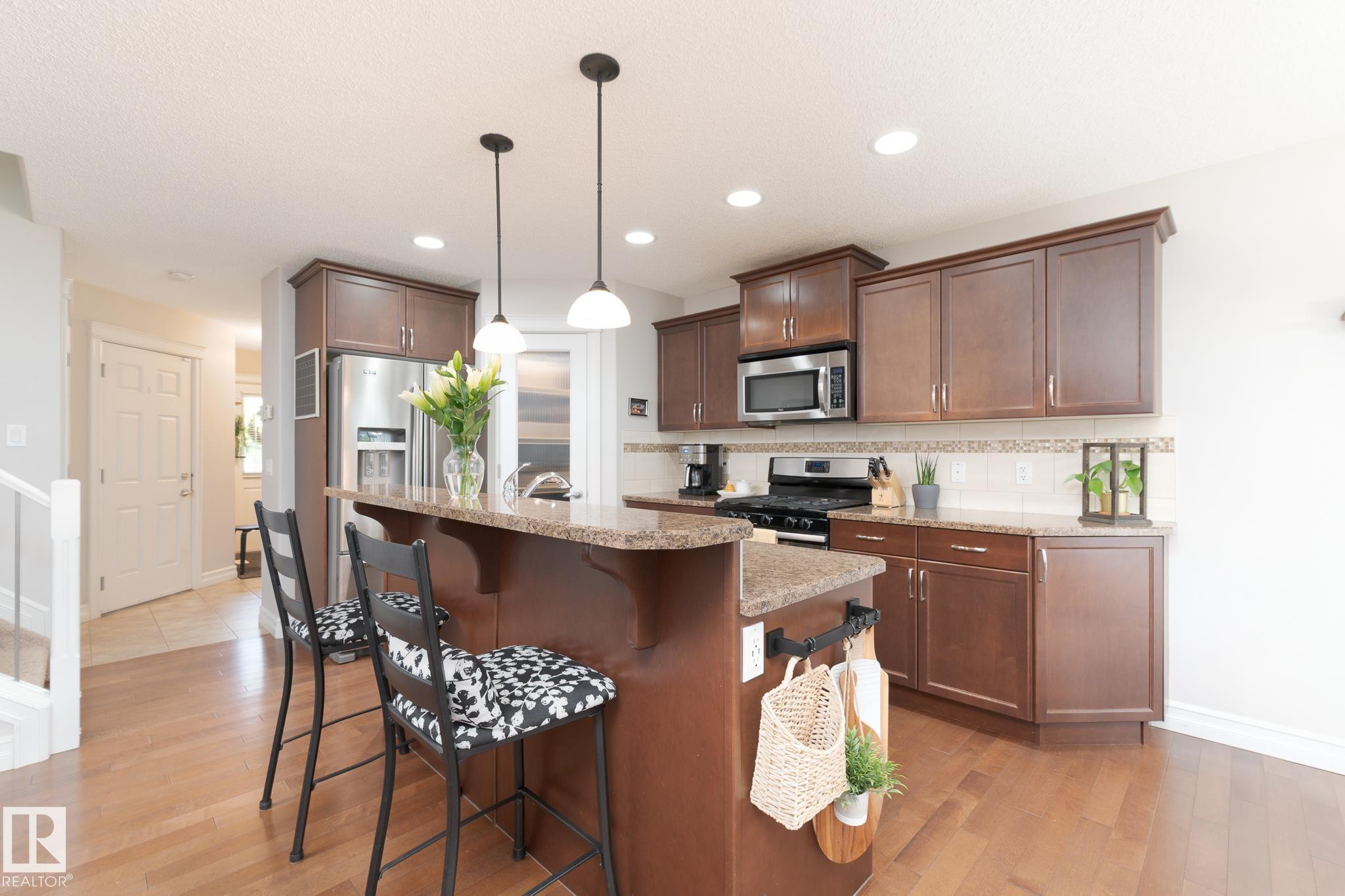 Located in the heart of Laurel, this charming 1350+ sq ft half duplex is move-in ready and radiating pride of ownership from the moment you step inside. Instantly feel at home as you enter the open concept main floor, where a warm and inviting kitchen flows effortlessly into the living room. Hardwood floors, a functional island, and a cozy gas fireplace set the stage for relaxed living and entertaining. Upstairs you'll find three comfortable bedrooms and two full bathrooms, including a spacious primary retreat with its own en-suite featuring a full-size shower. The basement offers potential for storage or future development, while the sun-filled backyard and rear deck invite summer memories to be made. Laurel's welcoming community offers scenic walking trails and seamless connectivity to Anthony Henday, making everyday life both refreshing and convenient. A perfect opportunity for home ownership!