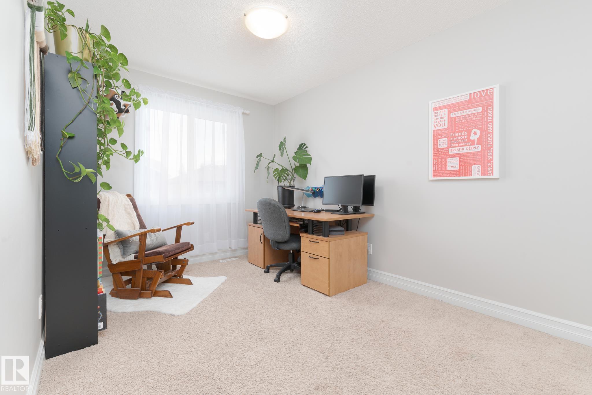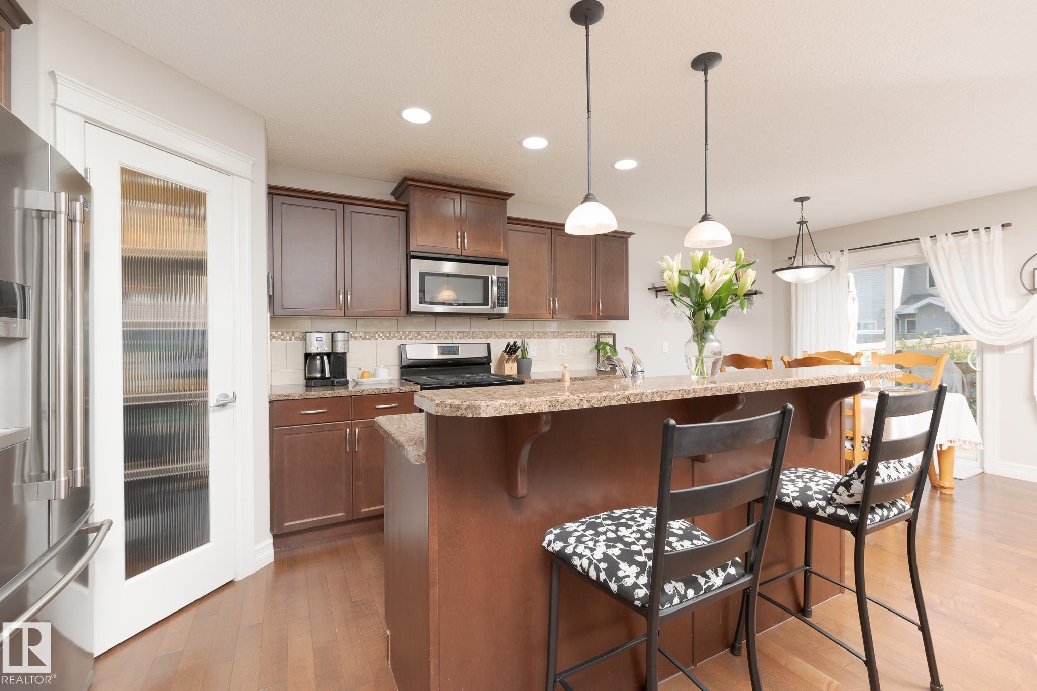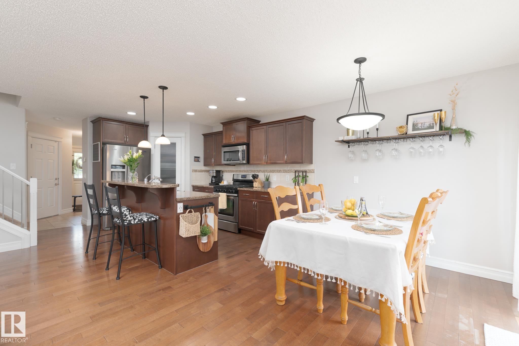 Located in the heart of Laurel, this charming 1350+ sq ft half duplex is move-in ready and radiating pride of ownership from the moment you step inside. Instantly feel at home as you enter the open concept main floor, where a warm and inviting kitchen flows effortlessly into the living room. Hardwood floors, a functional island, and a cozy gas fireplace set the stage for relaxed living and entertaining. Upstairs you'll find three comfortable bedrooms and two full bathrooms, including a spacious primary retreat with its own en-suite featuring a full-size shower. The basement offers potential for storage or future development, while the sun-filled backyard and rear deck invite summer memories to be made. Laurel's welcoming community offers scenic walking trails and seamless connectivity to Anthony Henday, making everyday life both refreshing and convenient. A perfect opportunity for home ownership!