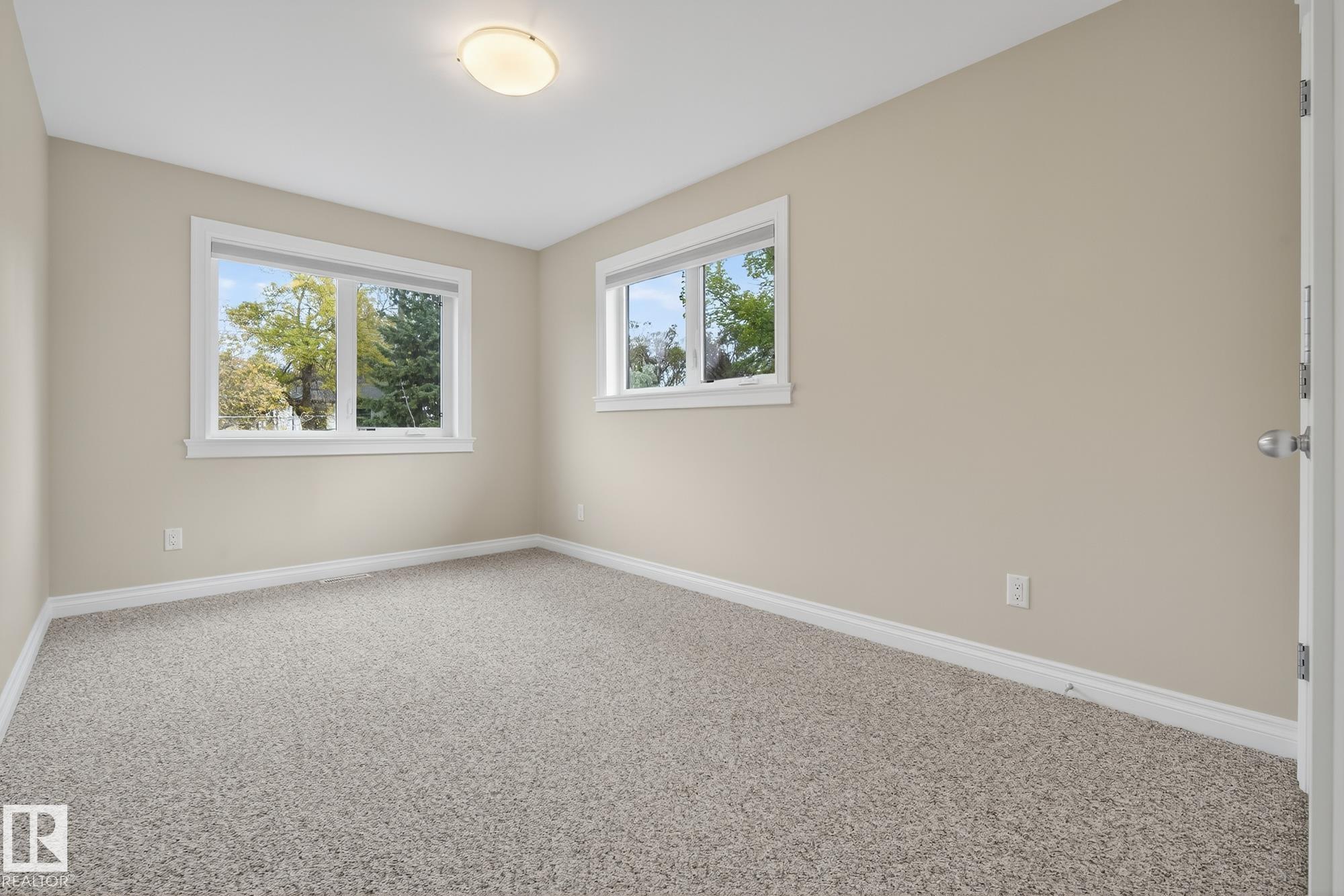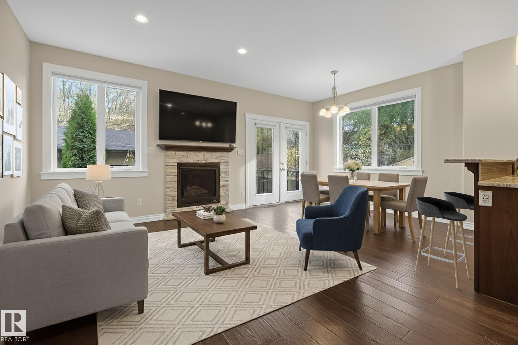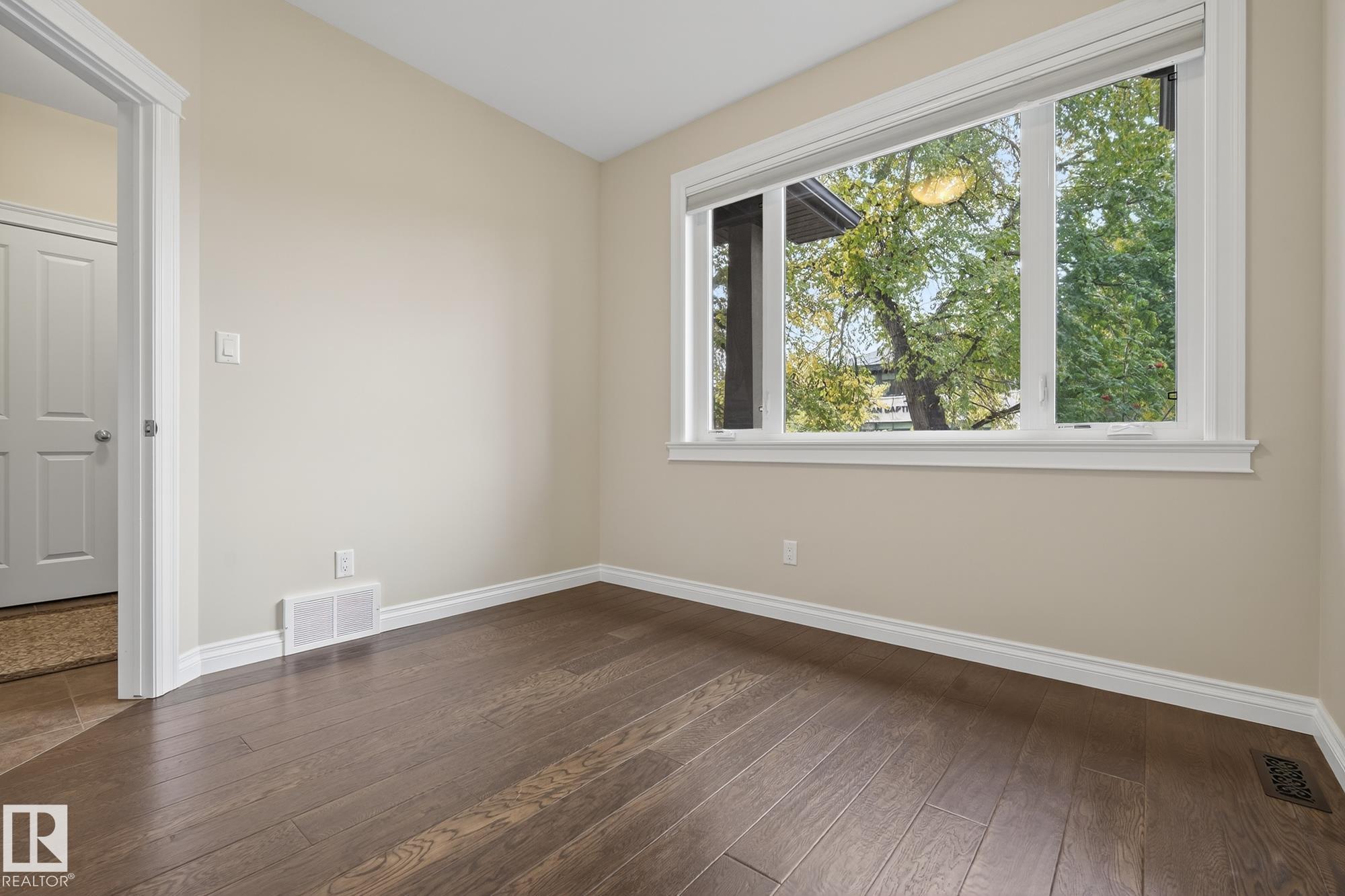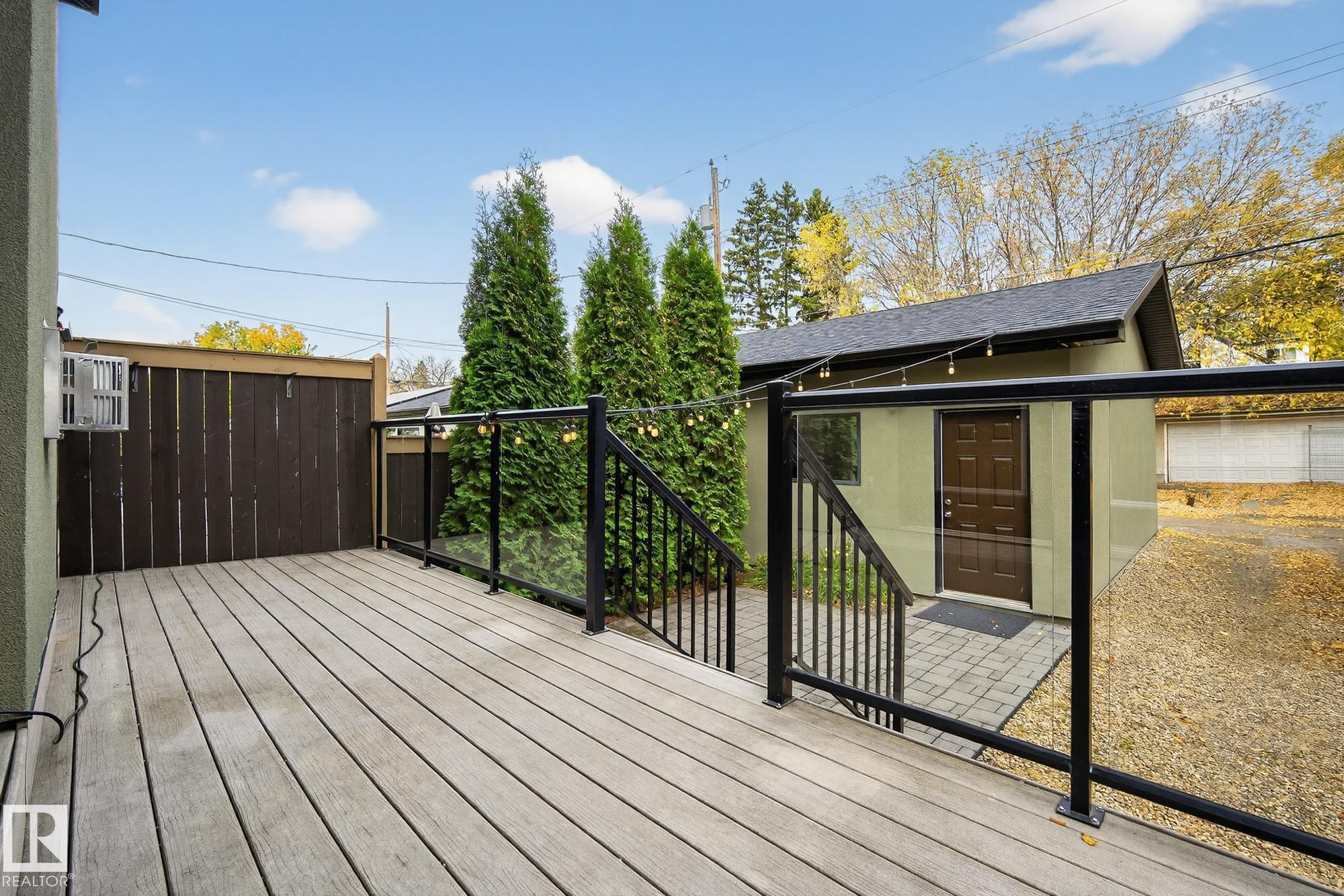 Welcome to McKernan! This beautifully built 3-bedroom, 2-storey half duplex offers over 1,830 sq. ft. of elegant living space steps from the University of Alberta. Thoughtfully designed and energy efficient, the exterior walls are foam-insulated, plus 1" rigid foam exterior insulation for the acrylic stucco R40 value energy efficiency. Featuring 9-foot ceilings, rich oak hardwood, and a cozy gas fireplace on the main floor. The gorgeous kitchen showcases mocha-stained maple cabinetry, granite counters, a large island, stainless steel appliances, and a corner pantry. A main floor den is perfect for a home office or guest room. Upstairs, the spacious primary suite includes a 5-piece ensuite and walk-in closet, with laundry conveniently nearby. Enjoy a maintenance-free composite deck, brick patio, and detached garage with extra parking. With quality finishes and timeless style, this home offers comfort and value in one of Edmonton's most sought-after central neighbourhoods. (Some photos virtually staged)