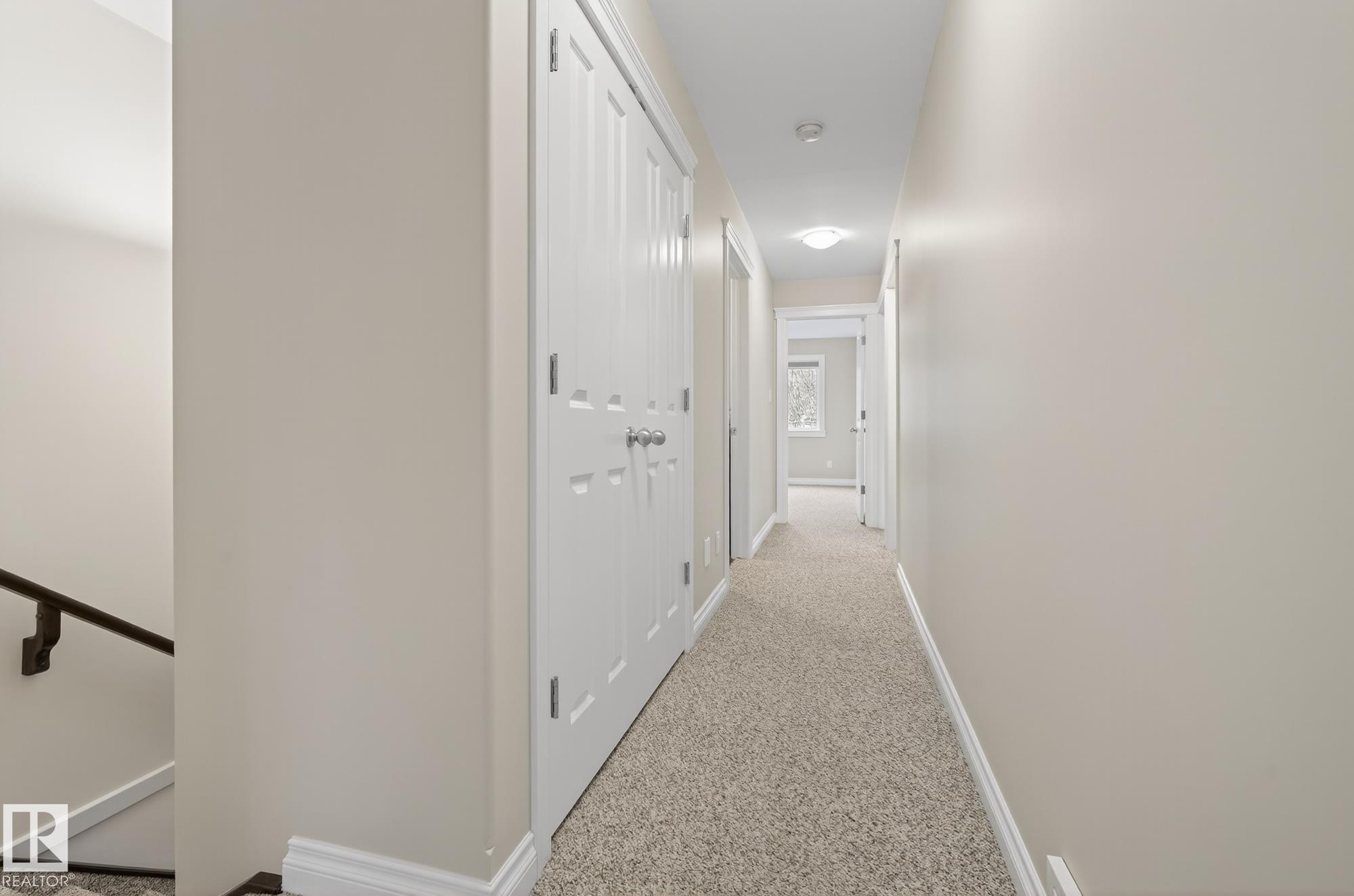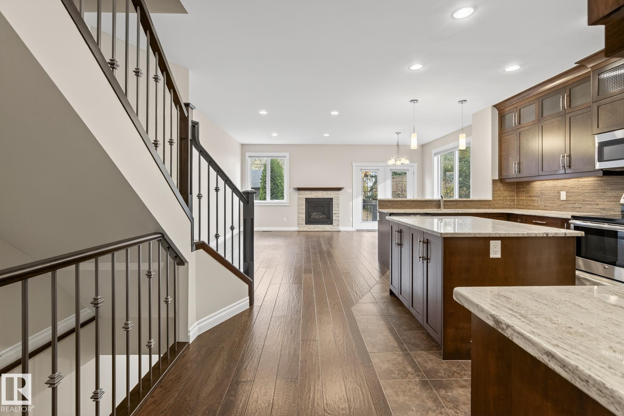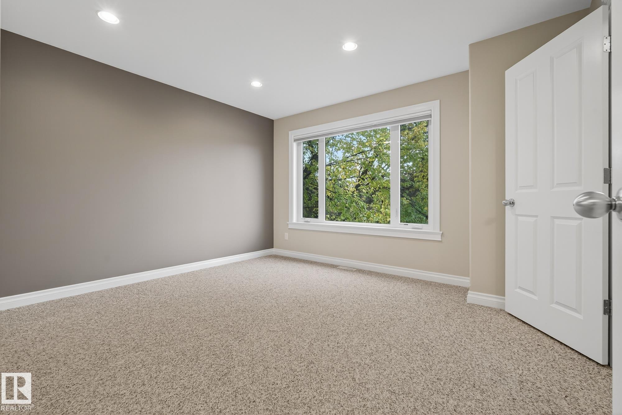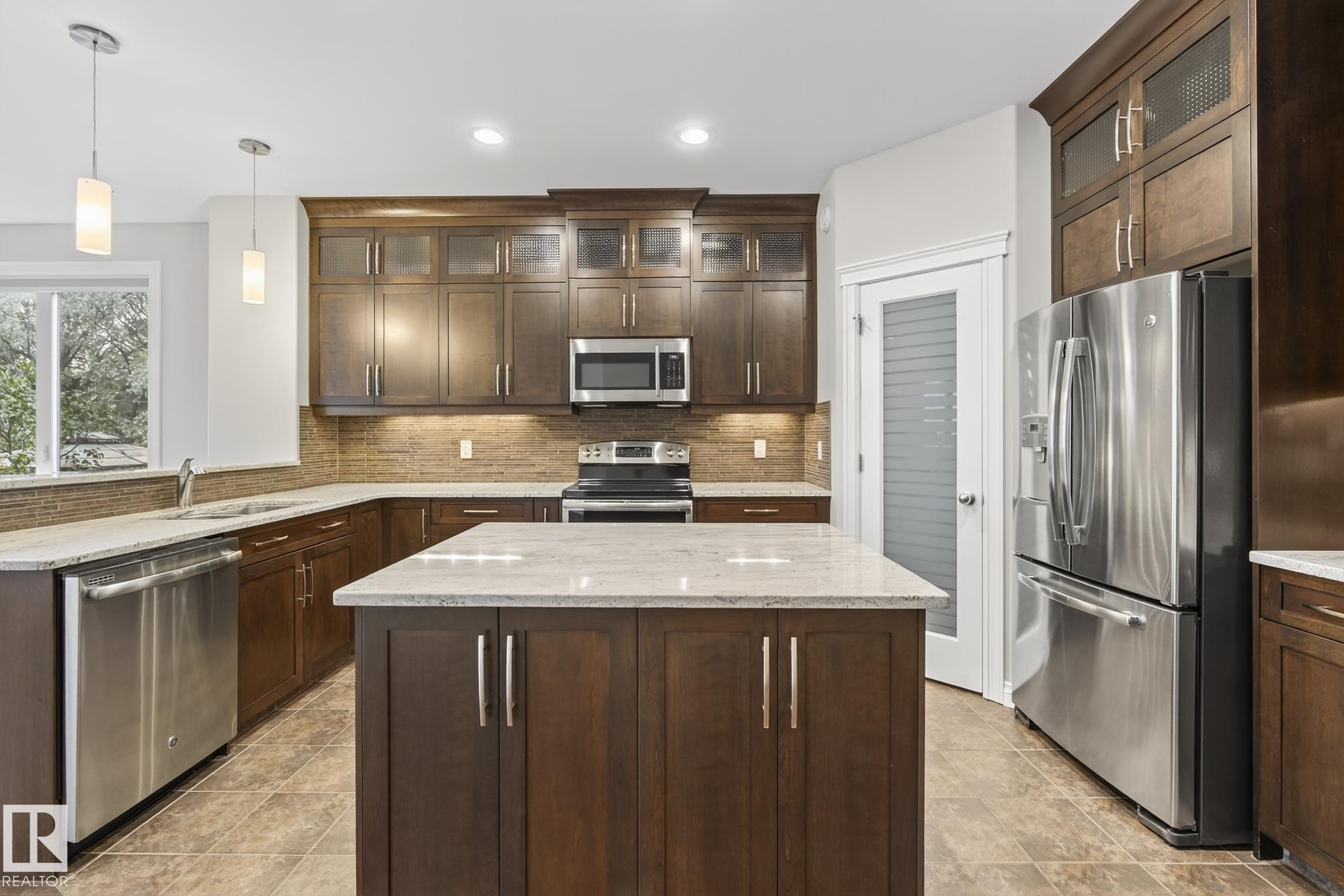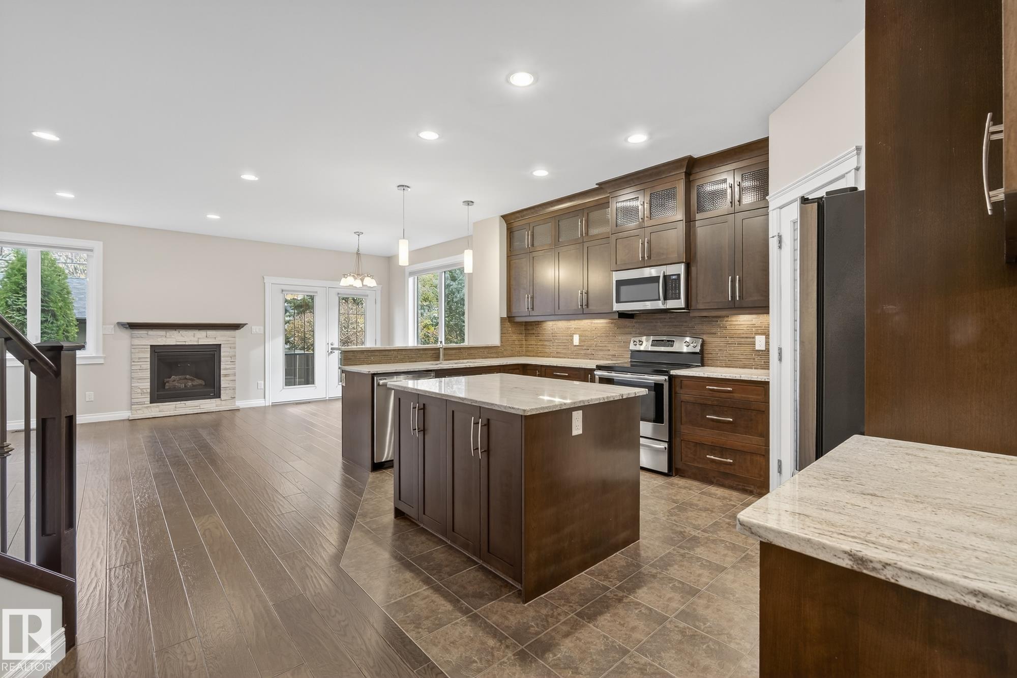 Welcome to McKernan! This beautifully built 3-bedroom, 2-storey half duplex offers over 1,830 sq. ft. of elegant living space steps from the University of Alberta. Thoughtfully designed and energy efficient, the exterior walls are foam-insulated, plus 1" rigid foam exterior insulation for the acrylic stucco R40 value energy efficiency. Featuring 9-foot ceilings, rich oak hardwood, and a cozy gas fireplace on the main floor. The gorgeous kitchen showcases mocha-stained maple cabinetry, granite counters, a large island, stainless steel appliances, and a corner pantry. A main floor den is perfect for a home office or guest room. Upstairs, the spacious primary suite includes a 5-piece ensuite and walk-in closet, with laundry conveniently nearby. Enjoy a maintenance-free composite deck, brick patio, and detached garage with extra parking. With quality finishes and timeless style, this home offers comfort and value in one of Edmonton's most sought-after central neighbourhoods. (Some photos virtually staged)