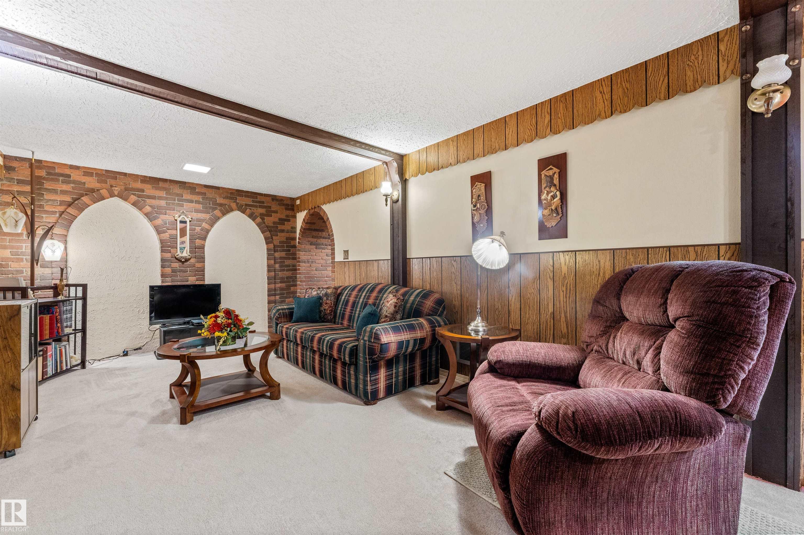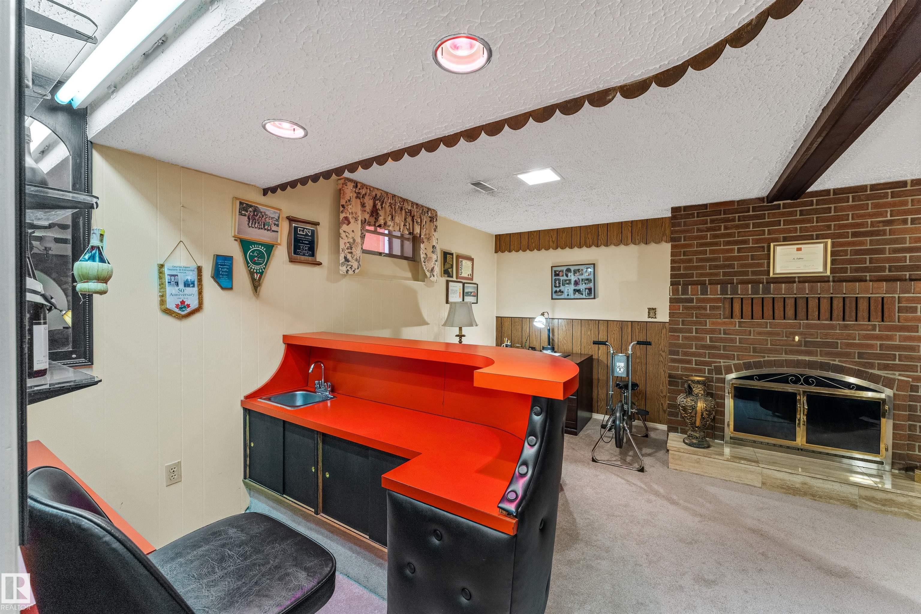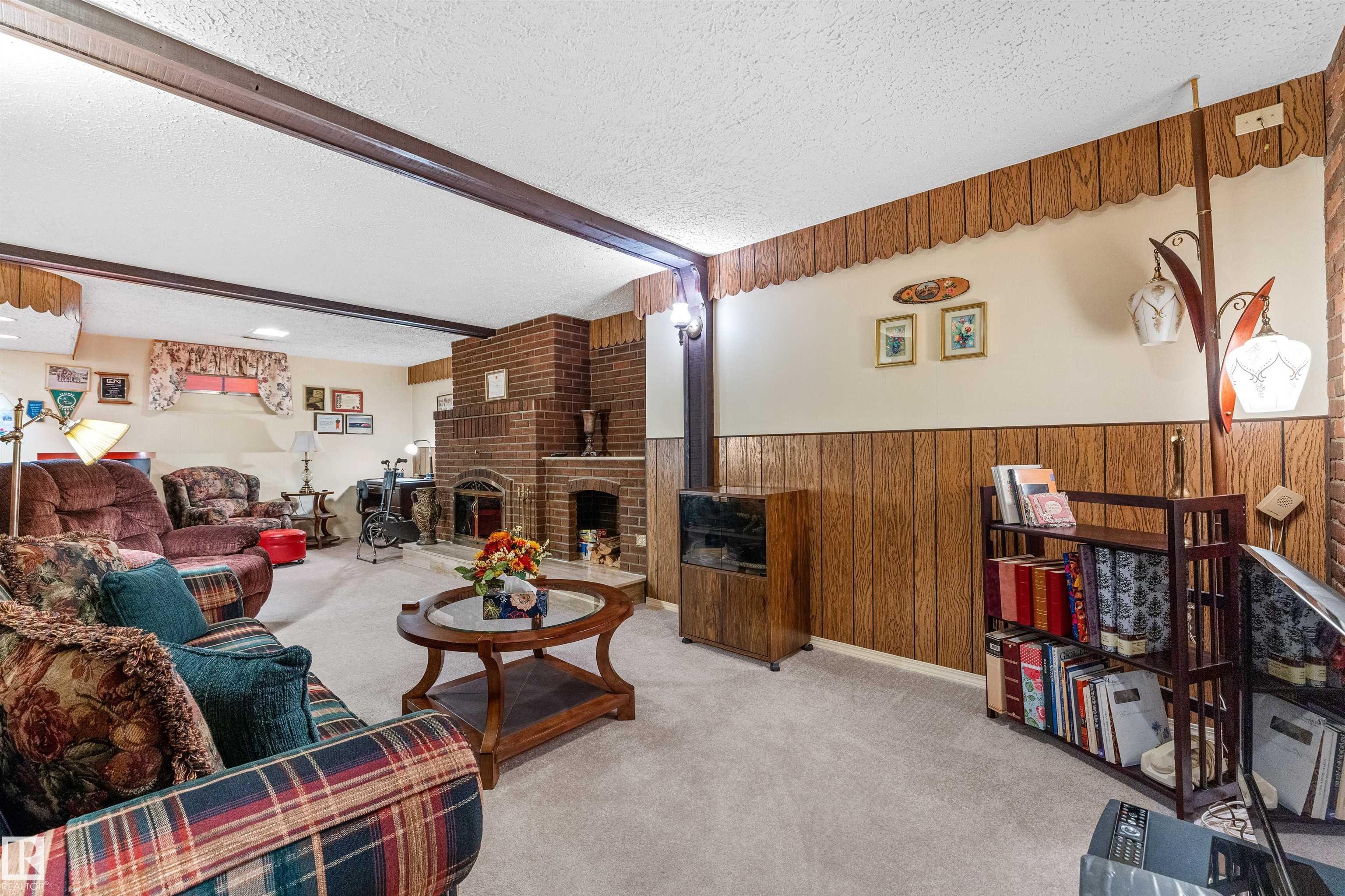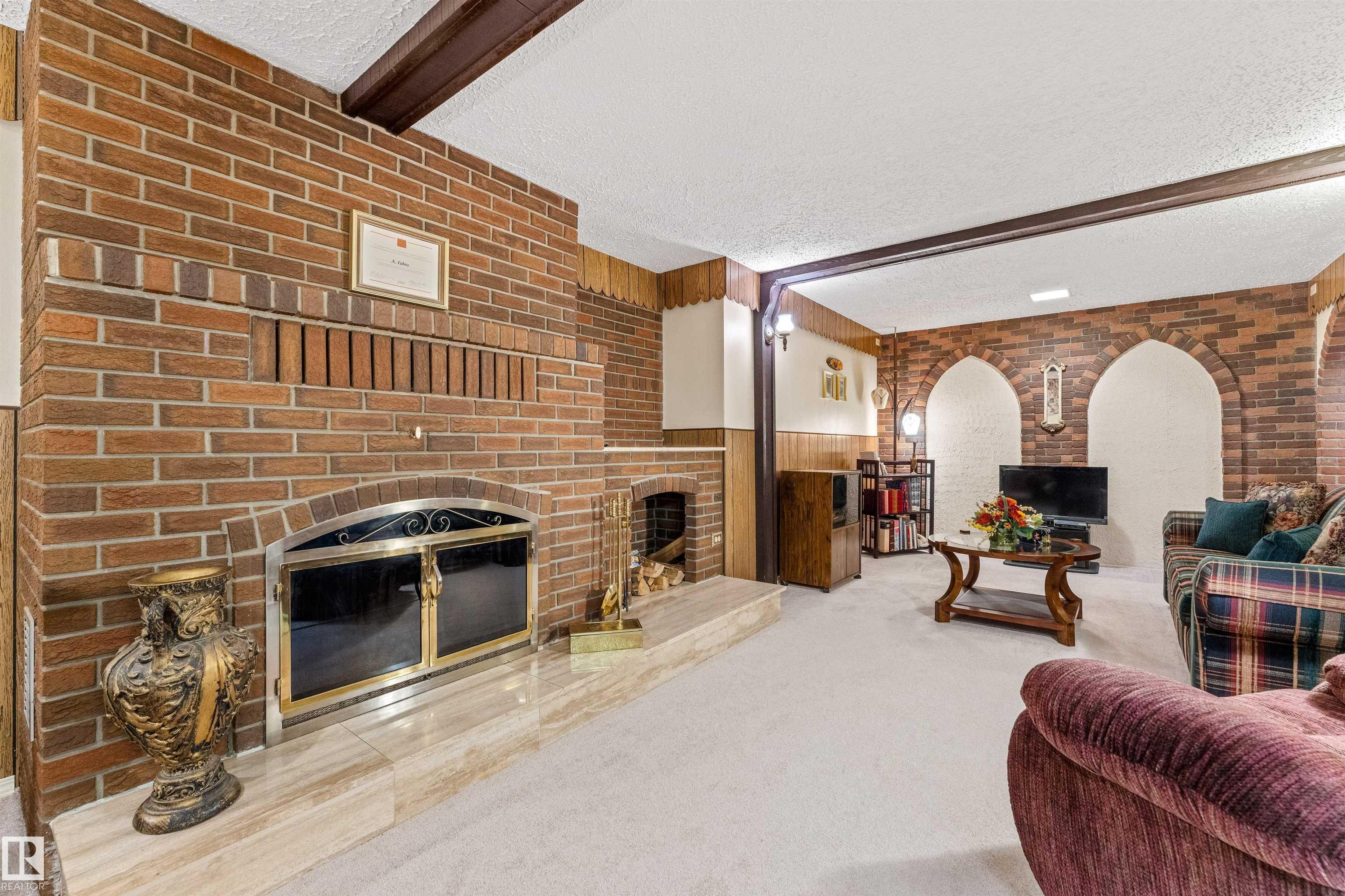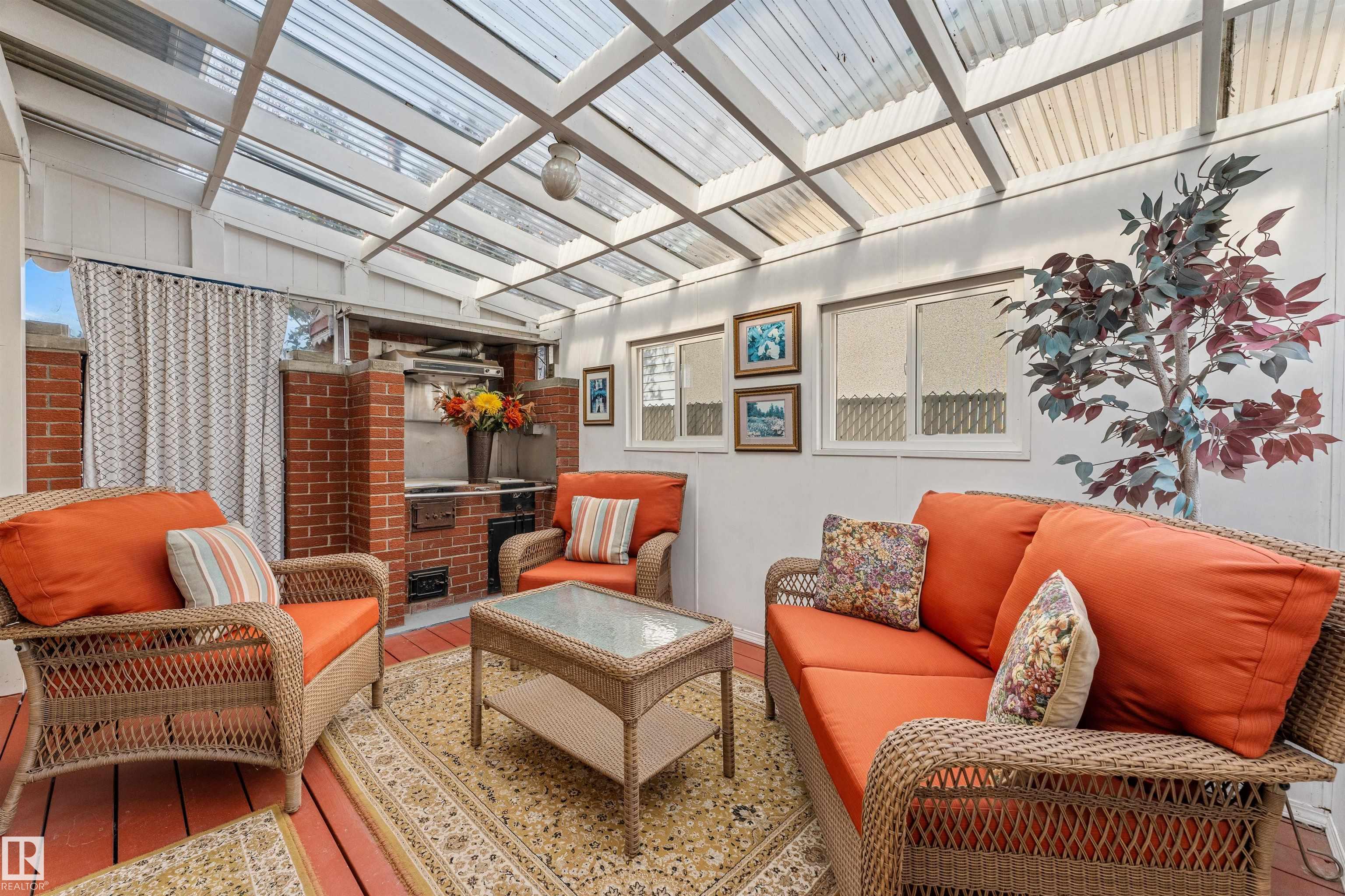 Gorgeous, well-maintained brick exterior bungalow on a large corner lot, showcasing true pride of ownership. Ideally located across from a massive park, this home offers space, charm, and comfort inside and out. The main floor features 3 bedrooms, a full bathroom, a bright kitchen with dining area, a formal dining room, and a lovely outdoor sunroom perfect for relaxing or entertaining. Downstairs is fully finished and built for hosting, with a spacious family room featuring a stunning brick fireplace and a custom bar. A fourth bedroom and a second full bathroom add flexibility for guests, a home office, or extended family. Over the years, updates include hardwood and oak finishes, windows, roof, new driveway, H2O tank, and furnace. The large lot provides endless potential for outdoor living, gardening, or future development. Rare opportunity to own a move-in-ready home in a prime location, just steps from green space, ideal for families, retirees, or anyone seeking comfort and community.