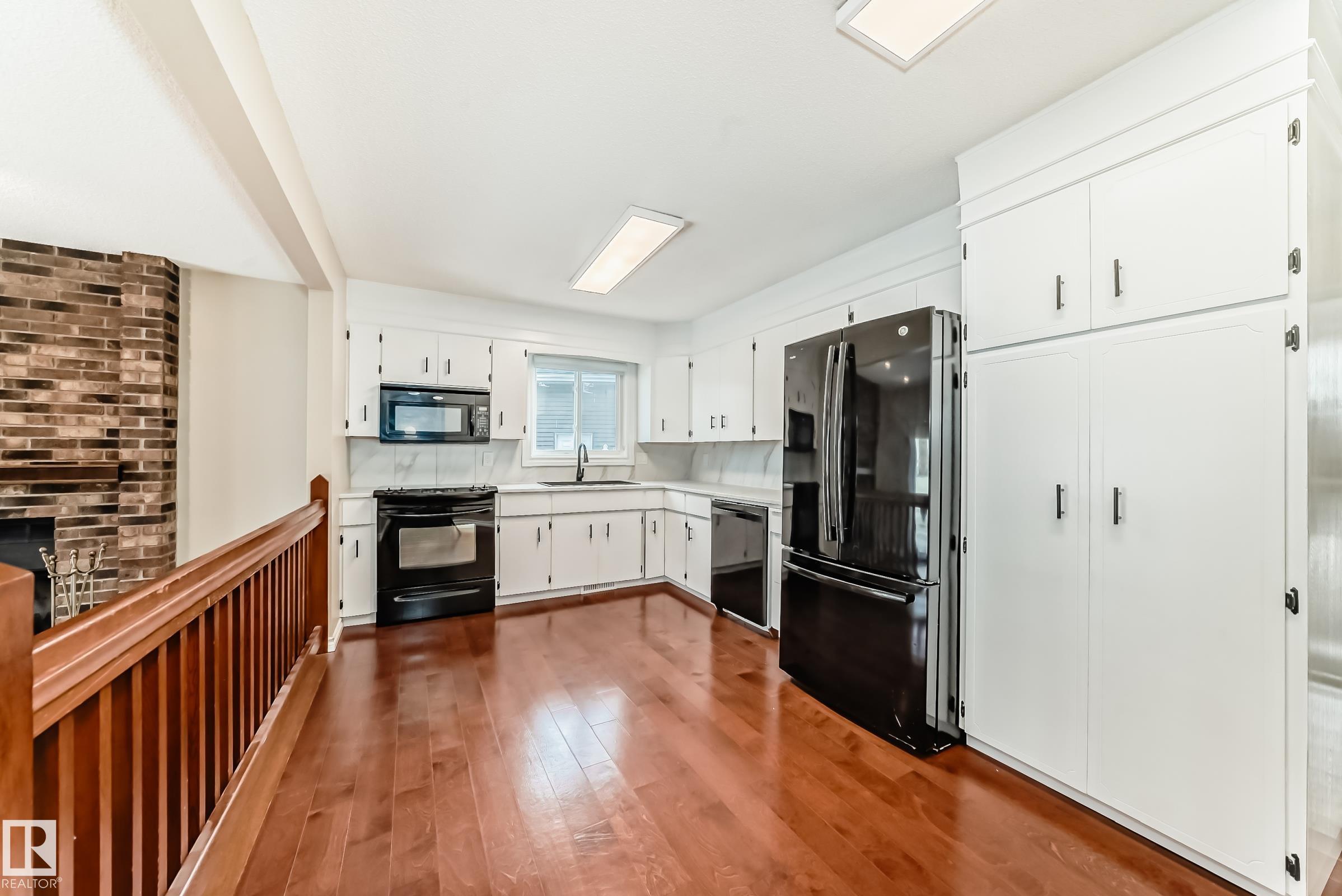 This spacious and upgraded bungalow is situated in the coveted Meyokumin neighborhood. This house has a double attached garage and a CUL-DE-SAC layout. This property features a spacious living room, family room which has nine-foot ceilings, a fireplace, and patio doors that lead to your deck, is accessible from the kitchen. In addition to new windows and blinds, the entire house has been painted recently. In 2025, the gutters, humidifier, and furnace were replaced. The basement has a sizable recreation area with lots of built-ins and an amazing amount of storage space. There is also a fourth bedroom, a three-piece bathroom, and a roughed-in wet bar. There is an additional entrance that provides access to the basement. The backyard features a fire pit, storage sheds, trees, and more.This fantastic location offers quick access to Anthony Henday Drive, 50th St., and schools, parks, and retail establishments.
