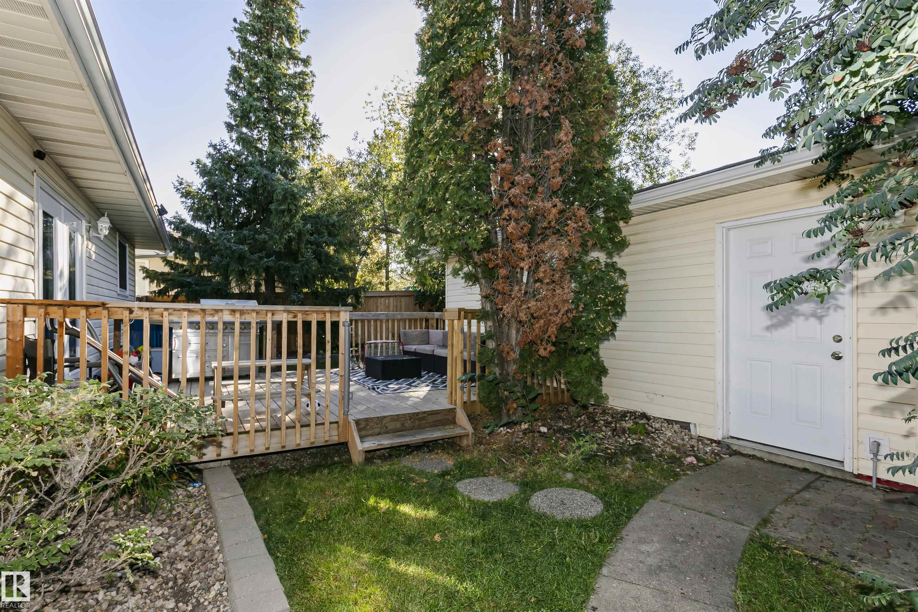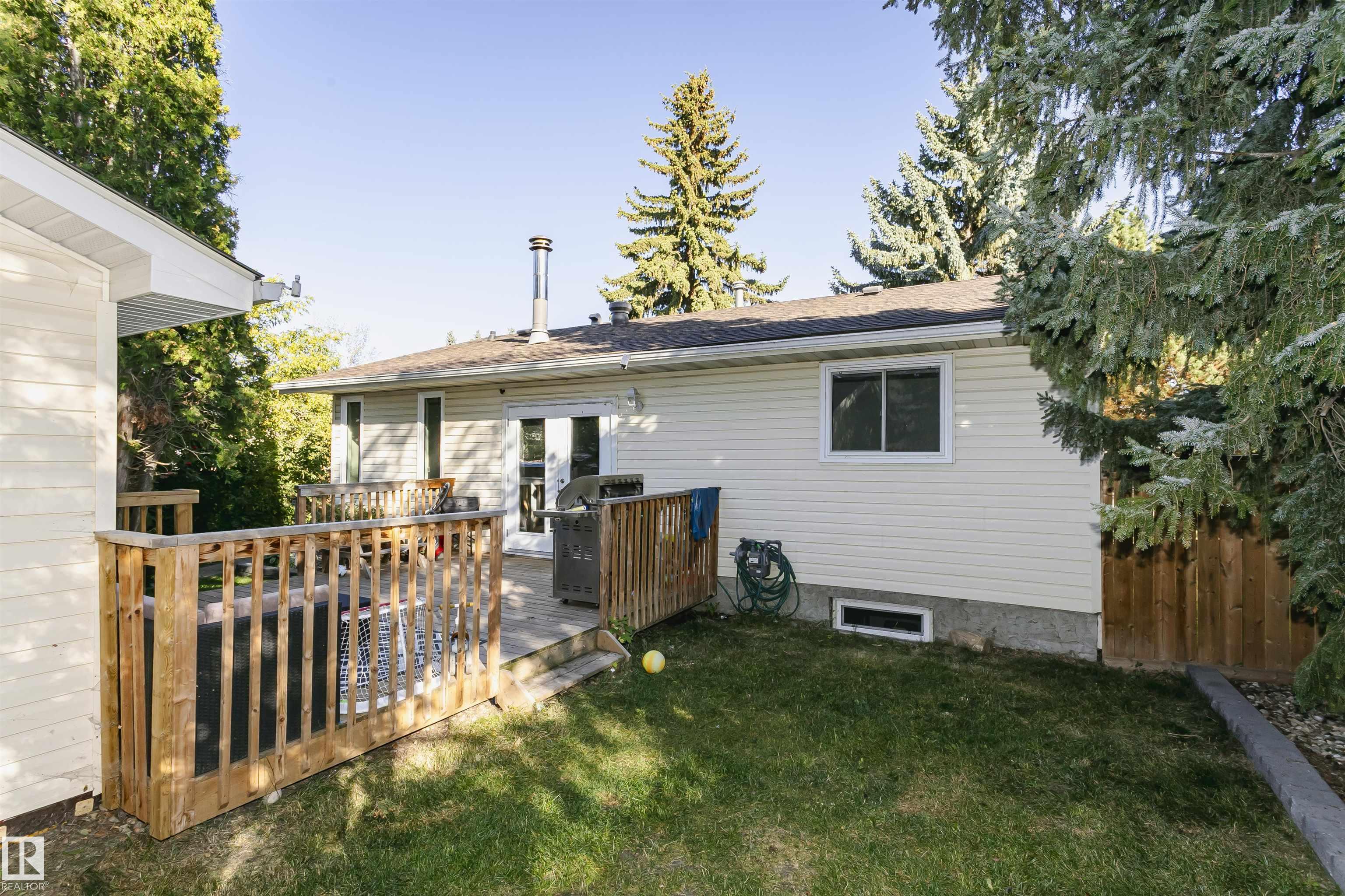 Beautiful Bungalow in sought-after Ormsby Place offering around 2400 sq ft of updated living space, including both levels. Recent updates include new shingles (2021), vinyl windows, modern lighting, plus a new hot water tank (2025), fence and deck. The galley kitchen features under-cabinet lighting, pot drawers, pantry and a bright breakfast nook, opening to a dining area and sunken living room with hardwood floors, a wood-burning fireplace and garden doors to a sunny south-facing backyard. The private primary suite boasts his-and-hers closets and a 3-piece ensuite with stand-up shower, while the additional 2 bedrooms are a good size they also share a fully renovated 4-piece bath. The finished basement adds another bedroom & flex space along with a 3-piece bath, a spacious family room, and a laundry area. The double garage includes a new door opener from 2024. Underground sprinkler system installed as well.