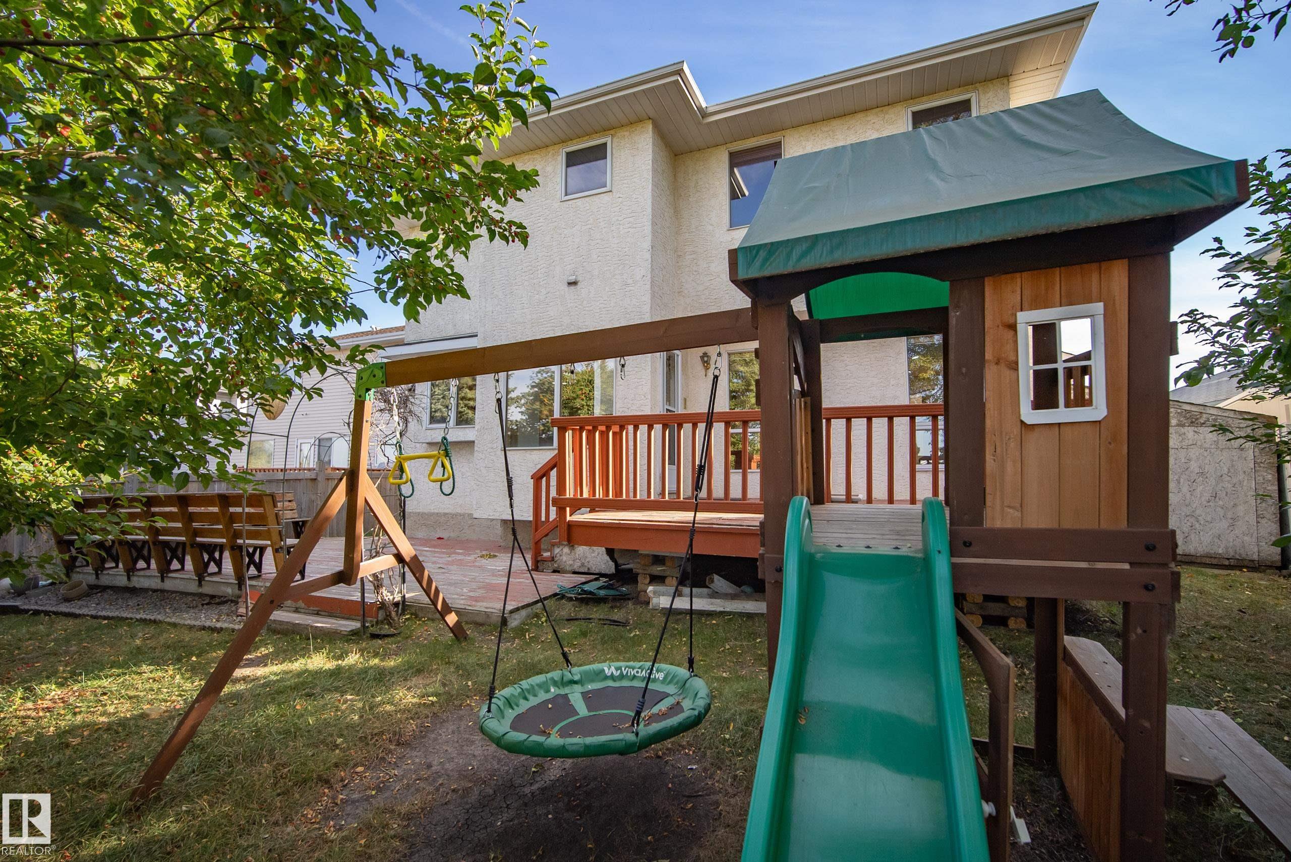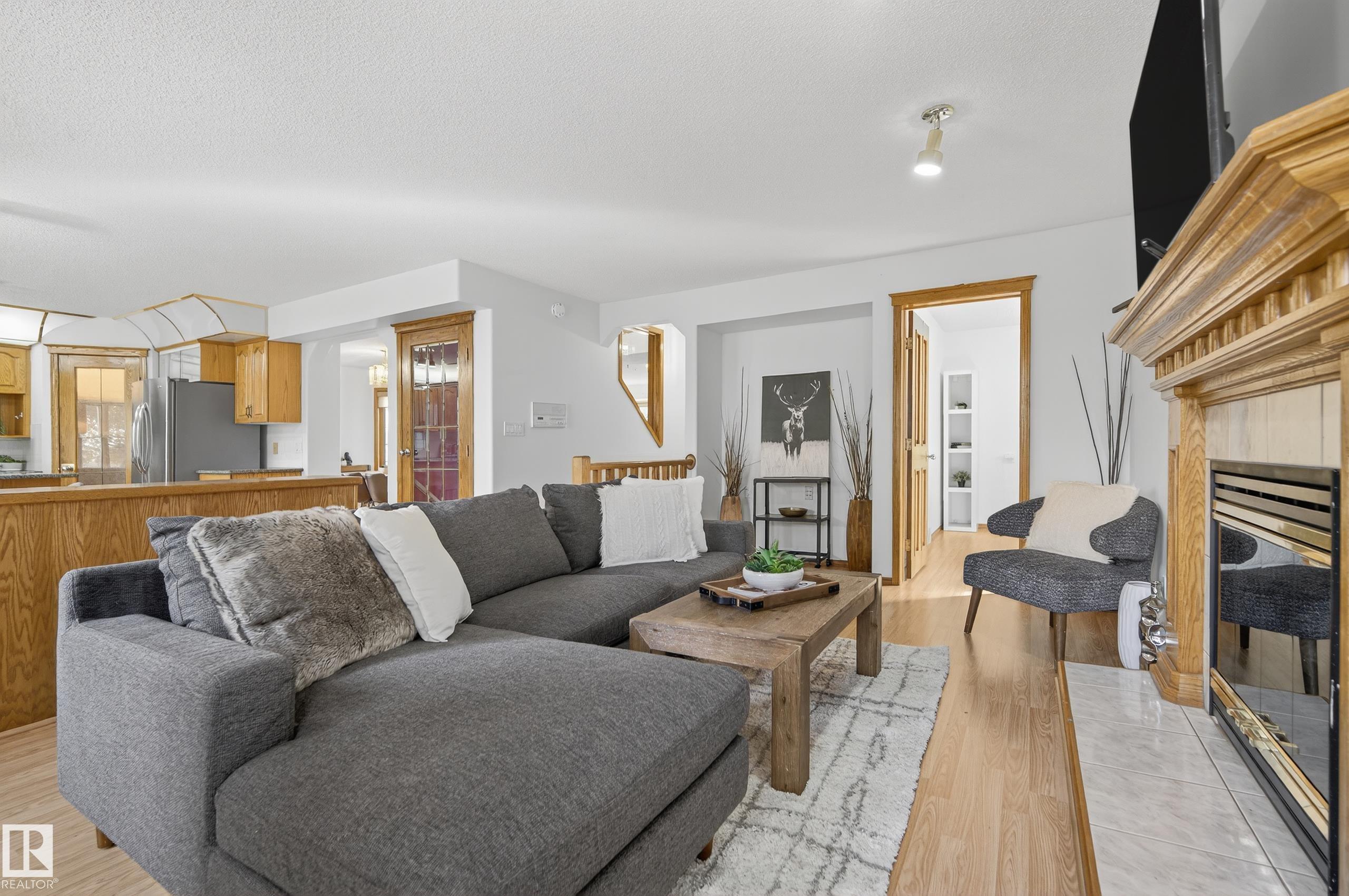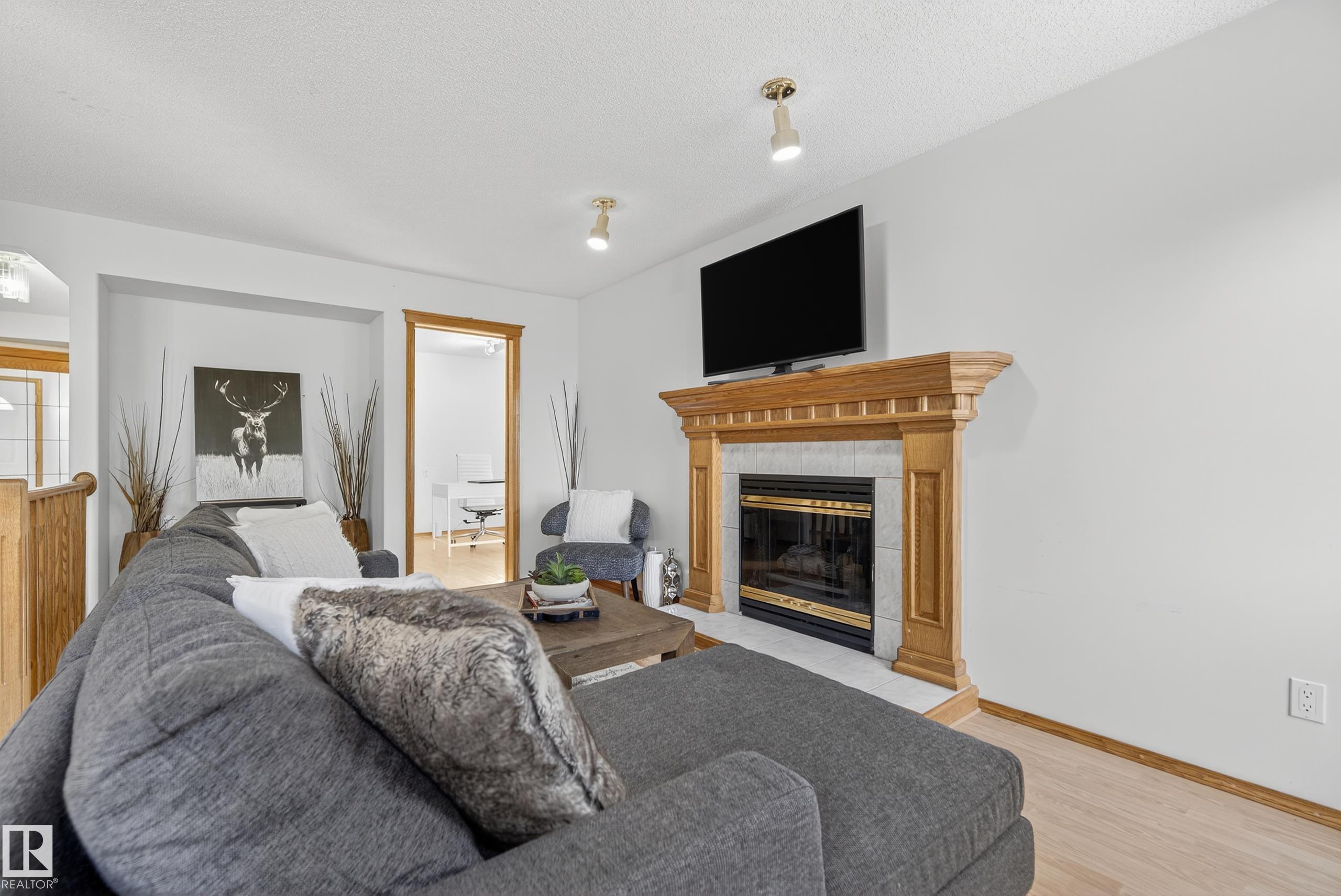Welcome to this spacious and inviting two-storey home designed for family living and entertaining. Step into a bright foyer leading to a comfortable living room, perfect for relaxing or hosting guests. A formal dining area connects seamlessly to the kitchen with ample cabinetry and a breakfast nook overlooking the yard. The main floor also offers a cozy family room with a fireplace, a bedroom, and a convenient powder room. Upstairs, you'll find a spacious primary suite with a walk-in closet and ensuite, three additional bedrooms, a full bathroom, and upper-level laundry for added convenience. The fully finished basement expands your living space with a large rec room, guest bedroom with walk-in closet, full bathroom, and dedicated laundry and mechanical areas. Outside, enjoy a double attached garage and a great yard for outdoor living. Located in a family-friendly community close to parks, schools, and amenities, this home blends space, comfort, and convenience.