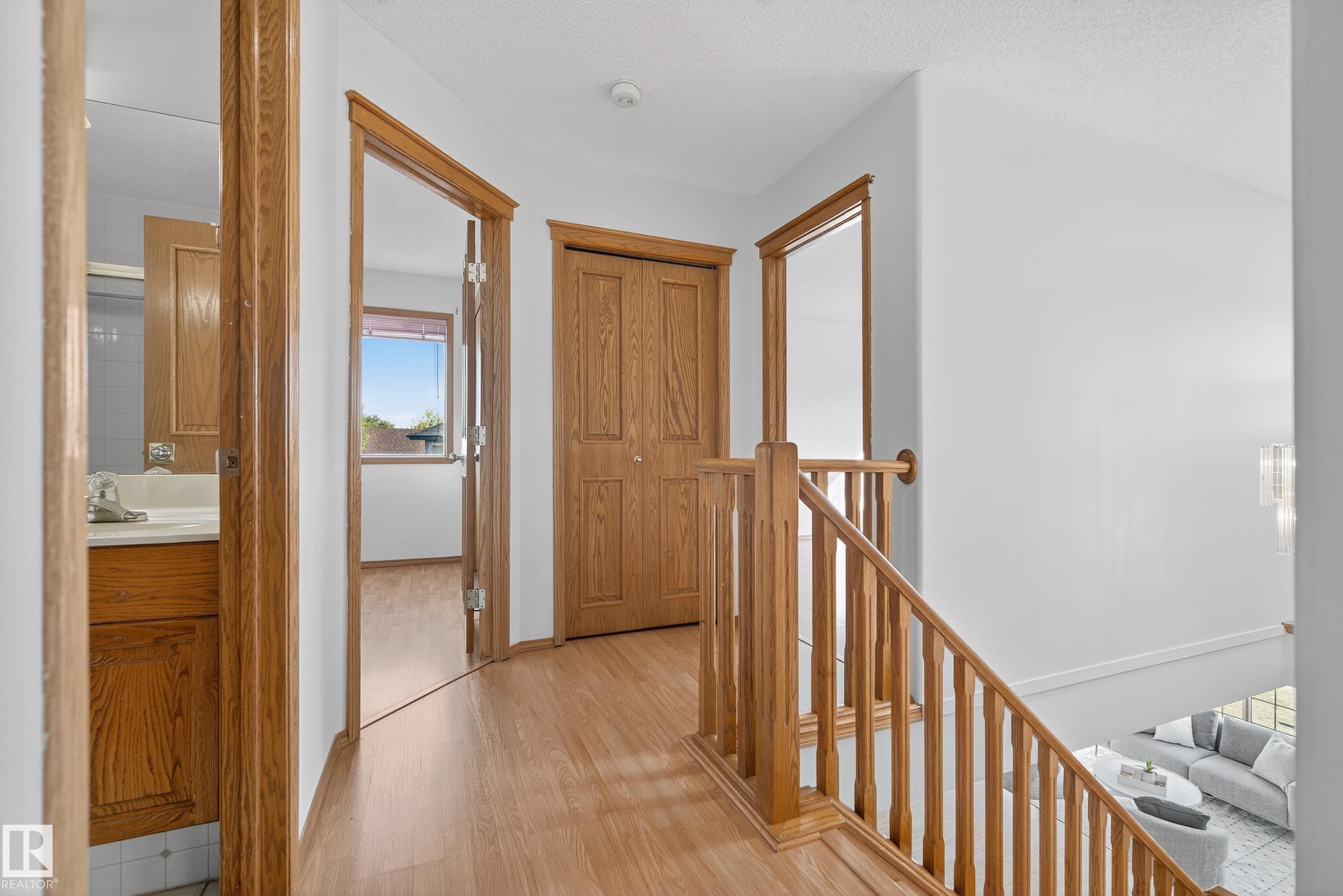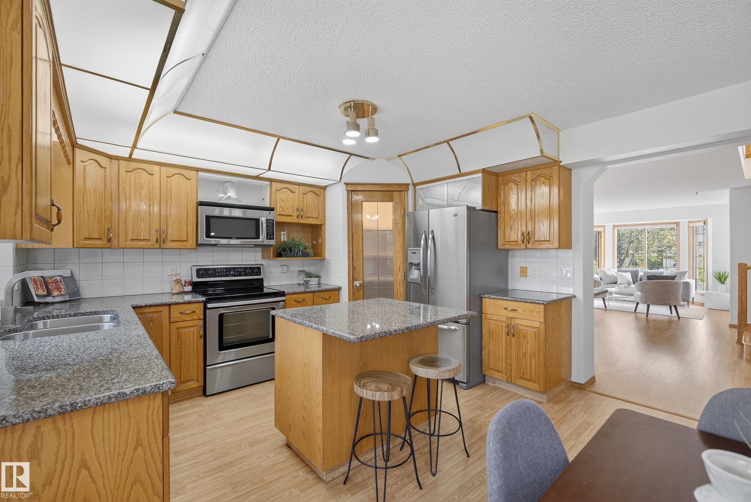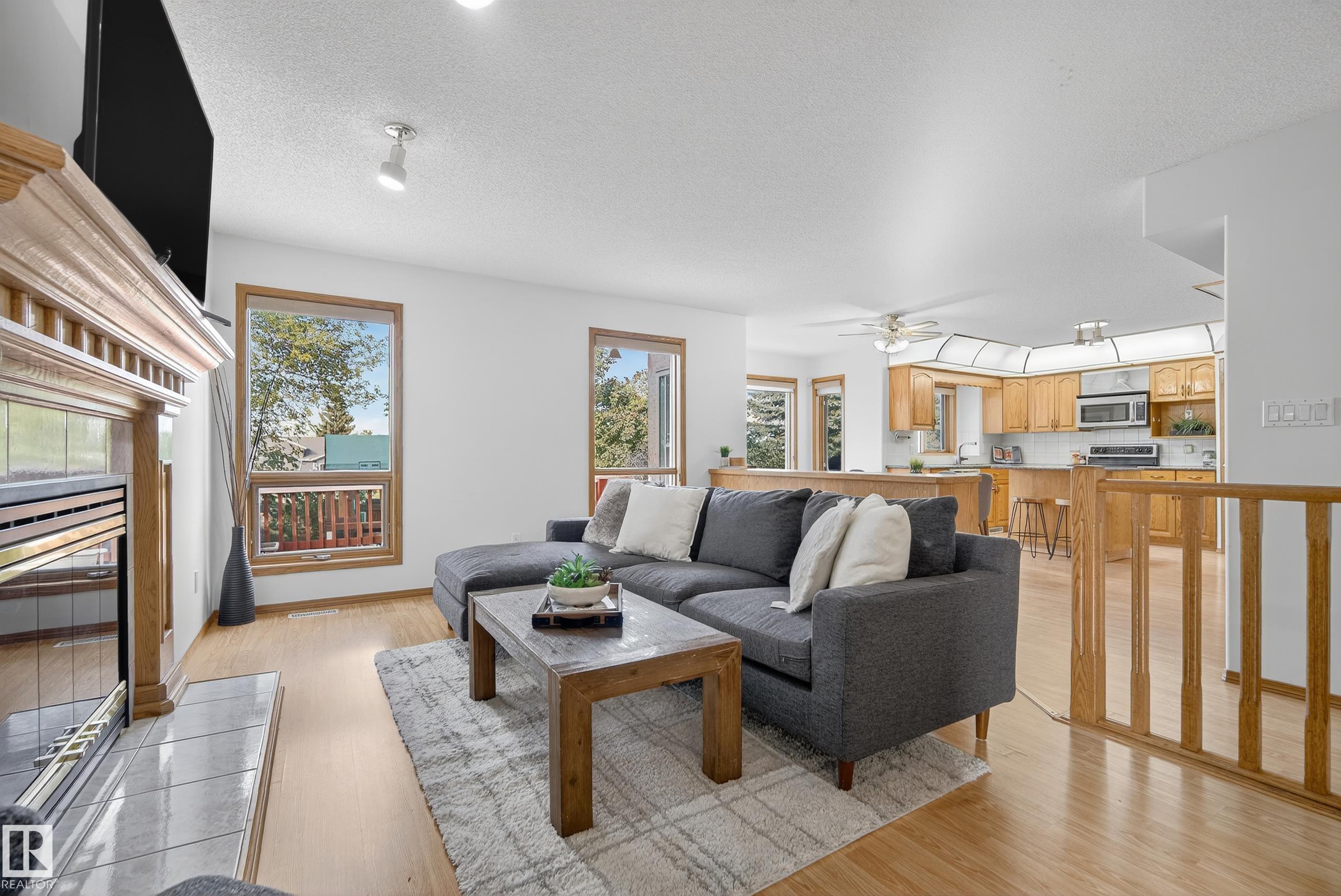 Welcome to this spacious and inviting two-storey home designed for family living and entertaining. Step into a bright foyer leading to a comfortable living room, perfect for relaxing or hosting guests. A formal dining area connects seamlessly to the kitchen with ample cabinetry and a breakfast nook overlooking the yard. The main floor also offers a cozy family room with a fireplace, a bedroom, and a convenient powder room. Upstairs, you'll find a spacious primary suite with a walk-in closet and ensuite, three additional bedrooms, a full bathroom, and upper-level laundry for added convenience. The fully finished basement expands your living space with a large rec room, guest bedroom with walk-in closet, full bathroom, and dedicated laundry and mechanical areas. Outside, enjoy a double attached garage and a great yard for outdoor living. Located in a family-friendly community close to parks, schools, and amenities, this home blends space, comfort, and convenience.