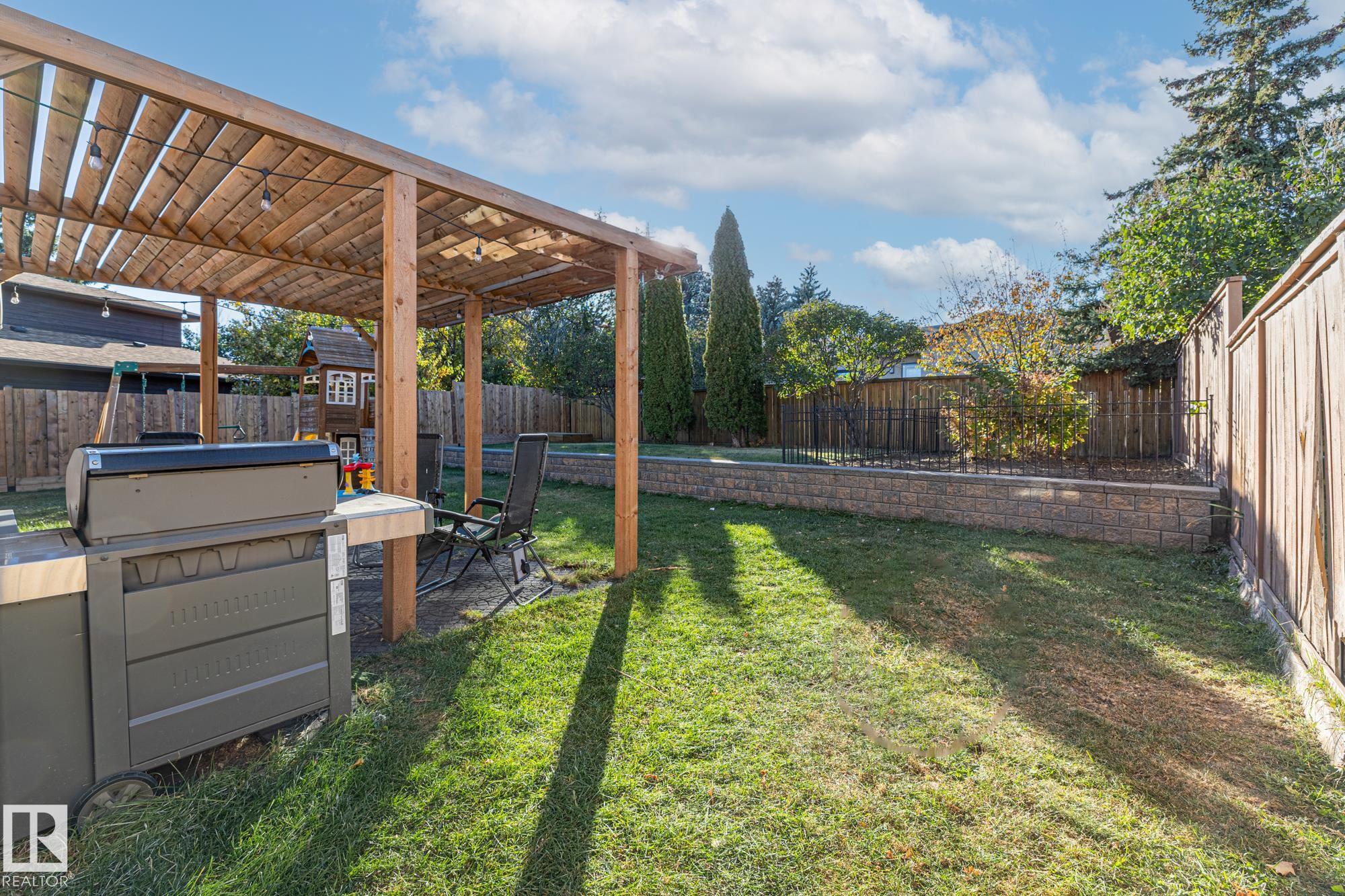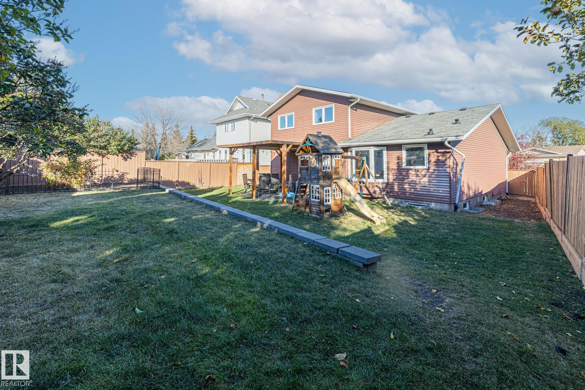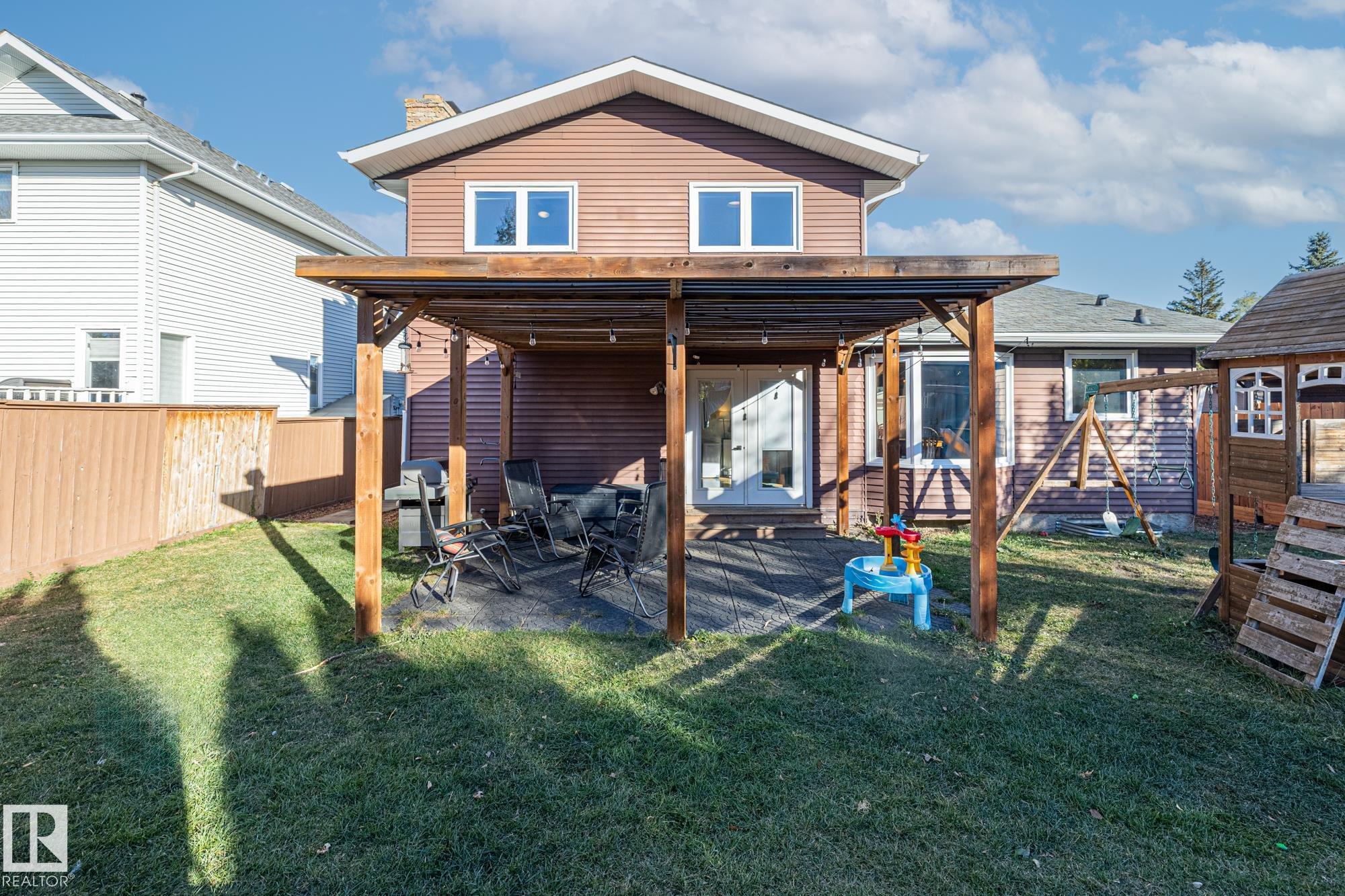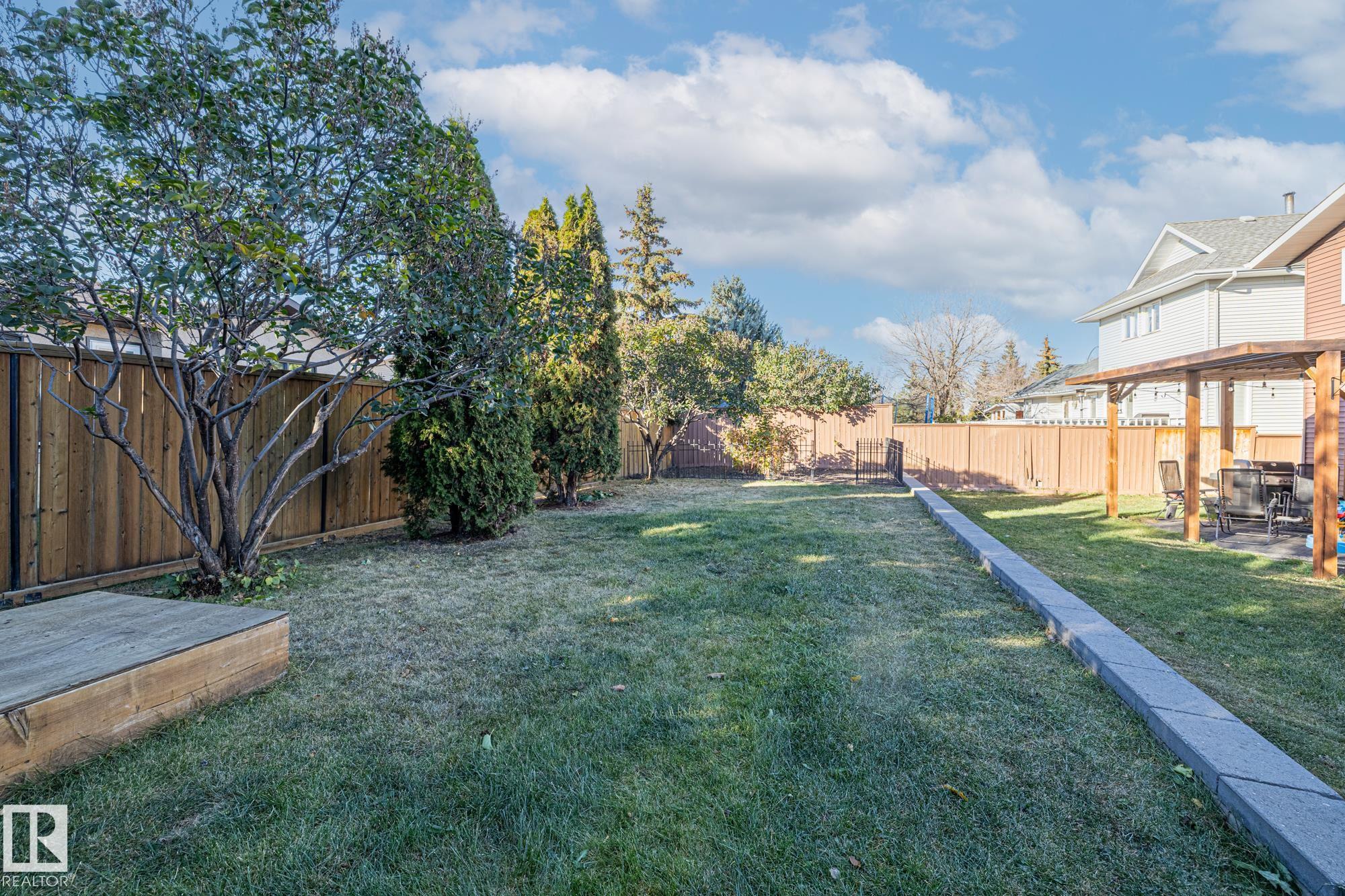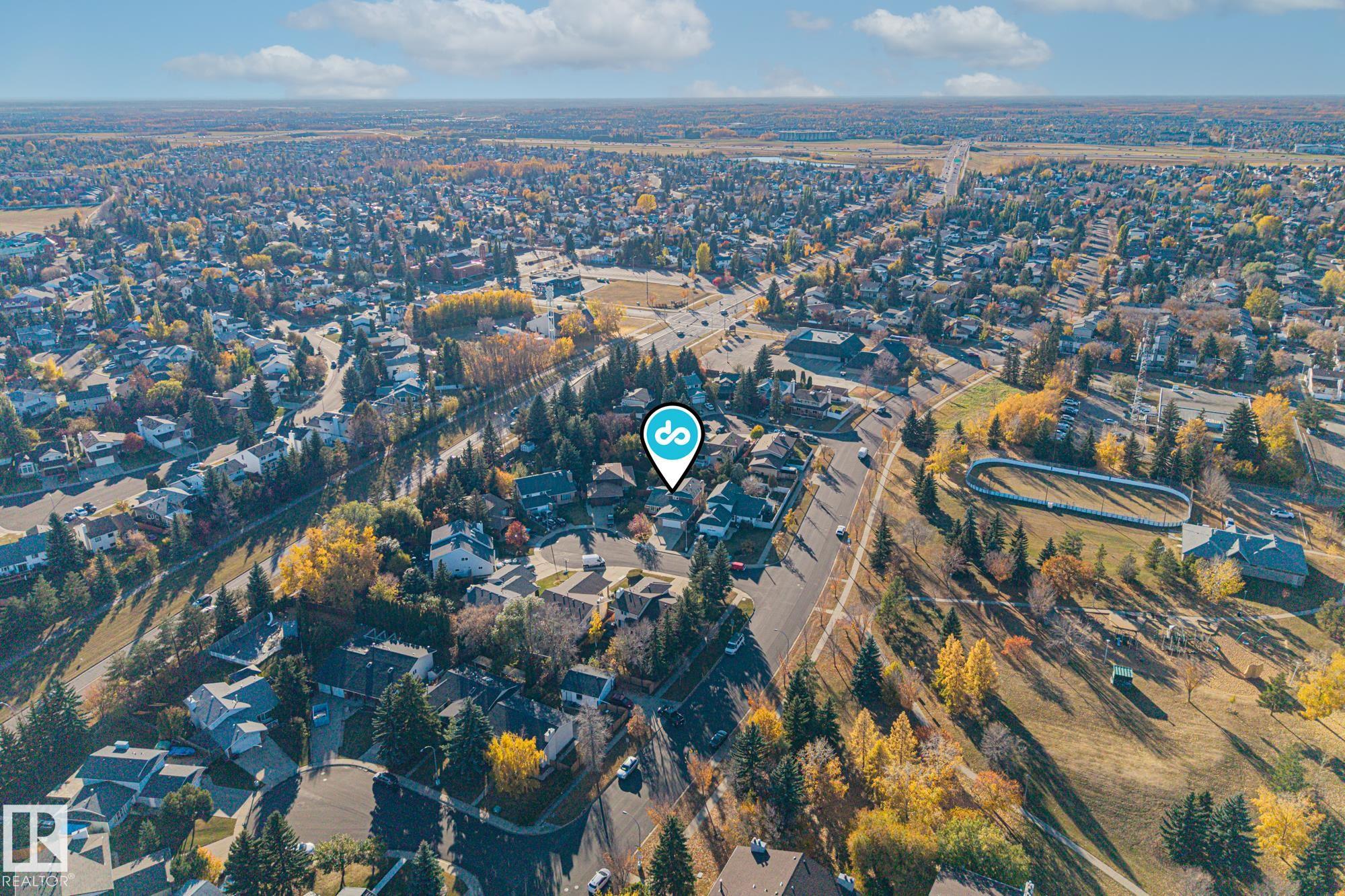 Beautifully renovated and perfectly located, this turnkey 2 storey in Ormsby Place sits in a quiet cul-de-sac across from Willowby Park. With 5 bedrooms and 3.5 baths, it's the ideal home for families seeking space, style and a move-in ready property in west Edmonton. The main floor features sun-filled living and dining with curved bay window, board and batten detail and custom wall-length bookshelves, while the family room centers around a brick fireplace. The bright eat-in kitchen shines with white cabinetry, plank ceiling, recessed lighting, peninsula island, new appliances and walkout access to the yard. Upstairs offers a generous primary suite with private ensuite, 2 bedrooms and a family bath. A main floor bedroom and bath add flexibility, and the finished basement provides a 5th bedroom, bath, rec area & play rm. Outside enjoy a fenced yard with pergola, brick patio, garden beds and mature trees. Extensive updates include kitchen, baths, flooring, lighting, paint, railings, laundry and garage door.