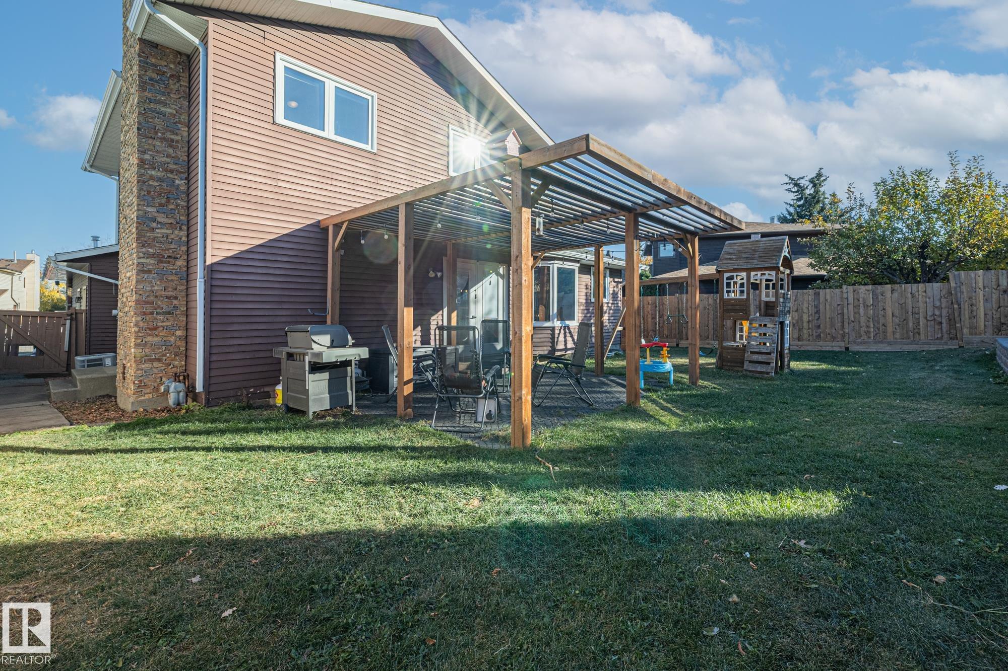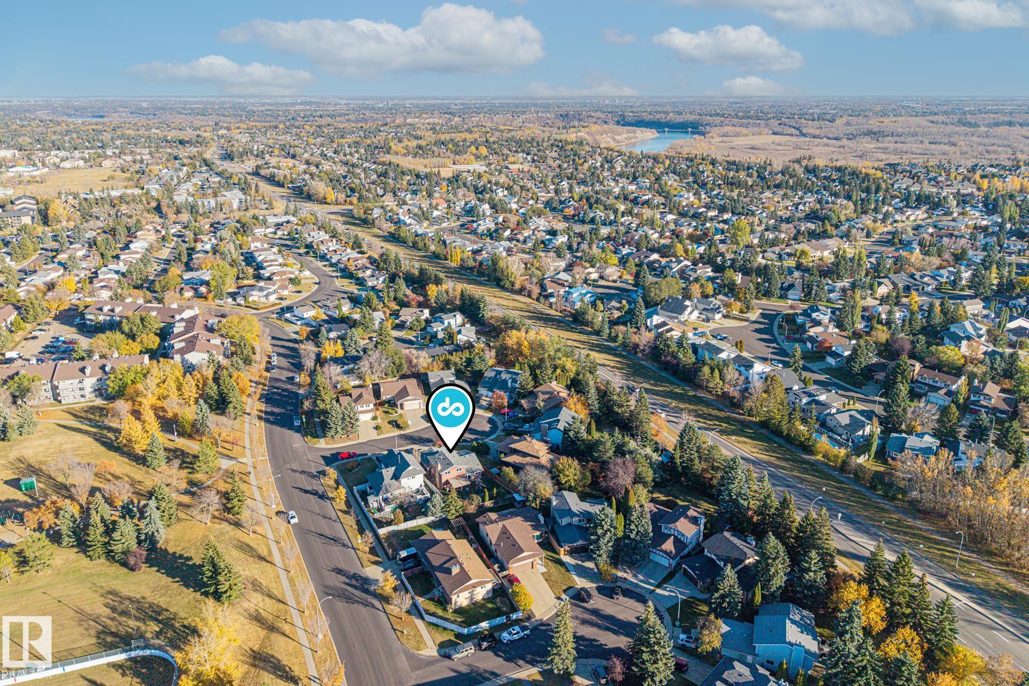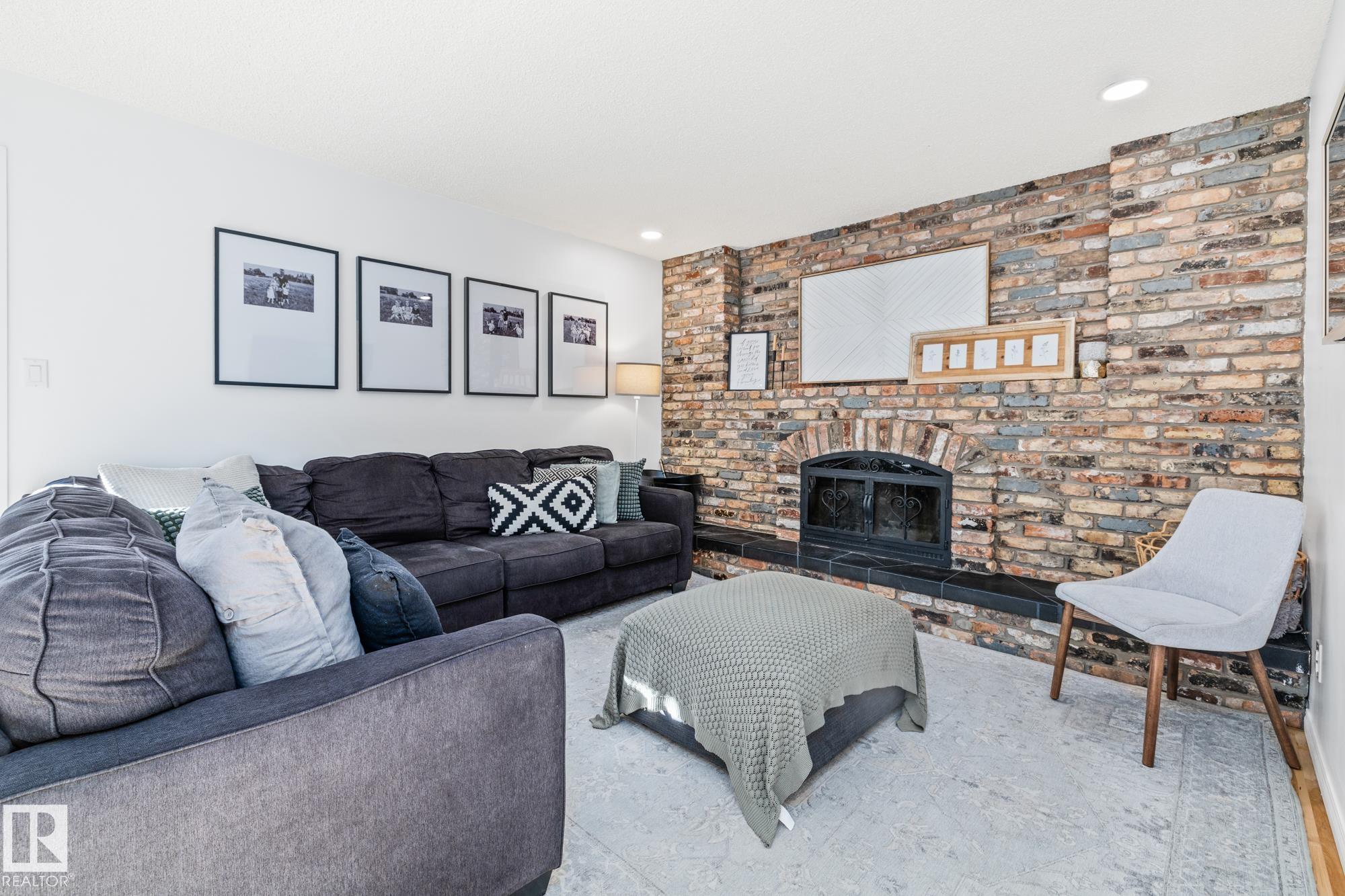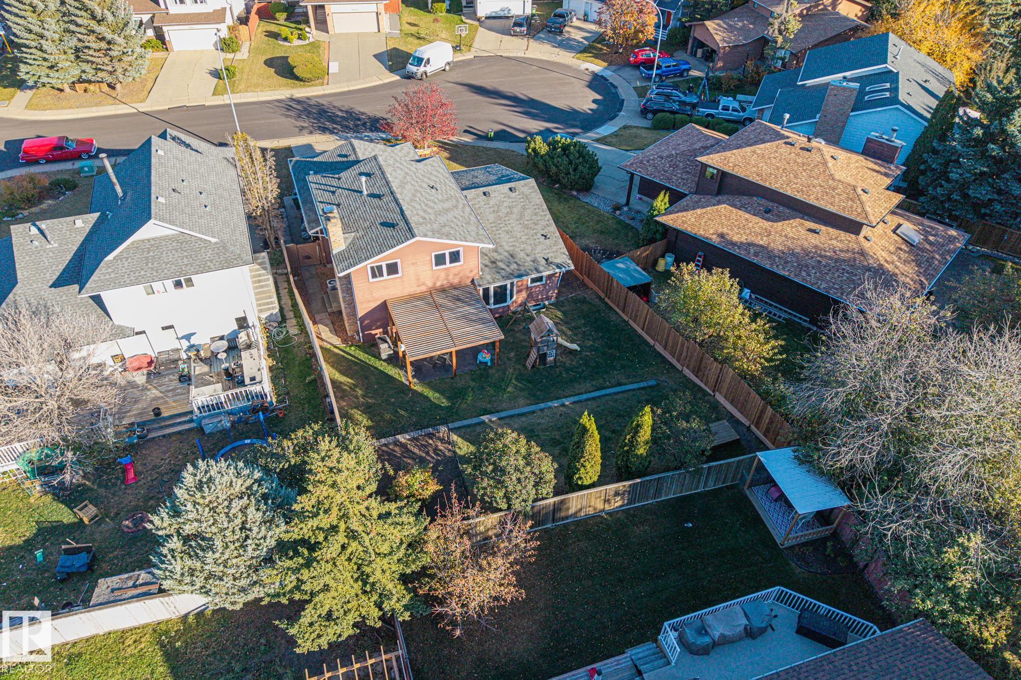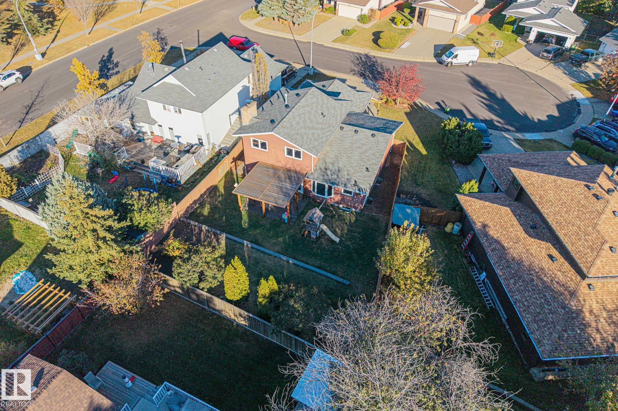 Beautifully renovated and perfectly located, this turnkey 2 storey in Ormsby Place sits in a quiet cul-de-sac across from Willowby Park. With 5 bedrooms and 3.5 baths, it's the ideal home for families seeking space, style and a move-in ready property in west Edmonton. The main floor features sun-filled living and dining with curved bay window, board and batten detail and custom wall-length bookshelves, while the family room centers around a brick fireplace. The bright eat-in kitchen shines with white cabinetry, plank ceiling, recessed lighting, peninsula island, new appliances and walkout access to the yard. Upstairs offers a generous primary suite with private ensuite, 2 bedrooms and a family bath. A main floor bedroom and bath add flexibility, and the finished basement provides a 5th bedroom, bath, rec area & play rm. Outside enjoy a fenced yard with pergola, brick patio, garden beds and mature trees. Extensive updates include kitchen, baths, flooring, lighting, paint, railings, laundry and garage door.