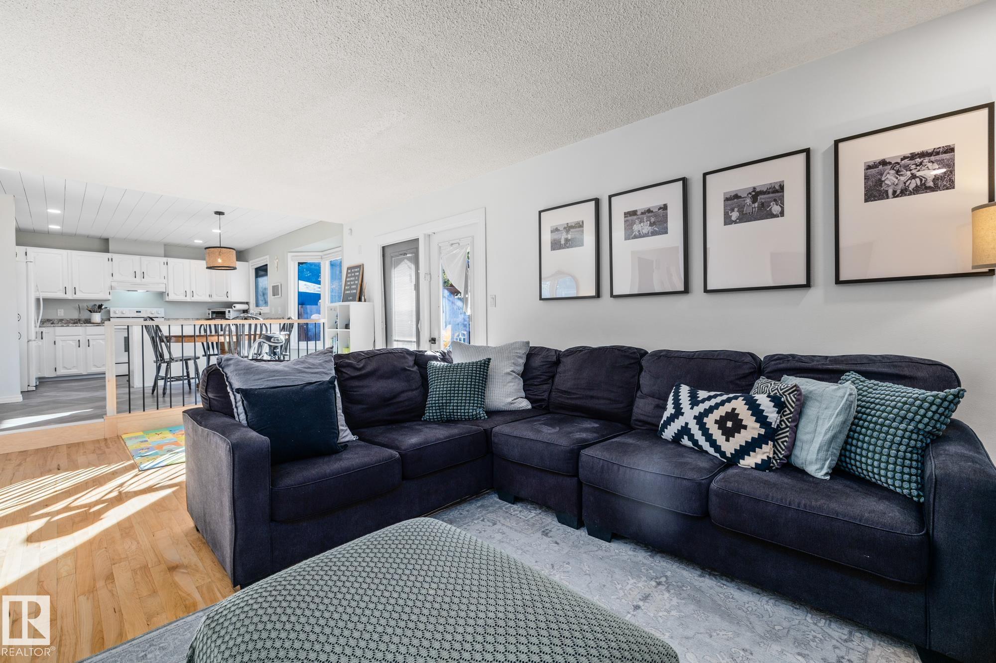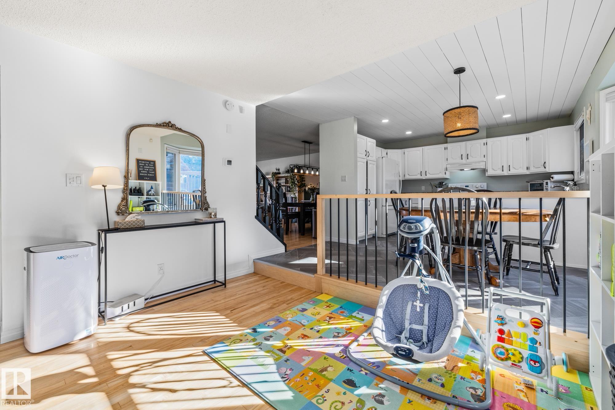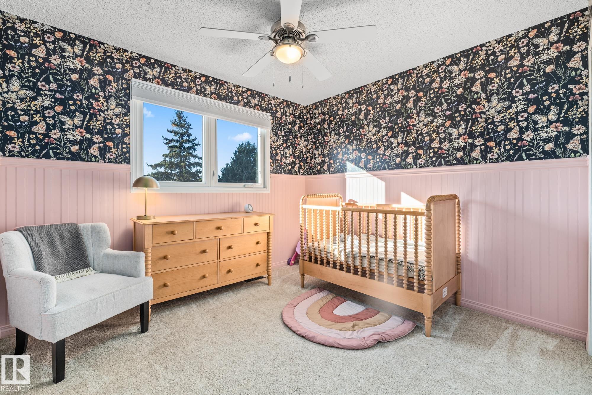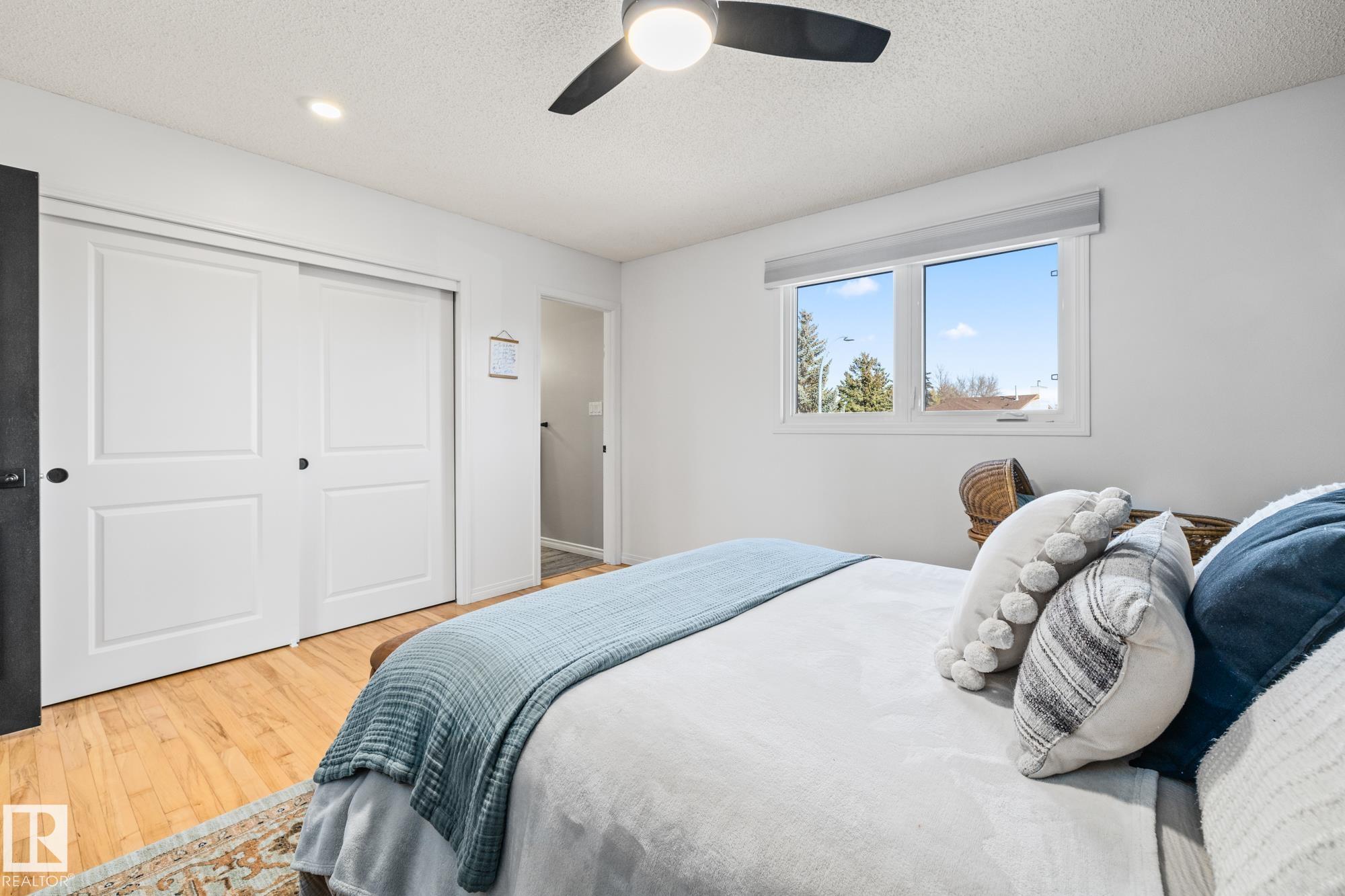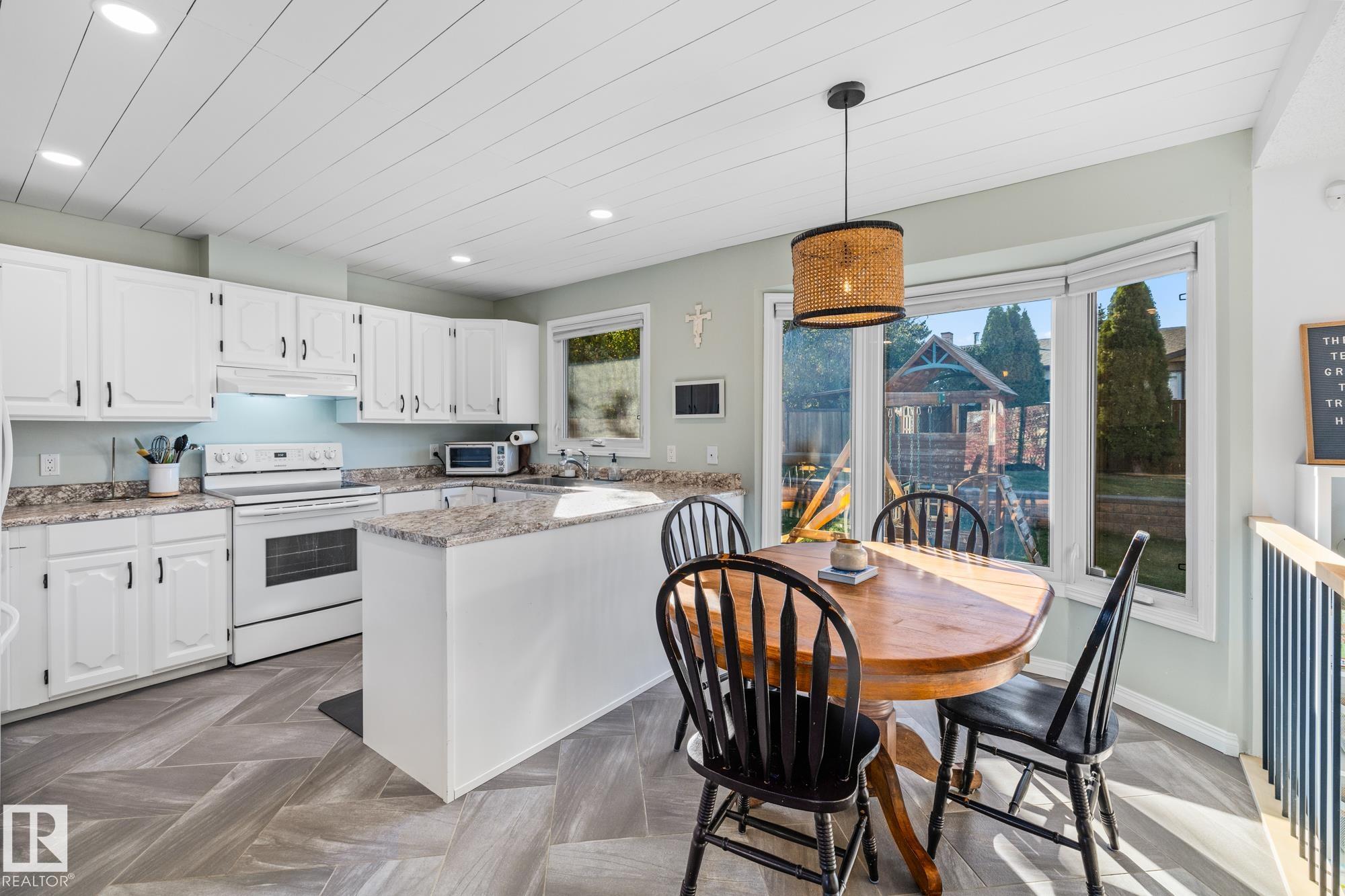 Beautifully renovated and perfectly located, this turnkey 2 storey in Ormsby Place sits in a quiet cul-de-sac across from Willowby Park. With 5 bedrooms and 3.5 baths, it's the ideal home for families seeking space, style and a move-in ready property in west Edmonton. The main floor features sun-filled living and dining with curved bay window, board and batten detail and custom wall-length bookshelves, while the family room centers around a brick fireplace. The bright eat-in kitchen shines with white cabinetry, plank ceiling, recessed lighting, peninsula island, new appliances and walkout access to the yard. Upstairs offers a generous primary suite with private ensuite, 2 bedrooms and a family bath. A main floor bedroom and bath add flexibility, and the finished basement provides a 5th bedroom, bath, rec area & play rm. Outside enjoy a fenced yard with pergola, brick patio, garden beds and mature trees. Extensive updates include kitchen, baths, flooring, lighting, paint, railings, laundry and garage door.
