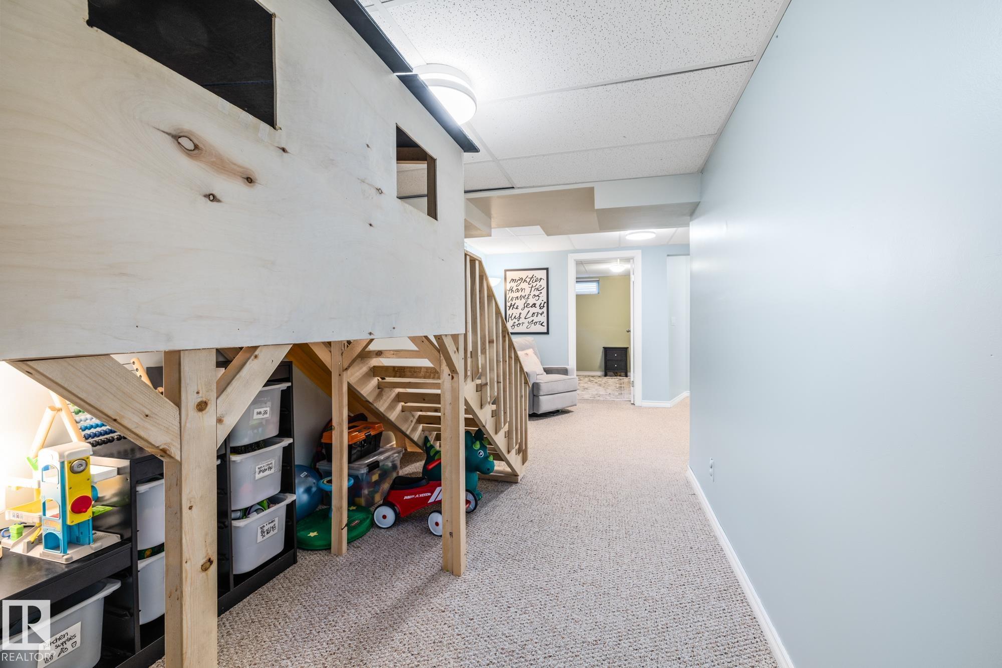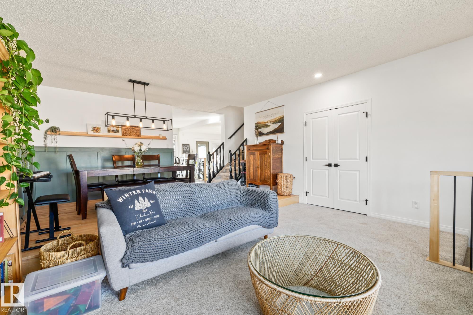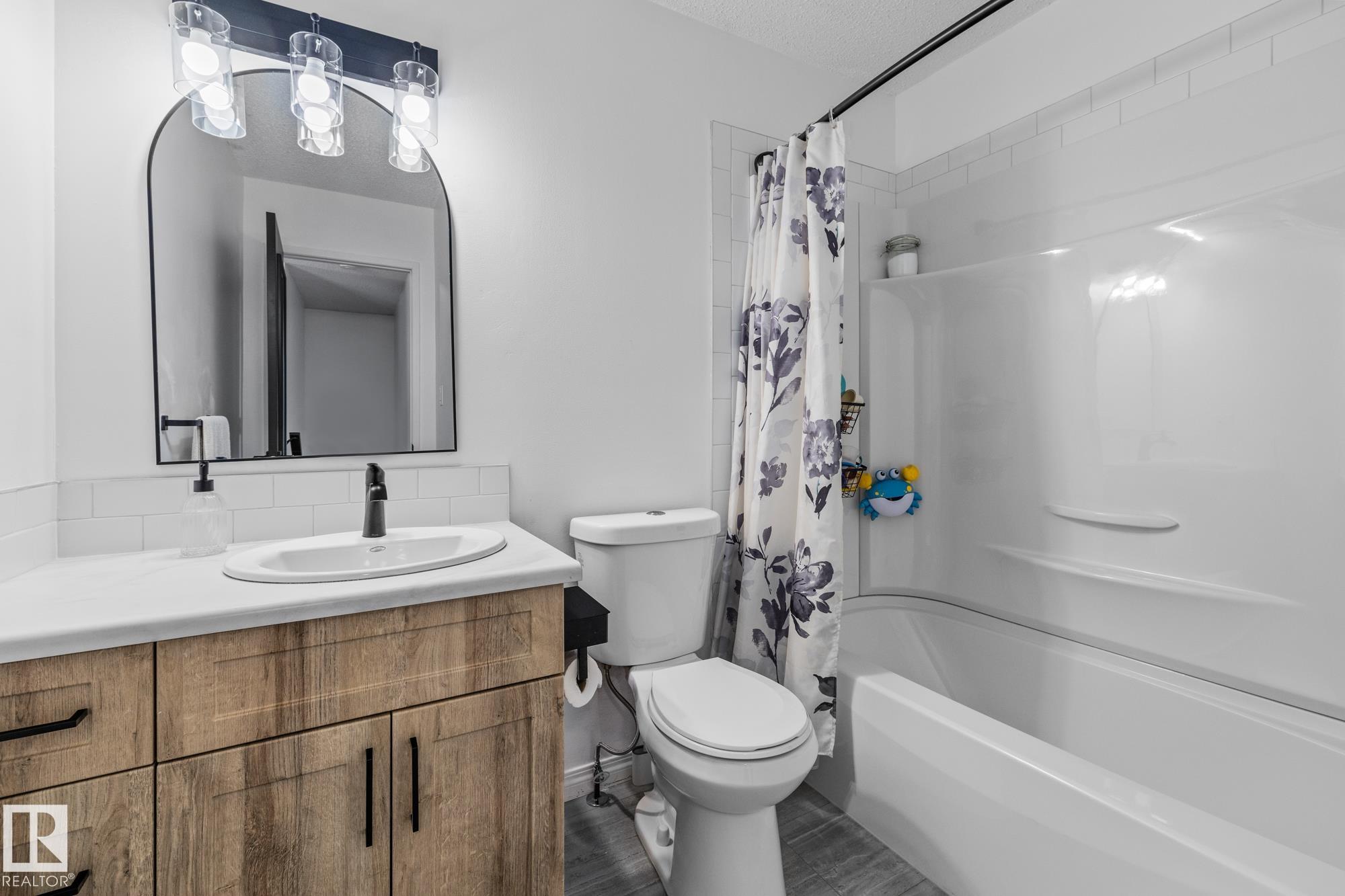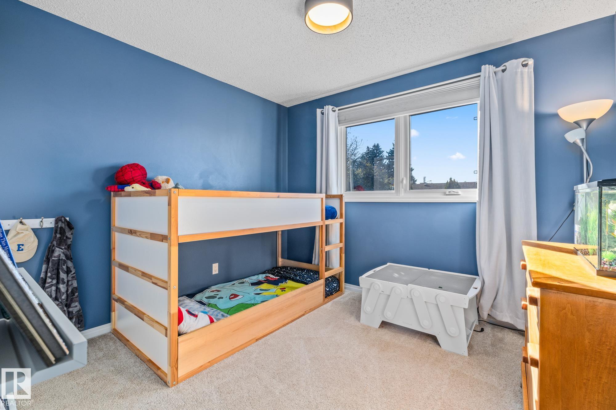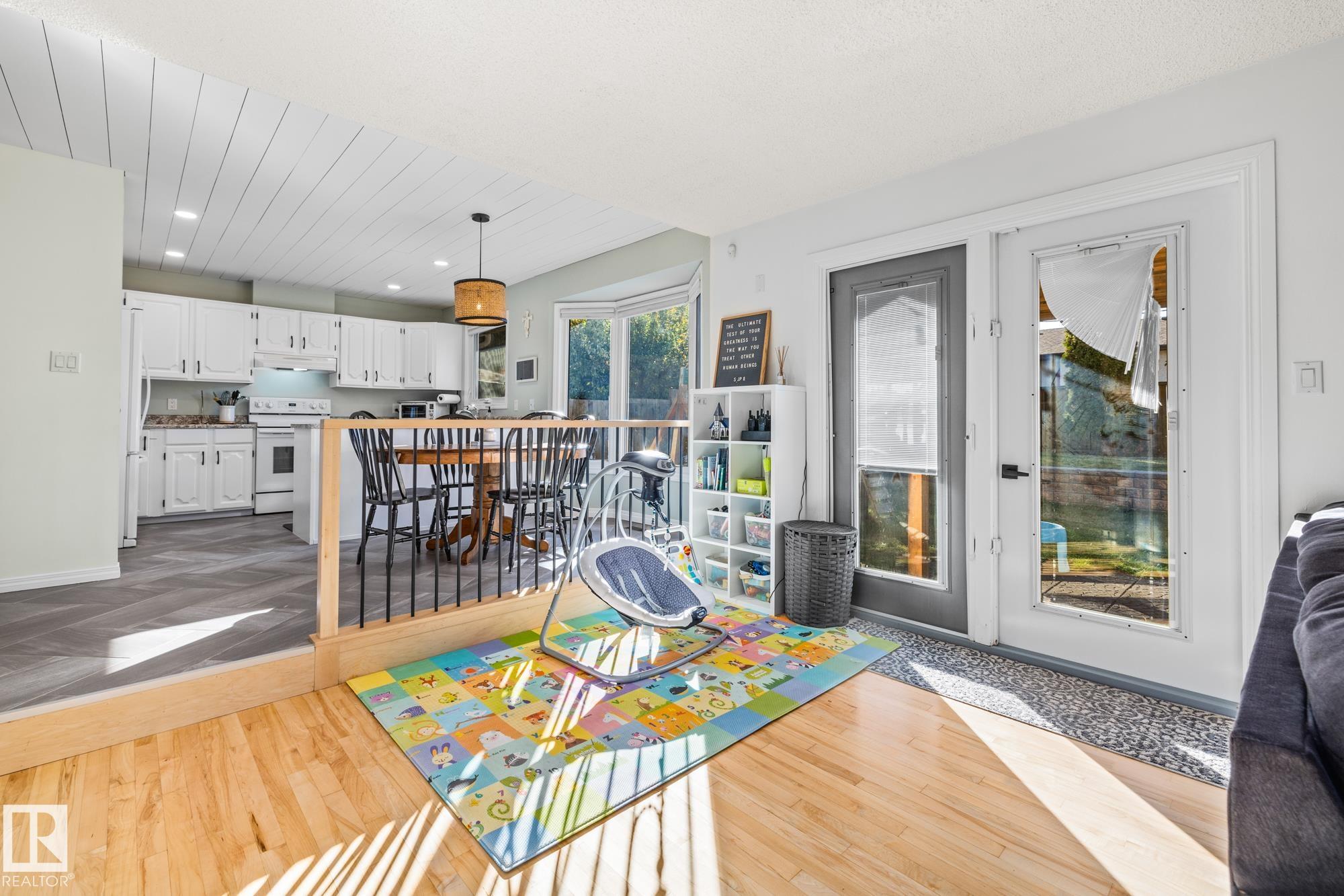 Beautifully renovated and perfectly located, this turnkey 2 storey in Ormsby Place sits in a quiet cul-de-sac across from Willowby Park. With 5 bedrooms and 3.5 baths, it's the ideal home for families seeking space, style and a move-in ready property in west Edmonton. The main floor features sun-filled living and dining with curved bay window, board and batten detail and custom wall-length bookshelves, while the family room centers around a brick fireplace. The bright eat-in kitchen shines with white cabinetry, plank ceiling, recessed lighting, peninsula island, new appliances and walkout access to the yard. Upstairs offers a generous primary suite with private ensuite, 2 bedrooms and a family bath. A main floor bedroom and bath add flexibility, and the finished basement provides a 5th bedroom, bath, rec area & play rm. Outside enjoy a fenced yard with pergola, brick patio, garden beds and mature trees. Extensive updates include kitchen, baths, flooring, lighting, paint, railings, laundry and garage door.