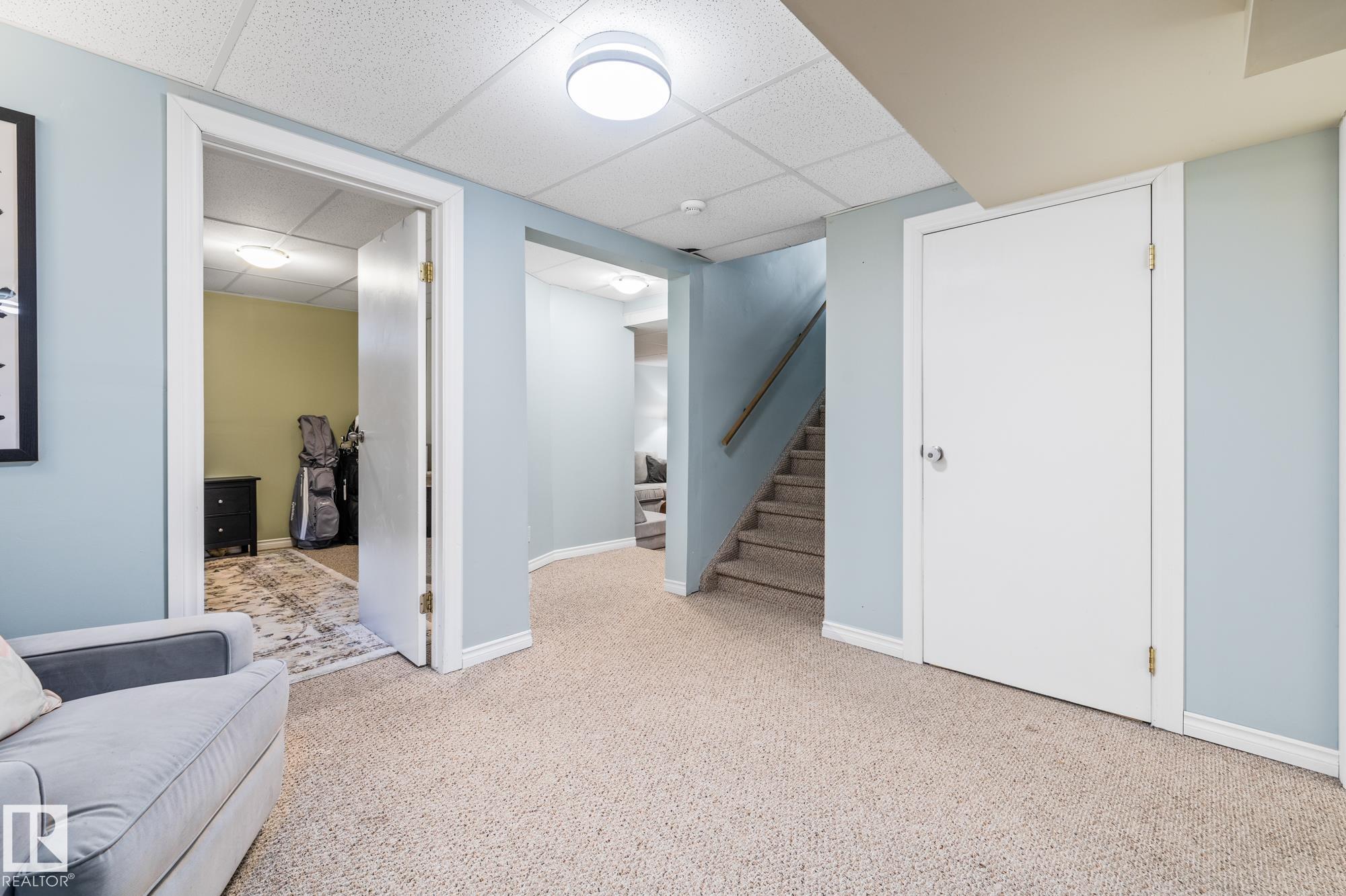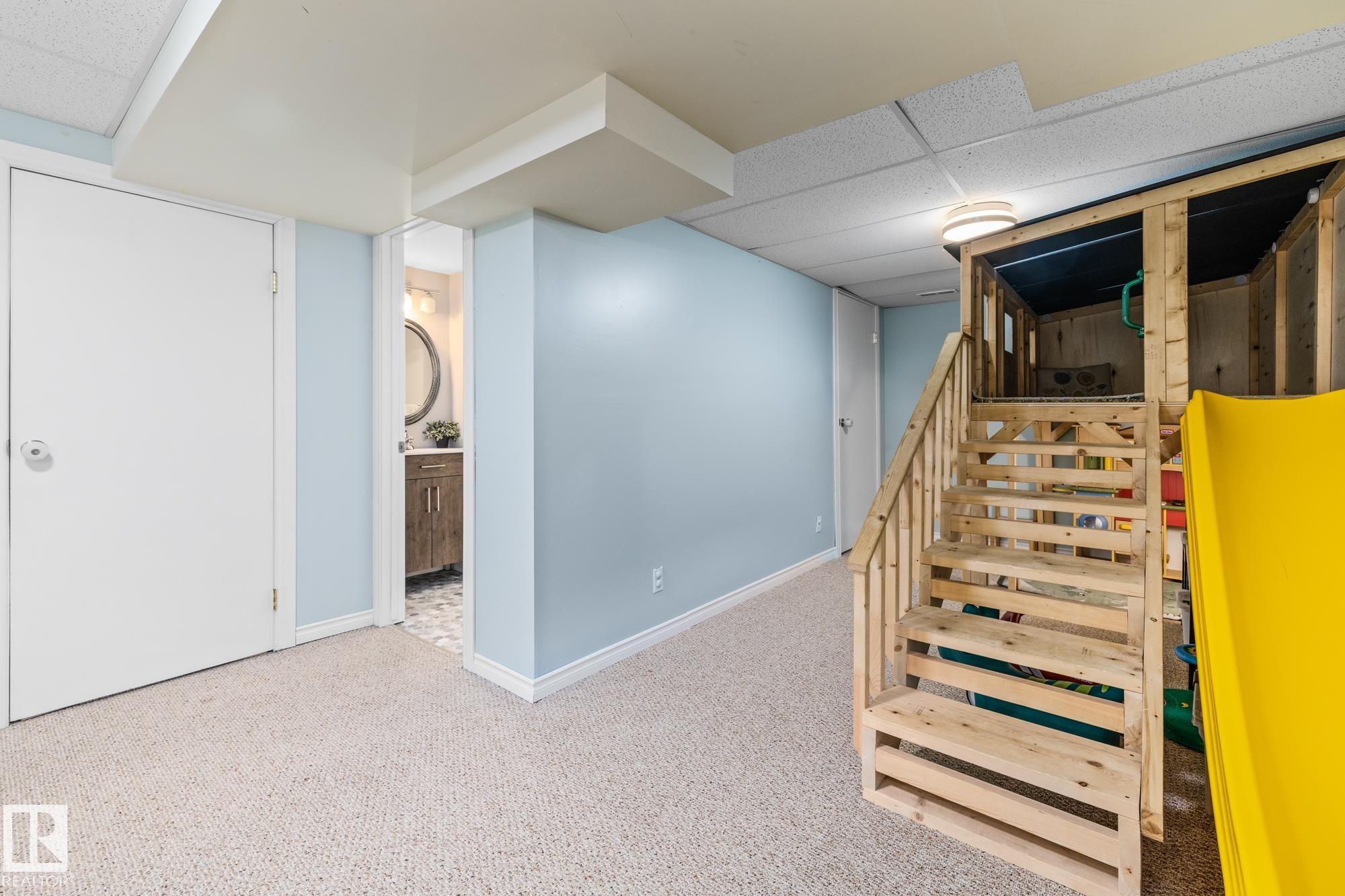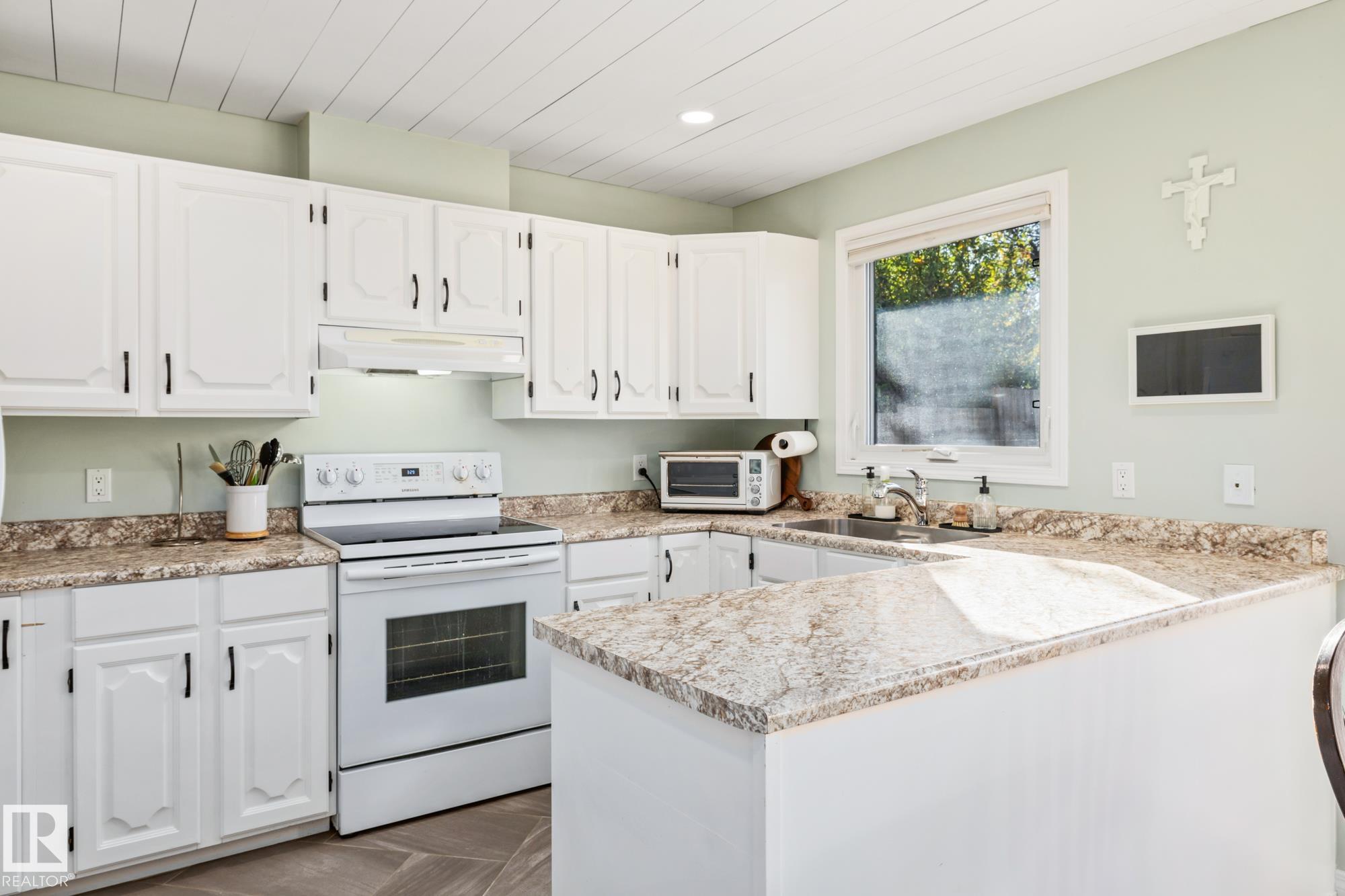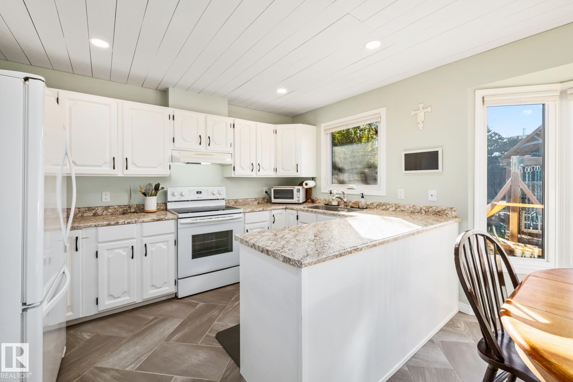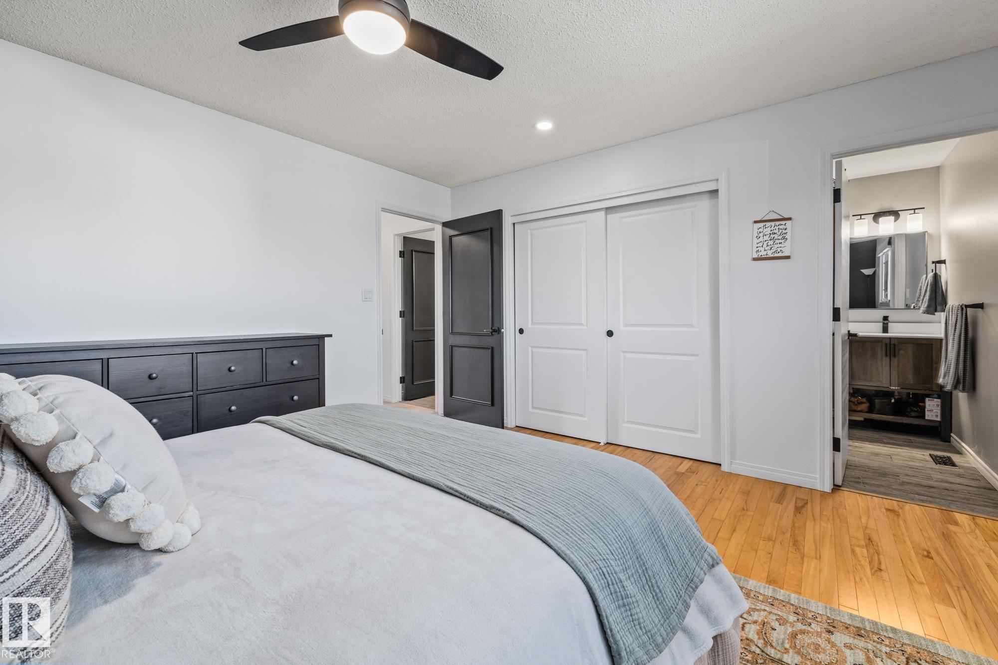Beautifully renovated and perfectly located, this turnkey 2 storey in Ormsby Place sits in a quiet cul-de-sac across from Willowby Park. With 5 bedrooms and 3.5 baths, it's the ideal home for families seeking space, style and a move-in ready property in west Edmonton. The main floor features sun-filled living and dining with curved bay window, board and batten detail and custom wall-length bookshelves, while the family room centers around a brick fireplace. The bright eat-in kitchen shines with white cabinetry, plank ceiling, recessed lighting, peninsula island, new appliances and walkout access to the yard. Upstairs offers a generous primary suite with private ensuite, 2 bedrooms and a family bath. A main floor bedroom and bath add flexibility, and the finished basement provides a 5th bedroom, bath, rec area & play rm. Outside enjoy a fenced yard with pergola, brick patio, garden beds and mature trees. Extensive updates include kitchen, baths, flooring, lighting, paint, railings, laundry and garage door.