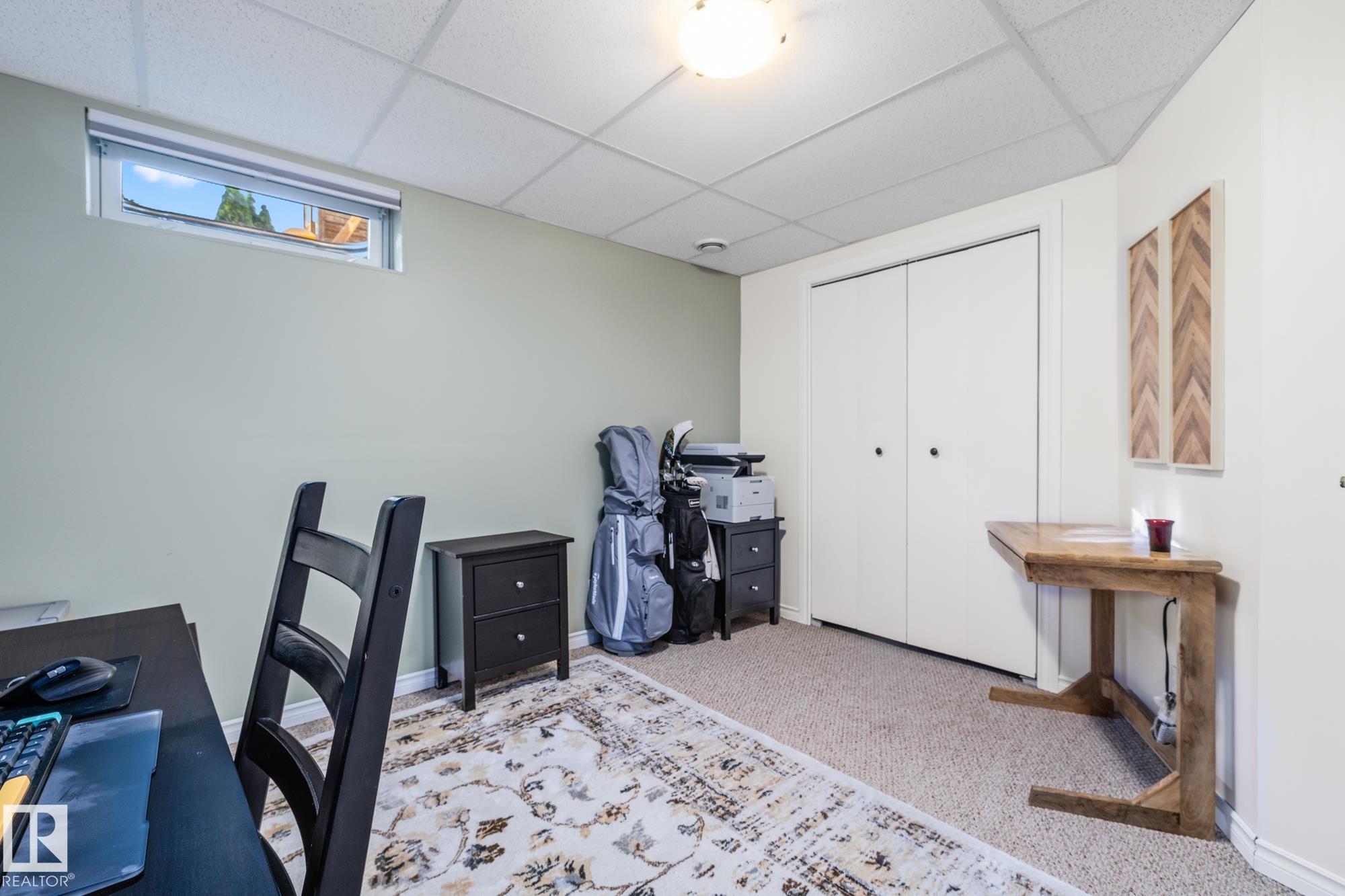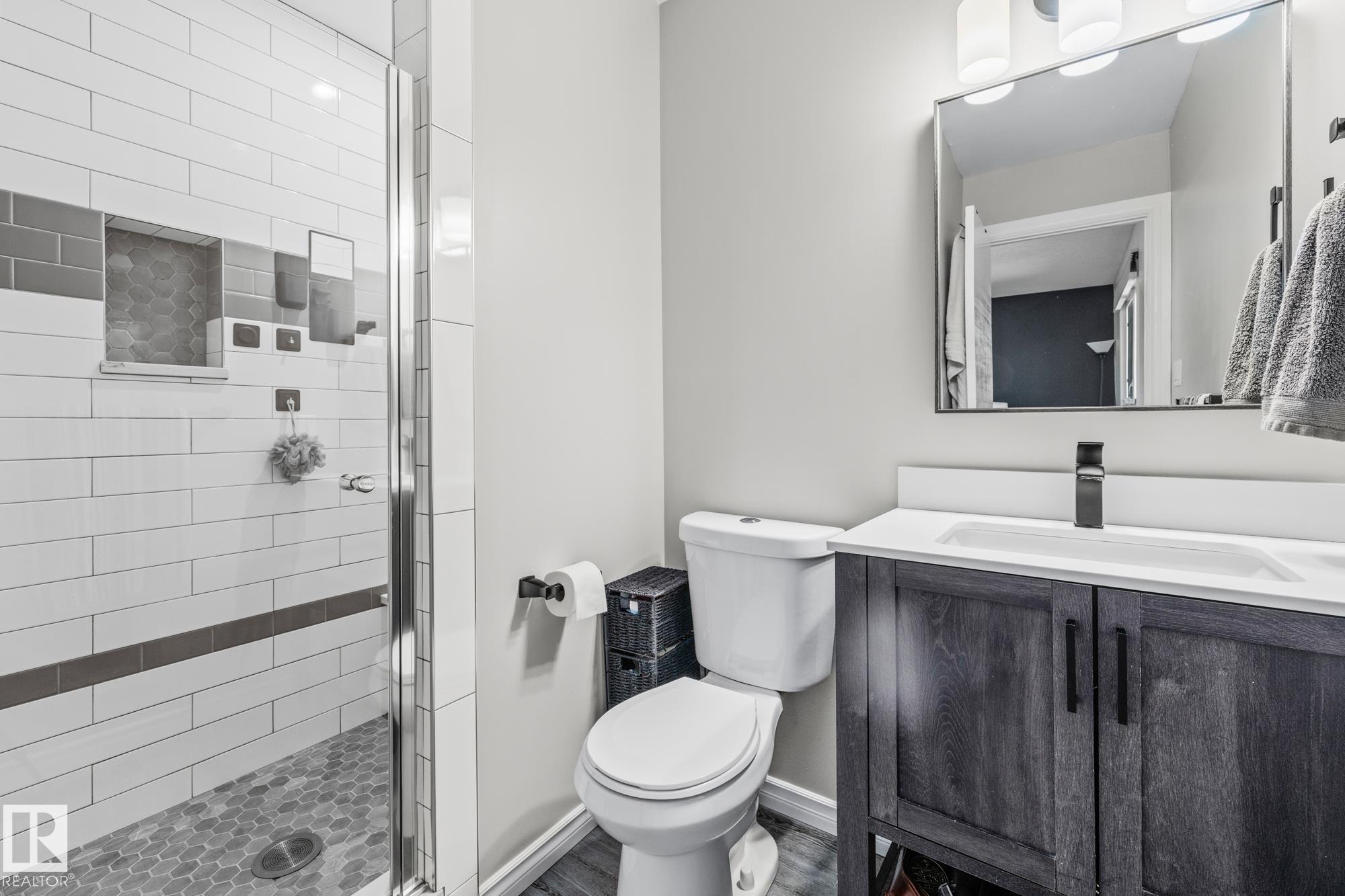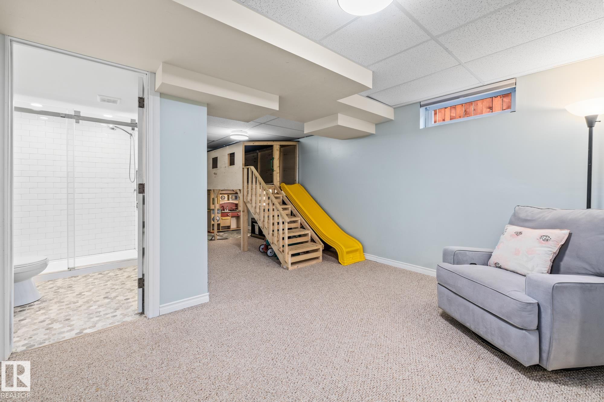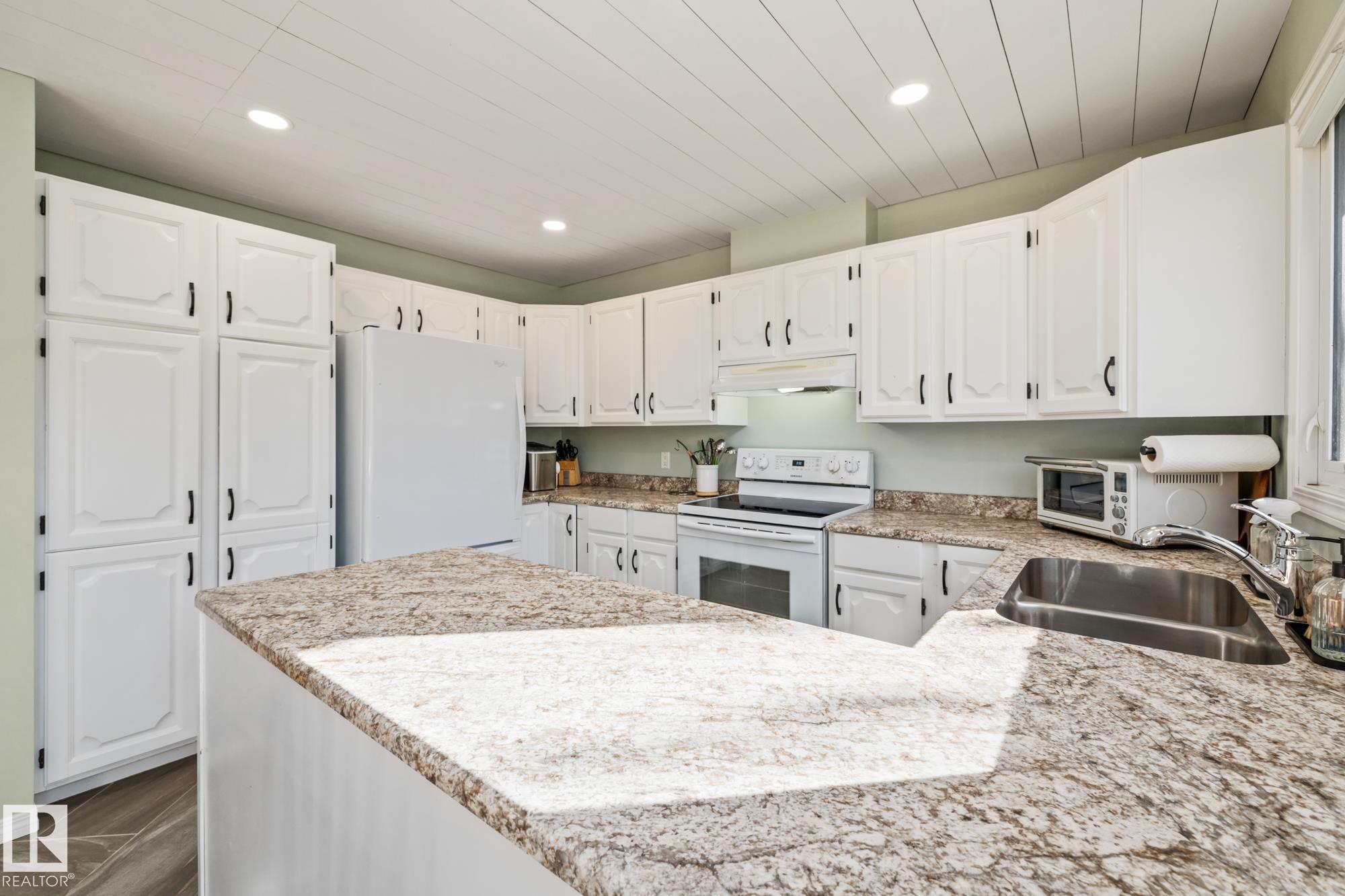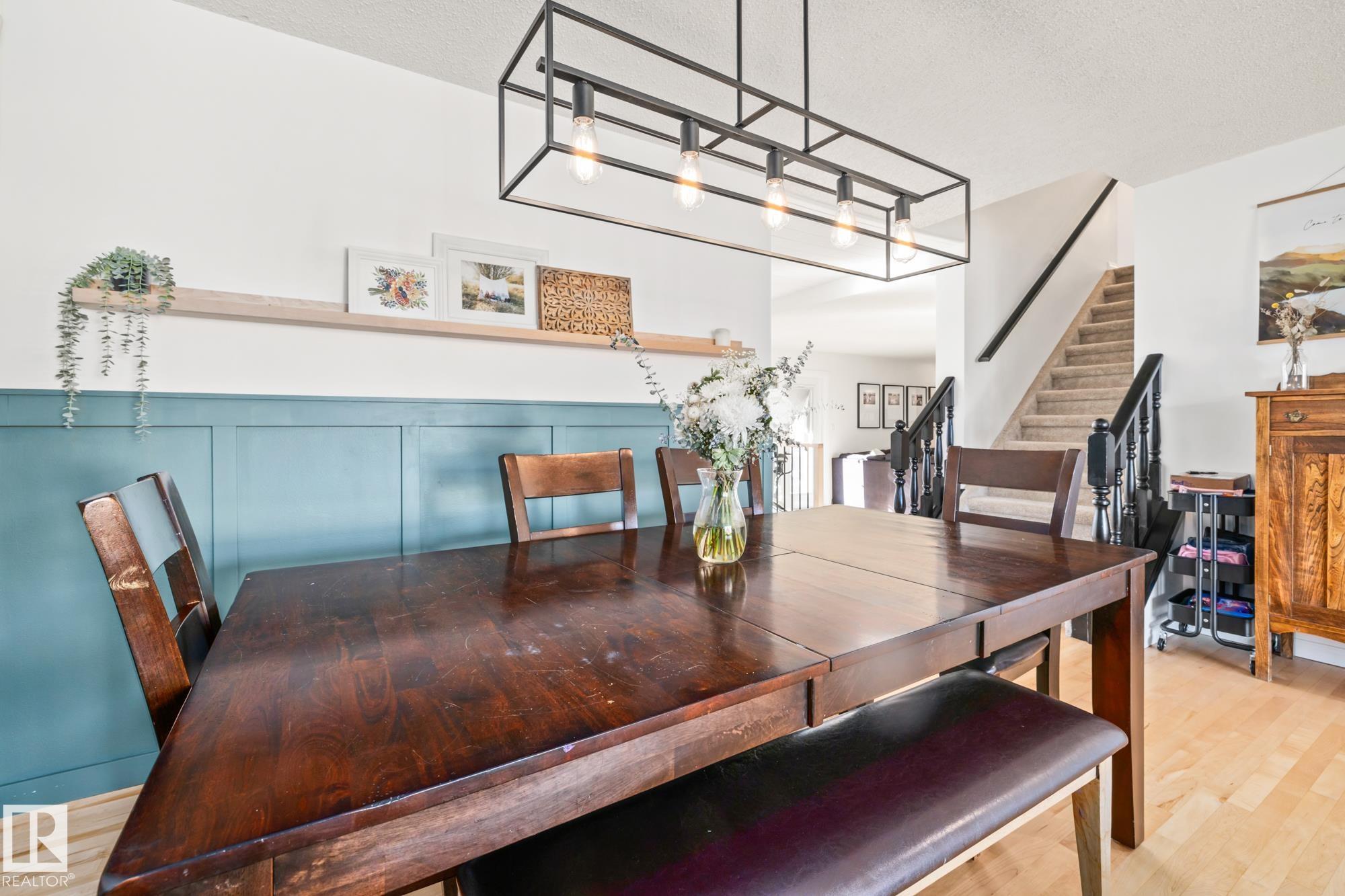 Beautifully renovated and perfectly located, this turnkey 2 storey in Ormsby Place sits in a quiet cul-de-sac across from Willowby Park. With 5 bedrooms and 3.5 baths, it's the ideal home for families seeking space, style and a move-in ready property in west Edmonton. The main floor features sun-filled living and dining with curved bay window, board and batten detail and custom wall-length bookshelves, while the family room centers around a brick fireplace. The bright eat-in kitchen shines with white cabinetry, plank ceiling, recessed lighting, peninsula island, new appliances and walkout access to the yard. Upstairs offers a generous primary suite with private ensuite, 2 bedrooms and a family bath. A main floor bedroom and bath add flexibility, and the finished basement provides a 5th bedroom, bath, rec area & play rm. Outside enjoy a fenced yard with pergola, brick patio, garden beds and mature trees. Extensive updates include kitchen, baths, flooring, lighting, paint, railings, laundry and garage door.