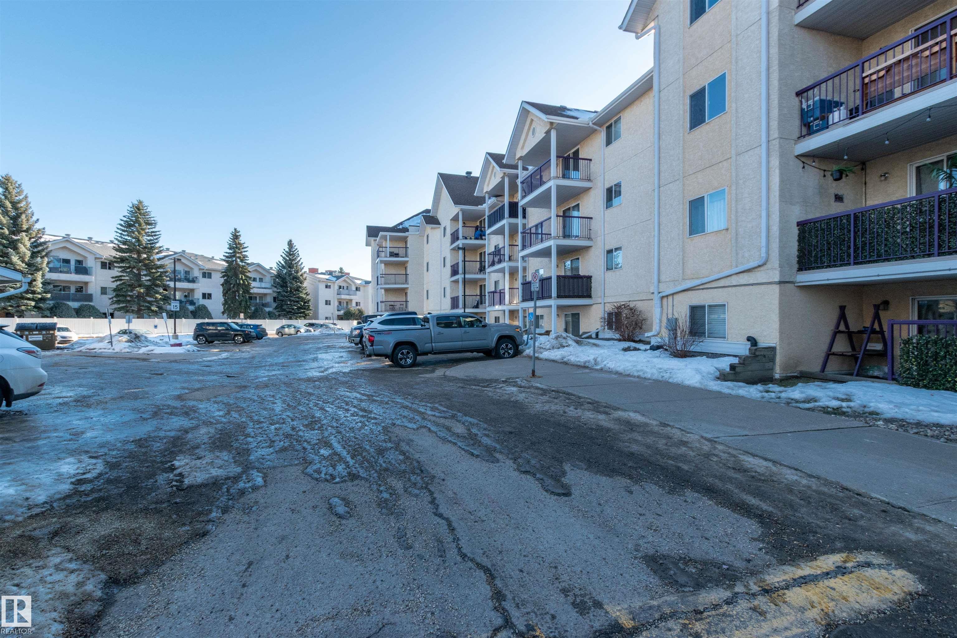 Very clean and move-in condition Top floor unit! 2 bedrooms and 2 full upgraded baths! Cozy corner gas fireplace in spacious and bright living room. Kitchen has newer stainless appliances. Ceramic flooring in kitchen and dining area and laminate in living room and bedrooms. Master bedroom has his and her walk through closets. Newer washer and dryer. Separate from laundry room is a large storage room with shelving. Bedrooms are on opposite sides of layout, great for sharing/privacy. Covered good size balcony with gas hook-up. You can with a remote, start and view your car from the balcony. Minutes to Oliver Brewery district, Roger's Place, Macewan, U of A, Nait and downtown. A lovely short walk to all 124 street has to offer. Plenty of visitor parking.