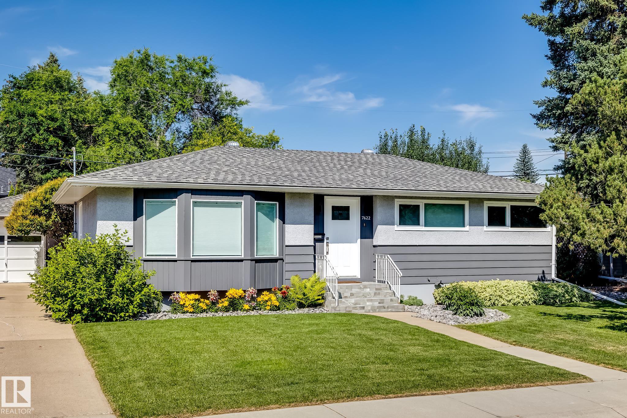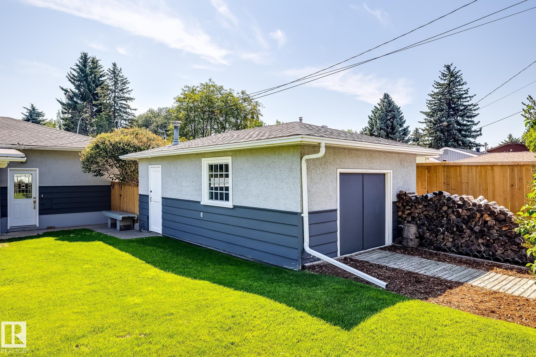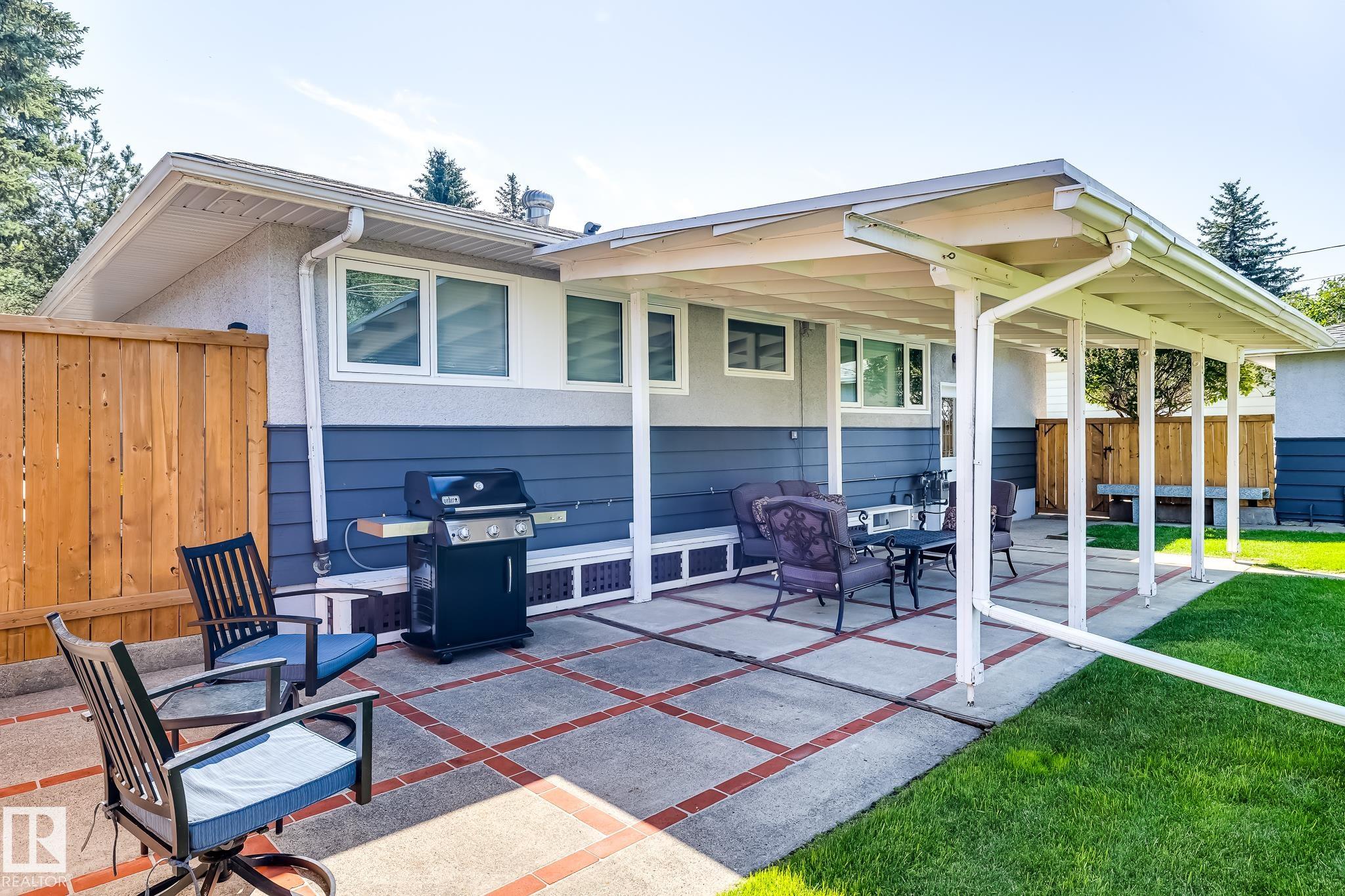 Welcome to Rio Terrace, one of Edmonton's most sought-after west end communities, known for mature trees, oversized lots, top-rated schools, with quick access to Downtown & the UofA and direct access to the River Valley trail system. This stunning bungalow was renovated down to the studs with major upgrades including new plumbing, 150-amp electrical service, central A/C, triple pane windows and 50-year shingles. The bright open-concept main floor features engineered white oak hardwood, a designer kitchen with 8' island, and fully updated bathrooms with heated floors. Outside, enjoy a heated garage, new fence and beautiful brick inlay patio overlooking a massive, private, park-like yard. Turnkey living on a quiet, family-friendly street in a premier Rio Terrace setting.
