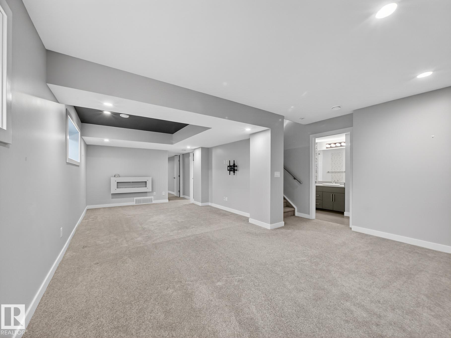 Homes By Metro combined modern elegance with sophisticated living when they designed this meticulous 4-bedroom, 4-bathroom home plus a legal GARAGE SUITE. The stunning kitchen features a linear wood ceiling, enormous quartz island, top of the line appliances, including a gas stove, & ample cabinetry. Warm hickory flooring enchances the seamless open concept layout where you transition effortlessly through huge sliding glass doors to a private, south facing sunny backyard, complete with an oversized deck. Flush mount gas fireplace & custom shelving in the living room. Upstairs is the luxurious primary retreat with massive walk-in closet & 4-piece ensuite. Completing this level are two great size bedrooms, both with walk-in closets, a 4-piece bathroom & a large laundry room. The fully finished basement has a family room, fourth bedroom with b/i desk & 4-piece bathroom. The one bedroom garage suite has a street facing entrance & laundry. A/C. Heated double detached garage. 20 min walk to Mill Creek Ravine.