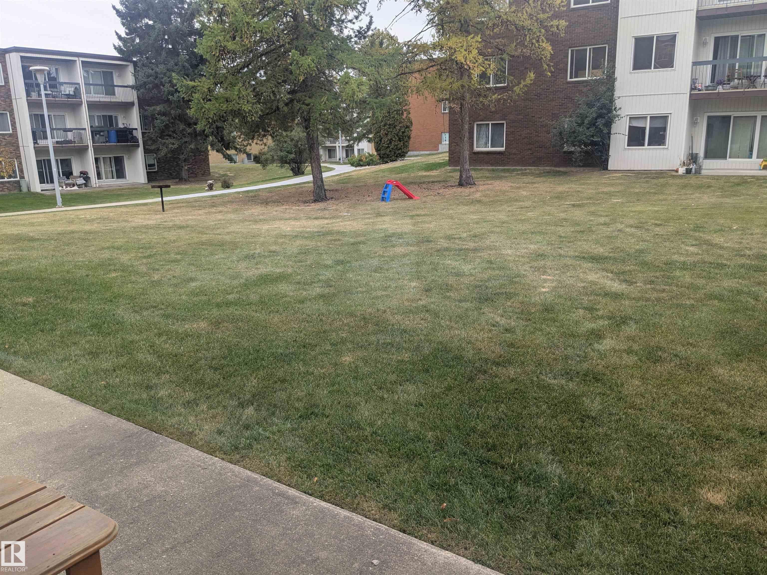 RARE 2 bedroom, 2 bathroom condo with walkout patio in the always desirable complex of Cedarbrae. A mature building in great location, walking distance to grocery store, restaurants and schools. This unit is waiting your special touch to update and make it your own. Large living room overlooking the quiet courtyard with west facing patio perfect for the evening sun. Galley kitchen and dining room that is practical. 2 large bedrooms - one with a full ensuite and walkthrough closet. The main 4 piece bathroom has just been renovated. In suite laundry, potential storage room, gym and guest suite. Exceptional value in this undervalued building!