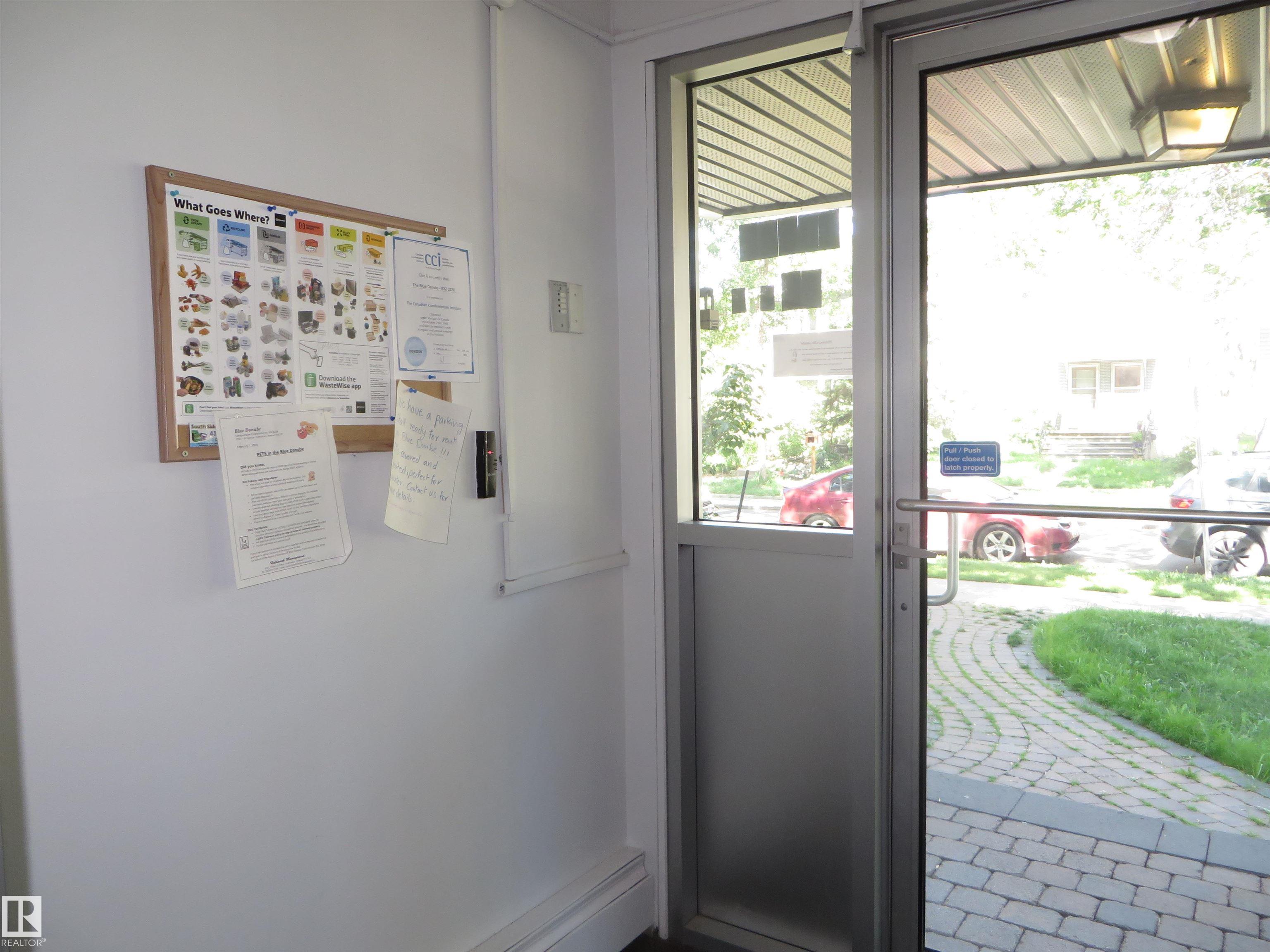 This upgraded contemporary 1 bedroom, 1 bath main floor corner unit is perfectly located on a quiet tree lined street just steps away from Whyte Ave amenities including unique boutique shops, variety of casual & trendy dining, cafe, pubs, year-round farmer market & more. The spacious bright and open floor plan features large living room w/ patio doors to a enclosed patio, upgraded maple kitchen with granite countertop & tiled backsplash. Spacious bedroom has mirror closet door. Insuite laundry, maple hardwood & tiled floorings, decorative crown moulding. Extra huge windows, energized parking stall & more. Well maintained building in an outstanding location w/ easy access U of A, public transit, City Centre, River Valley trails and more. Affordable and great buy for starter/revenue home.