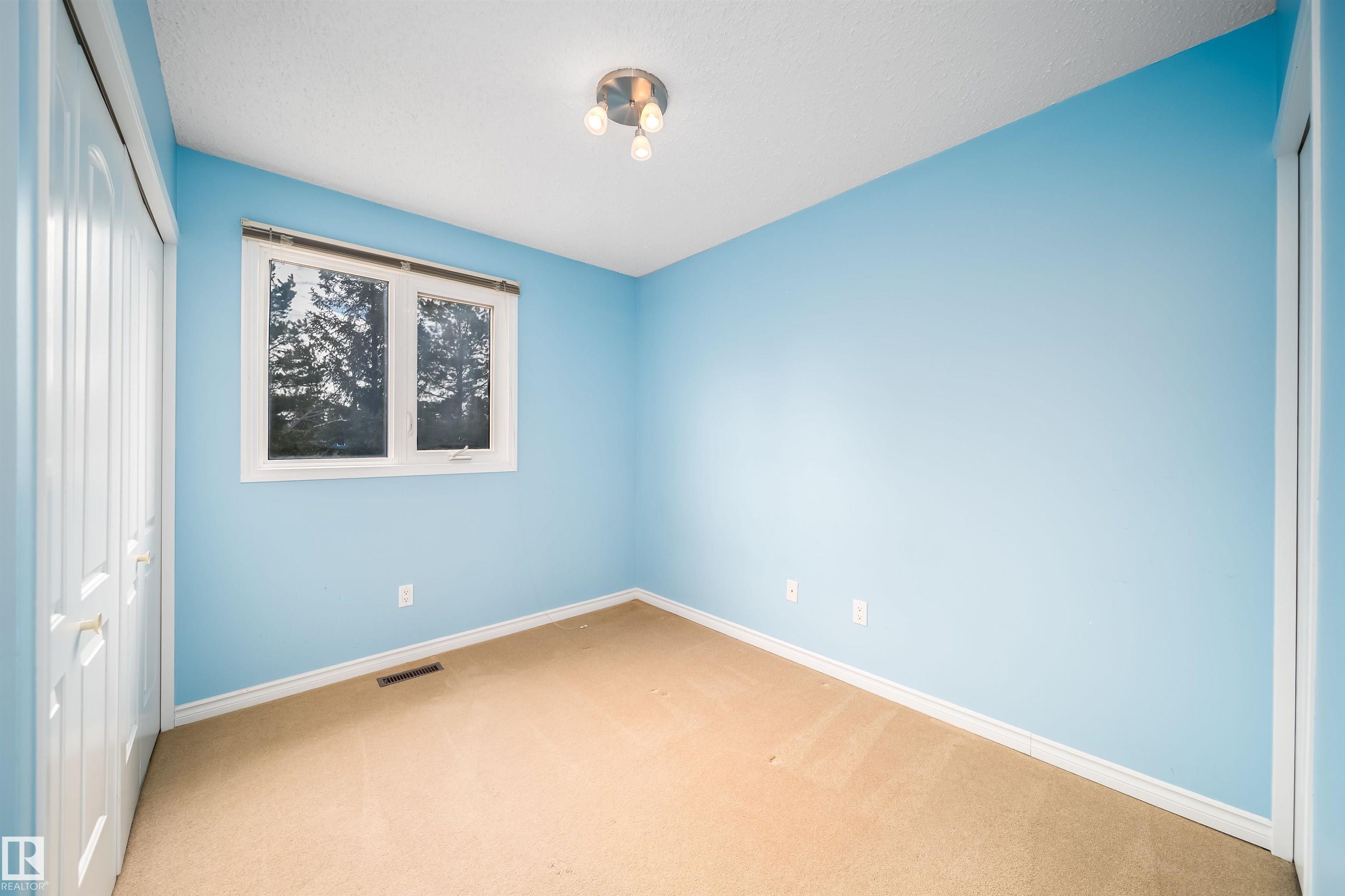 Welcome to Derrick Hills Estates! This sophisticated 3-bedroom townhouse in Sweet Grass is move-in ready. Meticulously maintained, the interior features professionally steam-cleaned carpets and a super-clean, vacant layout ready for immediate possession. The upper level is designed for modern functionality, featuring a convenient Jack and Jill bathroom that provides seamless dual access. Every bedroom is optimized for storage with custom built-in closet organizers already installed. Enjoy peace of mind in a well-maintained community boasting a recently upgraded exterior with newer windows and siding. The open-concept main floor, anchored by a sun-drenched foyer and skylight, flows effortlessly to your private fenced patio. Unbeatably located steps from the Derrick Golf & Winter Club and Whitemud ravines, you are minutes from Southgate LRT and premium amenities. Includes assigned parking.
