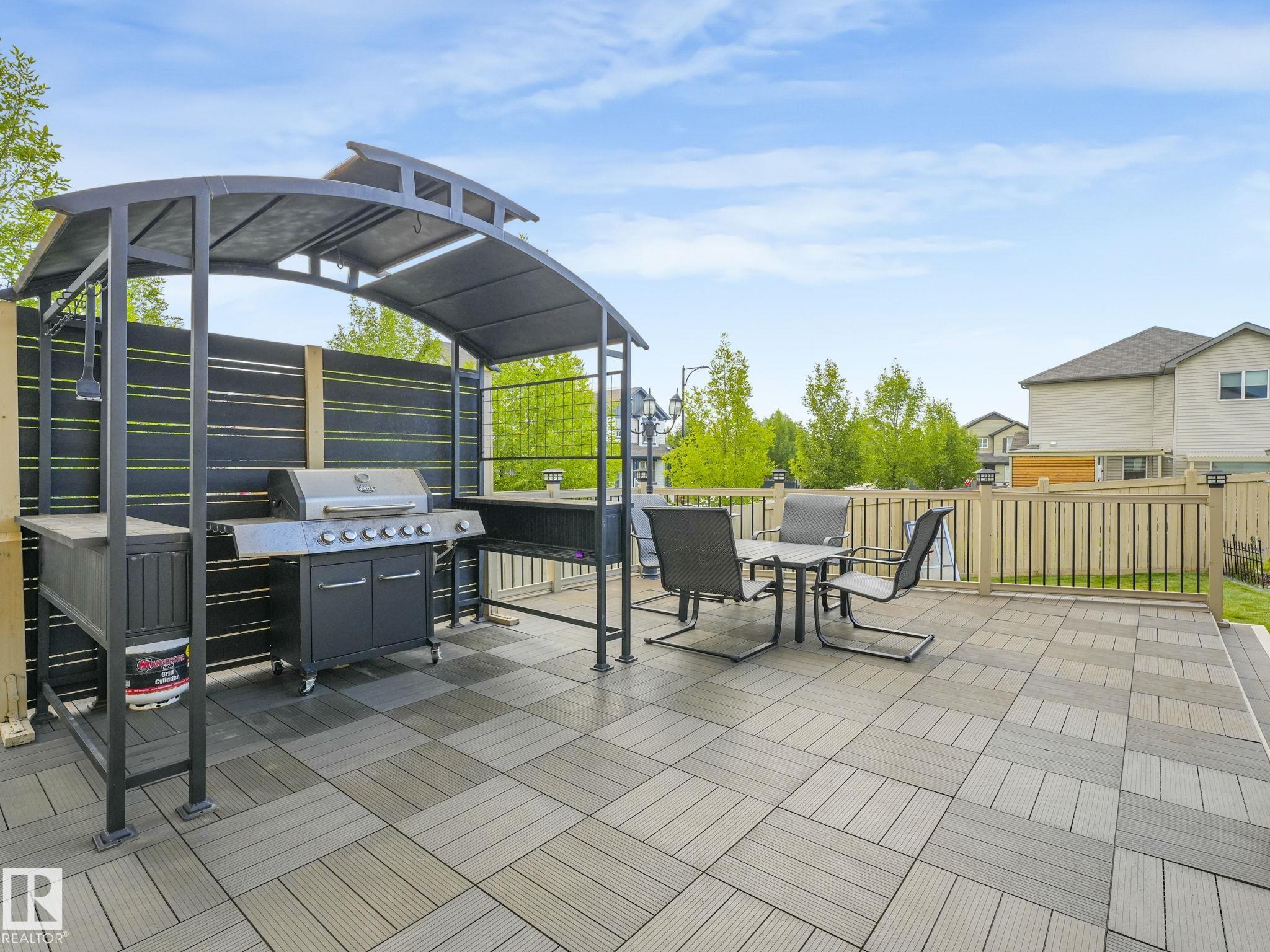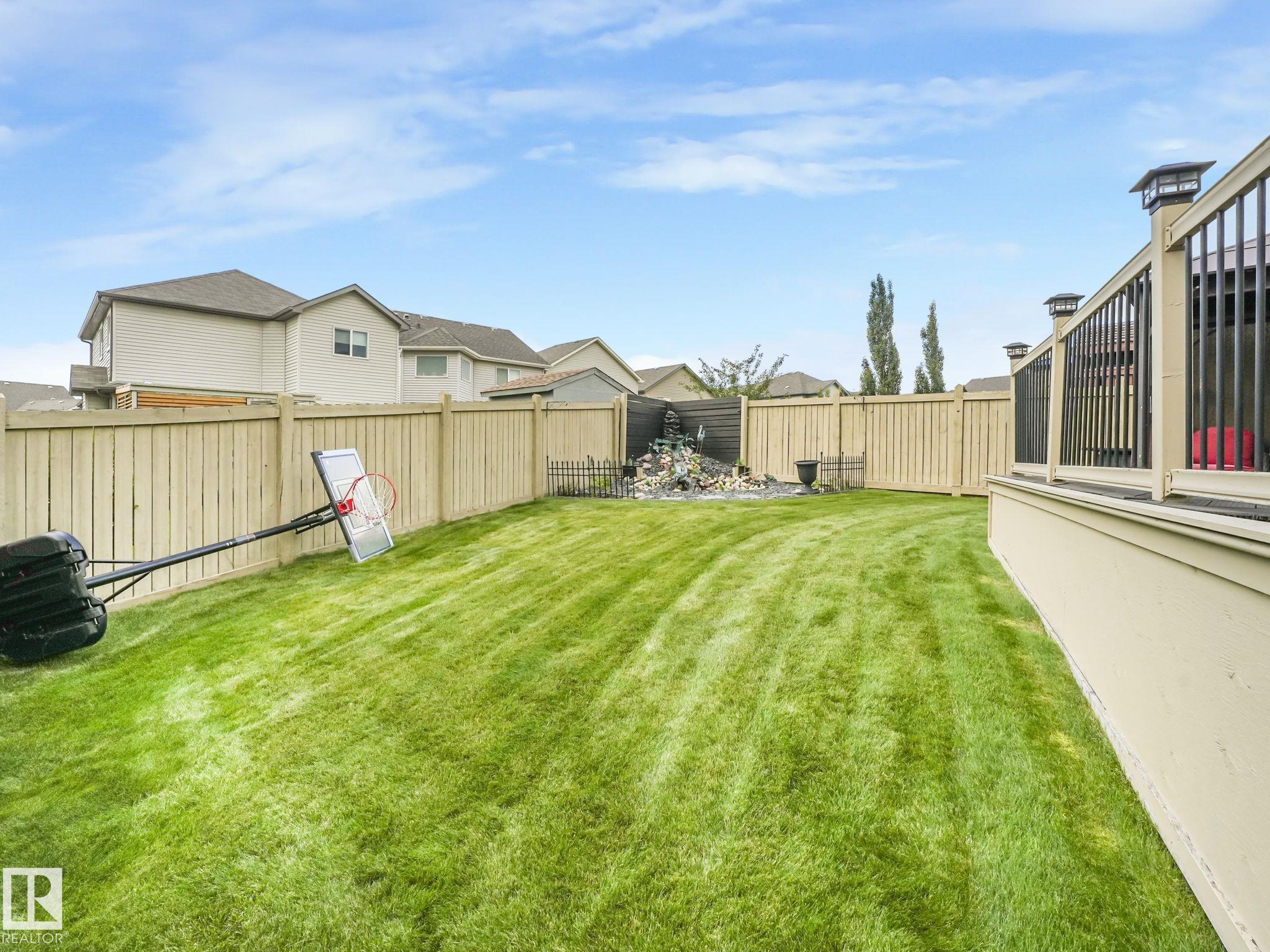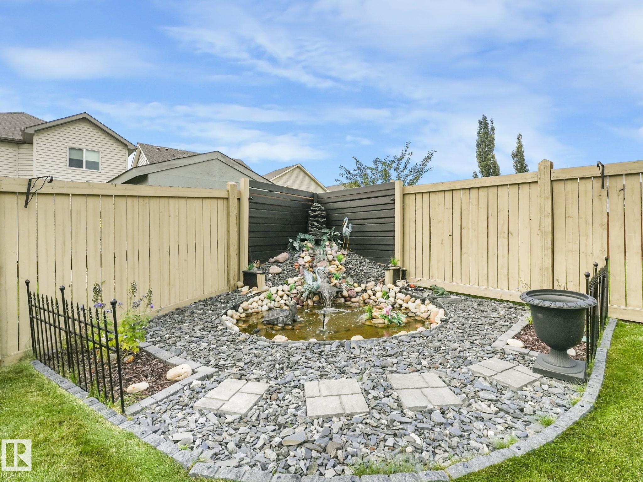 Lovingly maintained by the original owners, this bright corner lot 2-storey offers true move in comfort with no construction noise, dust, or waiting for landscaping. Enjoy a fully finished yard with a deck, two gazebos, fountains, and app-controlled Gemstone Lighting, perfect for relaxing or entertaining. Inside, hardwood floors, custom blinds, and sun-filled spaces create a welcoming feel. The main floor features a large foyer, flex room (ideal as a dining, playroom, or music room), 2-piece bath, and a walk-through pantry connecting the mudroom to a spacious kitchen with granite counters and island seating. The dining area, surrounded by windows, opens to the yard for effortless BBQs and family dinners. Cozy up by the gas fireplace with its designer wood mantle, or retreat upstairs to the bonus room, laundry, and three bedrooms including a generous primary suite with walk-in closet and 5-piece ensuite. The basement is ready for future development with 2 windows and rough-in plumbing. Central AC, Furnace