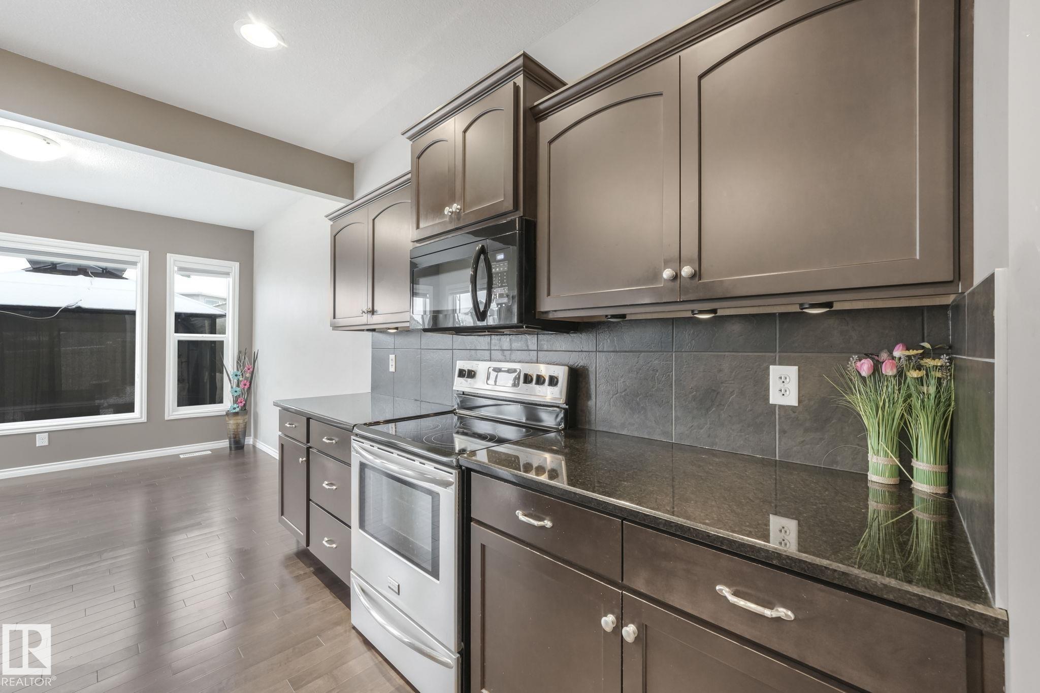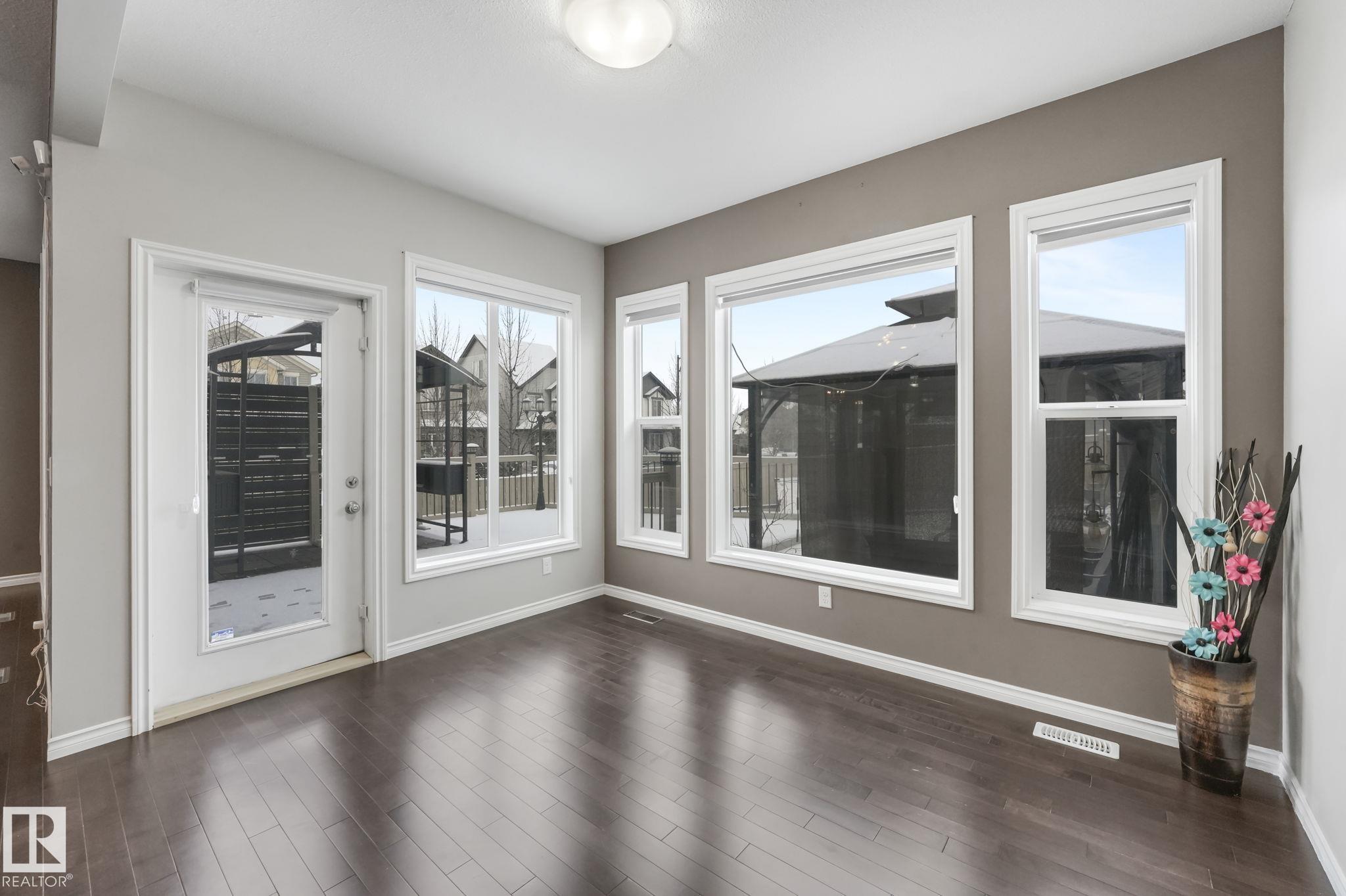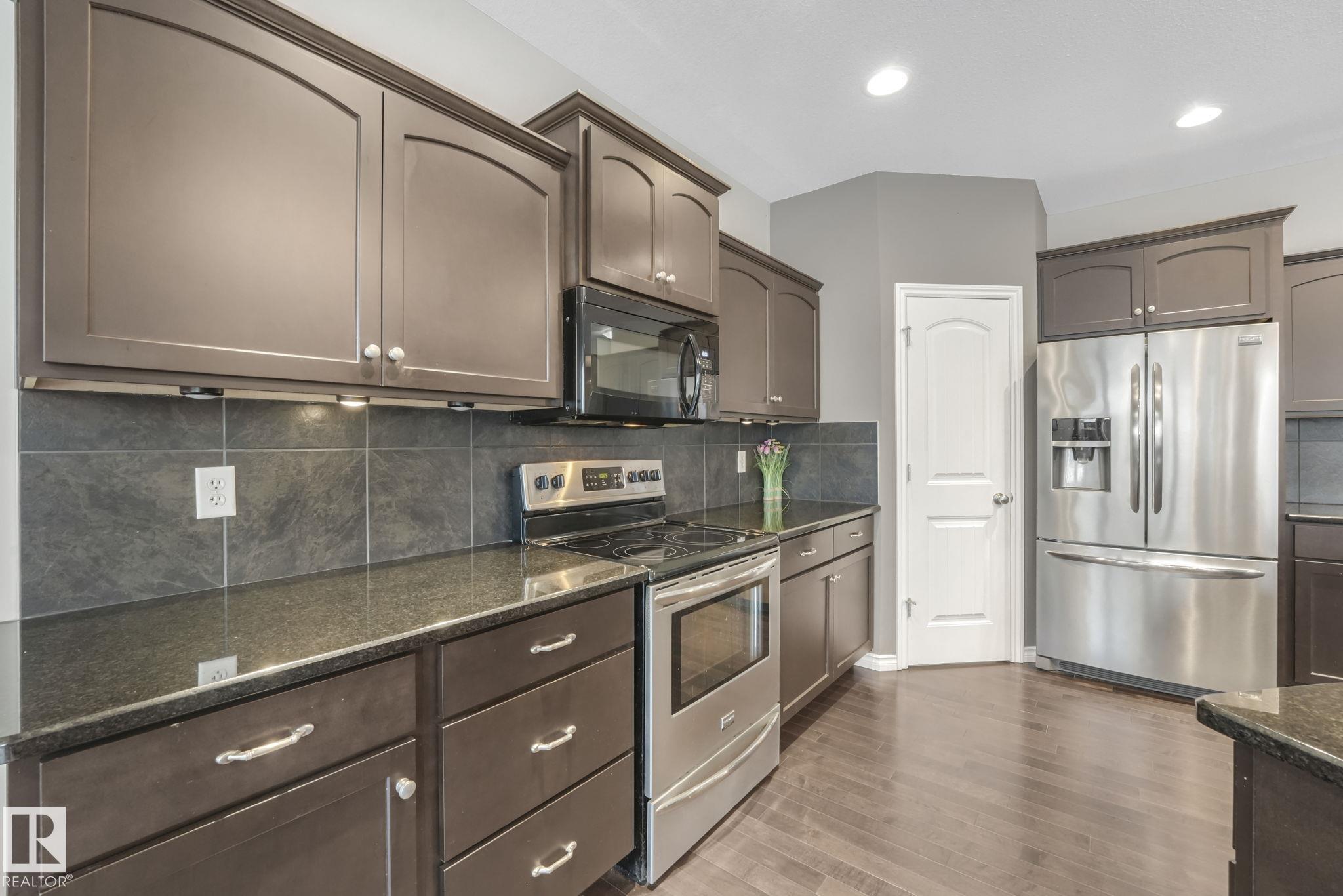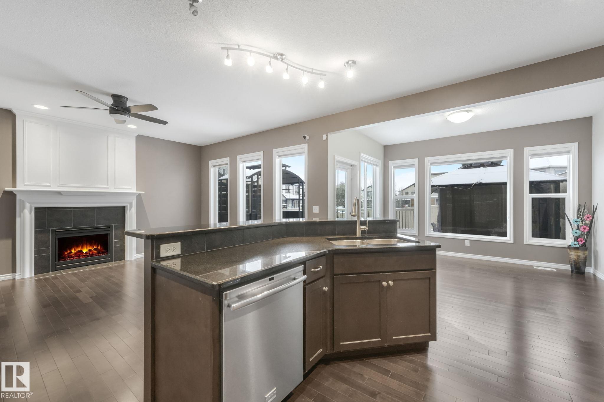 Lovingly maintained by the original owners, this bright corner lot 2-storey offers true move in comfort with no construction noise, dust, or waiting for landscaping. Enjoy a fully finished yard with a deck, two gazebos, fountains, and app-controlled Gemstone Lighting, perfect for relaxing or entertaining. Inside, hardwood floors, custom blinds, and sun-filled spaces create a welcoming feel. The main floor features a large foyer, flex room (ideal as a dining, playroom, or music room), 2-piece bath, and a walk-through pantry connecting the mudroom to a spacious kitchen with granite counters and island seating. The dining area, surrounded by windows, opens to the yard for effortless BBQs and family dinners. Cozy up by the gas fireplace with its designer wood mantle, or retreat upstairs to the bonus room, laundry, and three bedrooms including a generous primary suite with walk-in closet and 5-piece ensuite. The basement is ready for future development with 2 windows and rough-in plumbing. Central AC, Furnace