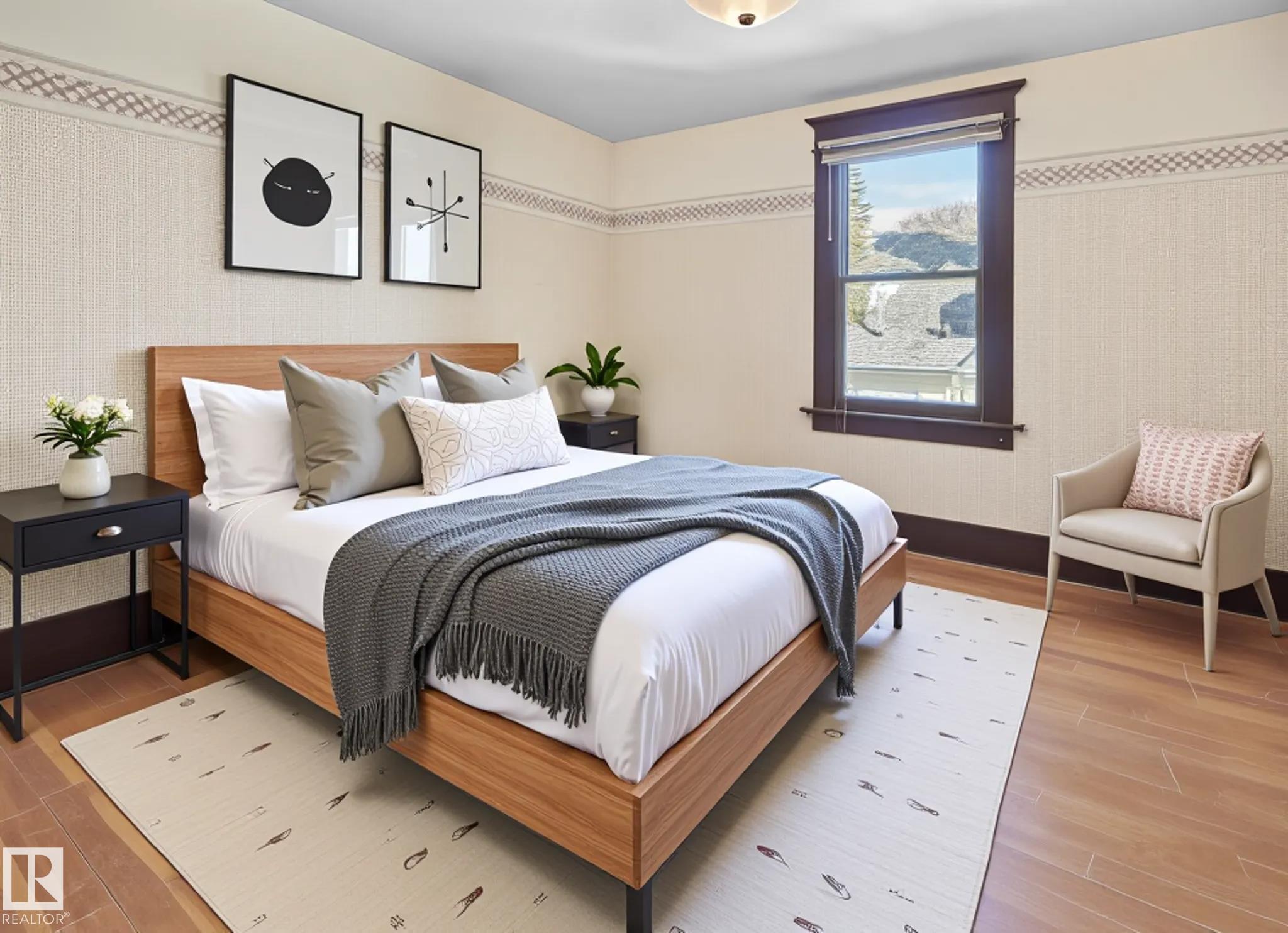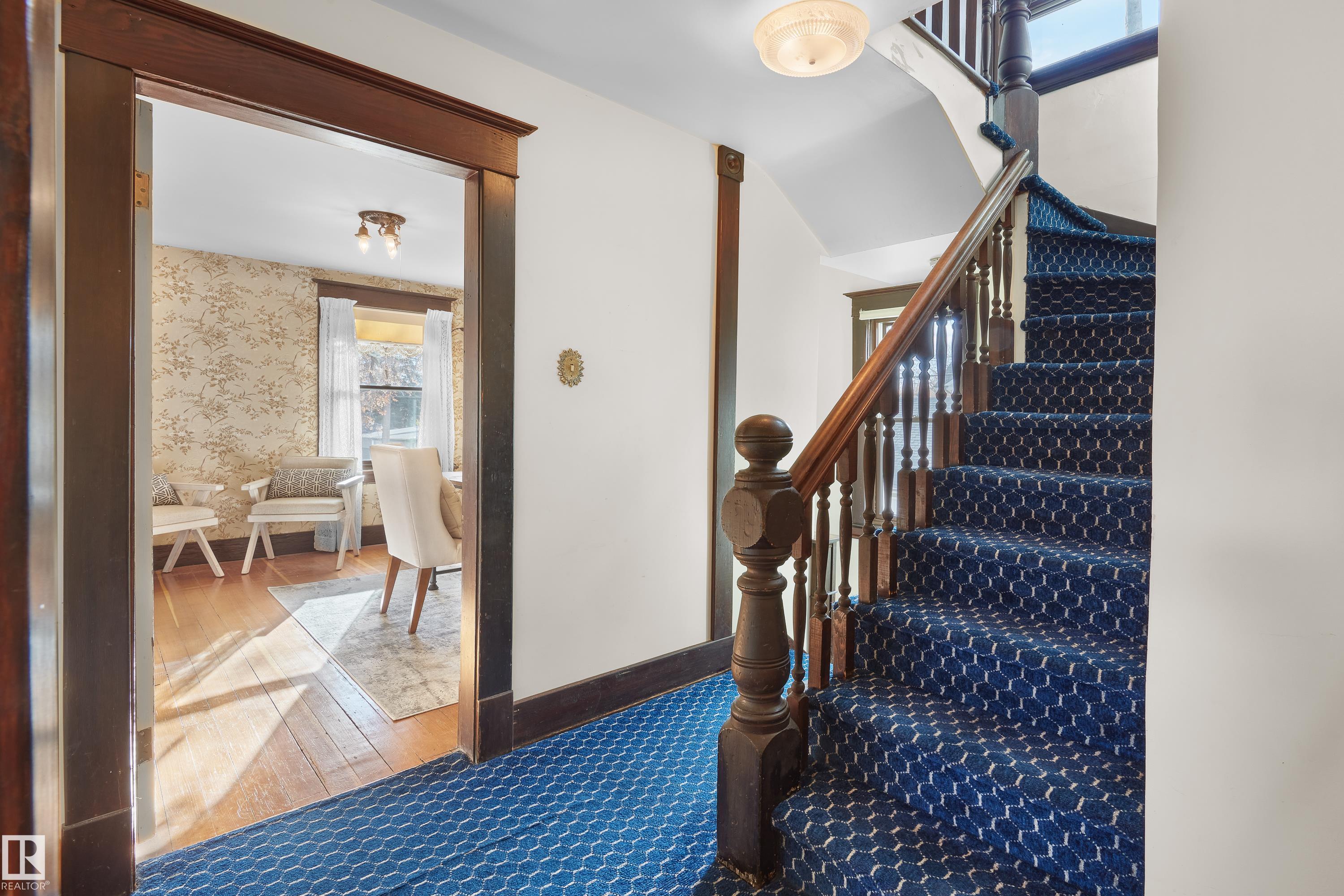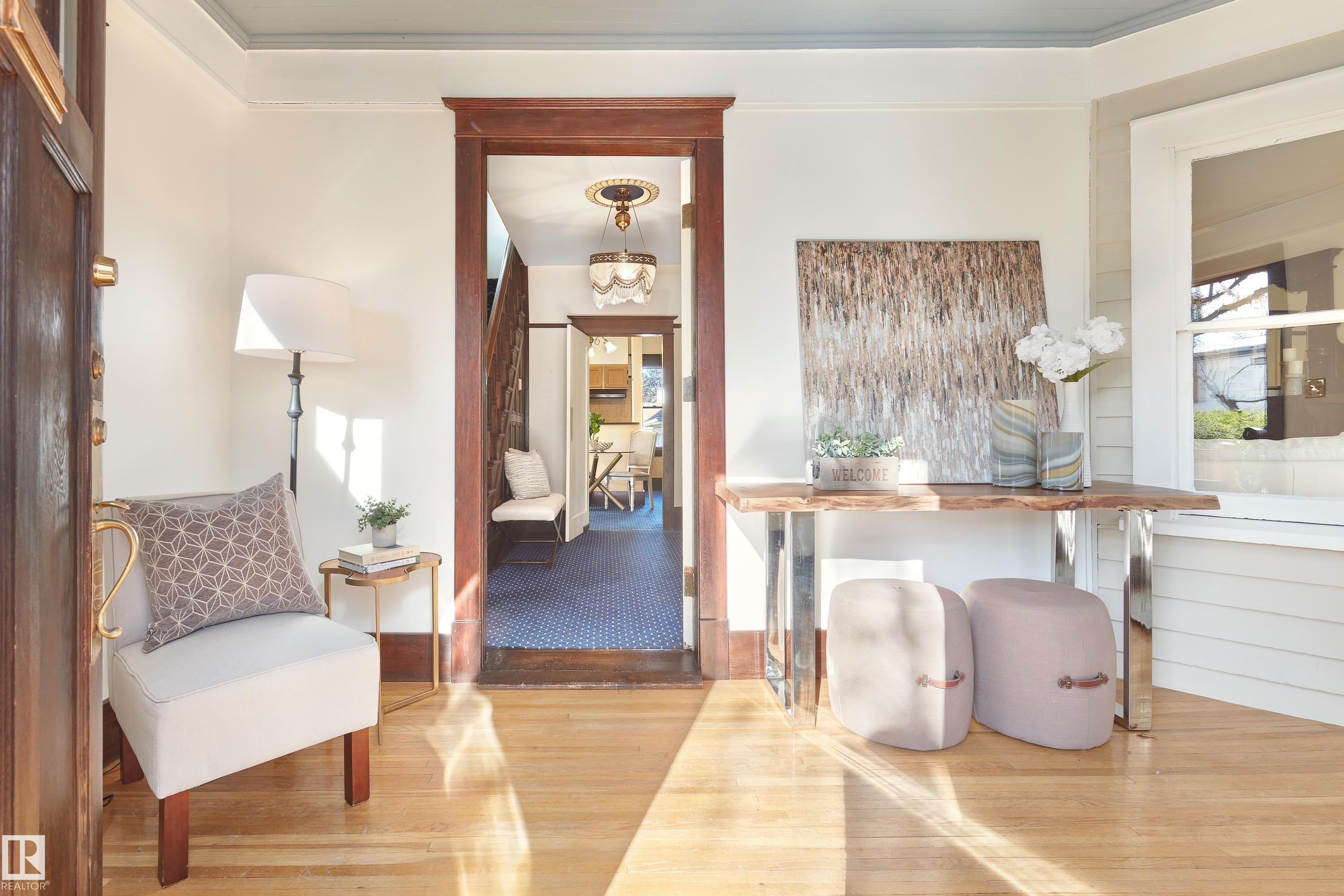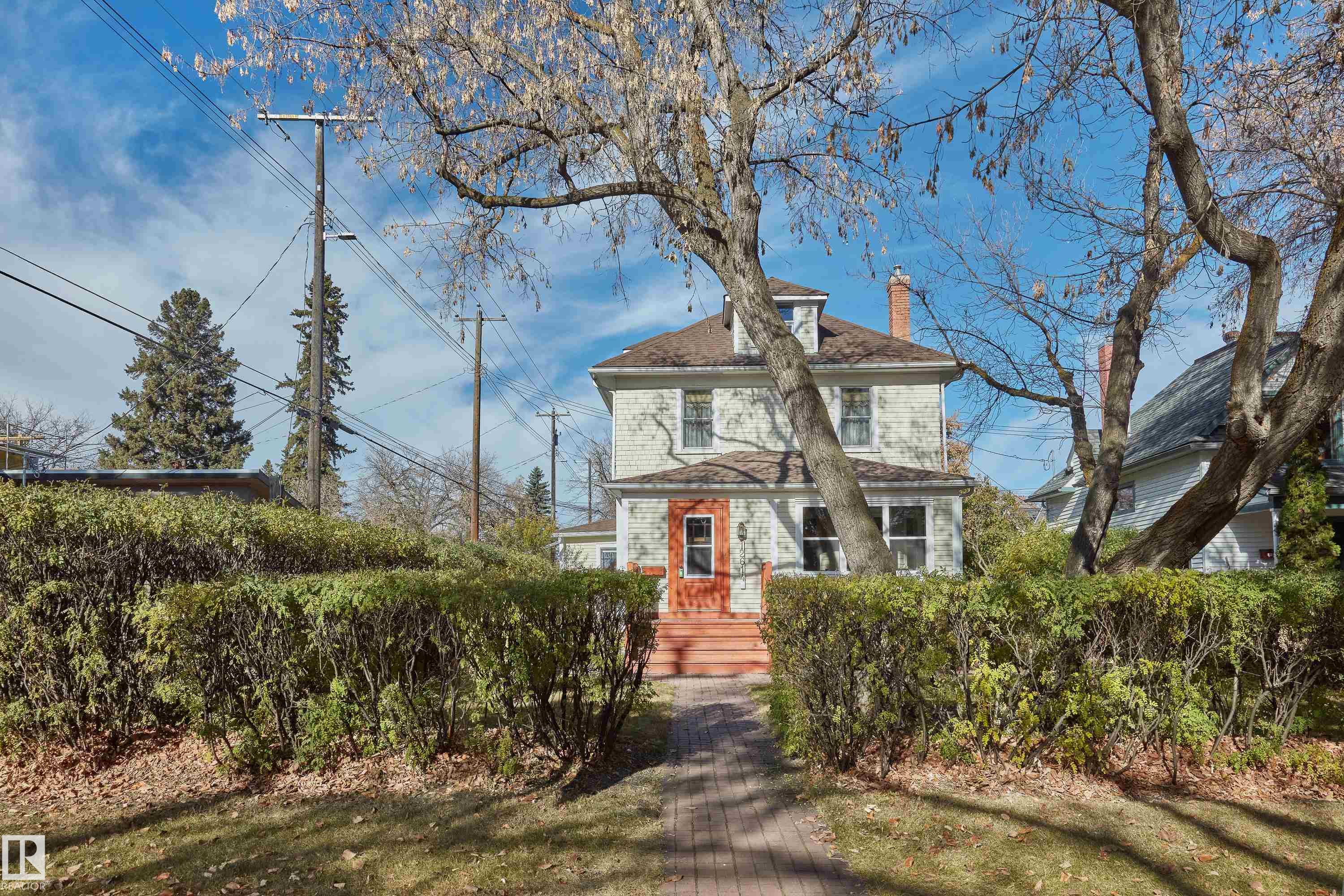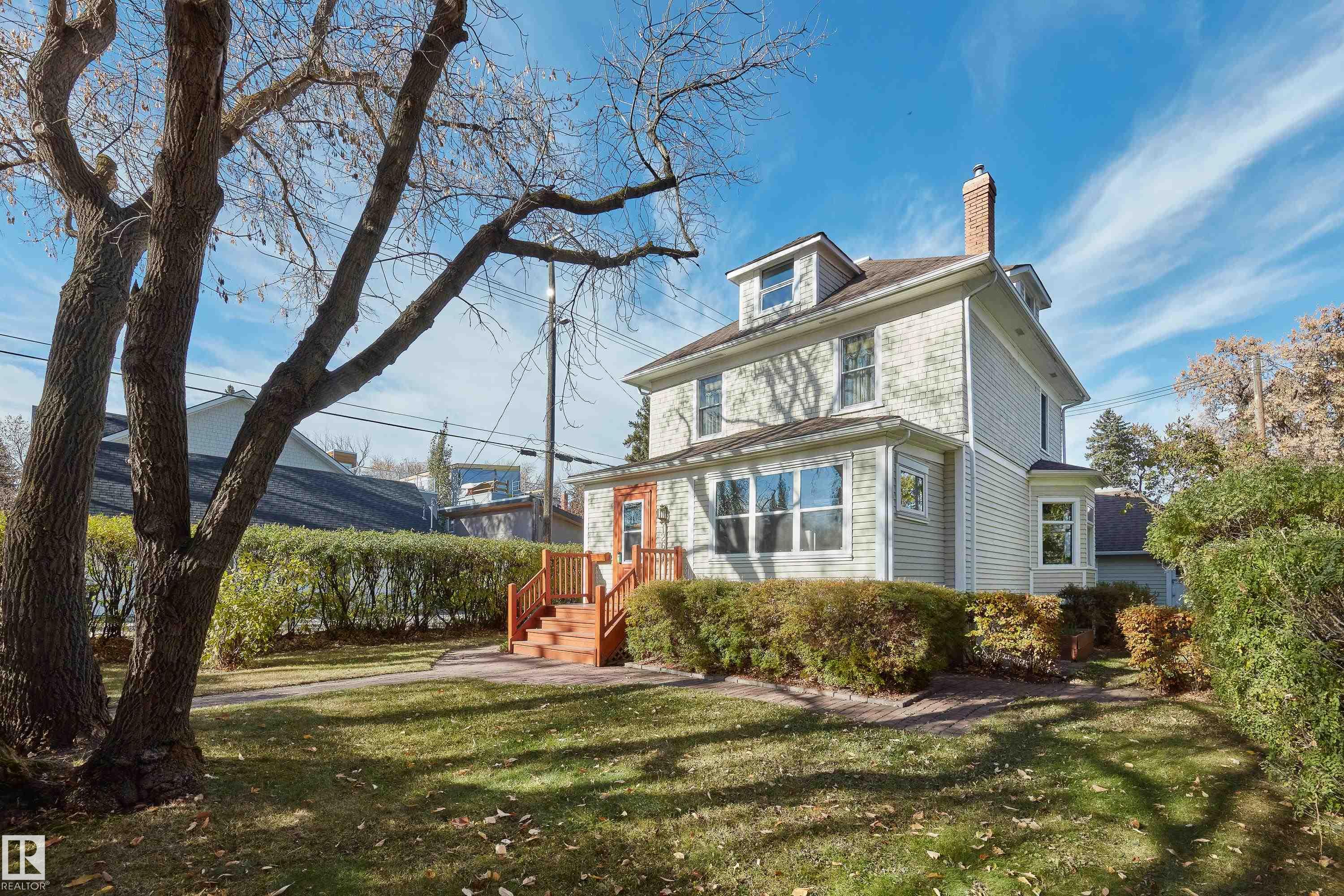 Welcome home to this charming two-and-a-half-storey character home nestled on a picturesque street in the heart of Westmount. Featuring four spacious bedrooms above grade, plus an additional bedroom in the basement, and two full bathrooms, this home blends historic charm, location, and space for the modern family. The interior showcases original character details, including timeless woodwork and elegant fixtures, complemented by newer Pella wood windows and a newer roof. Enjoy peaceful evenings on the beautiful front porch, ideal for relaxing or welcoming guests. Upstairs are four bedrooms and a full bathroom. The basement offers a rec room, fifth bedroom, and second full bathroom. A large, functional mudroom offers convenient storage & access to the backyard and double detached garage w/ loft. Situated within easy walking distance of vibrant shops and restaurants on 124 Street, parks, and schools, this property offers a rare combination of location, character, and comfort. Don't miss this Westmount gem!