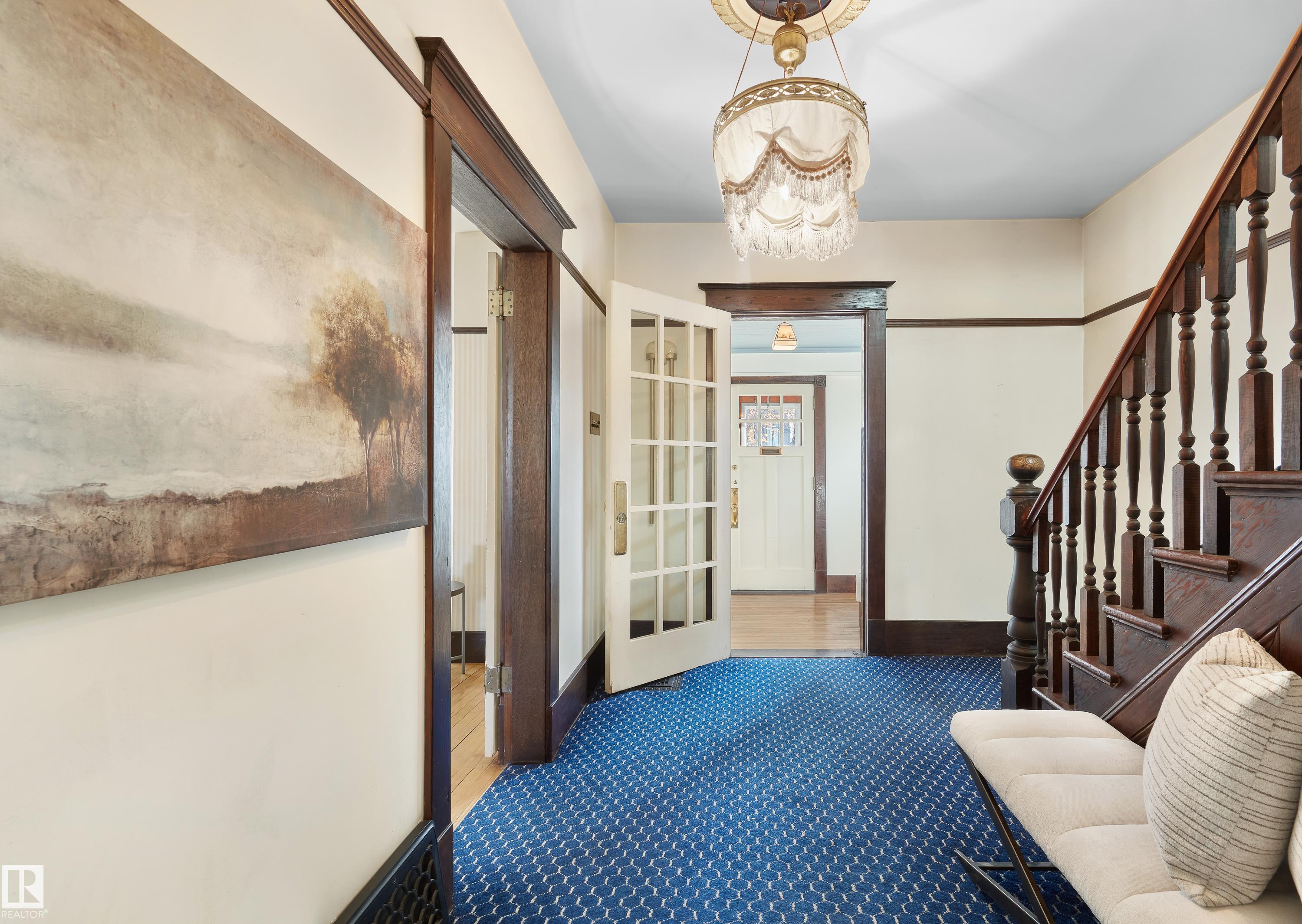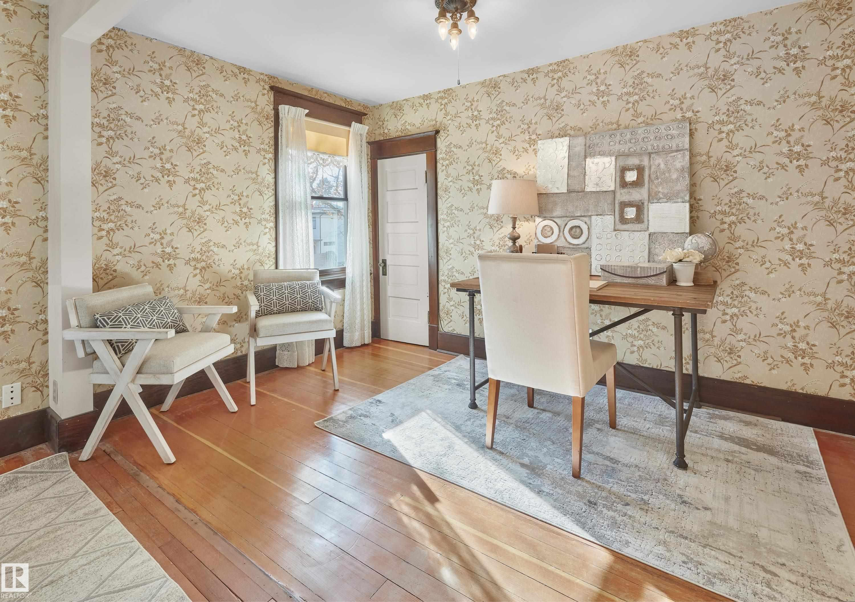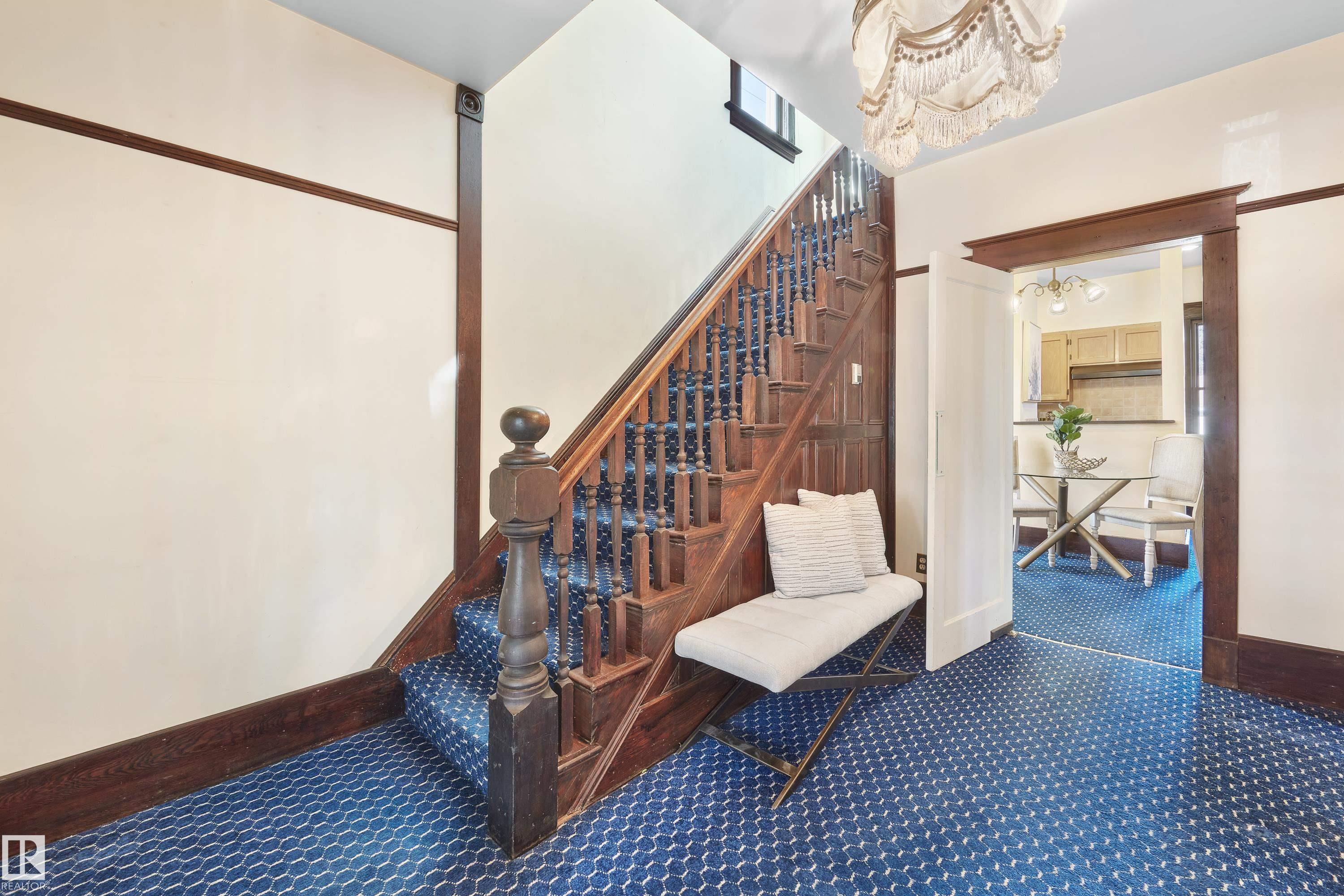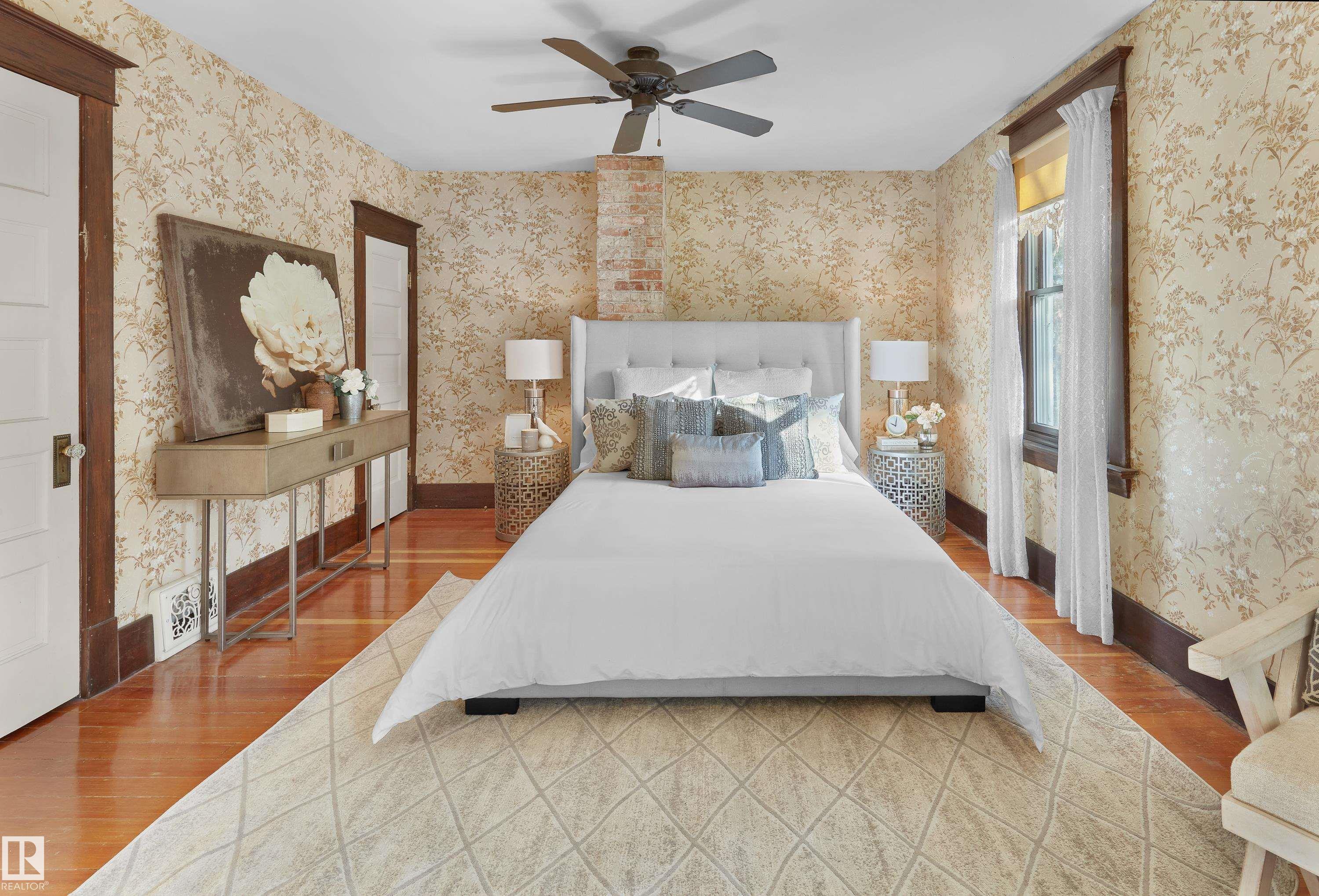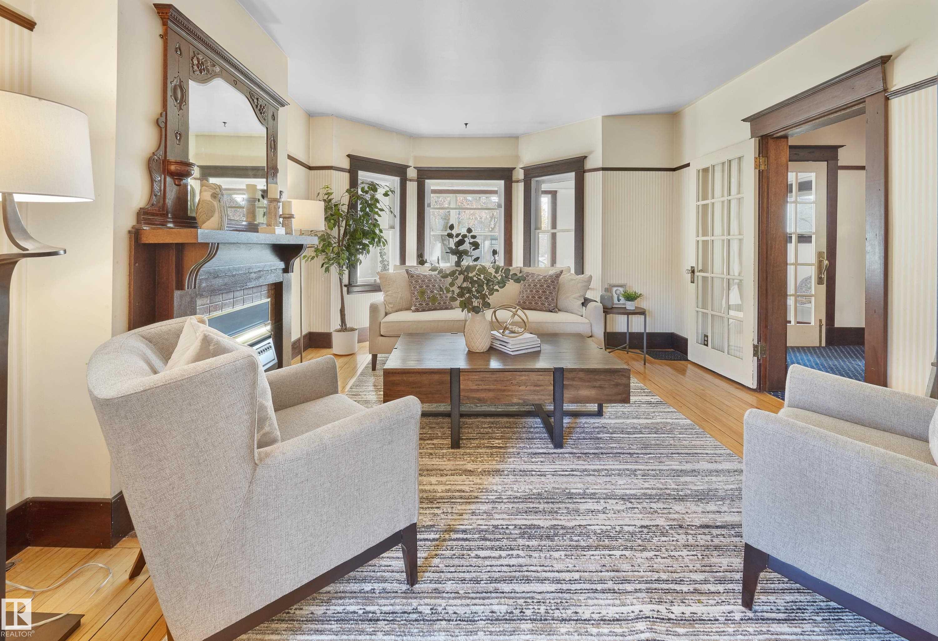 Welcome home to this charming two-and-a-half-storey character home nestled on a picturesque street in the heart of Westmount. Featuring four spacious bedrooms above grade, plus an additional bedroom in the basement, and two full bathrooms, this home blends historic charm, location, and space for the modern family. The interior showcases original character details, including timeless woodwork and elegant fixtures, complemented by newer Pella wood windows and a newer roof. Enjoy peaceful evenings on the beautiful front porch, ideal for relaxing or welcoming guests. Upstairs are four bedrooms and a full bathroom. The basement offers a rec room, fifth bedroom, and second full bathroom. A large, functional mudroom offers convenient storage & access to the backyard and double detached garage w/ loft. Situated within easy walking distance of vibrant shops and restaurants on 124 Street, parks, and schools, this property offers a rare combination of location, character, and comfort. Don't miss this Westmount gem!