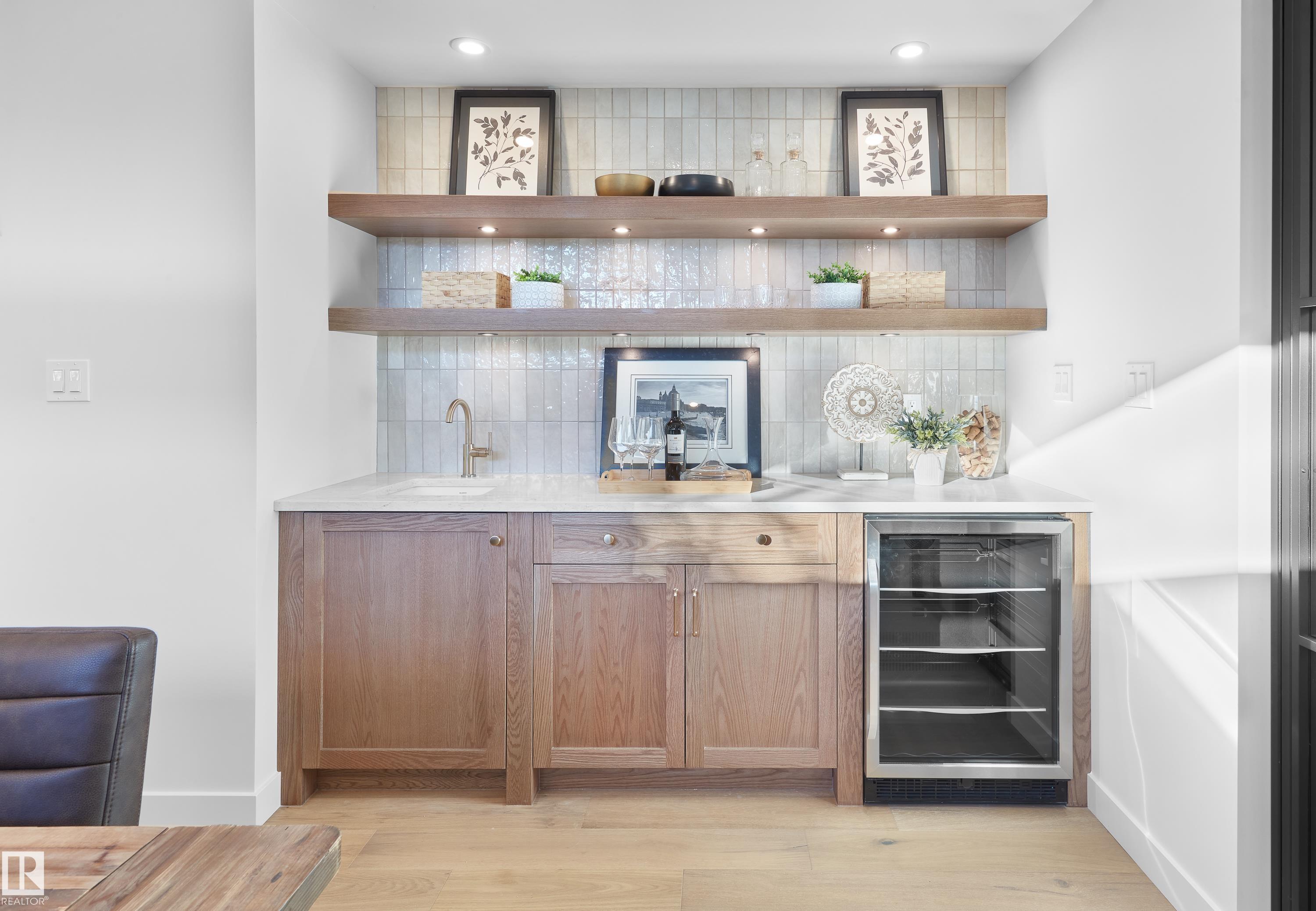 This meticulously designed home showcases high-end finishes, superior craftsmanship, & backs onto the ravine! With over 4,200 sq ft of living space, it offers 4 bedrooms + a den, a main floor office, & a massive upper loft with a rooftop patio. The main floor features stunning hardwood, custom iron doors, brick accents, & a chef's kitchen with elegant cabinetry, panel appliances, dual fridges, built-in ovens, & bookmatched countertops. A dining wet bar includes a built-in beverage fridge, while the living area centres around a plaster fireplace with built-in cabinetry. The primary suite boasts a gorgeous, spa-like en-suite and a large walk-in closet. Upstairs are 3 bedrooms, a den, & 3 full baths. The top-floor loft impresses with a wet bar, 2 pc bath, & rooftop patio with a gas fire table overlooking the ravine. The lower level offers in-floor heat, a rec room, a bedroom, & bath. Oversized heated garage with epoxy floors & south yard with covered deck complete this must-see home!