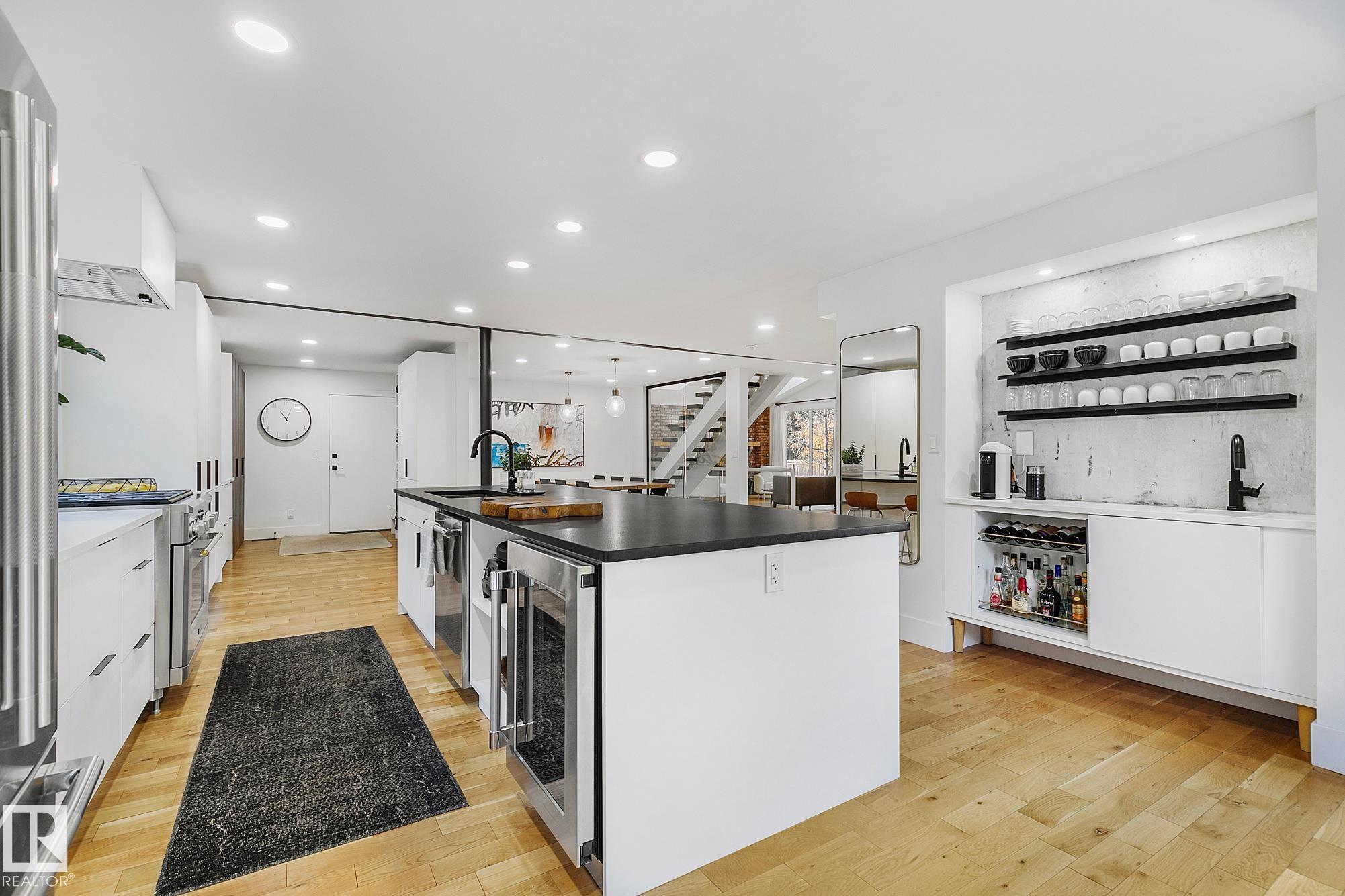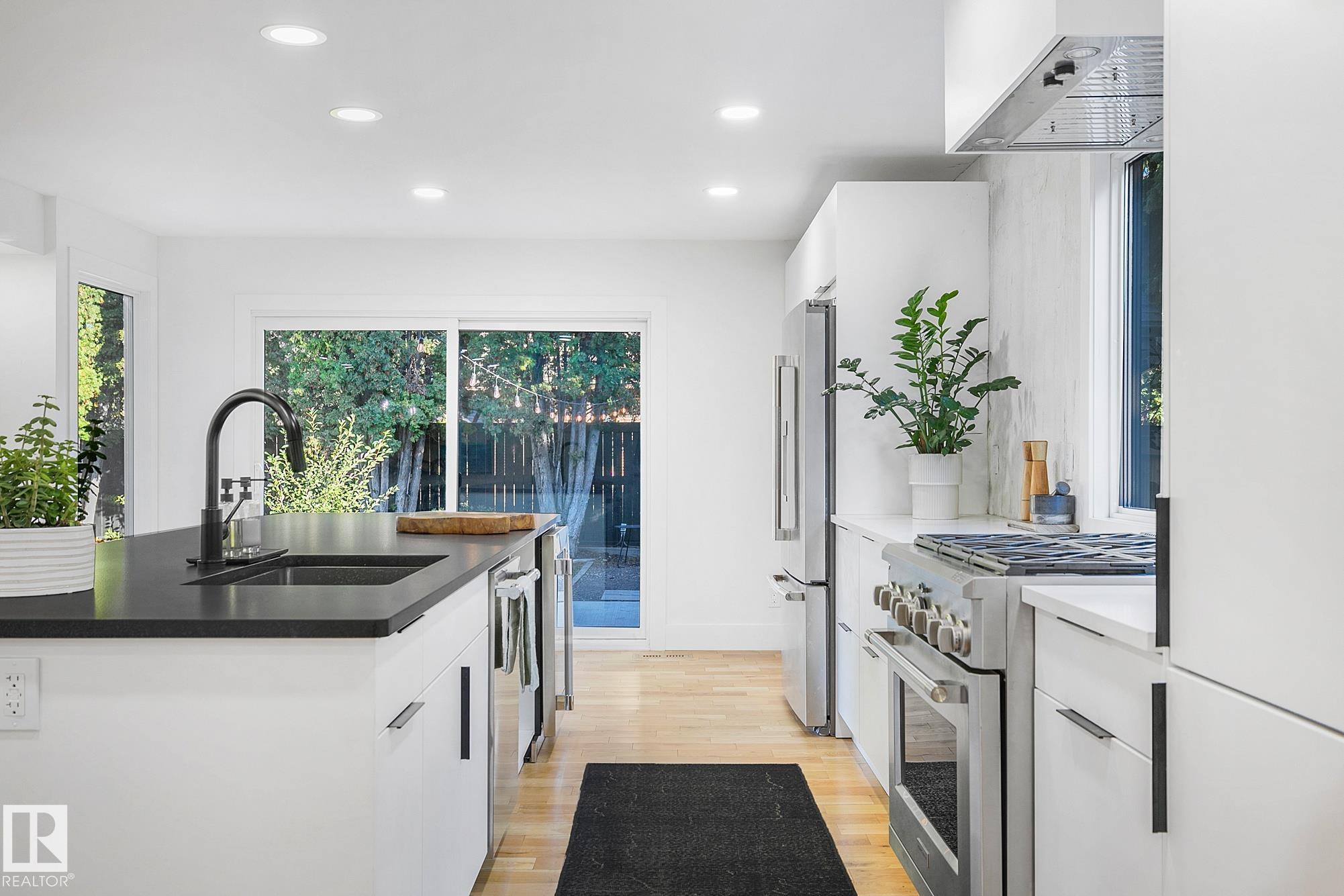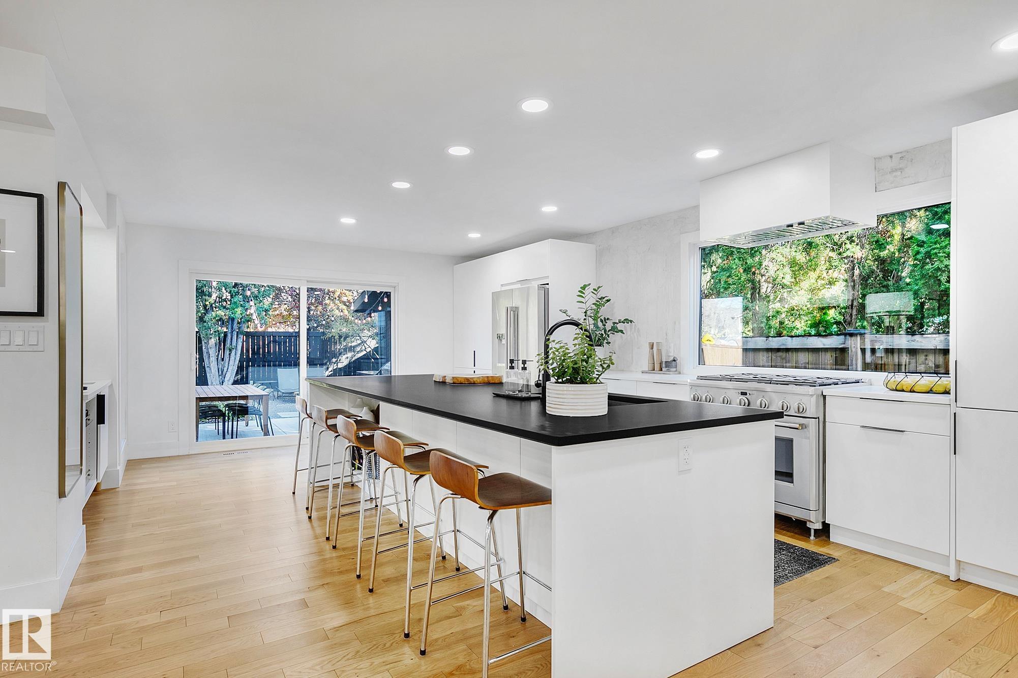 RAVINE FACING! BEAUTIFULLY RENOVATED! DESIRABLE LOCATION! Stunning 2 storey home w/unique architecture that blends timeless style & contemporary comfort! You will be captivated by the modern design, expansive floor to ceiling windows & light filled spaces that define this exceptional property. Enjoy multiple living & entertaining areas both inside & out, vaulted ceiling, open staircase, glass elements, 3 traditional wood burning fireplaces & more! Gourmet kitchen is a show stopper! Designed for function & style w/tons of cabinetry, expansive island w/seating, black leather granite, high end stainless appliances, concrete backsplash & dedicated coffee bar. Upstairs houses 4 generous size bedrooms. Bright & spacious primary has luxurious 5pce ensuite w/soaker tub,glass shower & double sinks plus private balcony overlooking the thoughtfully landscaped backyard. Developed basement has 10ft ceiling, large windows, recreation space, gym, den, storage & 4pce spa-like bath.COME EXPERIENCE THIS ONE OF A KIND HOME!