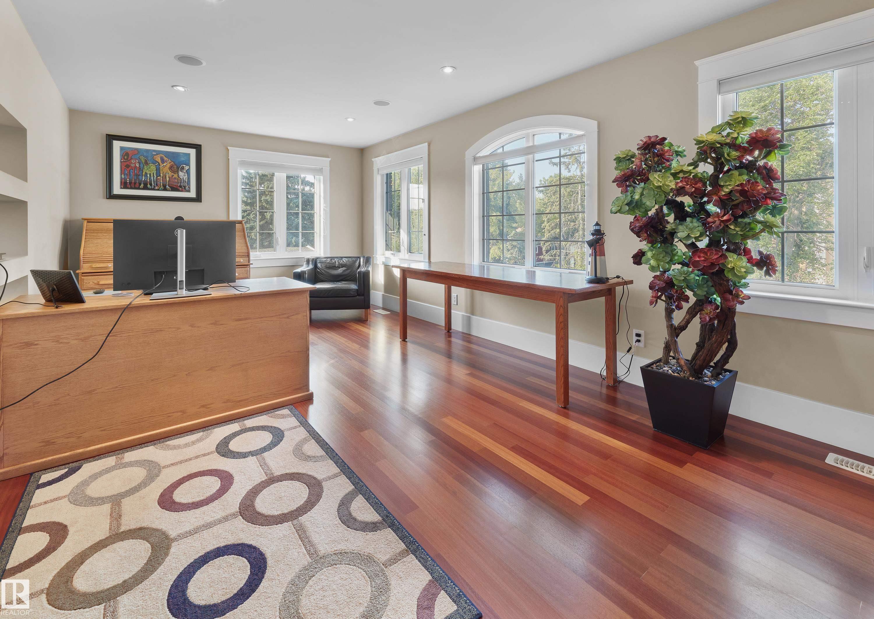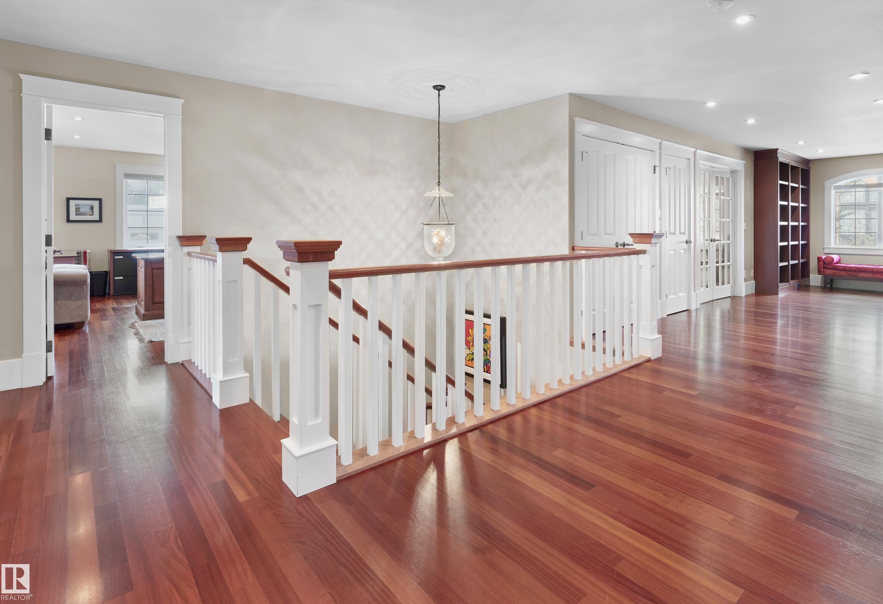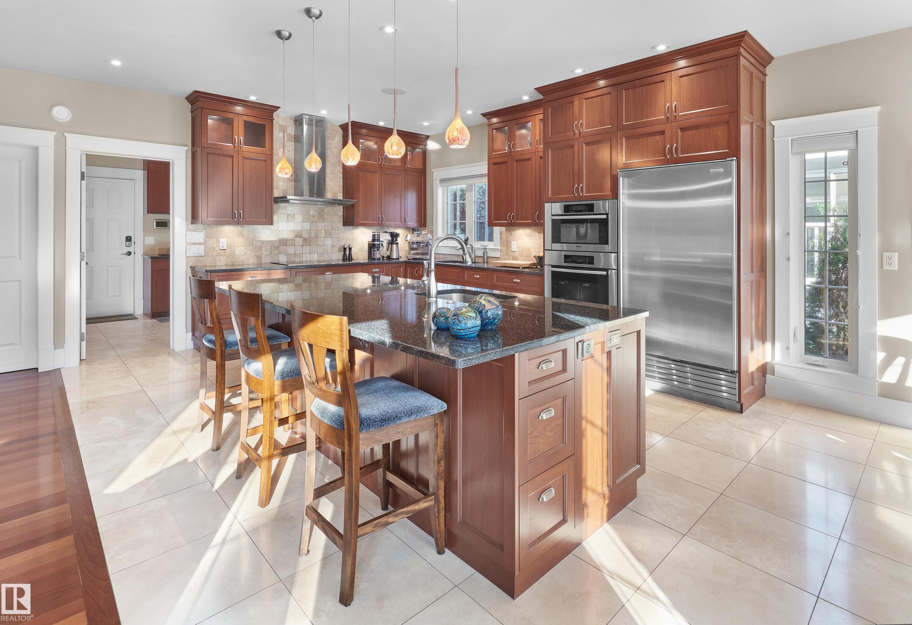 Located in prestigious Windsor Park, just steps from the University of Alberta Hospital and Campus, this exceptional family home combines luxury and functionality. An impressive foyer welcomes you into a thoughtfully designed floor plan featuring 9' ceilings, in-floor heating, hardwood and limestone flooring, and walls of windows that fill the home with natural light. The gourmet kitchen boasts a large island, walk-in pantry, high-end stainless appliances, and custom cabinetry. The desk area features extra cabinetry & counter space. A spacious mudroom with sink and built-ins is off the garage. Upstairs you'll find 4 bedrooms plus an office (or 5th bedroom) and 3 full baths. The lower level offers three additional bedrooms, a Rec room, theatre room, laundry, and two more full baths--perfect for extended family or guests. With 3 fireplaces, direct garden access from multiple rooms, and its unbeatable location near the river valley and Downtown, this residence delivers the ultimate in lifestyle & convenience.