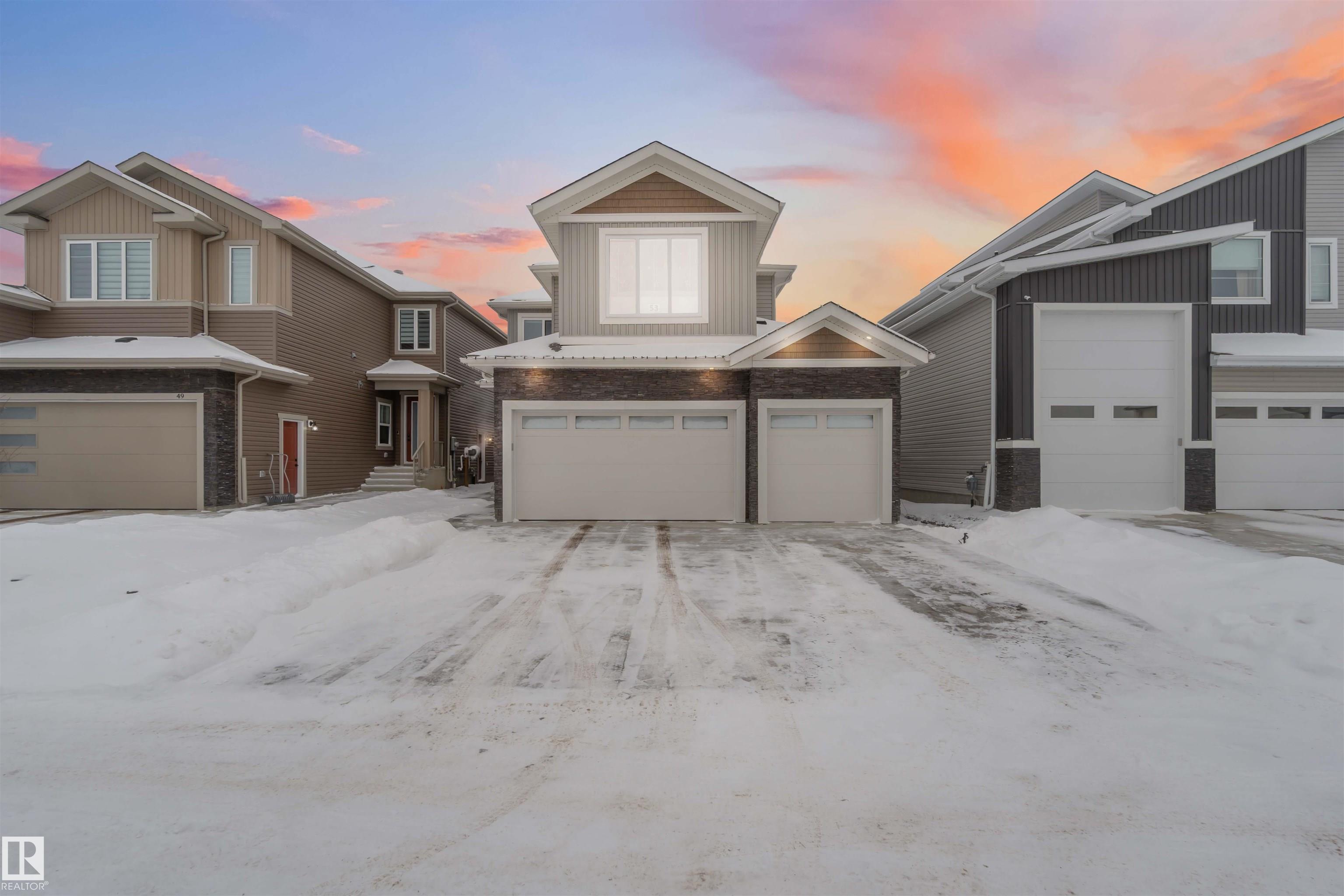 Beautiful 3-bedroom home with a triple attached heated garage and a fully finished 2-bedroom legal basement suite with separate entrance, perfect for rental income or multigenerational living. The main floor features a stunning great room with 17' ceilings, gas fireplace, and floor-to-ceiling stone feature wall, plus a spacious mudroom and butler-style walk-through pantry leading to the kitchen with real wood cabinet boxes and $14K in upgraded appliances. This home includes over $30K in additional upgrades, including commercial-grade vinyl plank flooring, triple-pane windows with $5K in window coverings, $5K water softener system, $5K garage finishing upgrades, and $5K low-maintenance vinyl fencing. Upstairs offers 3 bedrooms including a spacious primary suite with walk-in closet and 5-piece ensuite, plus a bonus room, 4-piece bath, and upper-level laundry. The legal basement suite includes its own stacked washer and dryer. Carpet is limited to the basement stairs only for easy maintenance throughout.