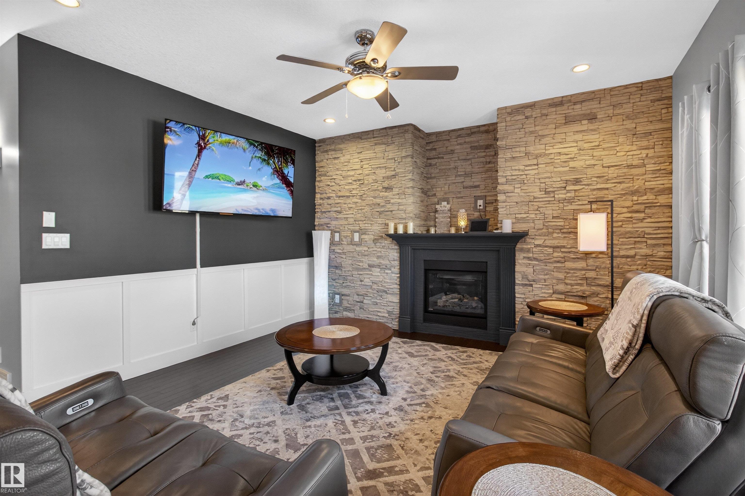 SIMPLY STUNNING & LOADED WITH UPGRADES!!! Featuring an open concept with nearly 2500 square feet plus a partially finished basement. Massive foyer, soaring ceilings & gorgeous polished ceramic tile. BEAUTIFUL kitchen with GRANITE countertops, NEW appliances, an abundance of cabinetry, pantry plus a large dining area. Open and spacious living room with hardwood floors, attractive gas fireplace and STONE FEATURE WALL! Main floor office/flex room & powder room. Upstairs is a Bonus Room with vaulted ceilings & second gas fireplace. 3 large bedrooms plus laundry room & 4 piece bathroom. The Primary Bedroom is huge & offers a walk-in closet and a LUXURIOUS ENSUITE! The basement has 9 ft ceilings, a NEW 2 piece bathroom, family room area & lots of storage space. NEW Garage Heater, NEW Central Air-Conditioning, NEW deck with NEW gas line for bbq, NEW vac system and NEW PAINT throughout! Lovely backyard to enjoy! Corner lot location close to major amenities, parks, schools and more! See it and you will LOVE it!!
